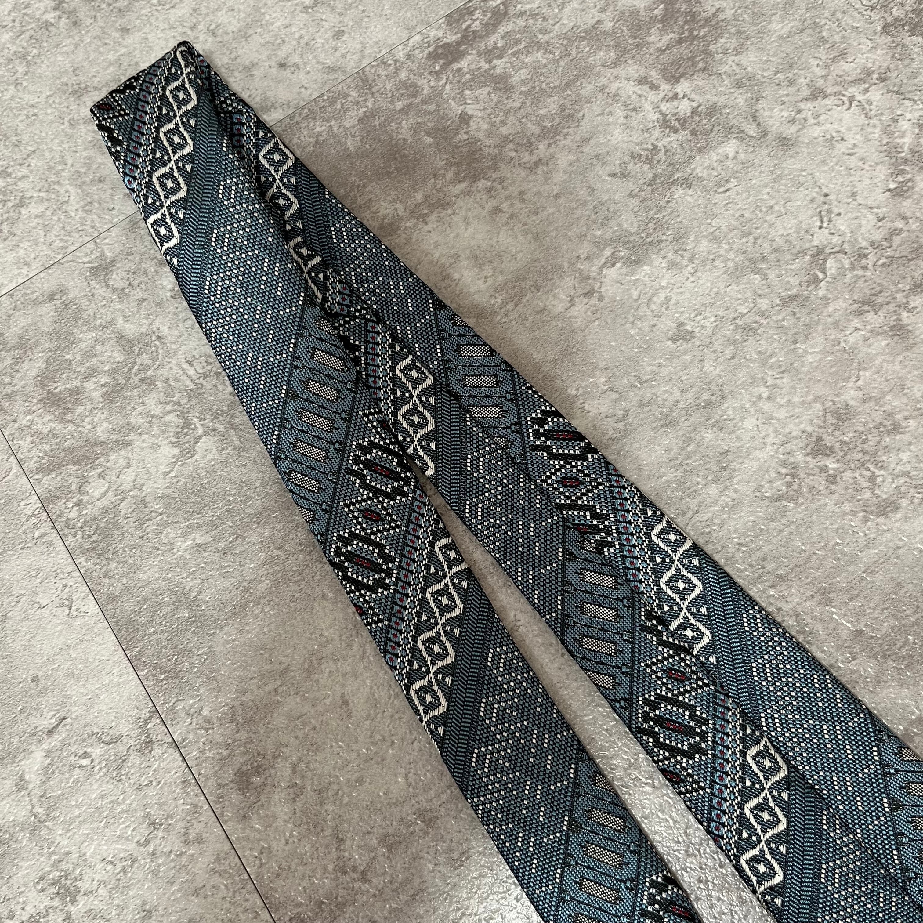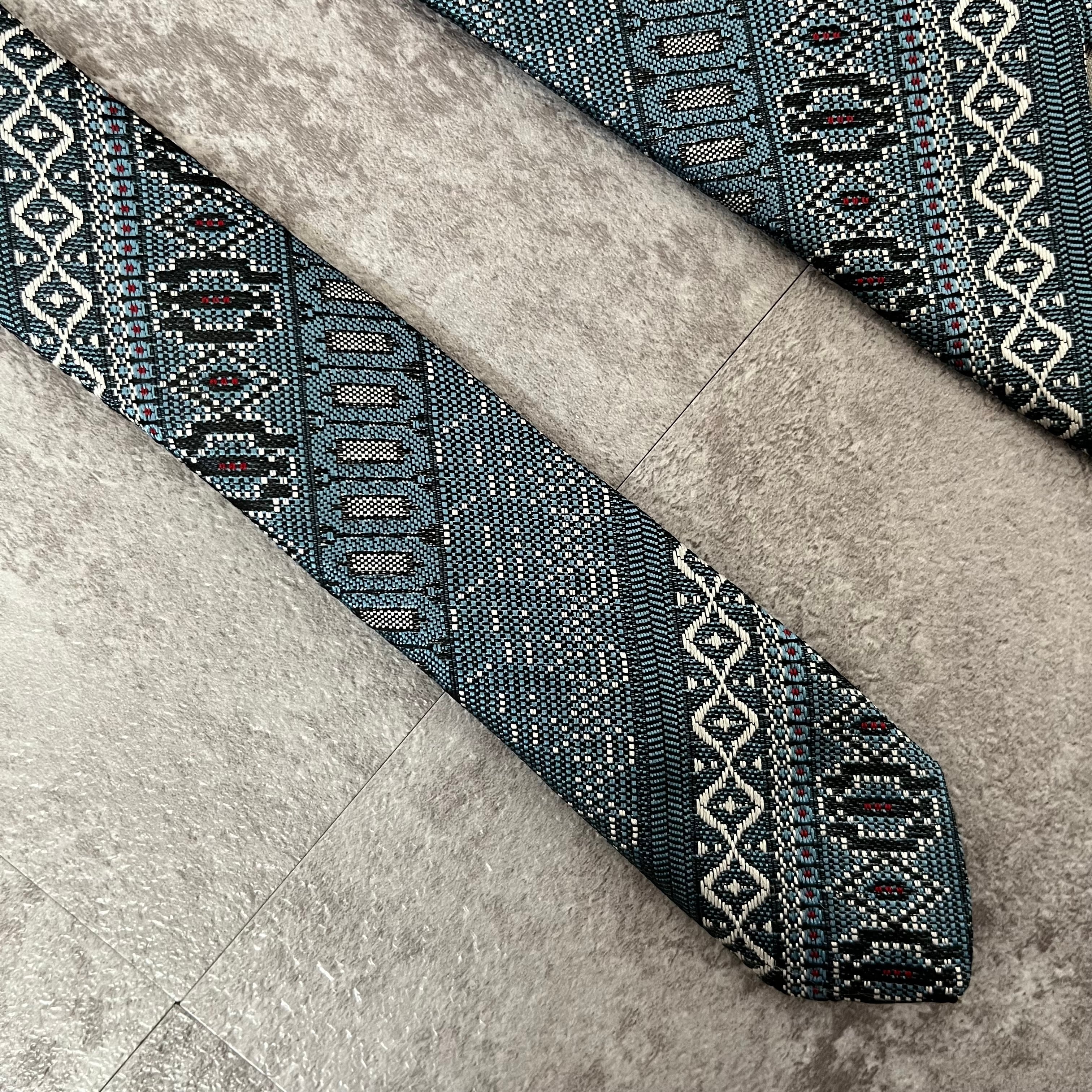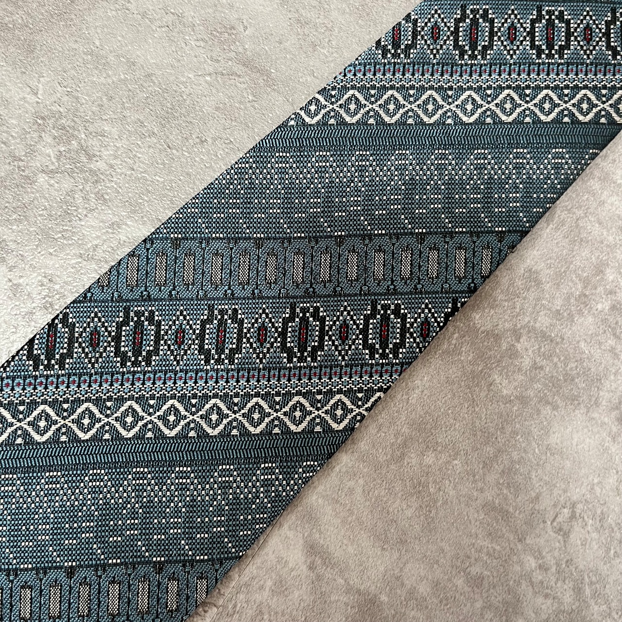 【ストライプ】絨毯風ストライプネクタイ ブルー 光沢 ジャガード 刺繍