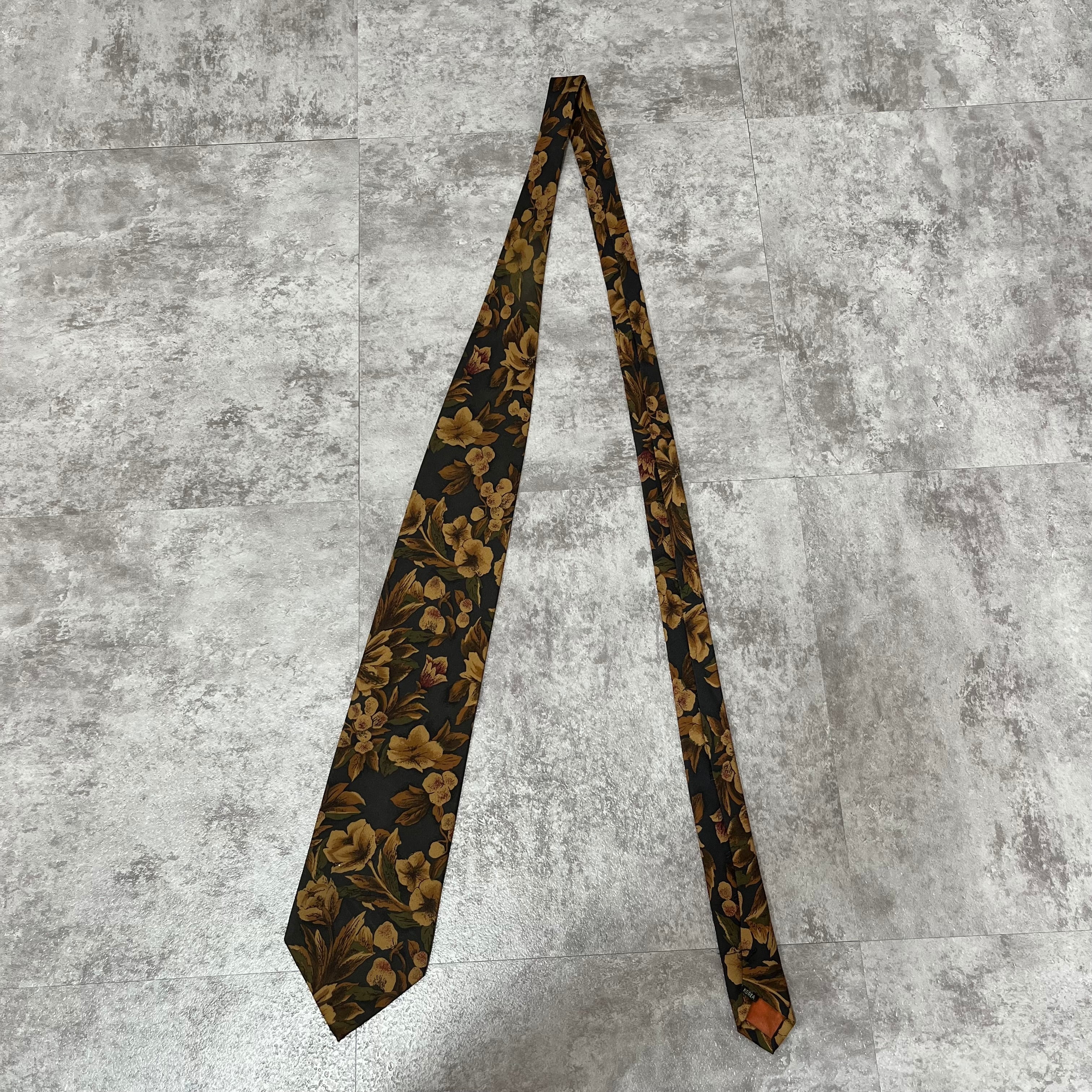 【花柄】ボタニカルネクタイ ネイビー バイカラー