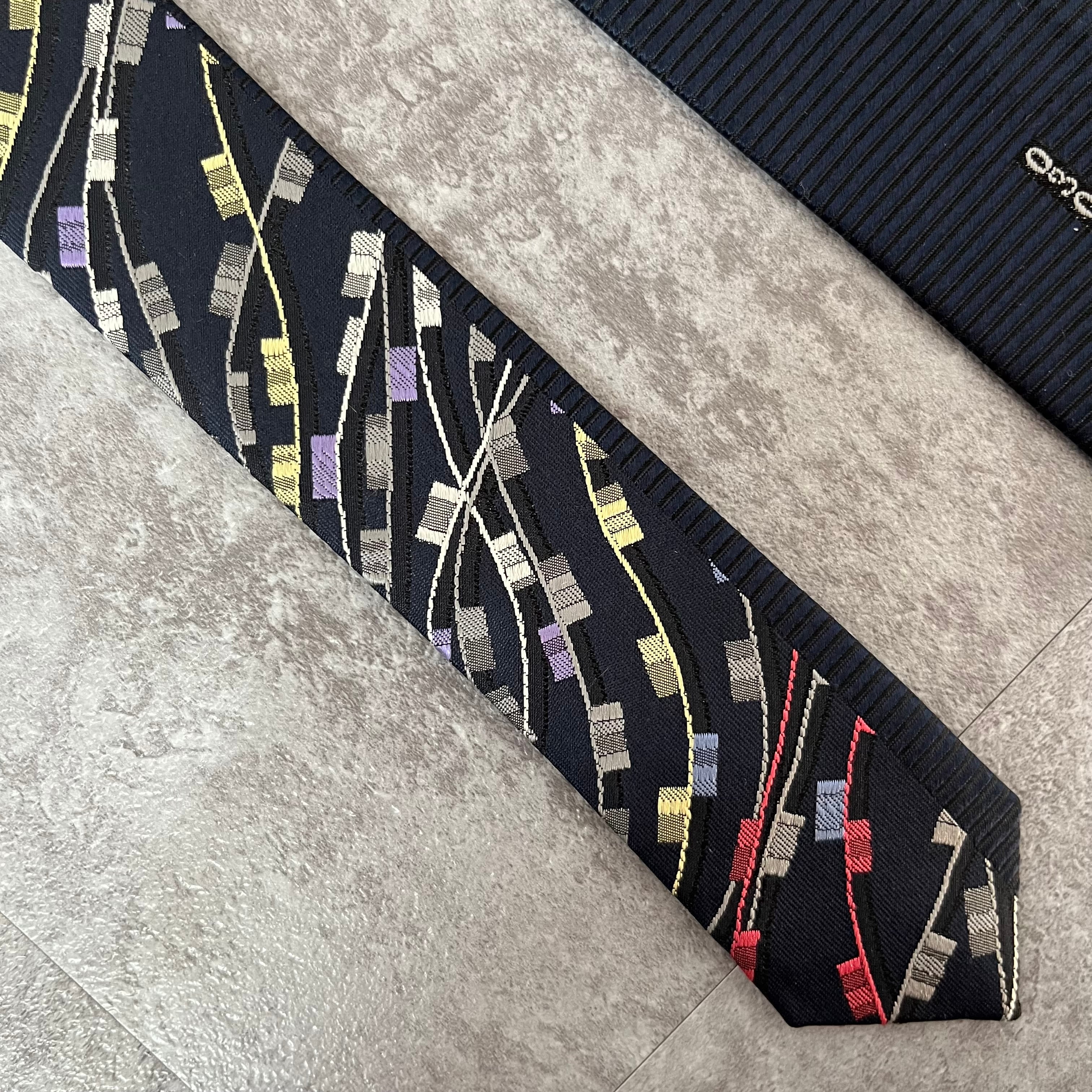 【タグ付き】アート柄ネクタイ ネイビー 短冊