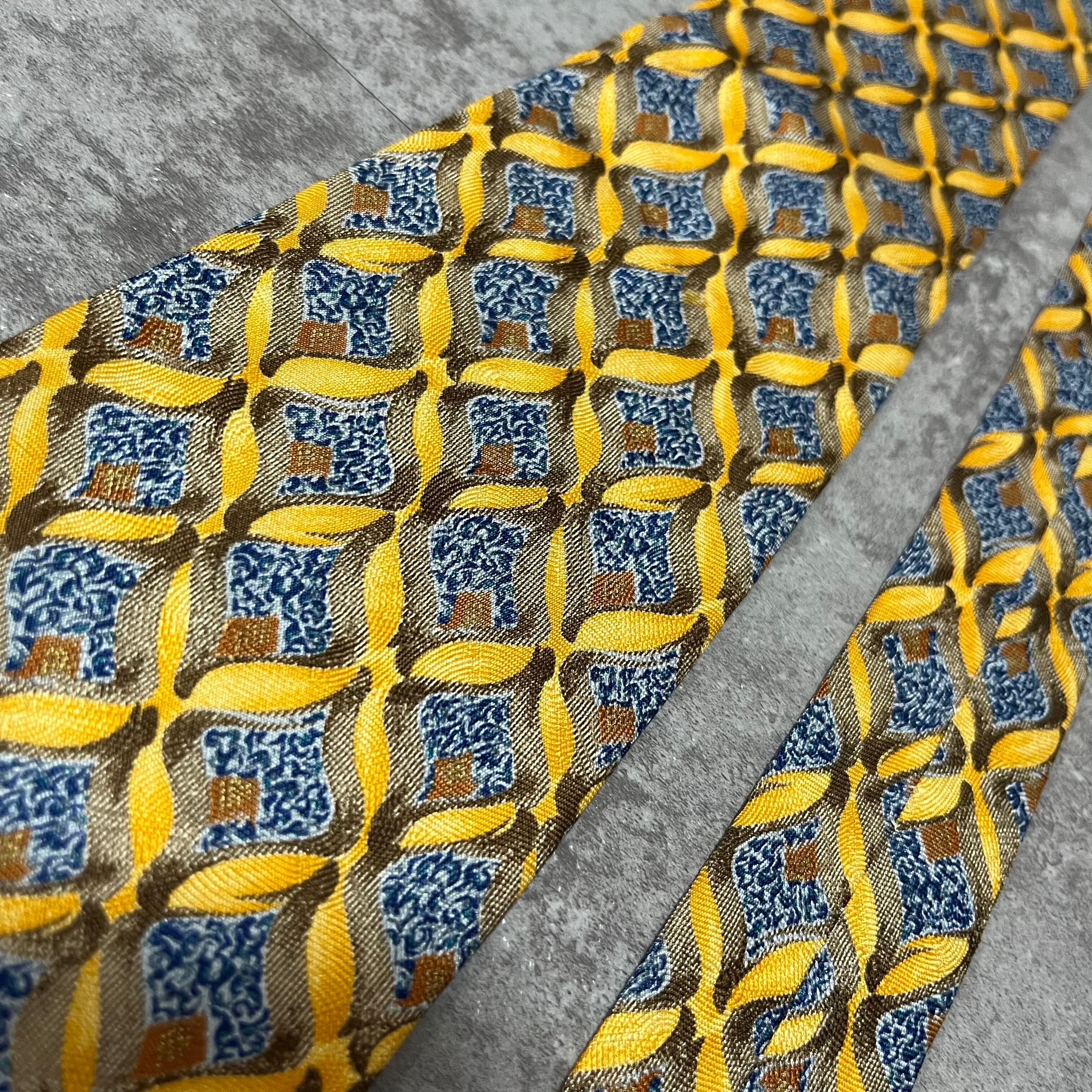 【Ermenegildo Zegna】チェーンチェックネクタイ ゴールド バイカラー イエロー ブルー