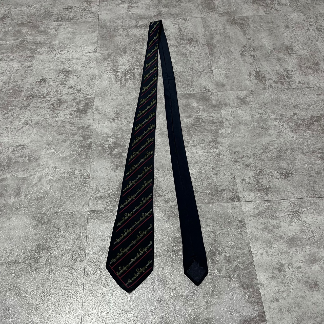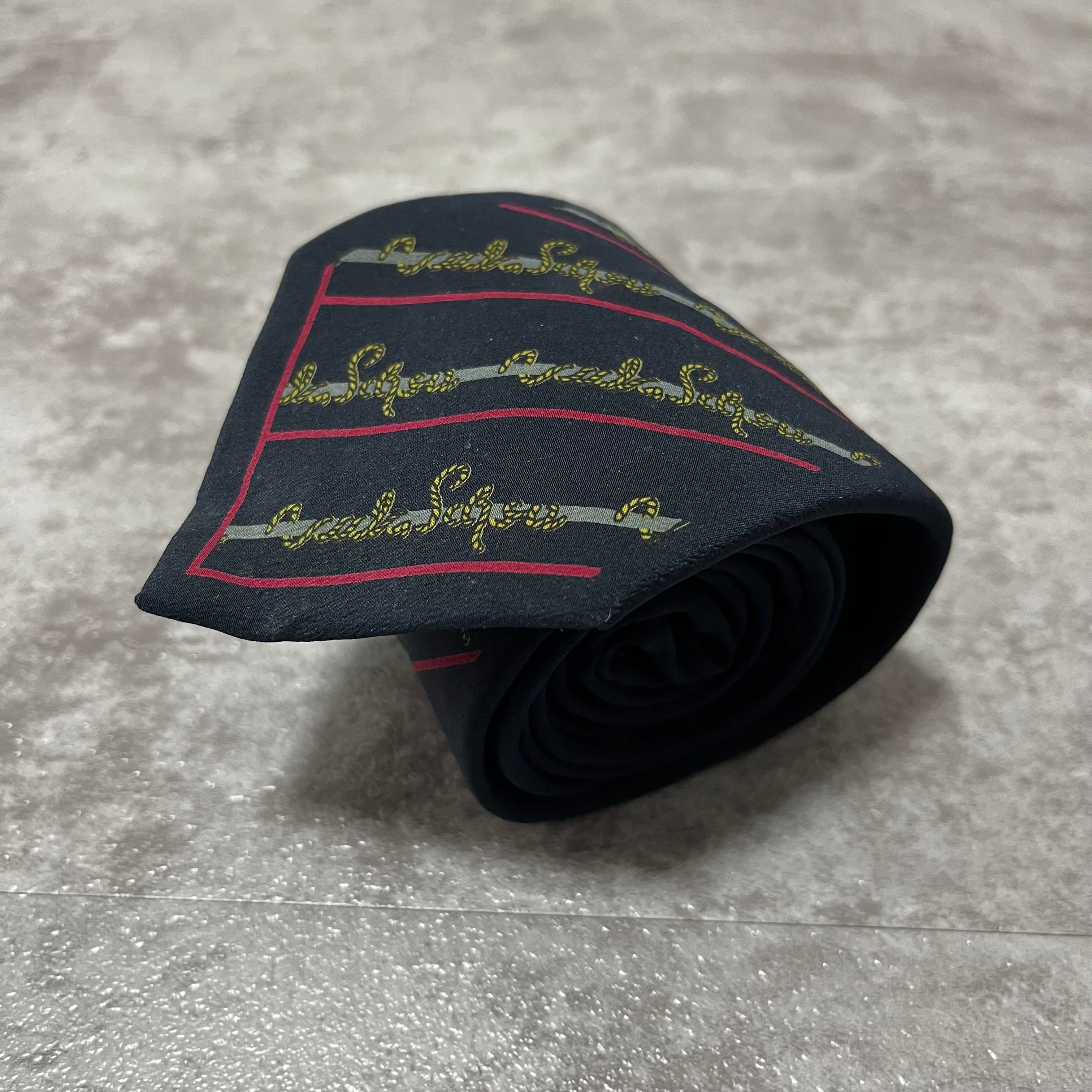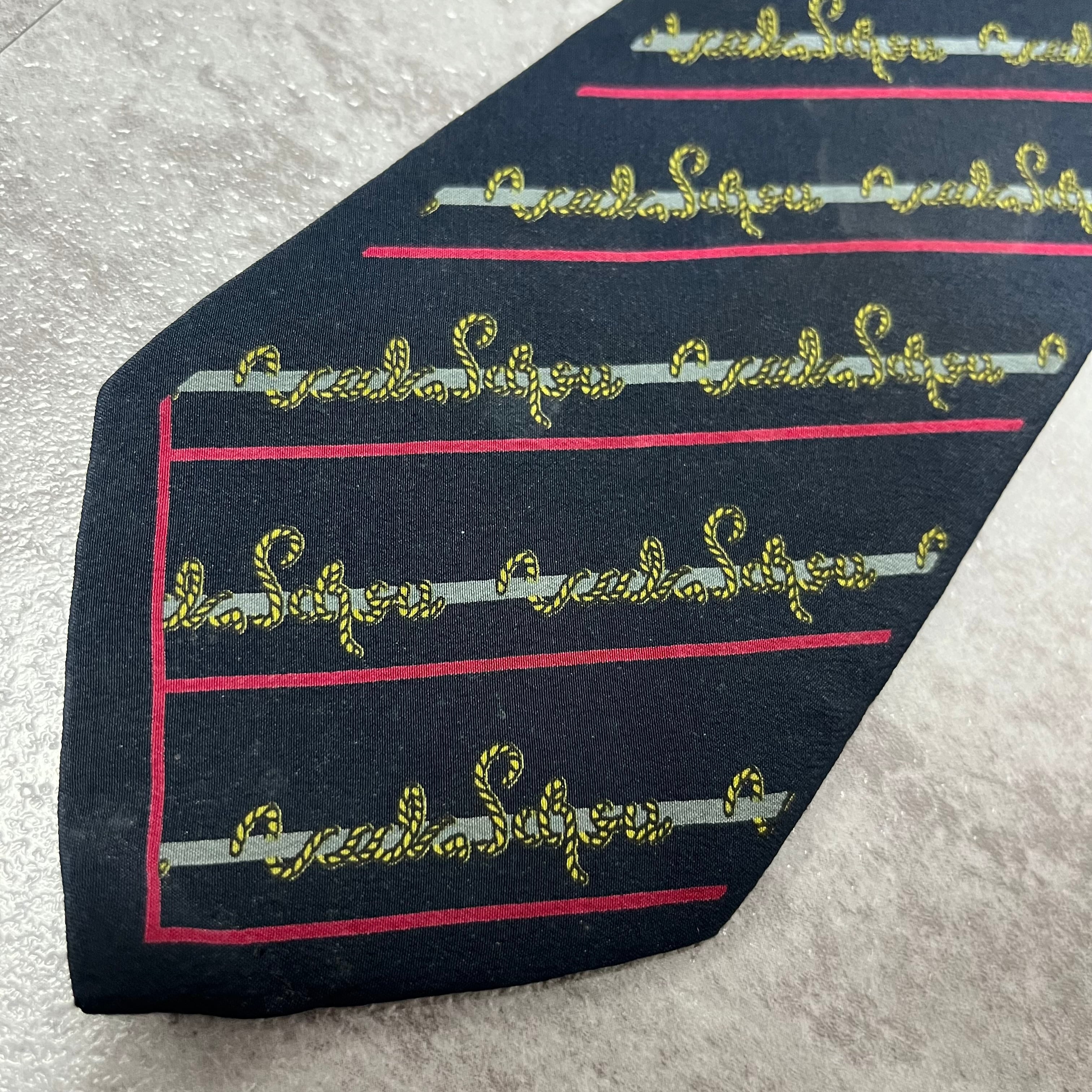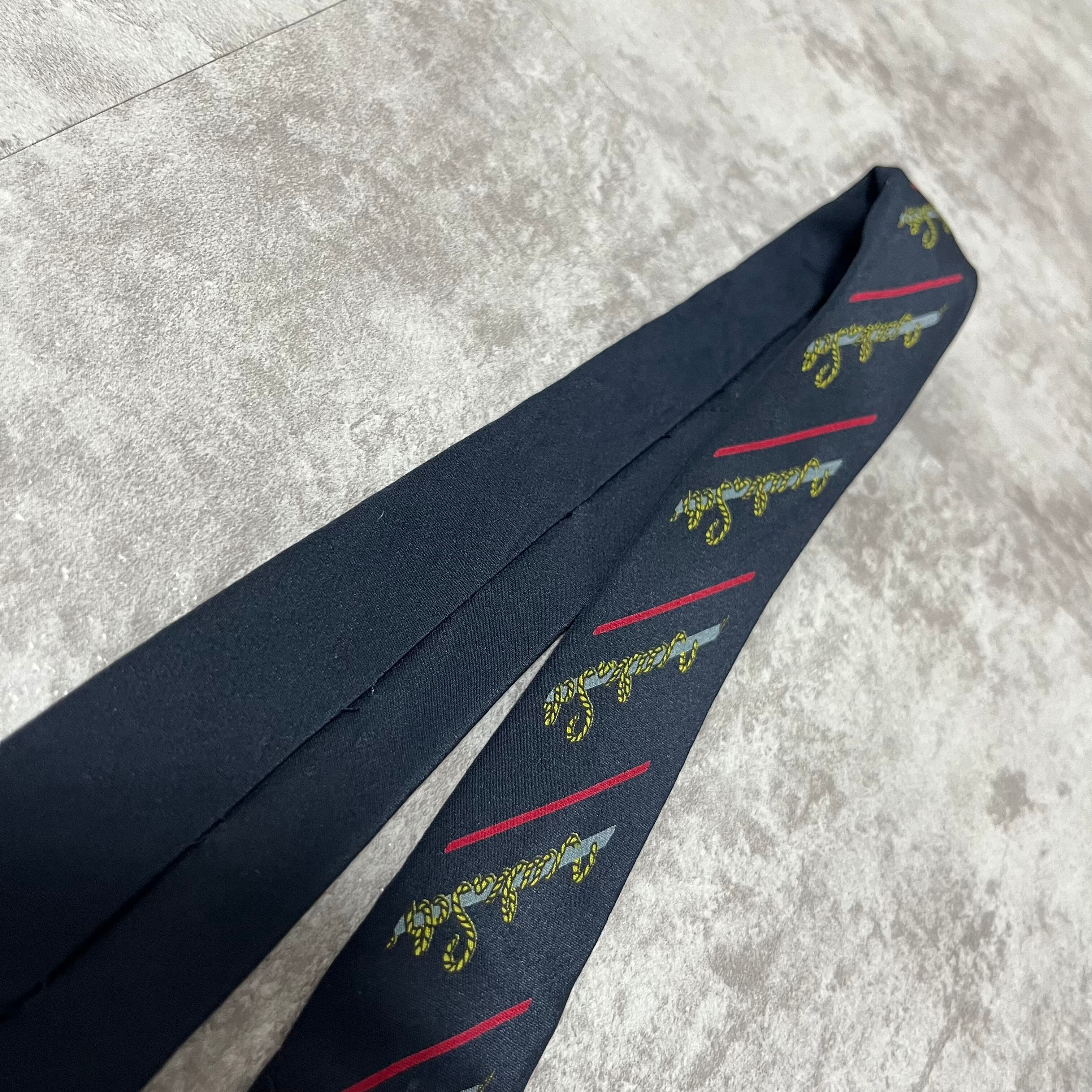 【Mila Schoen】ミラショーン文字風紐デザインストライプネクタイ ネイビー