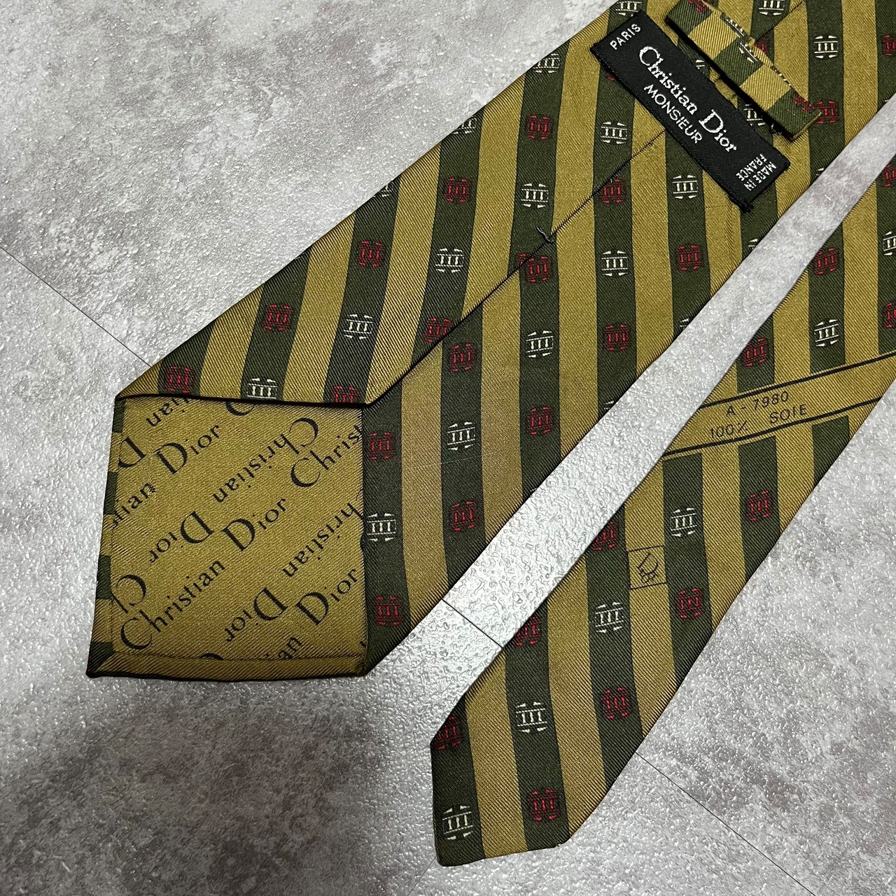 【Christian Dior】レジメンタルストライプネクタイ カーキ