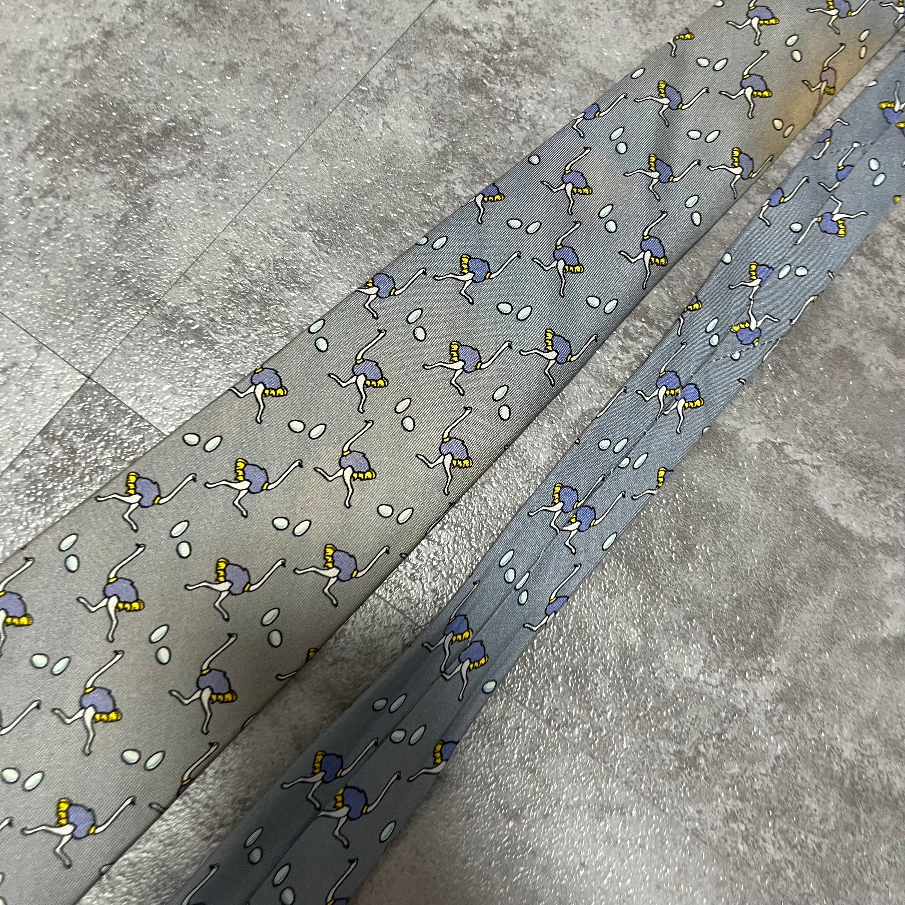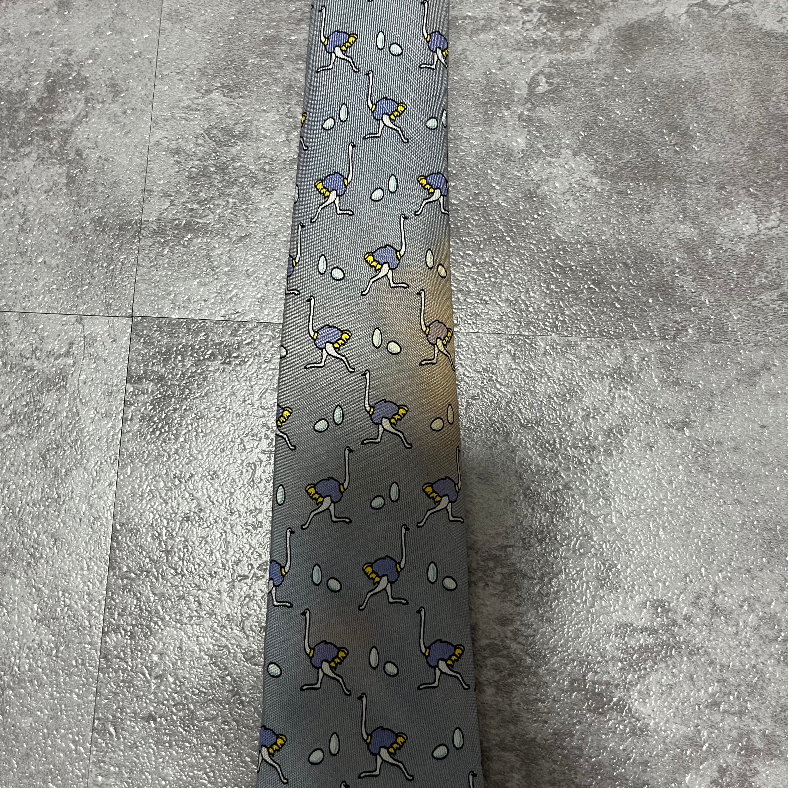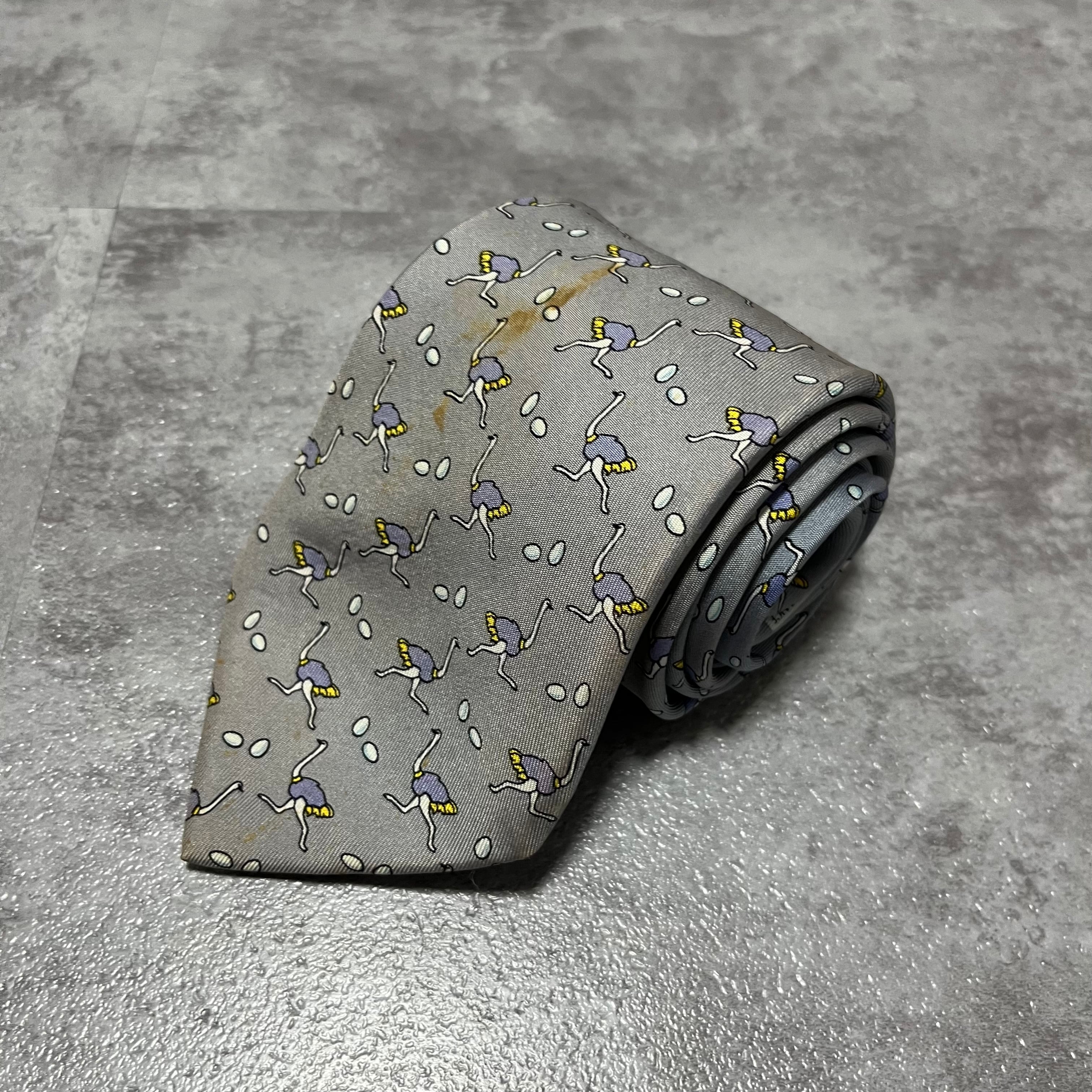【HERMES】アニマル柄ネクタイ ダチョウ グレー たまご
