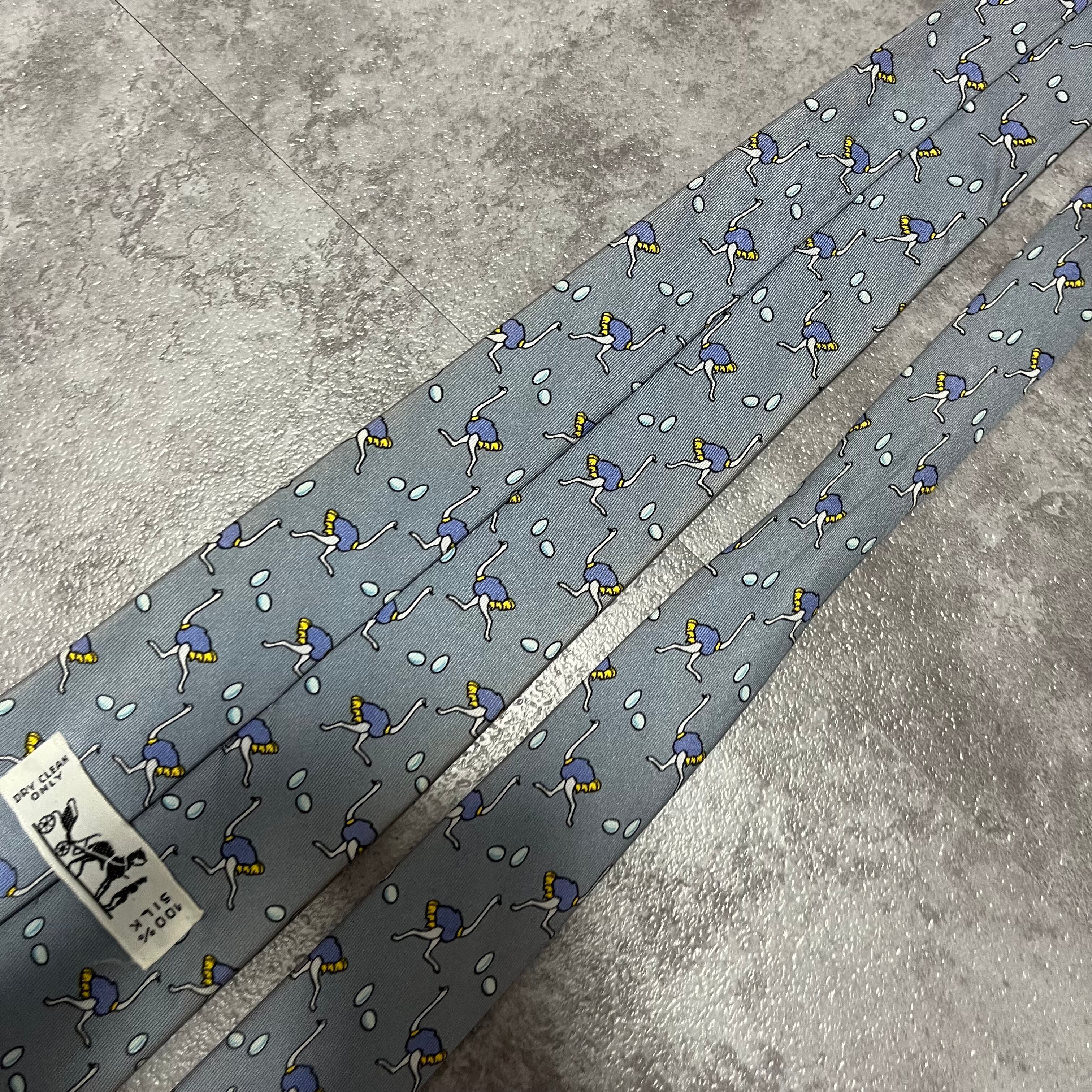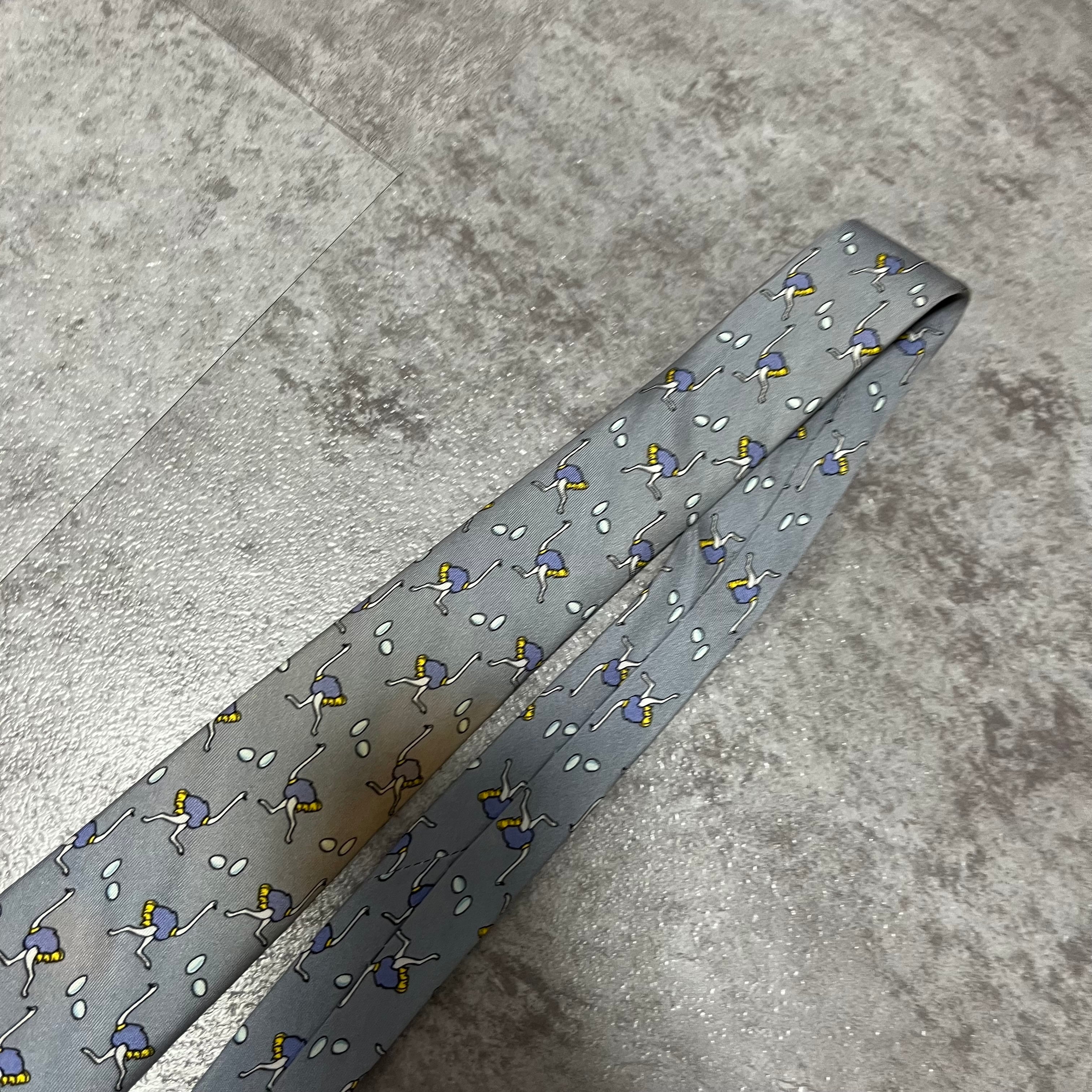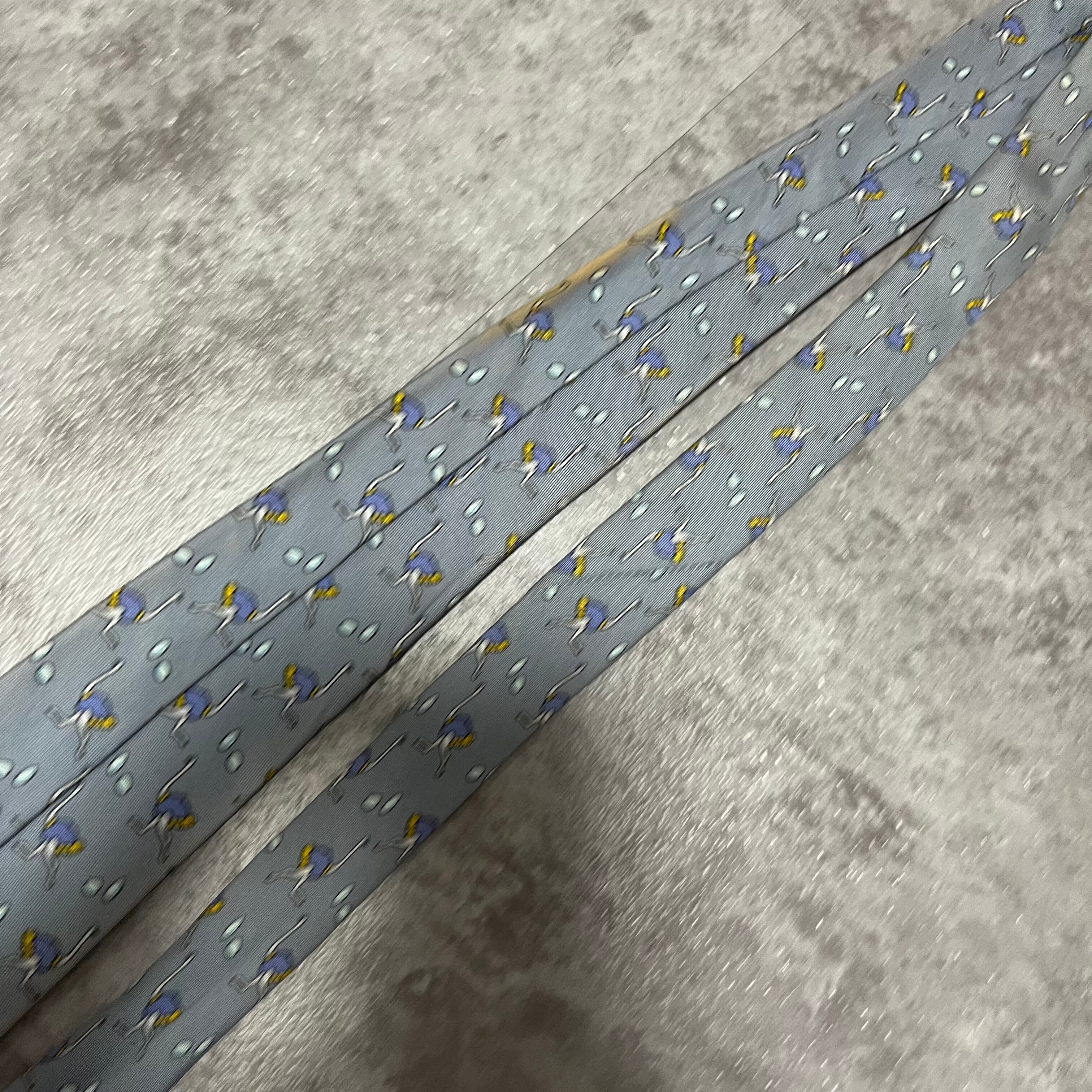 【HERMES】アニマル柄ネクタイ ダチョウ グレー たまご