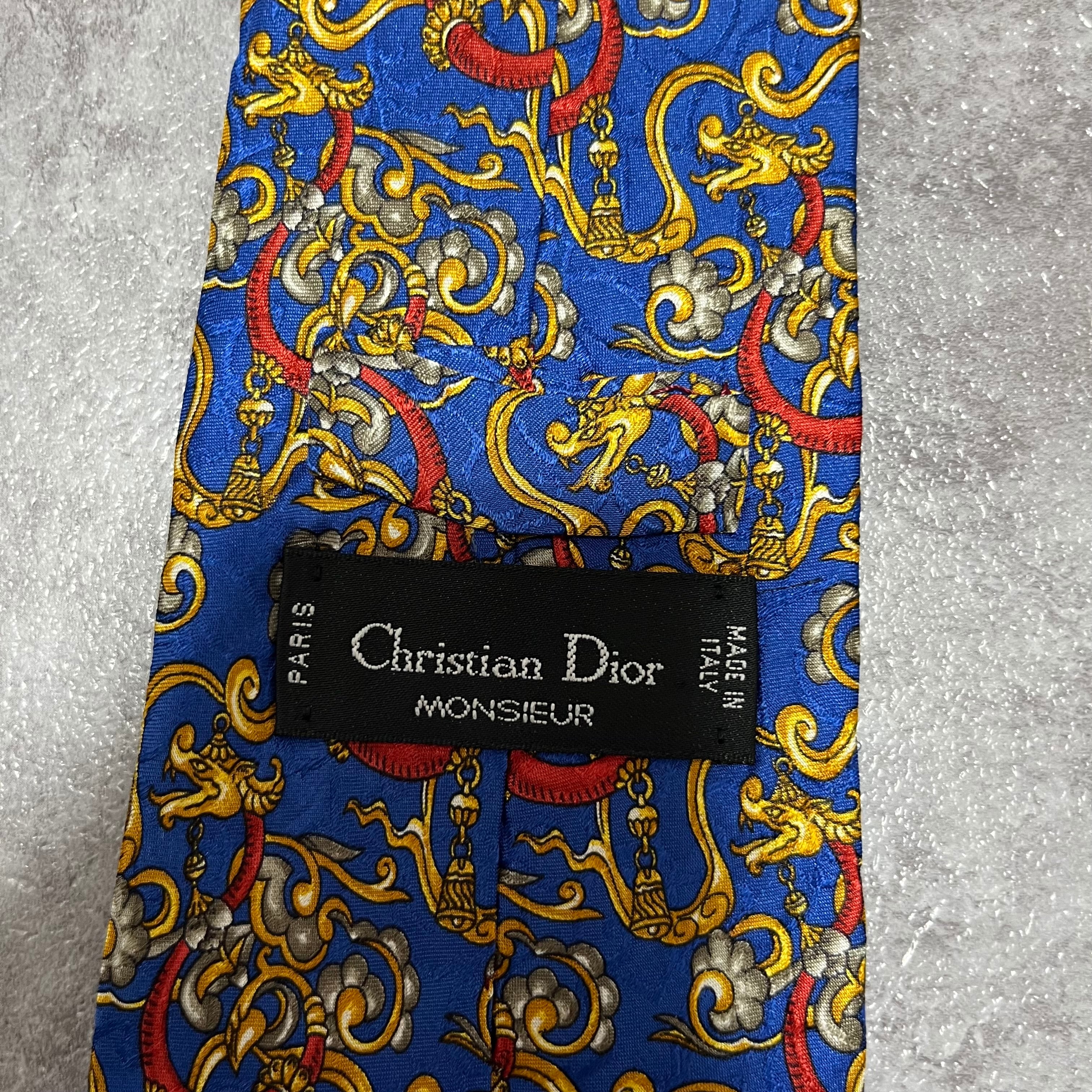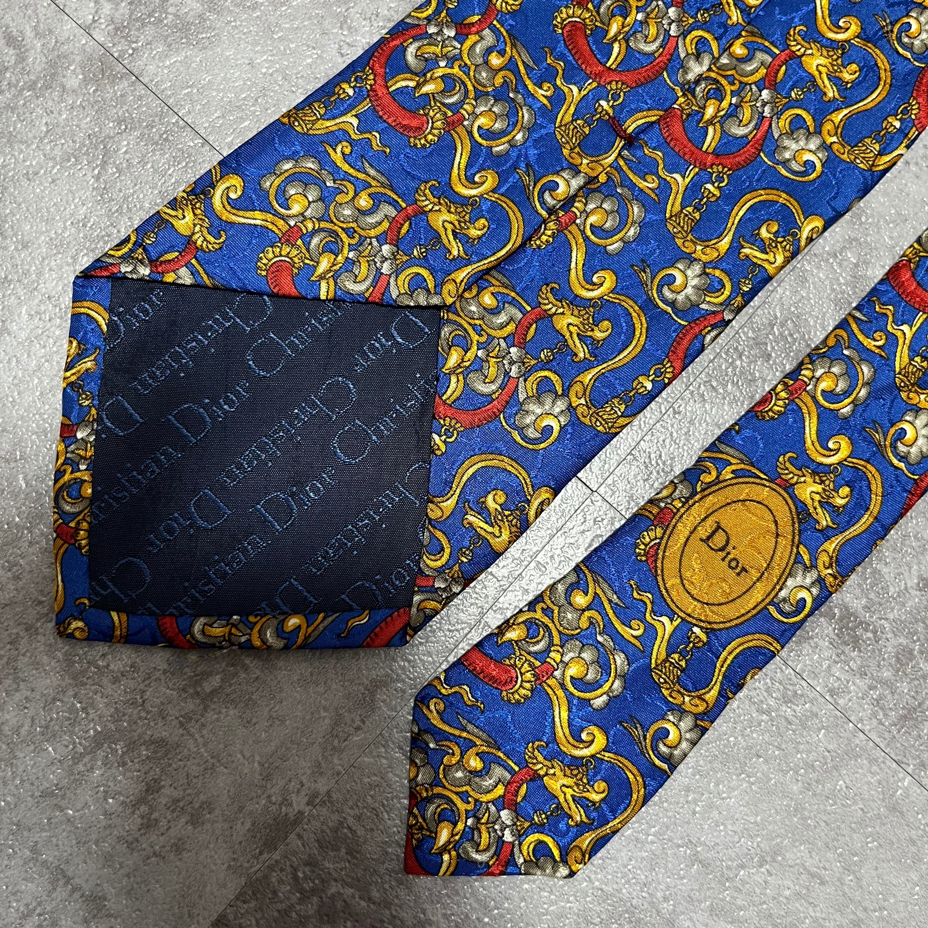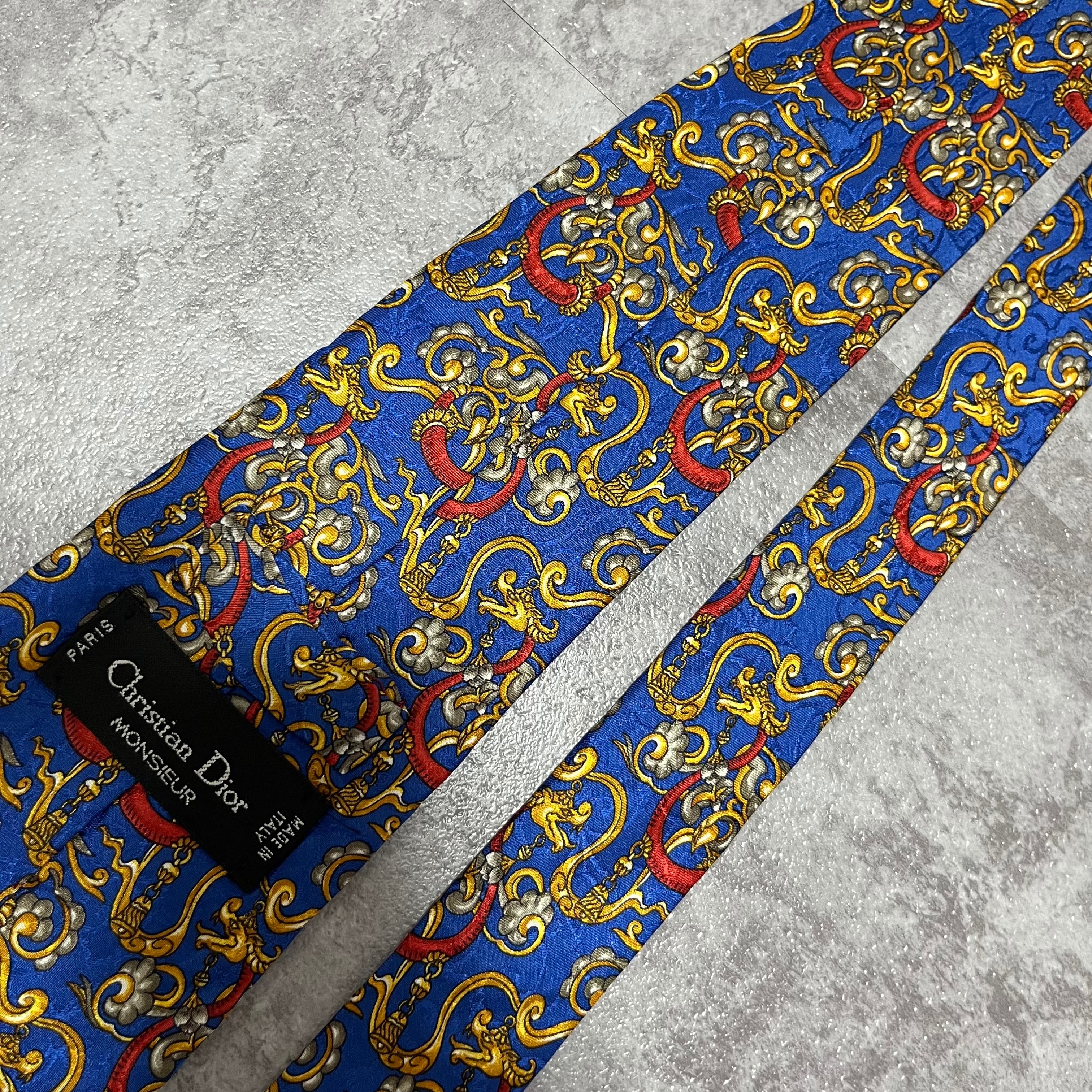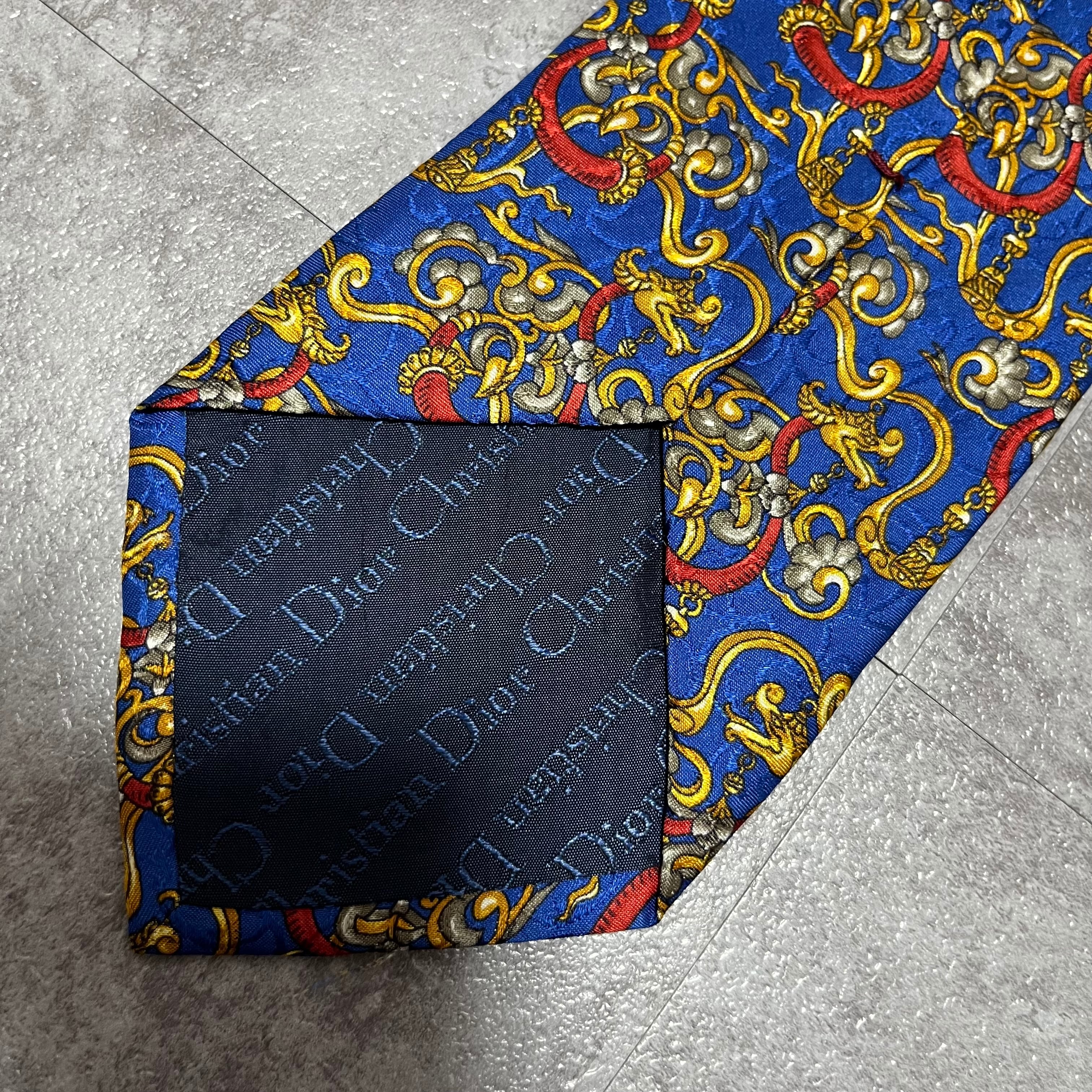 【Christian Dior】モチーフパターンネクタイ ブルー シャドウボタニカル