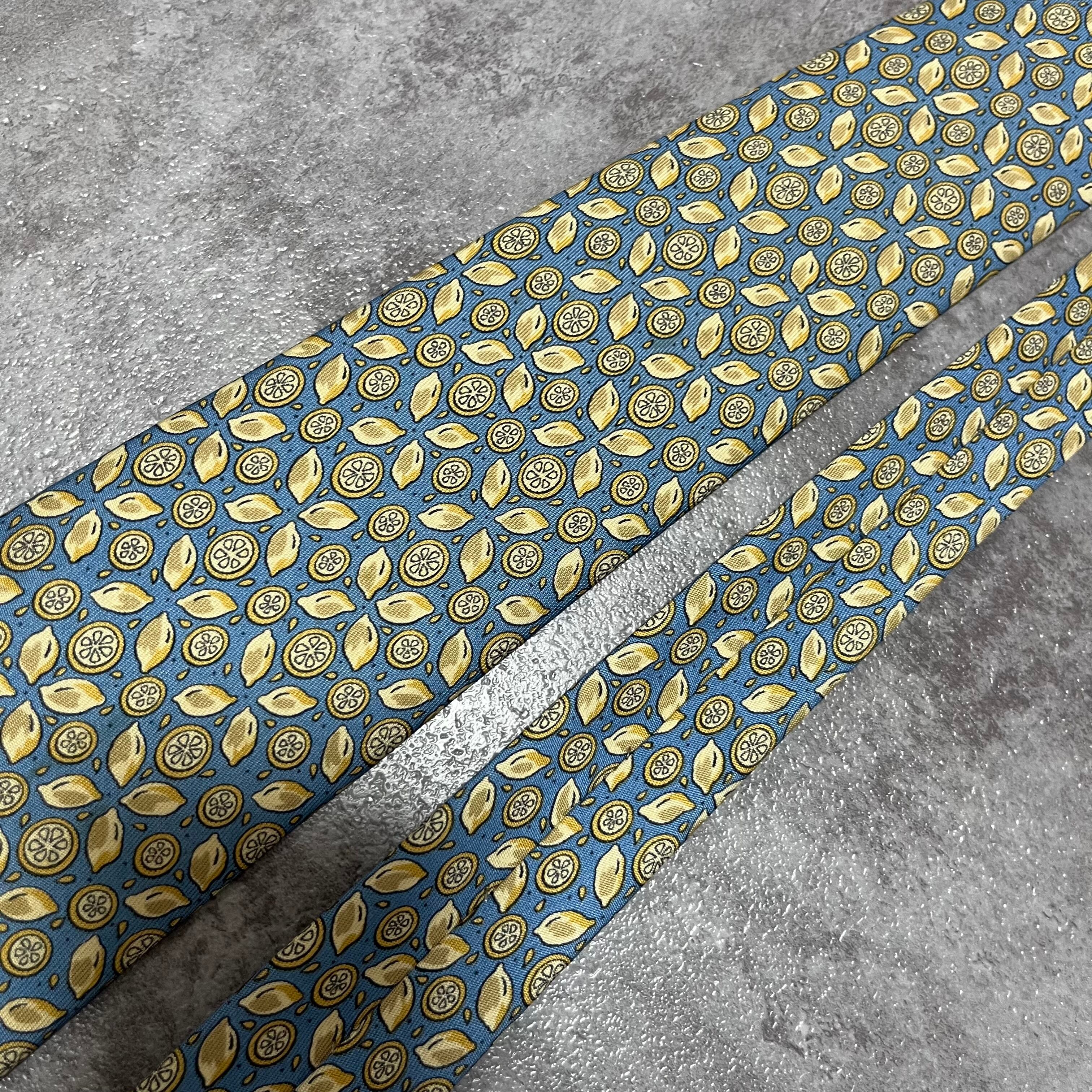【HERMES】レモン柄ネクタイ ブルー フルーツモチーフ