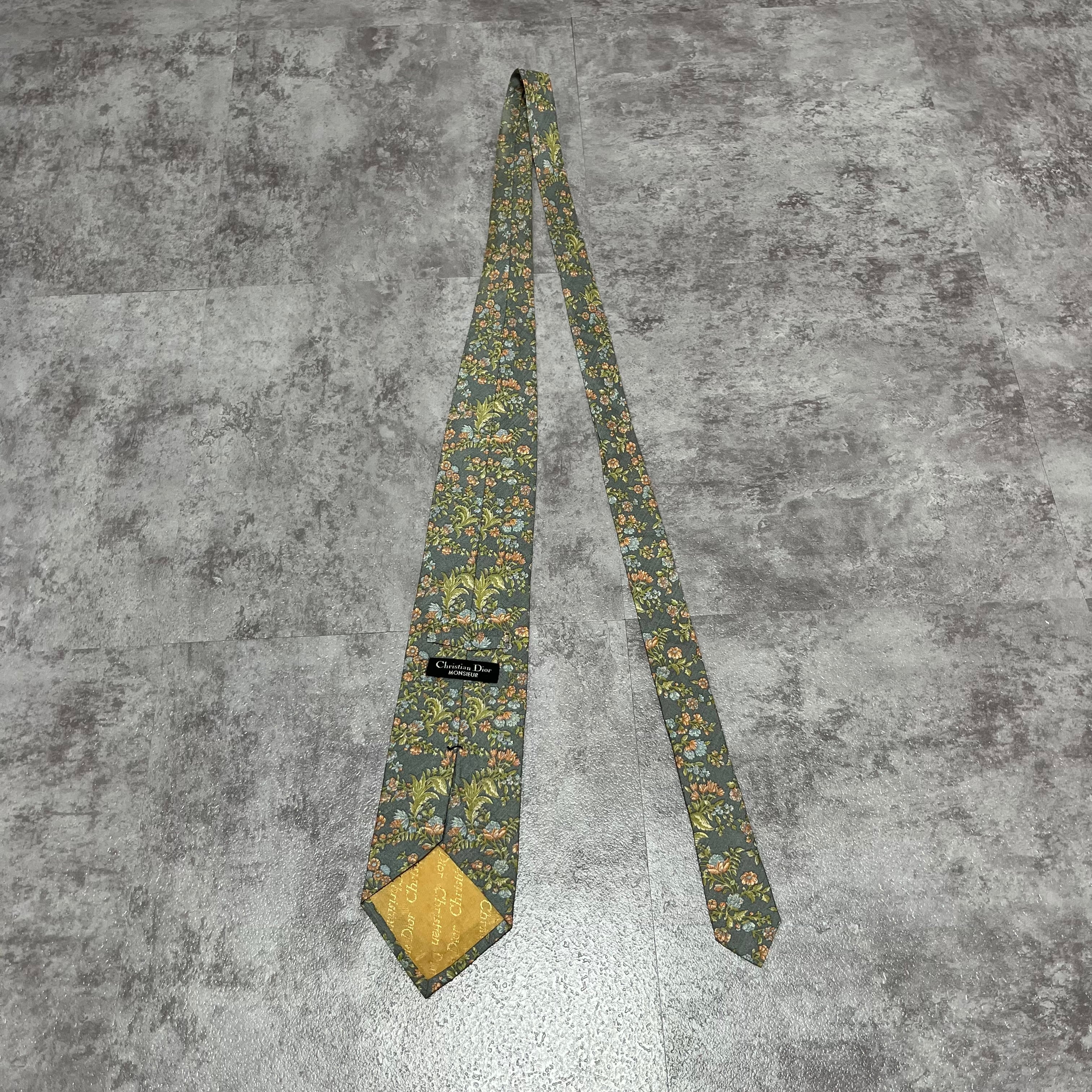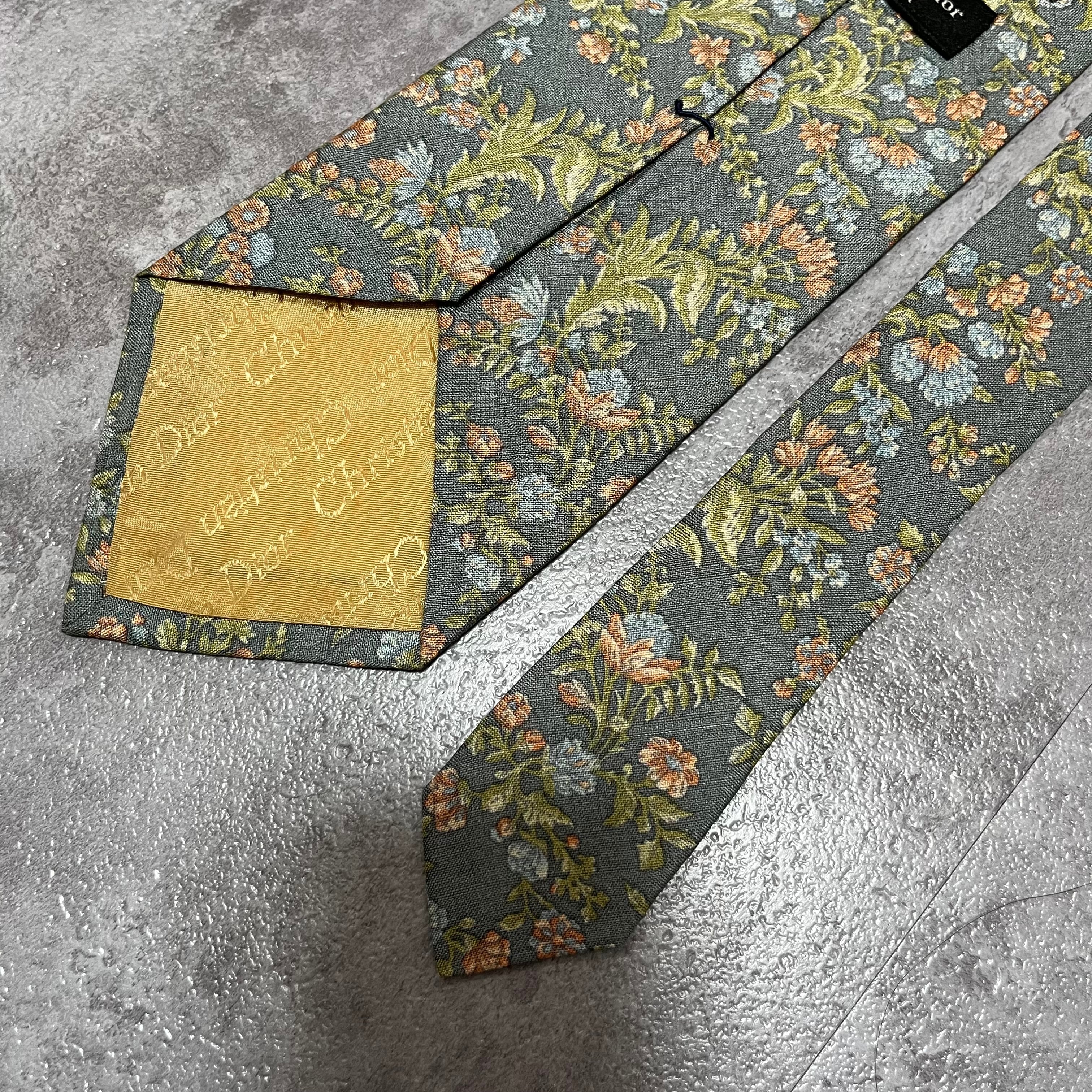 【Christian Dior】花柄ネクタイ ボタニカル グレー ライトブルー