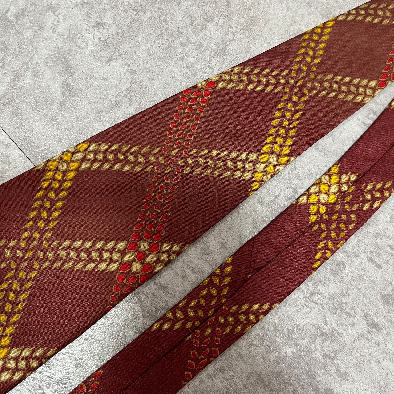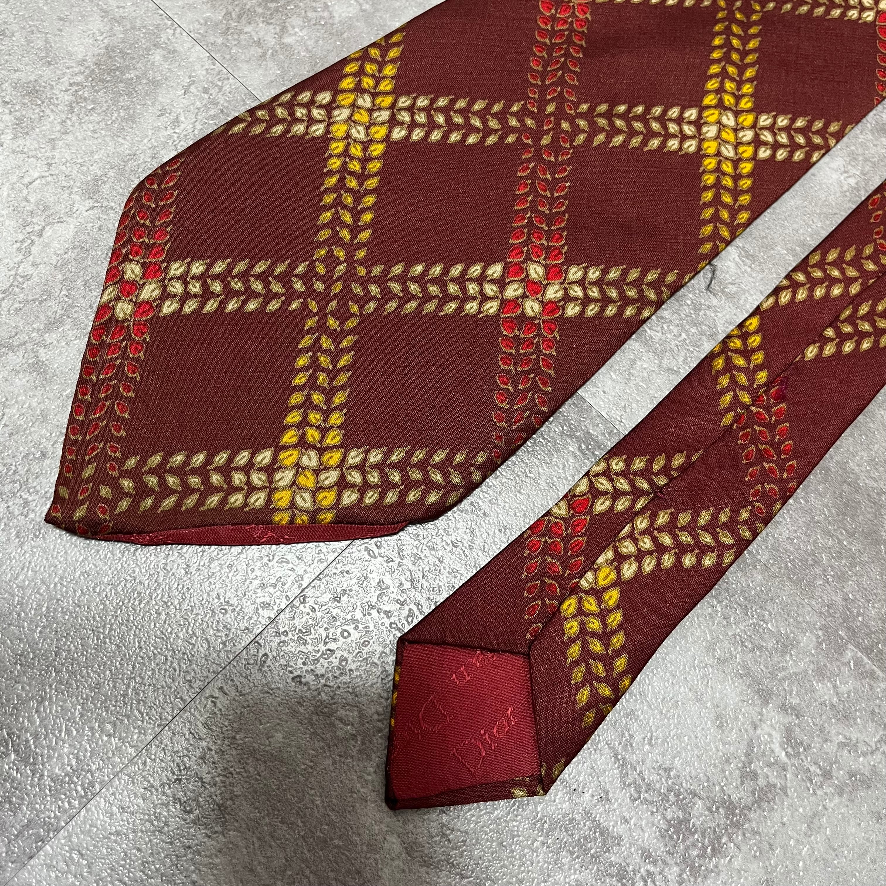 【Christian Dior】ボタニカルチェックネクタイ レッド 葉っぱ リーフモチーフ