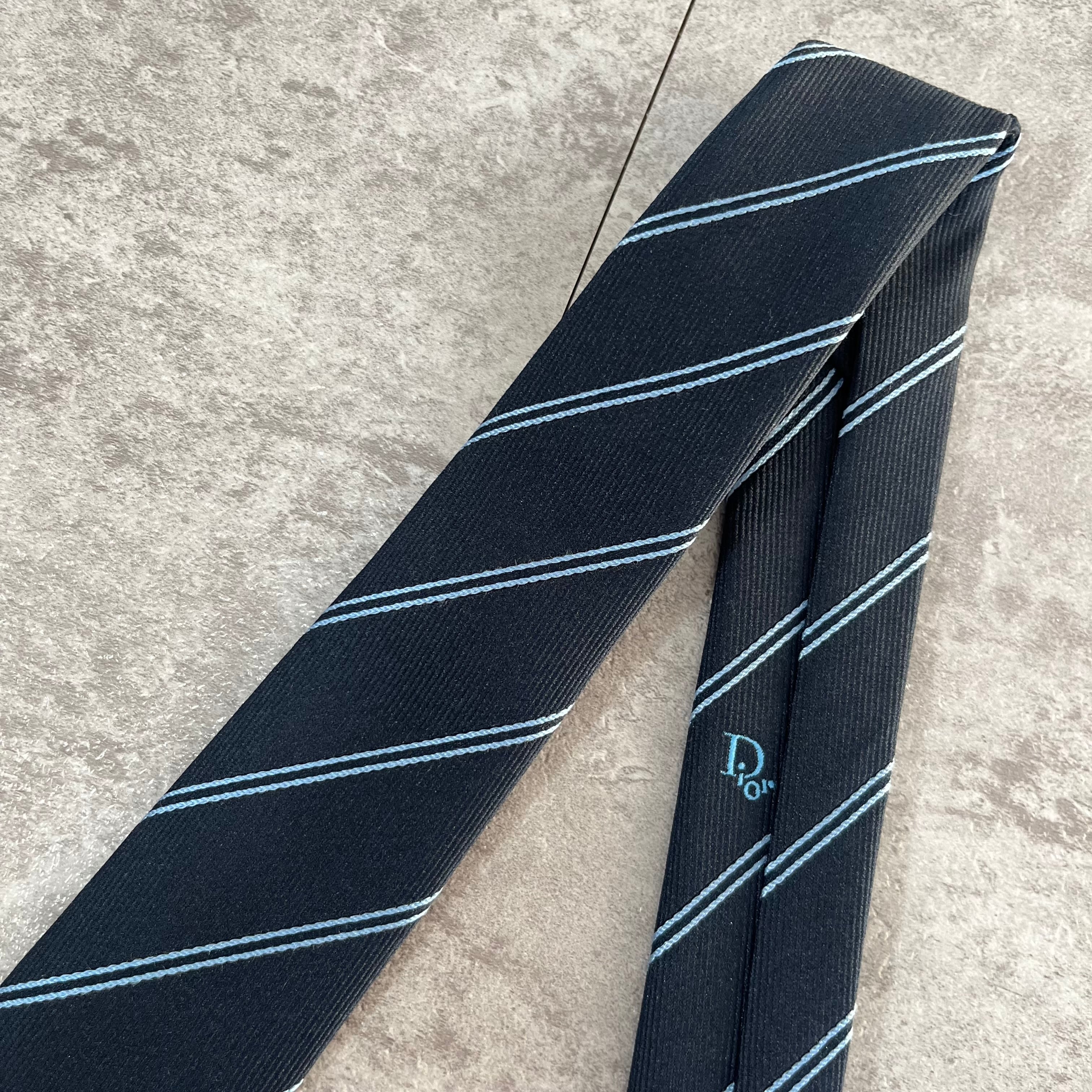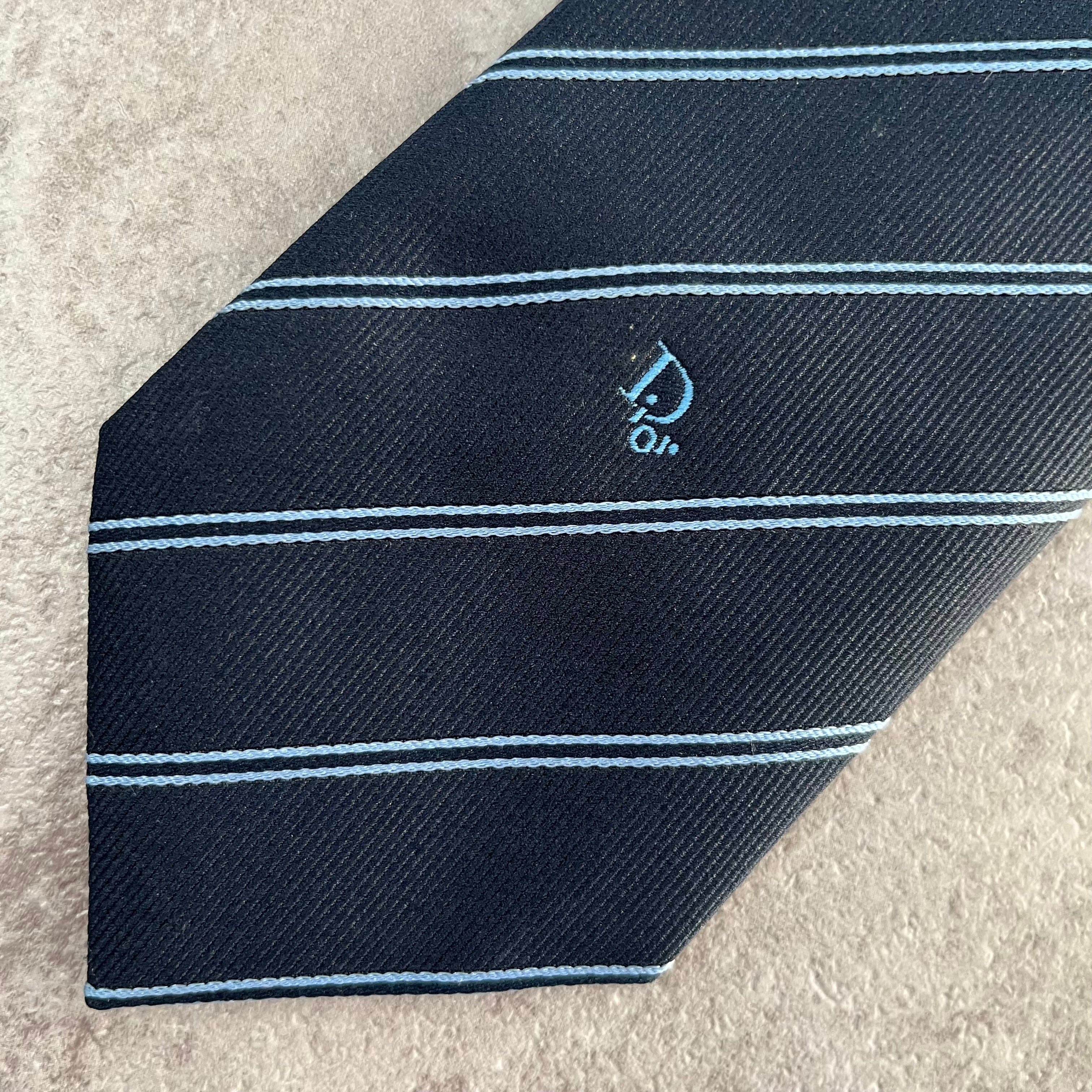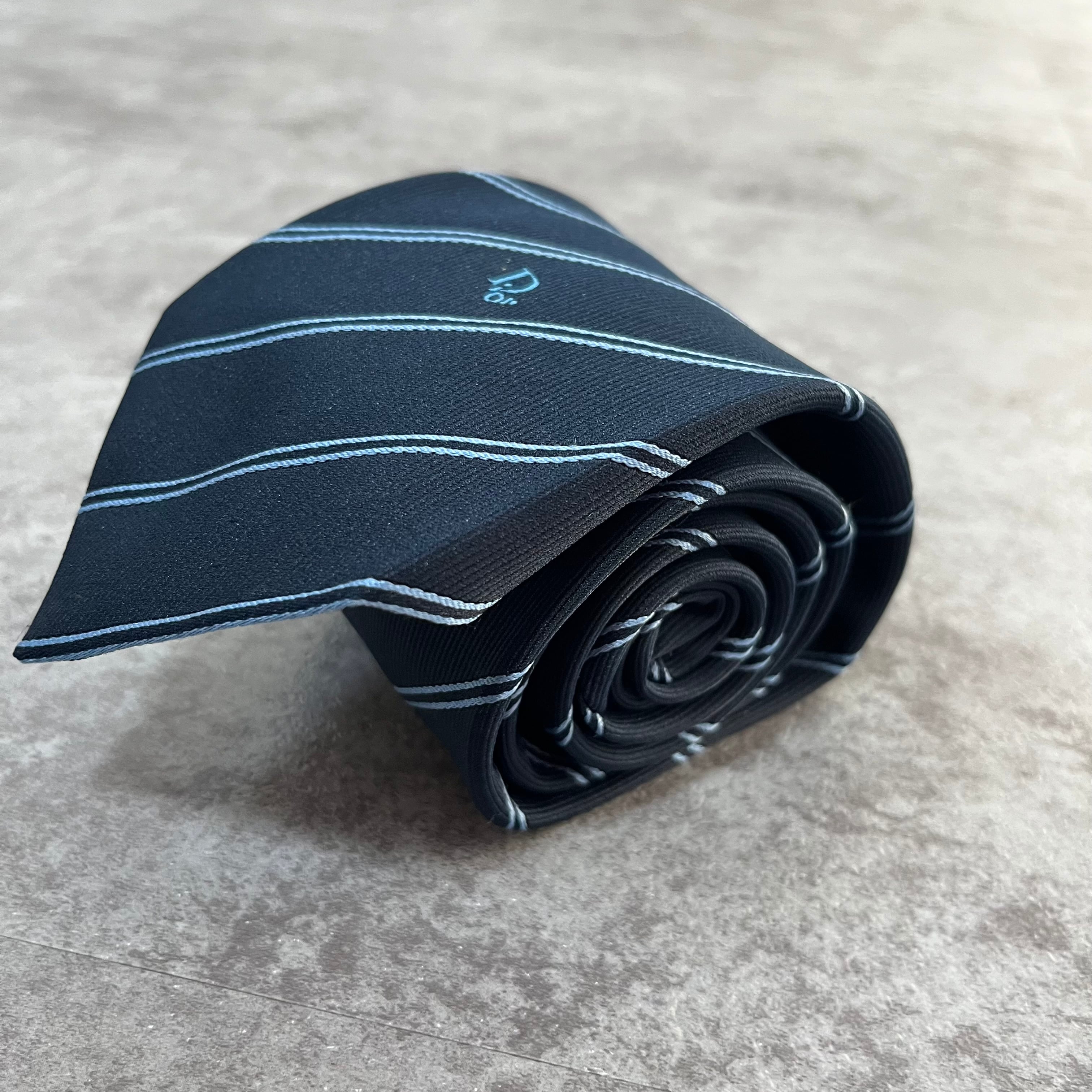 【Christian Dior】レジメンタルストライプネクタイ ネイビー ロゴ入り