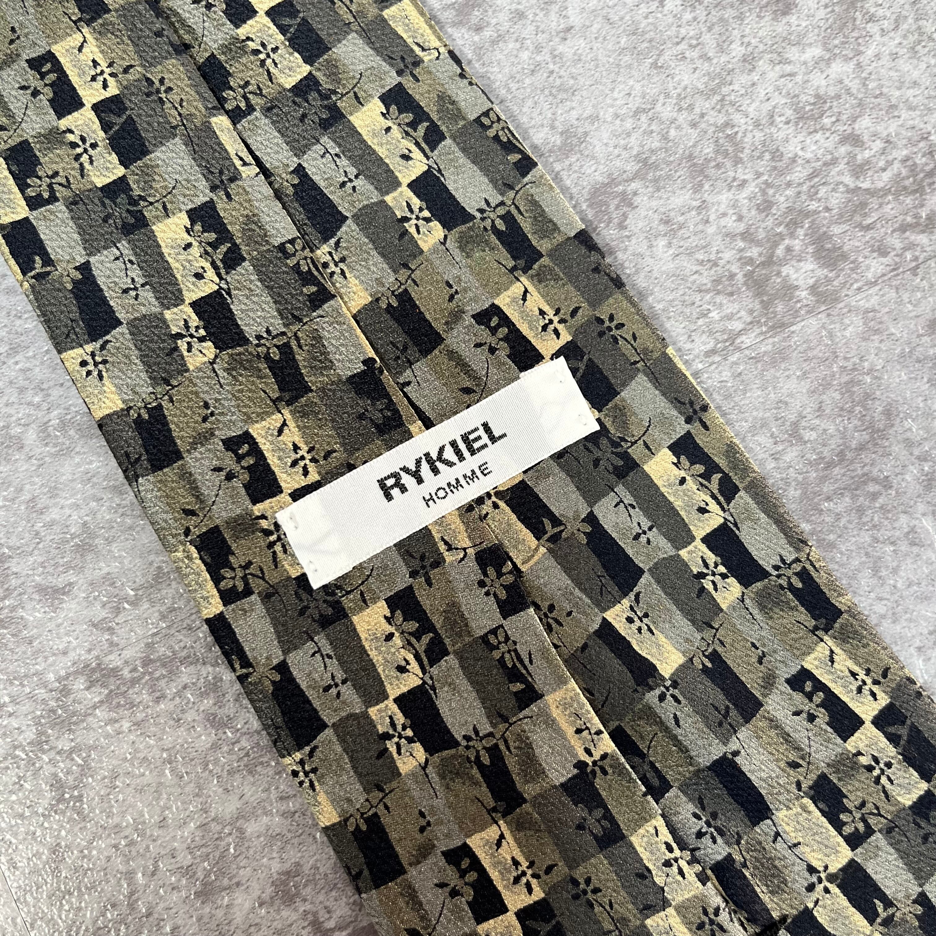 【RYKIEL HOMME】ボタニカルパネルパターンネクタイ グレー 植物柄
