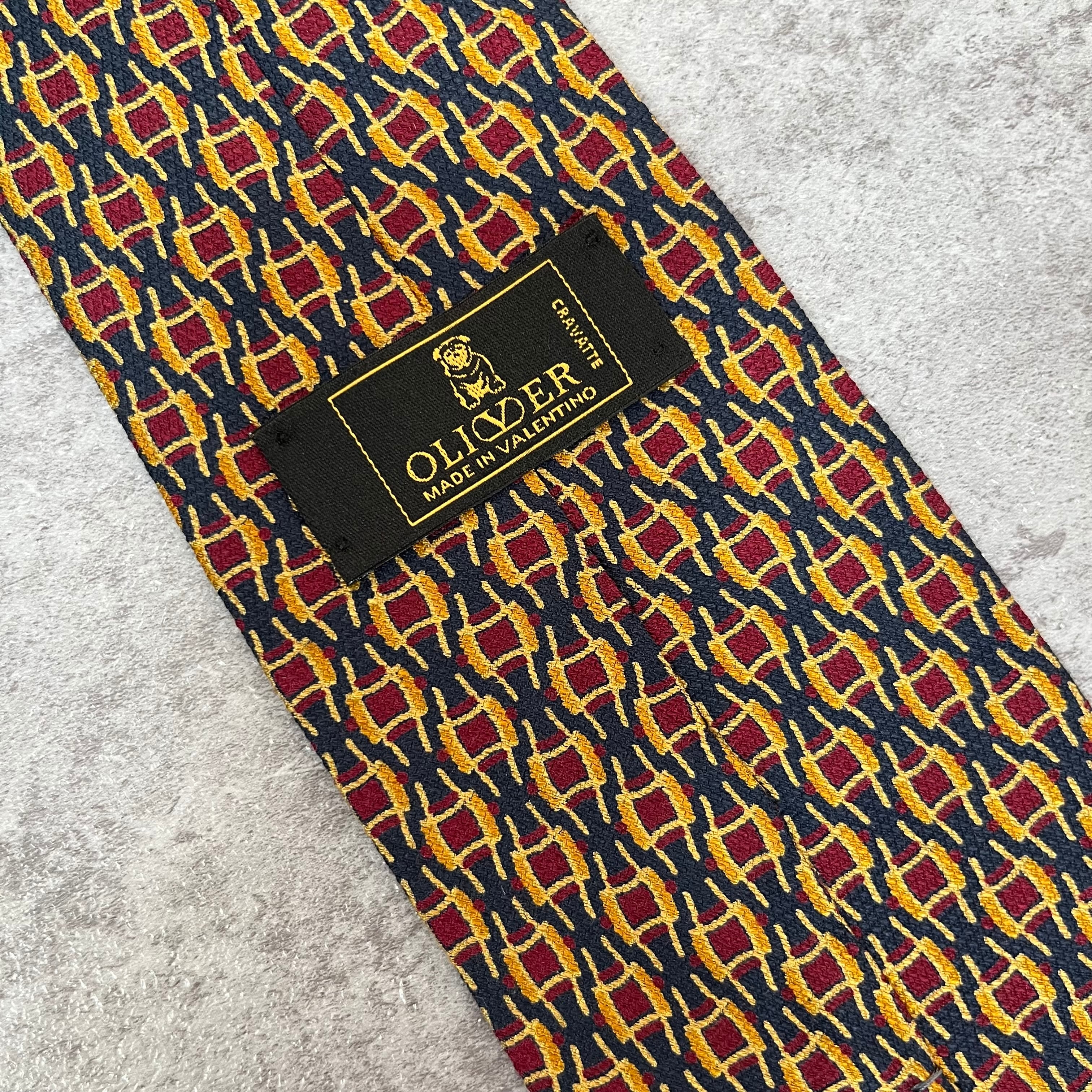 【VALENTINO】モチーフパターンネクタイ バイカラー ネイビー イエロー