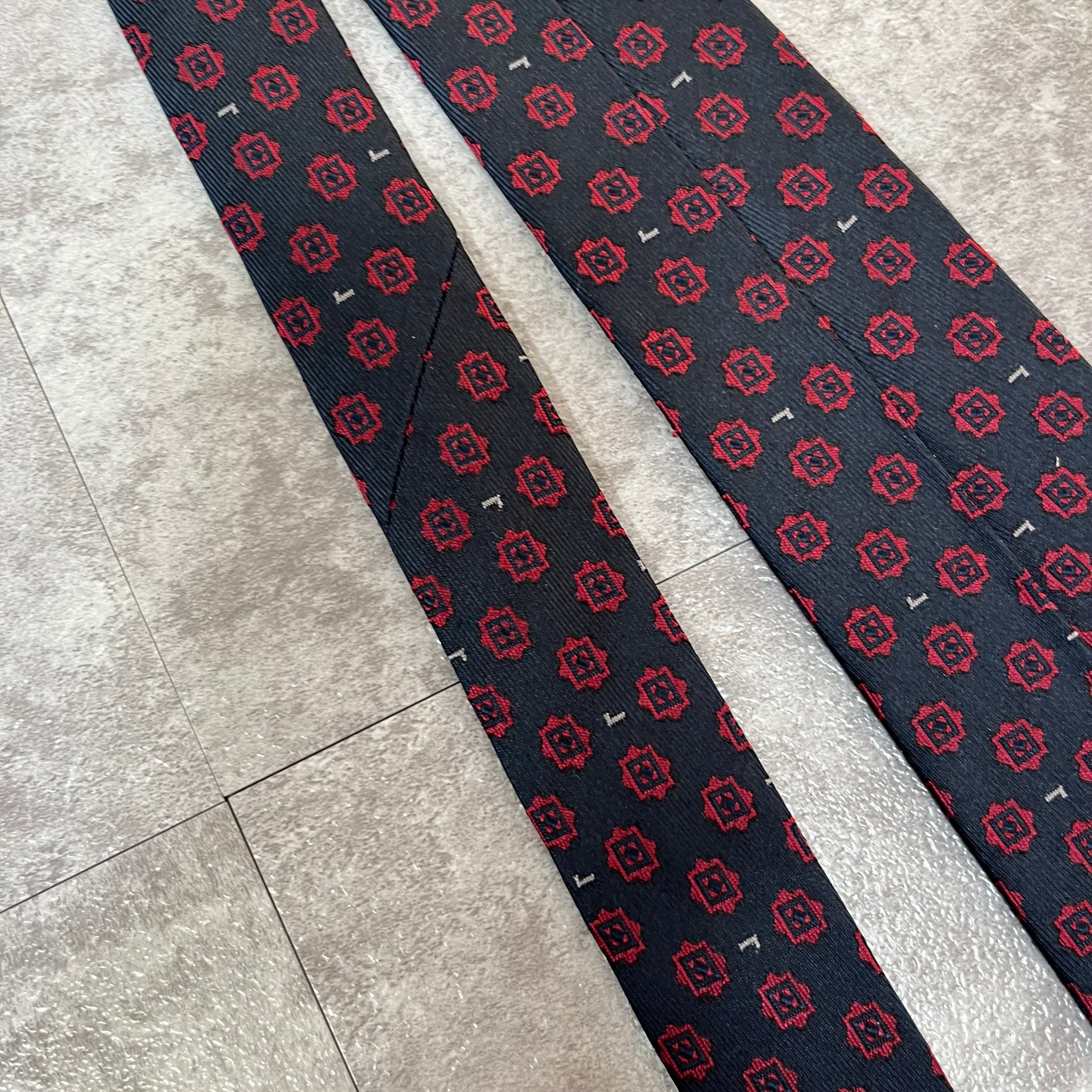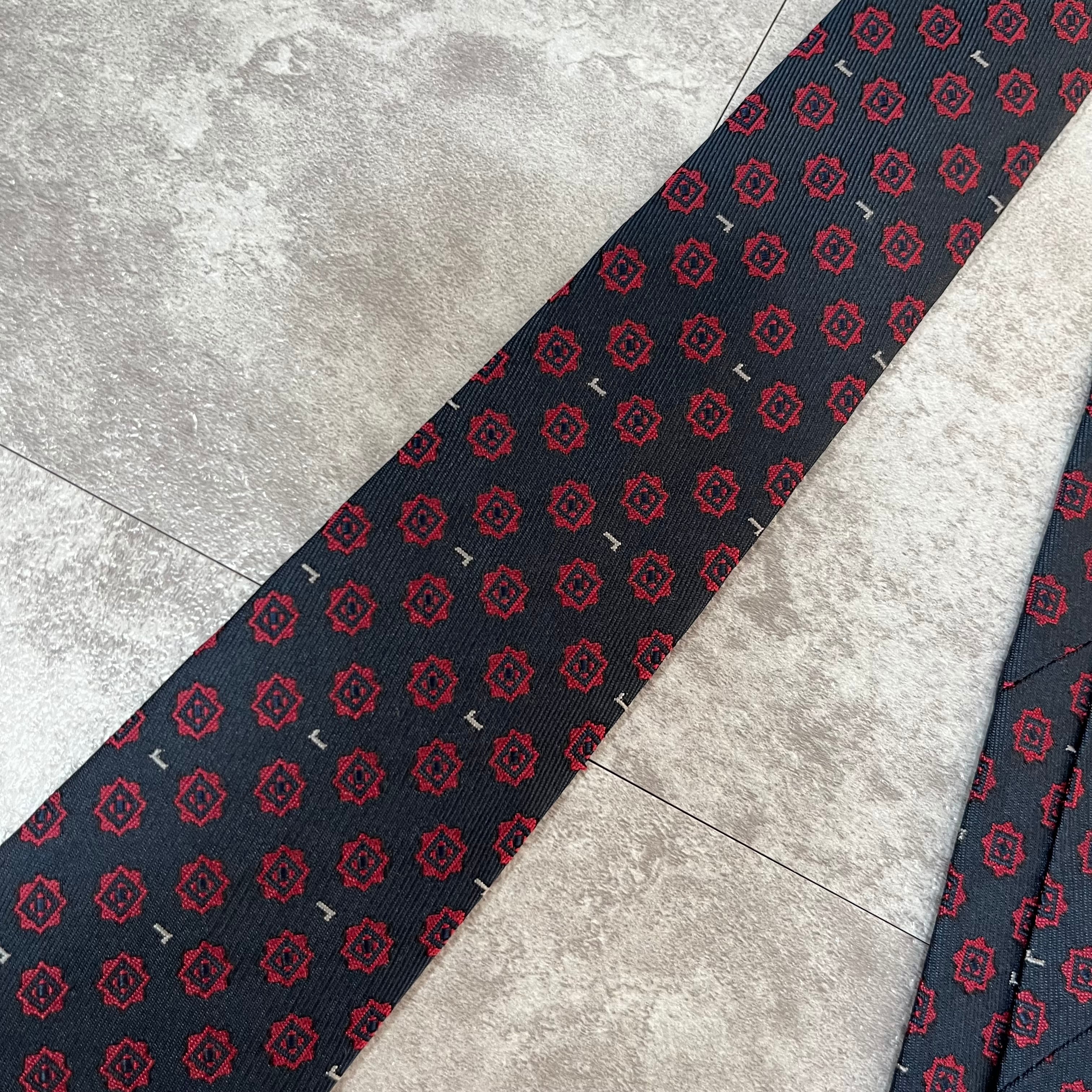 【LANCEL】小紋柄ネクタイ ネイビー バイカラー レッド
