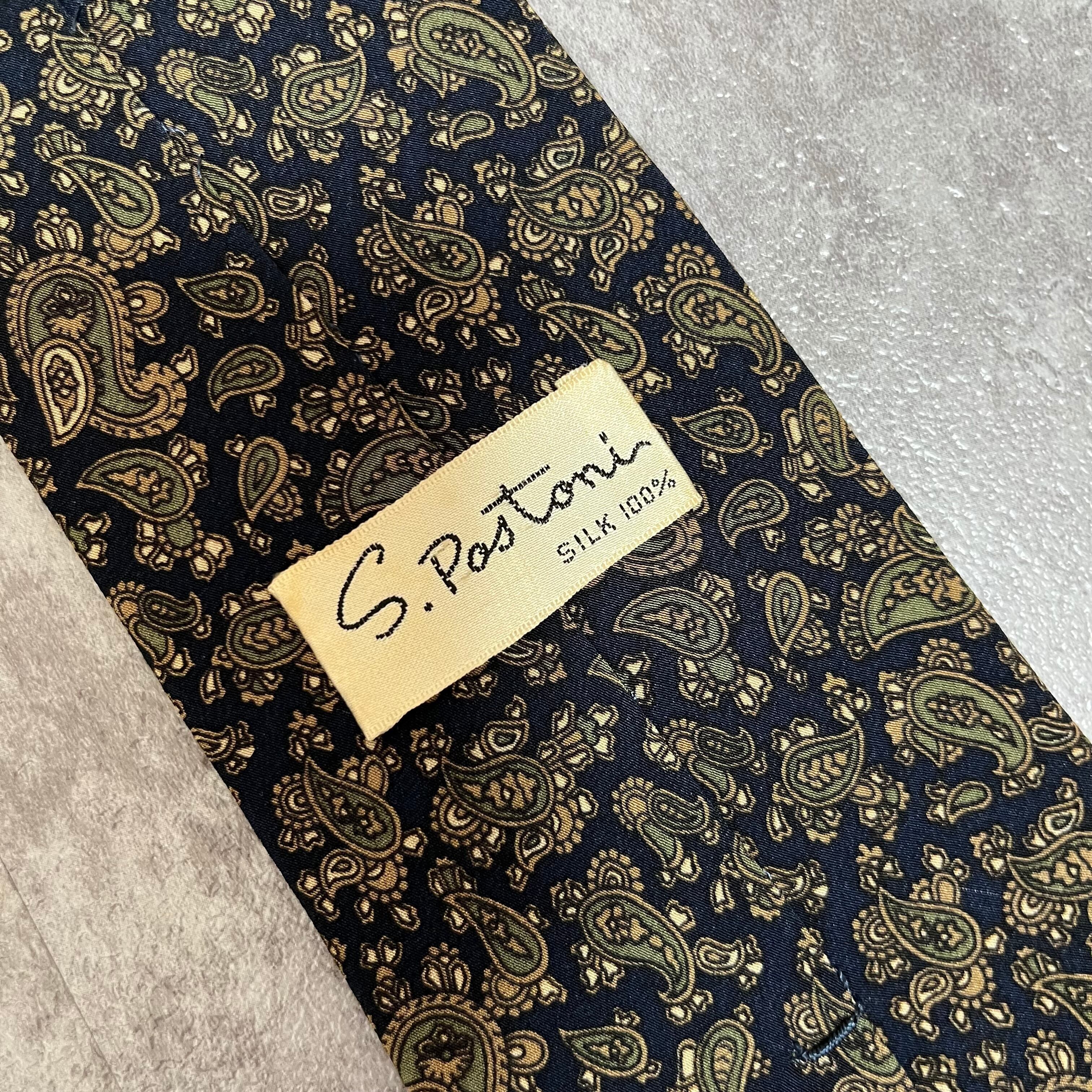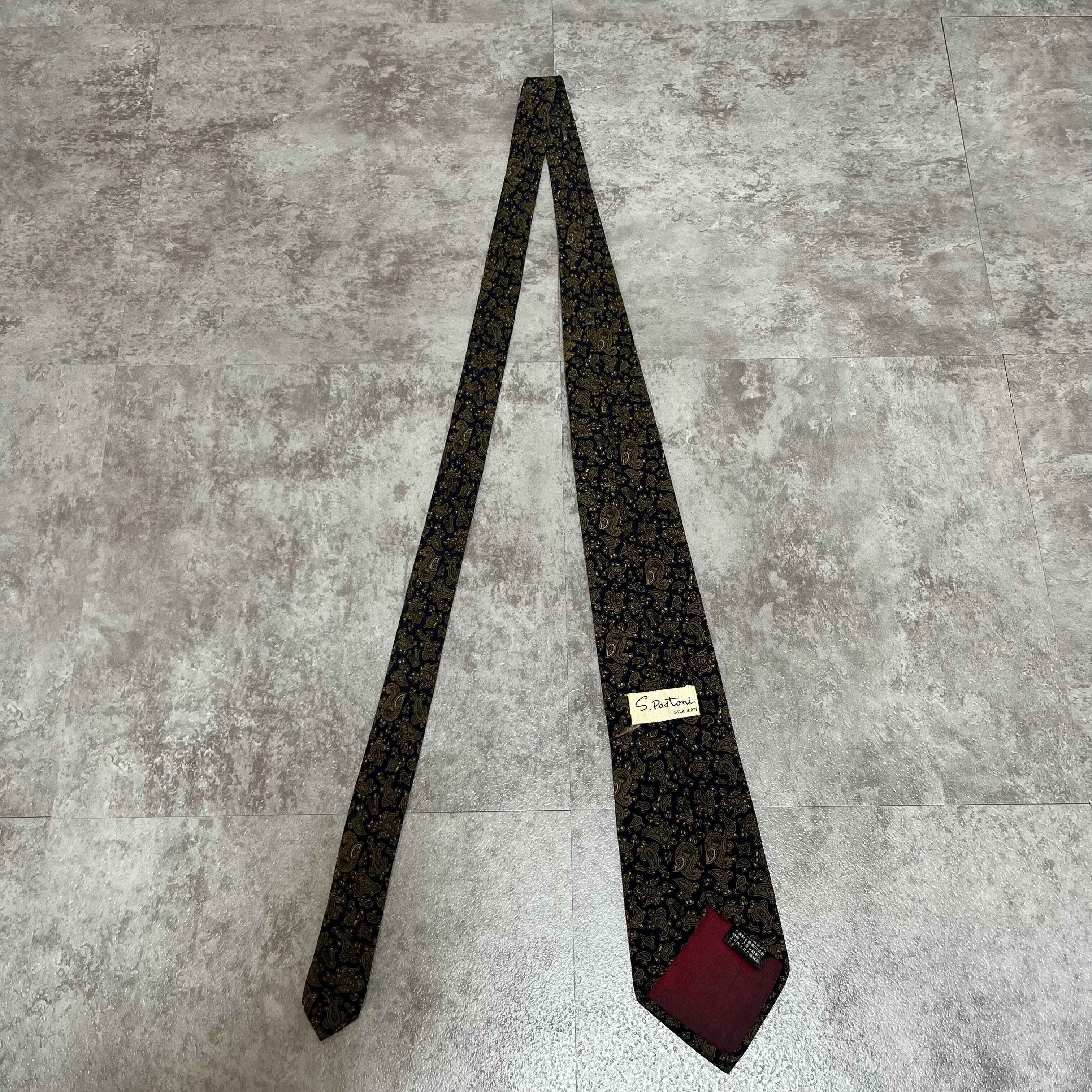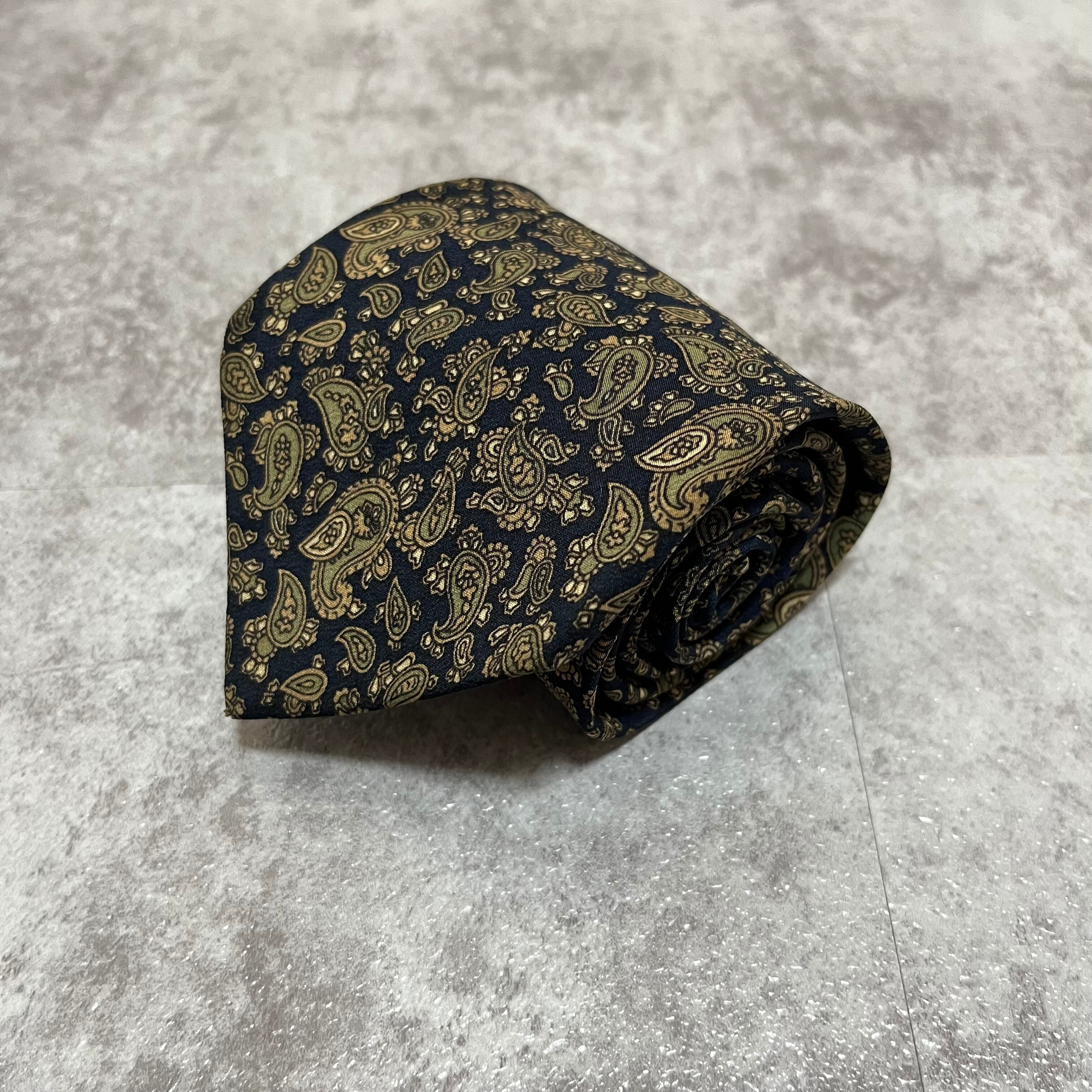 【ペイズリー】小さめペイズリー柄ネクタイ ネイビー ボタニカル