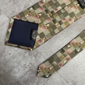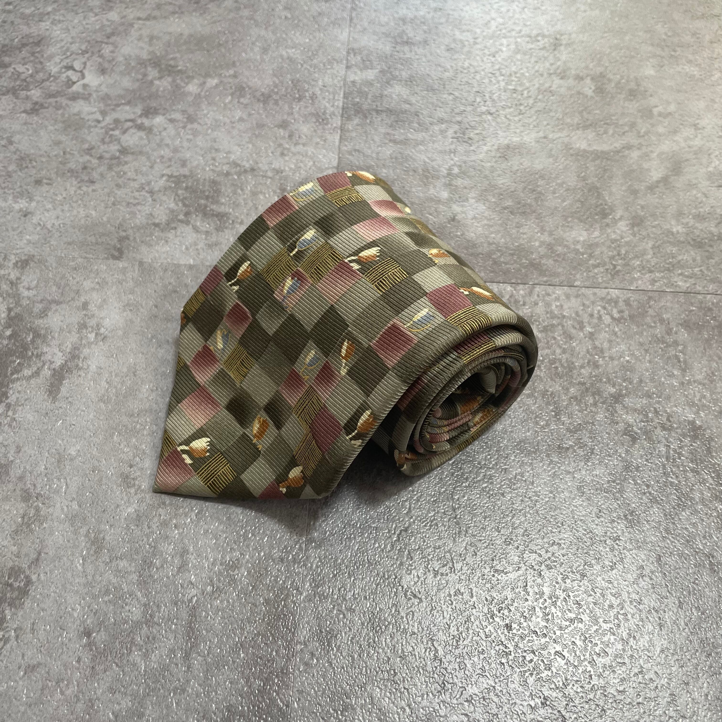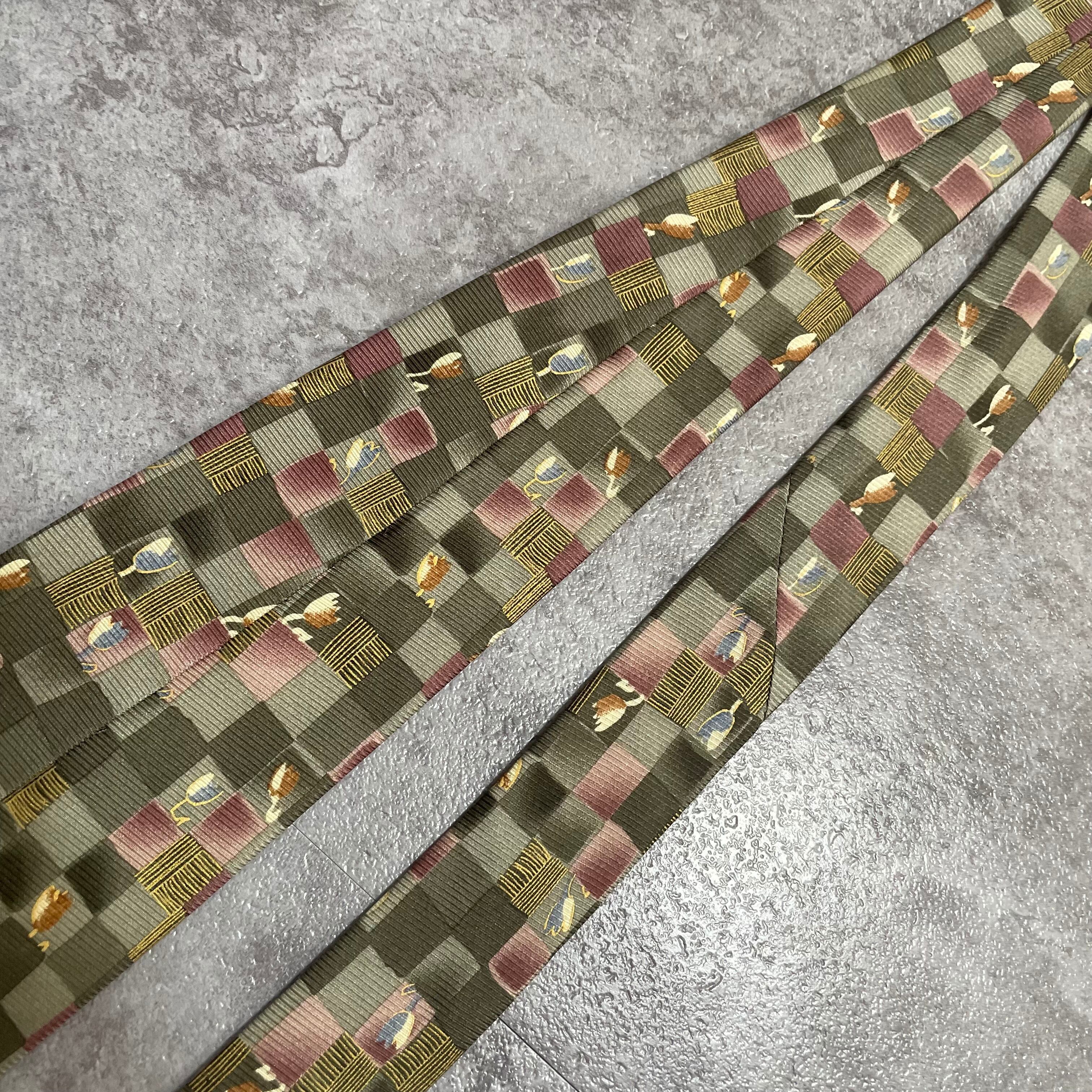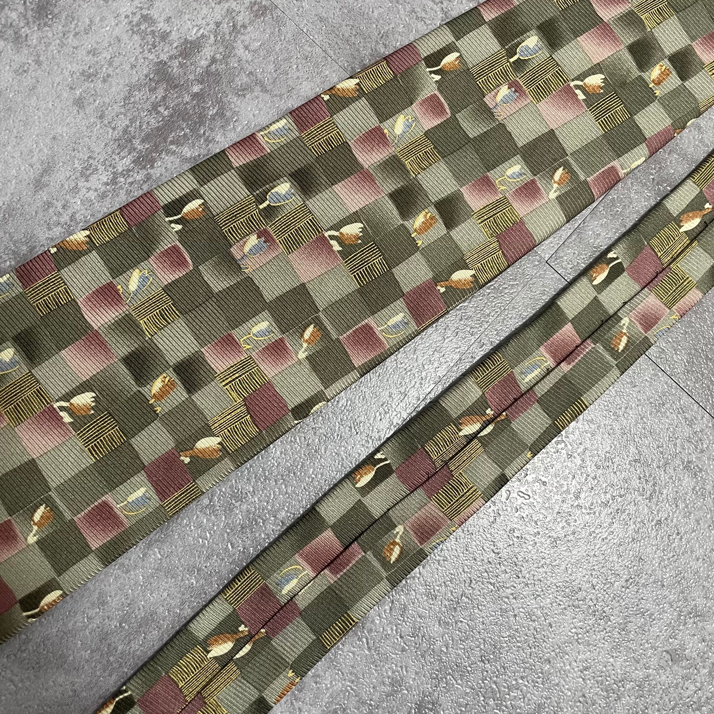 【花柄】ブロックチェック花柄ネクタイ グリーン チューリップ ピンク 植物柄 ボタニカル