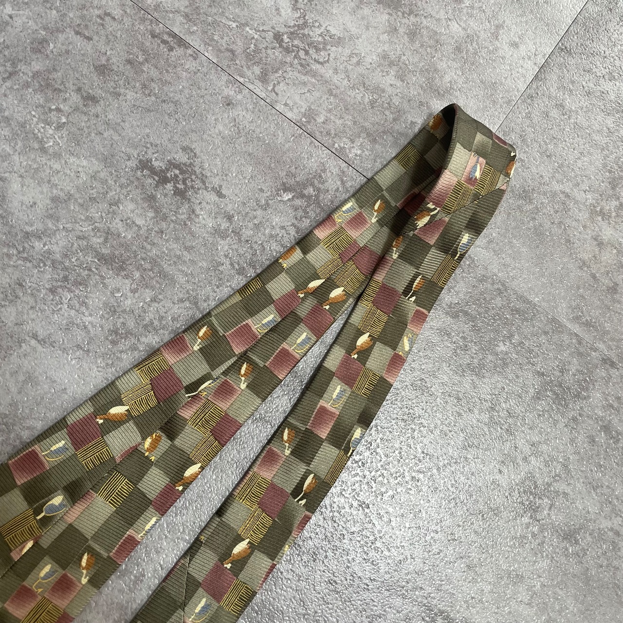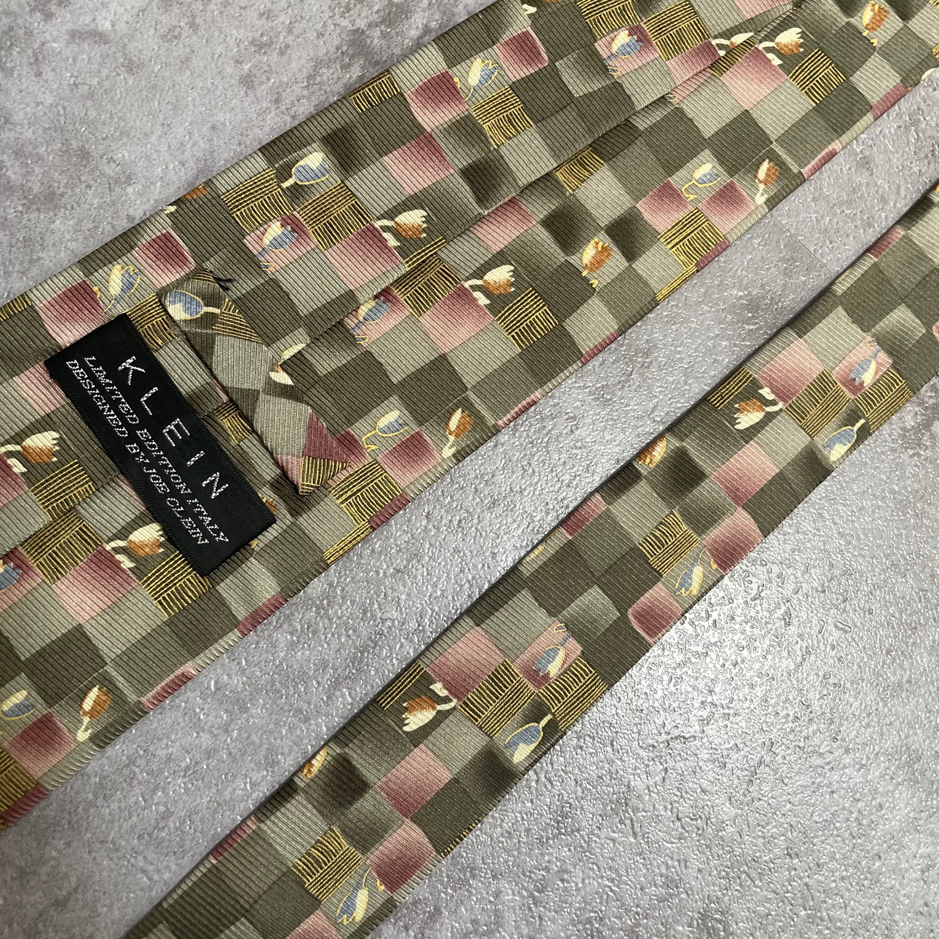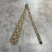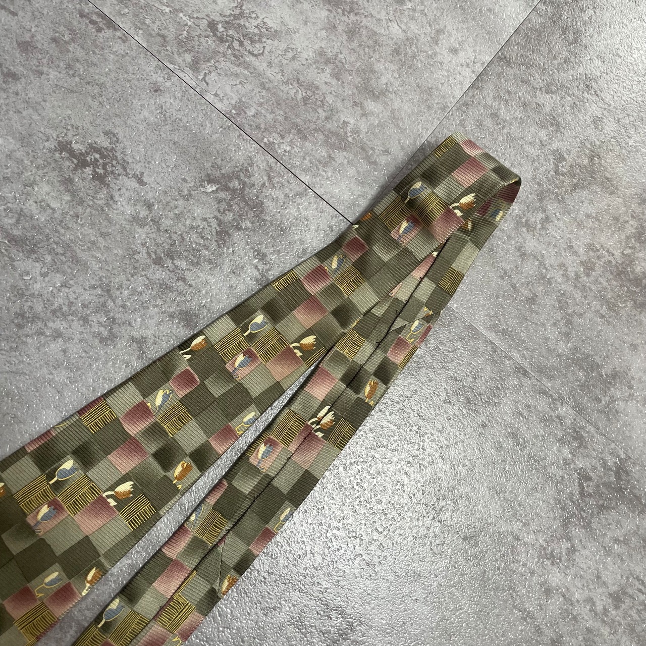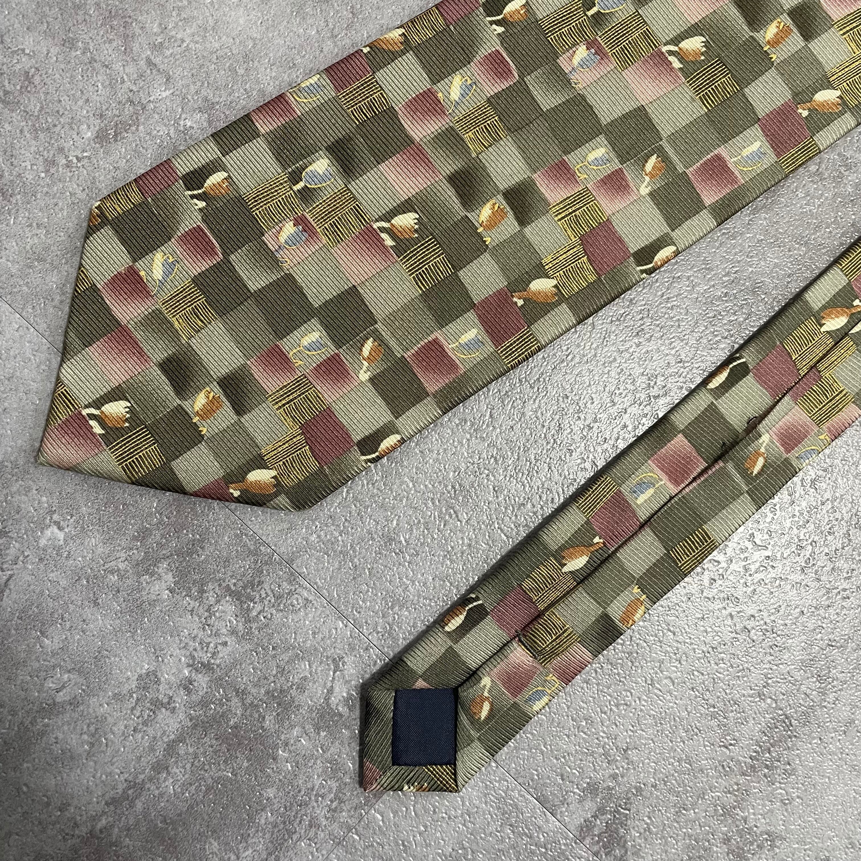 【花柄】ブロックチェック花柄ネクタイ グリーン チューリップ ピンク 植物柄 ボタニカル