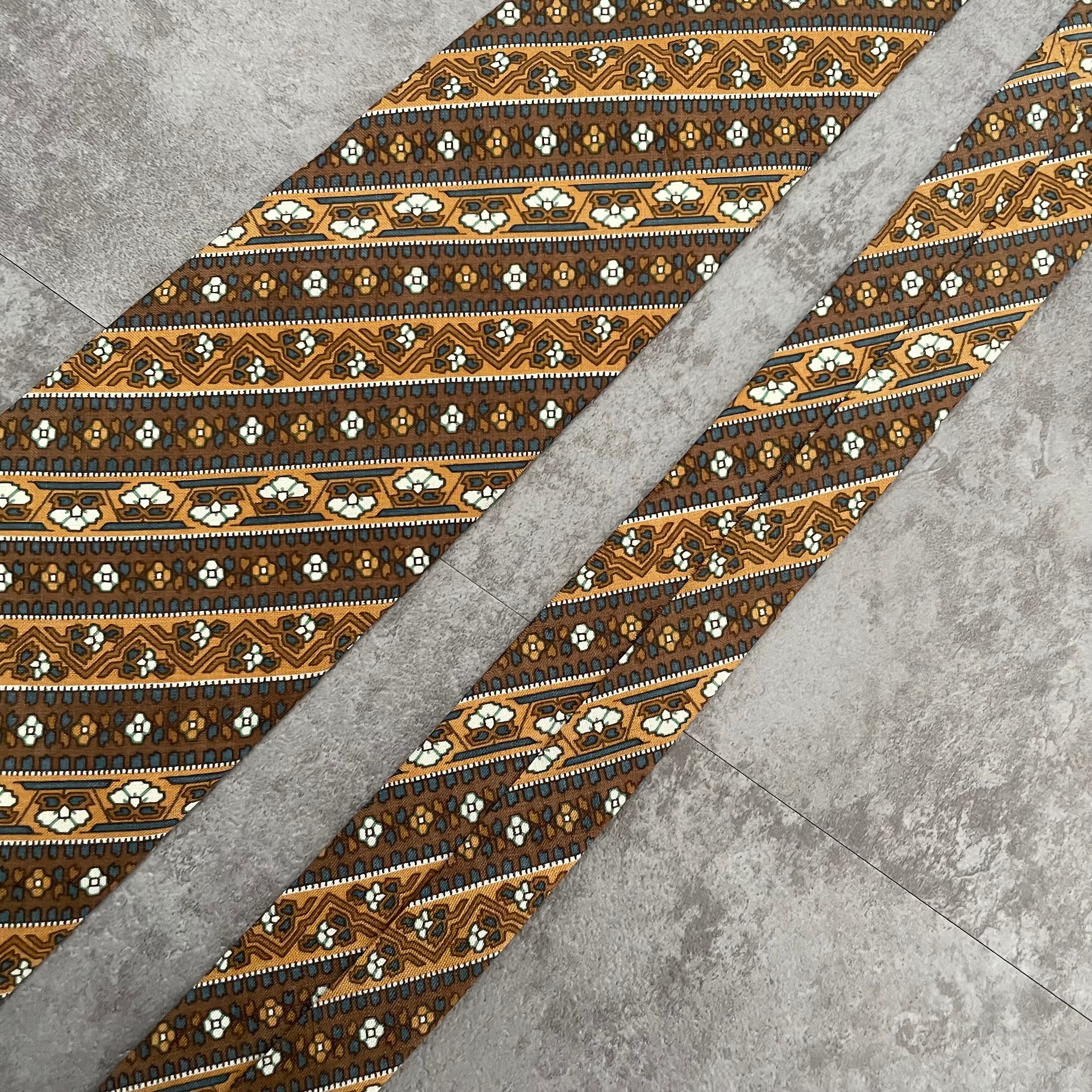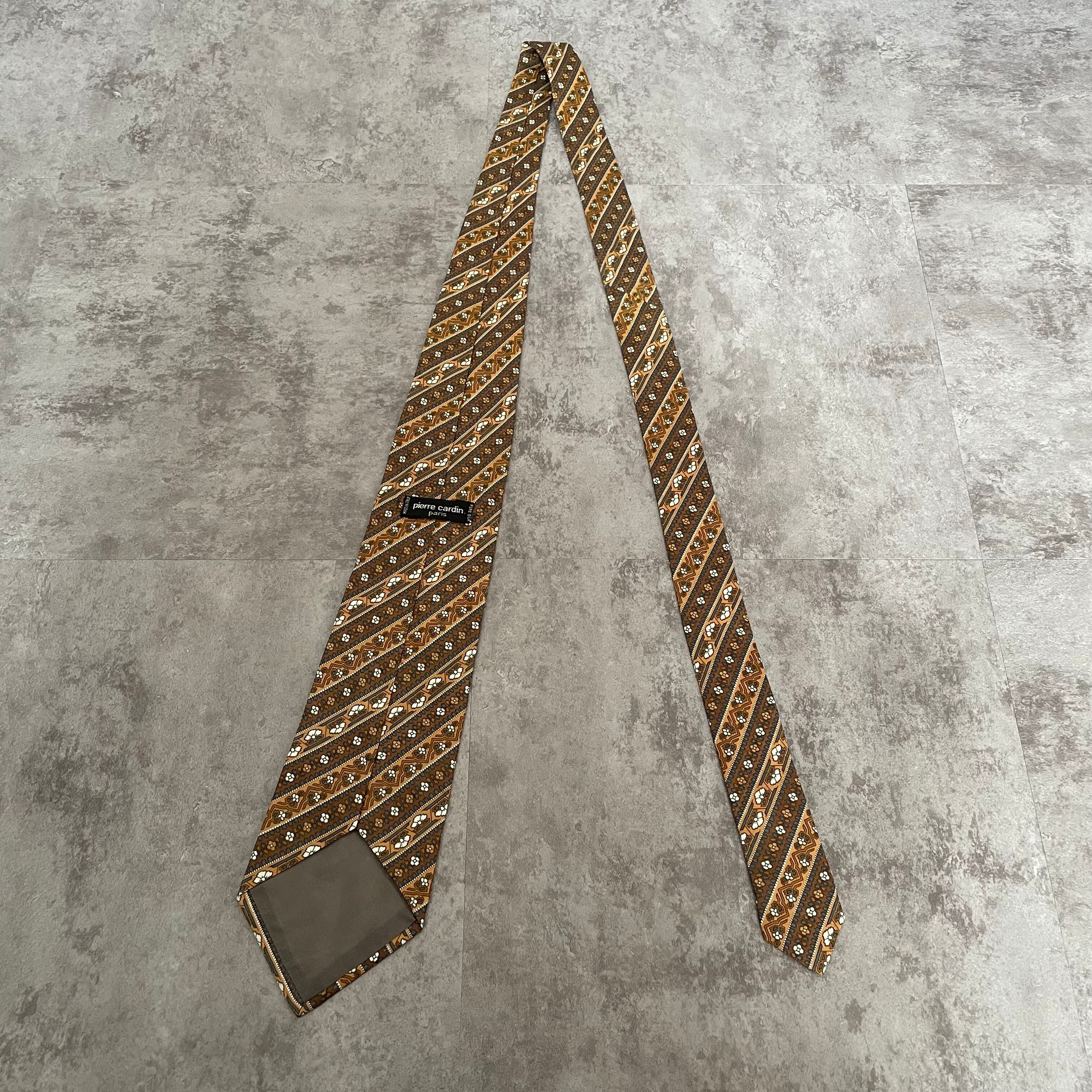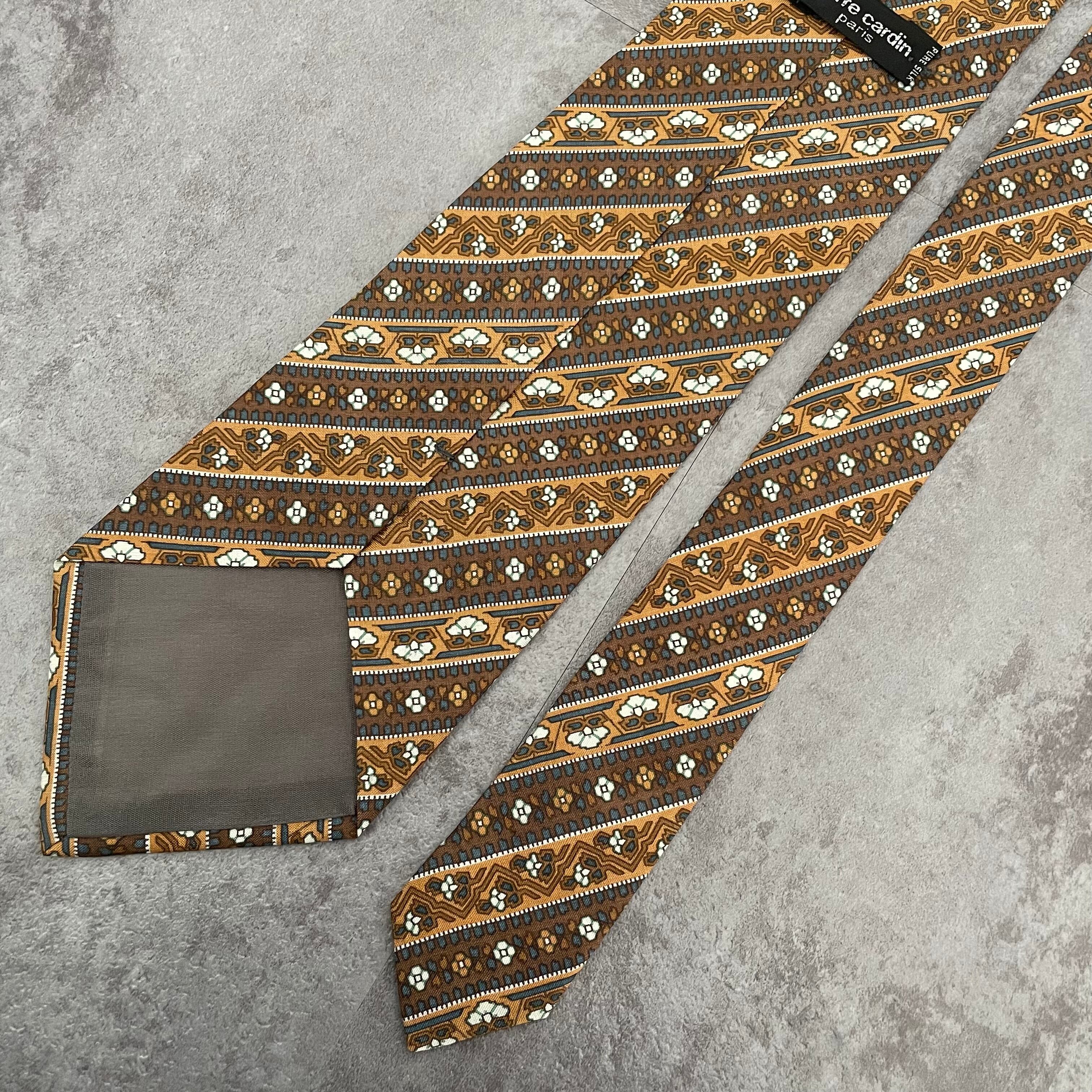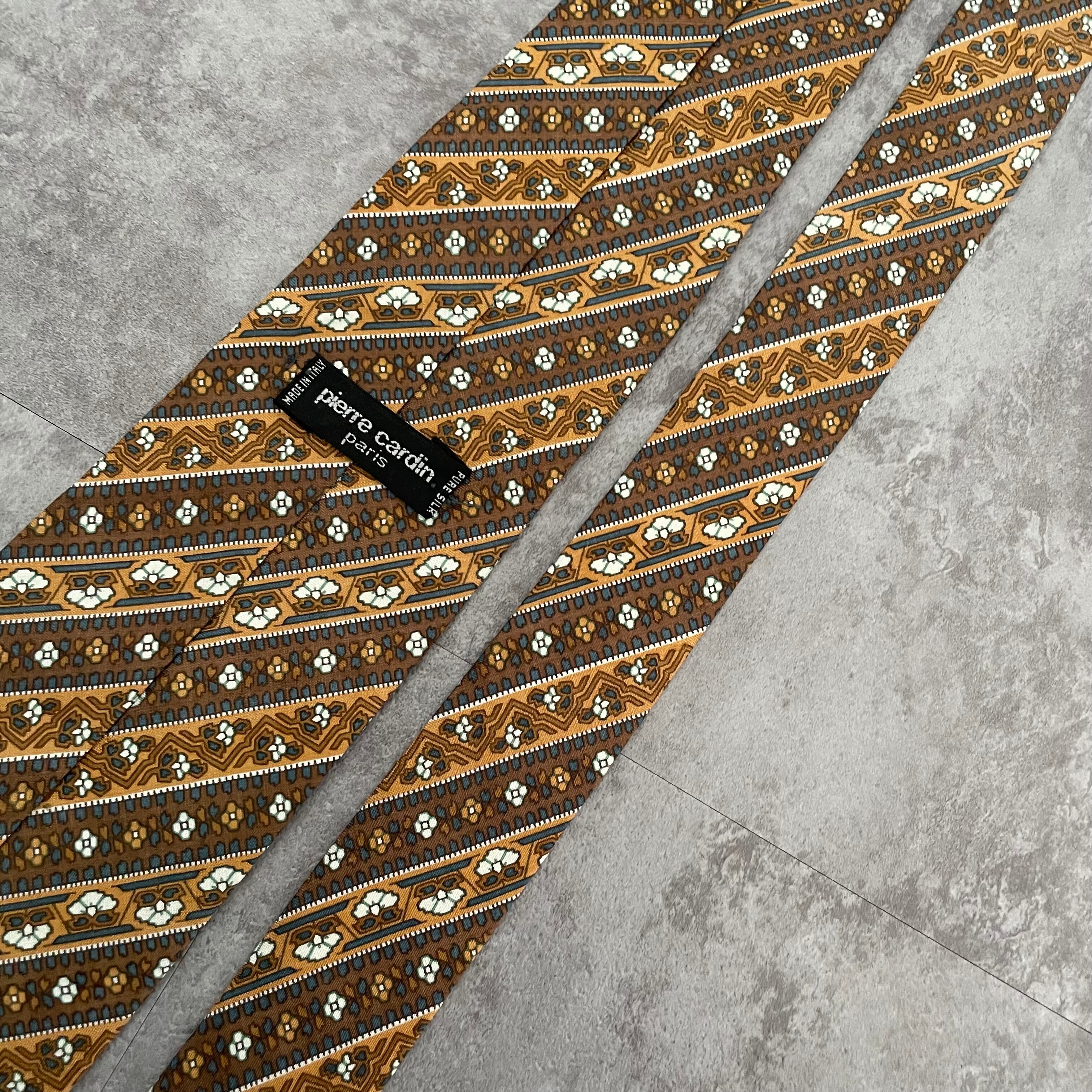 【pierre cardin】花柄×ストライプ バイカラー ボタニカル 植物柄 小紋柄 ブラウン