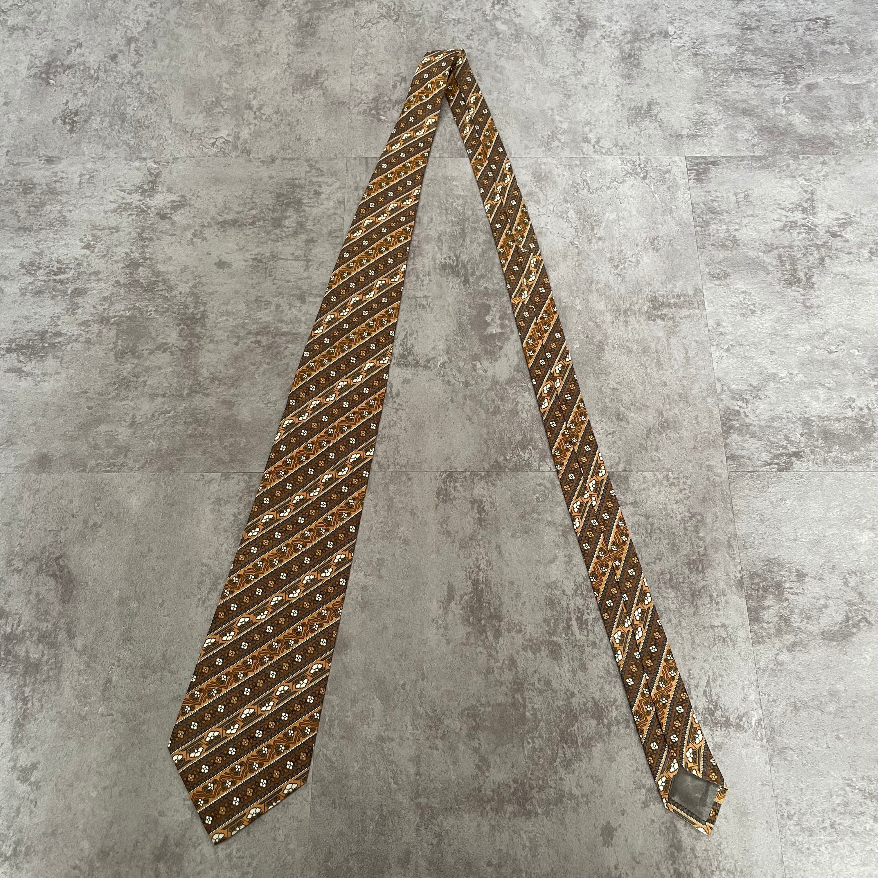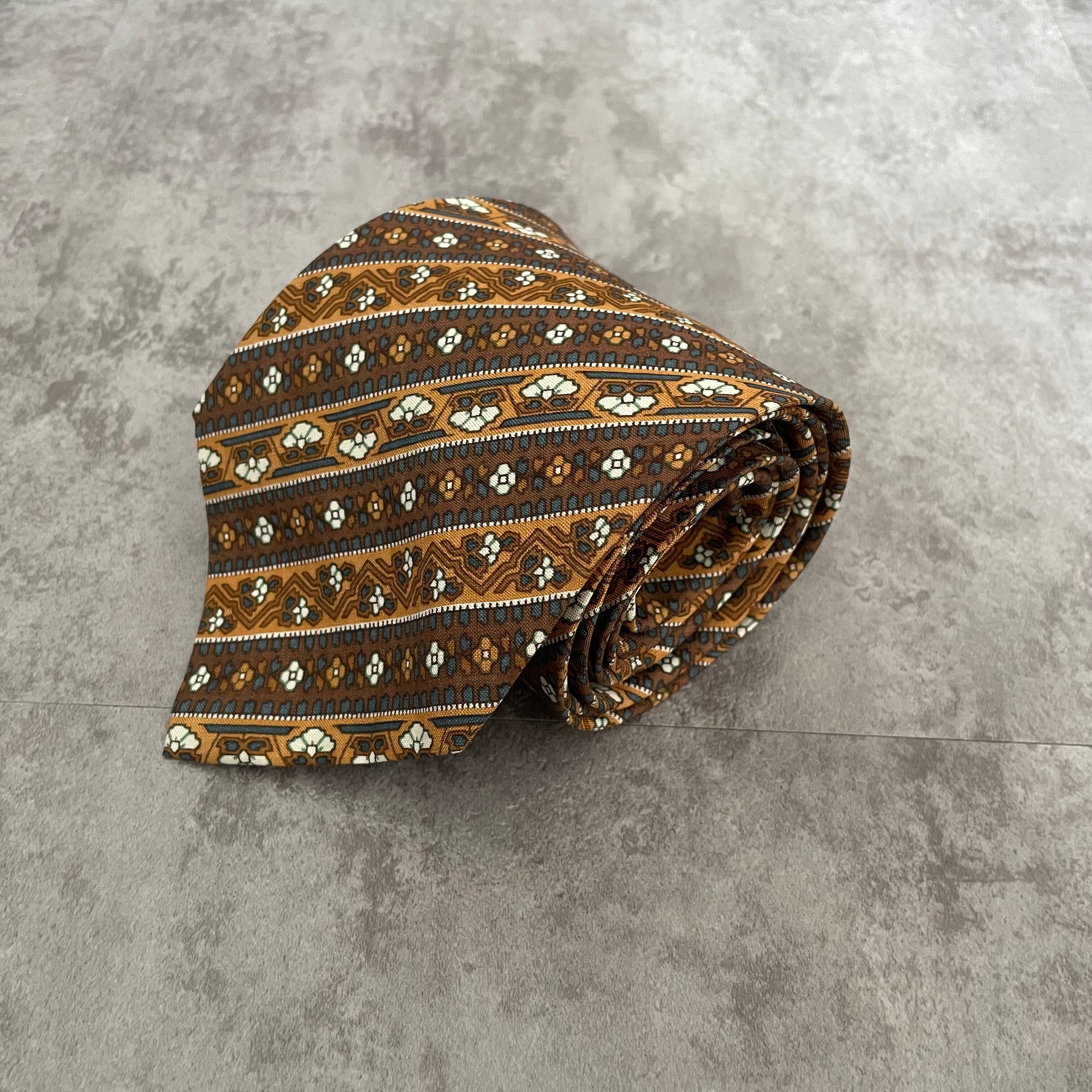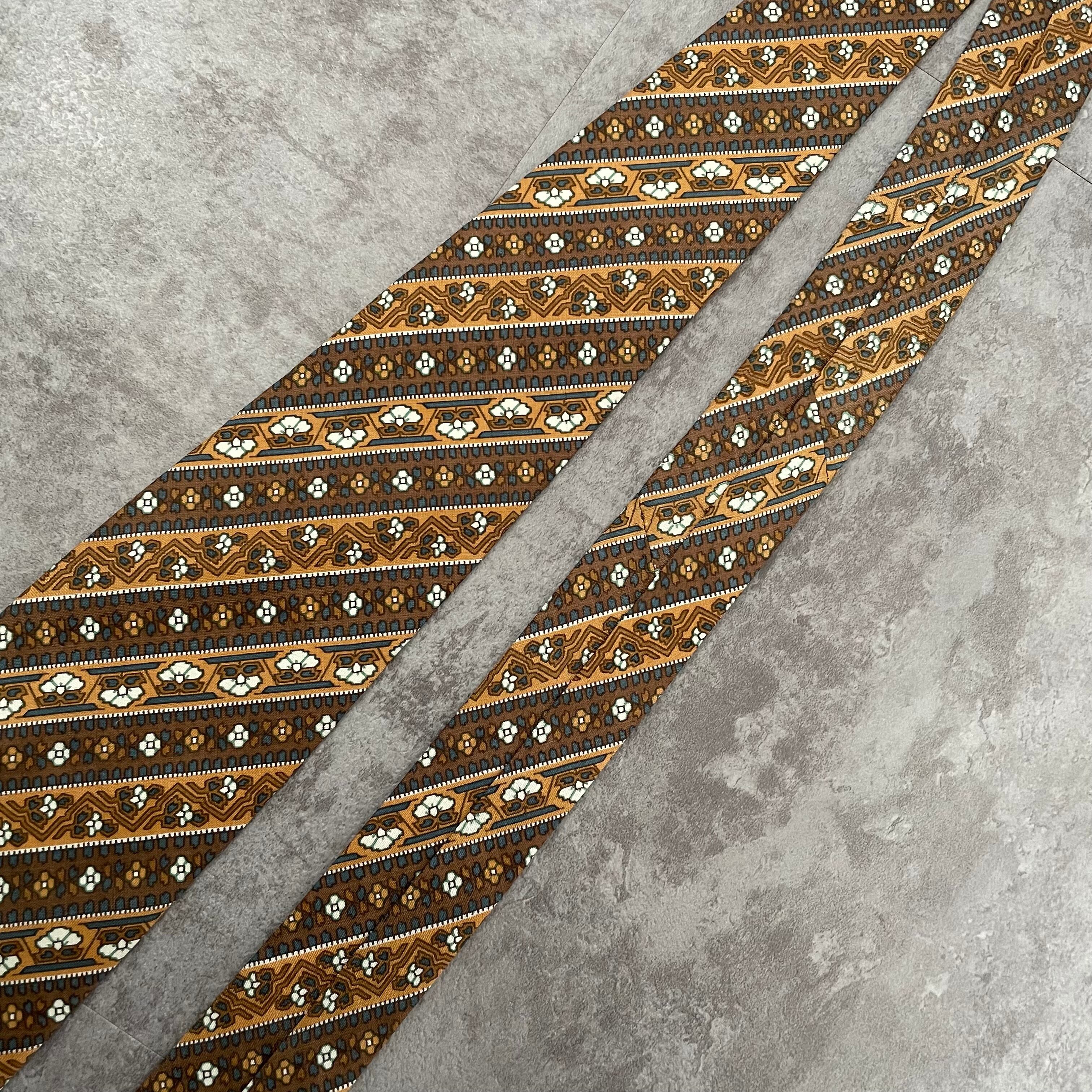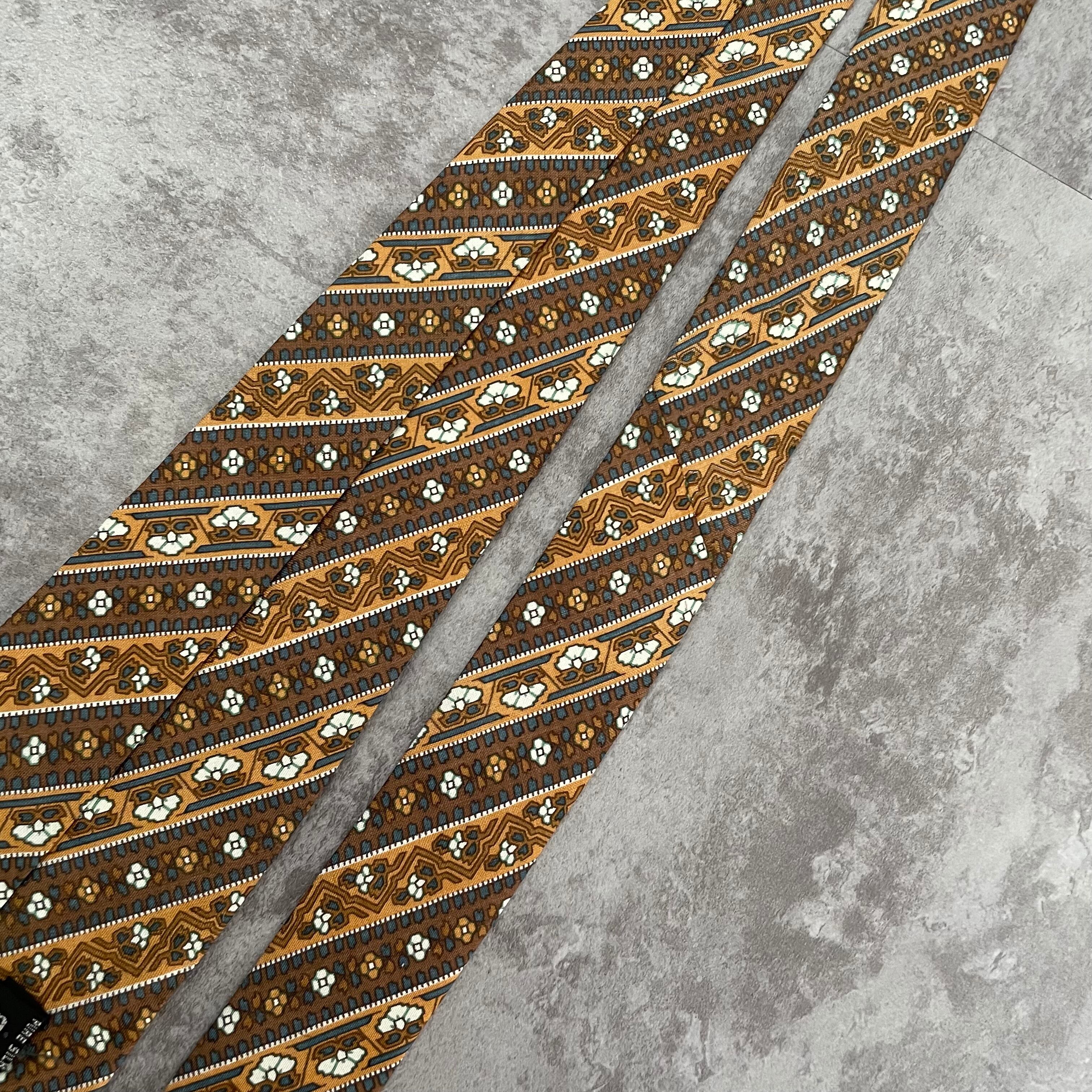【pierre cardin】花柄×ストライプ バイカラー ボタニカル 植物柄 小紋柄 ブラウン