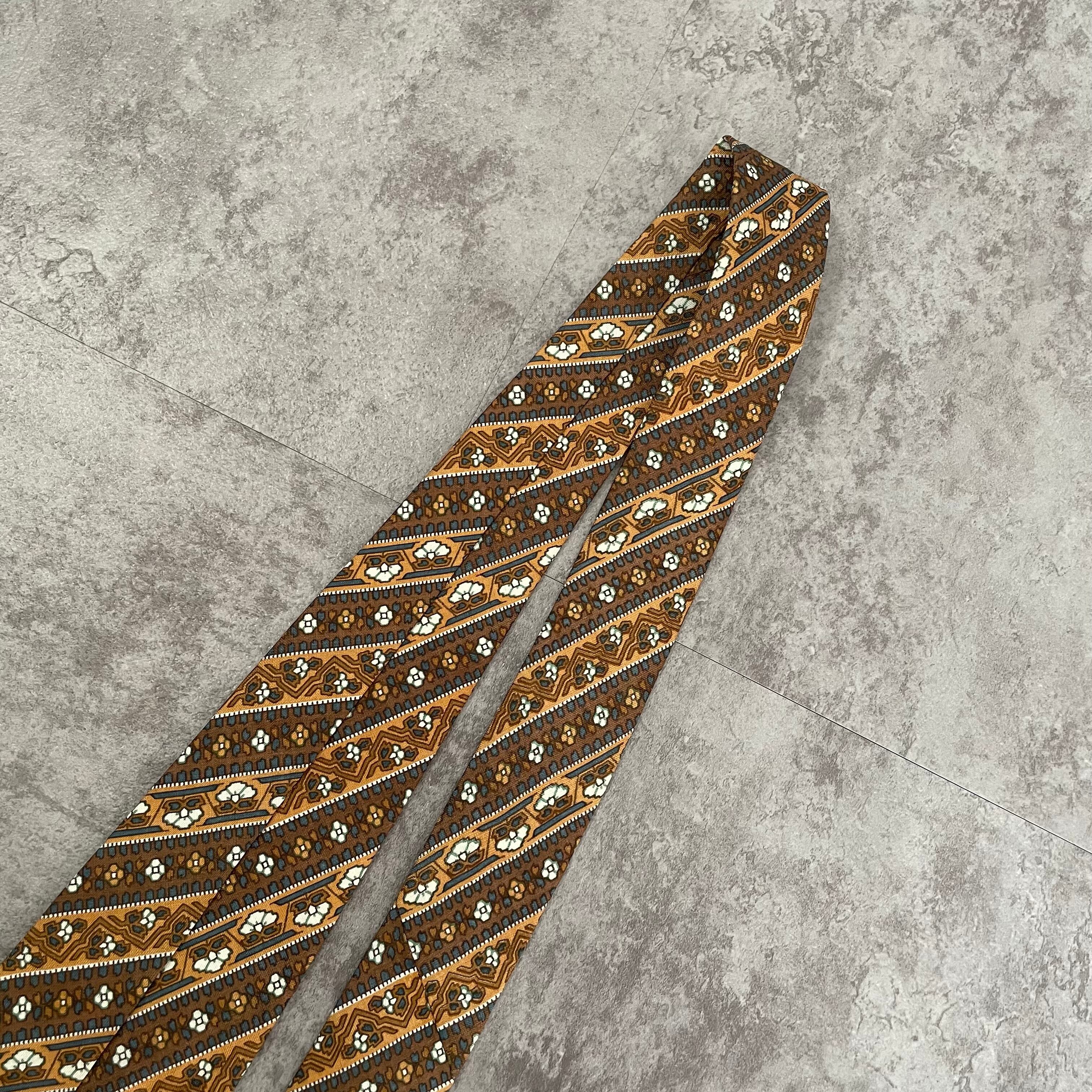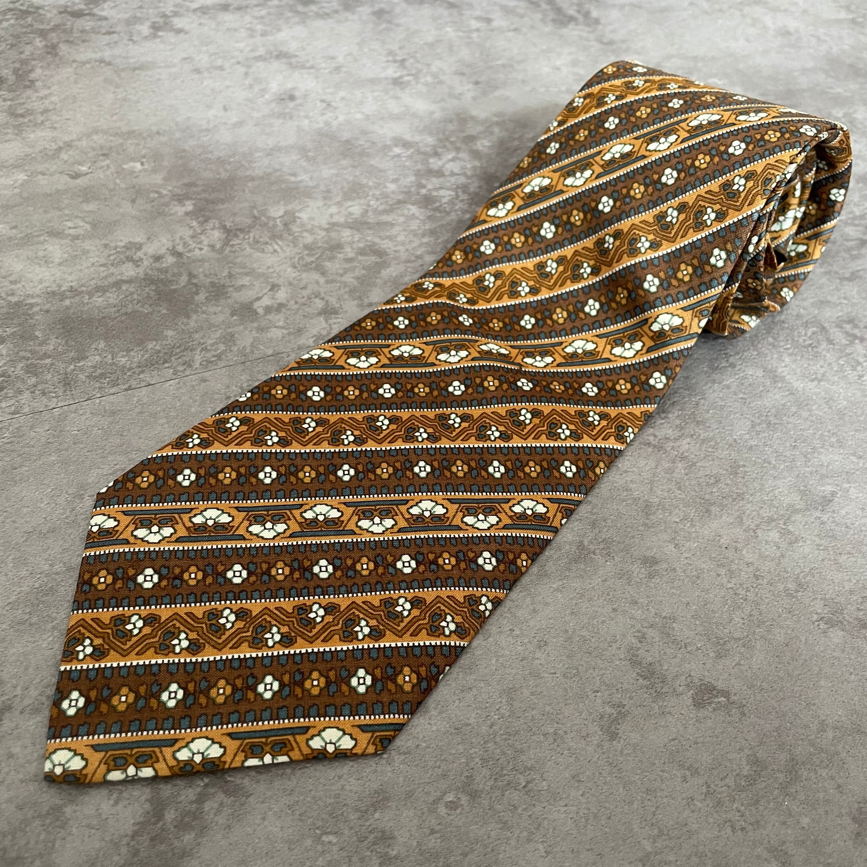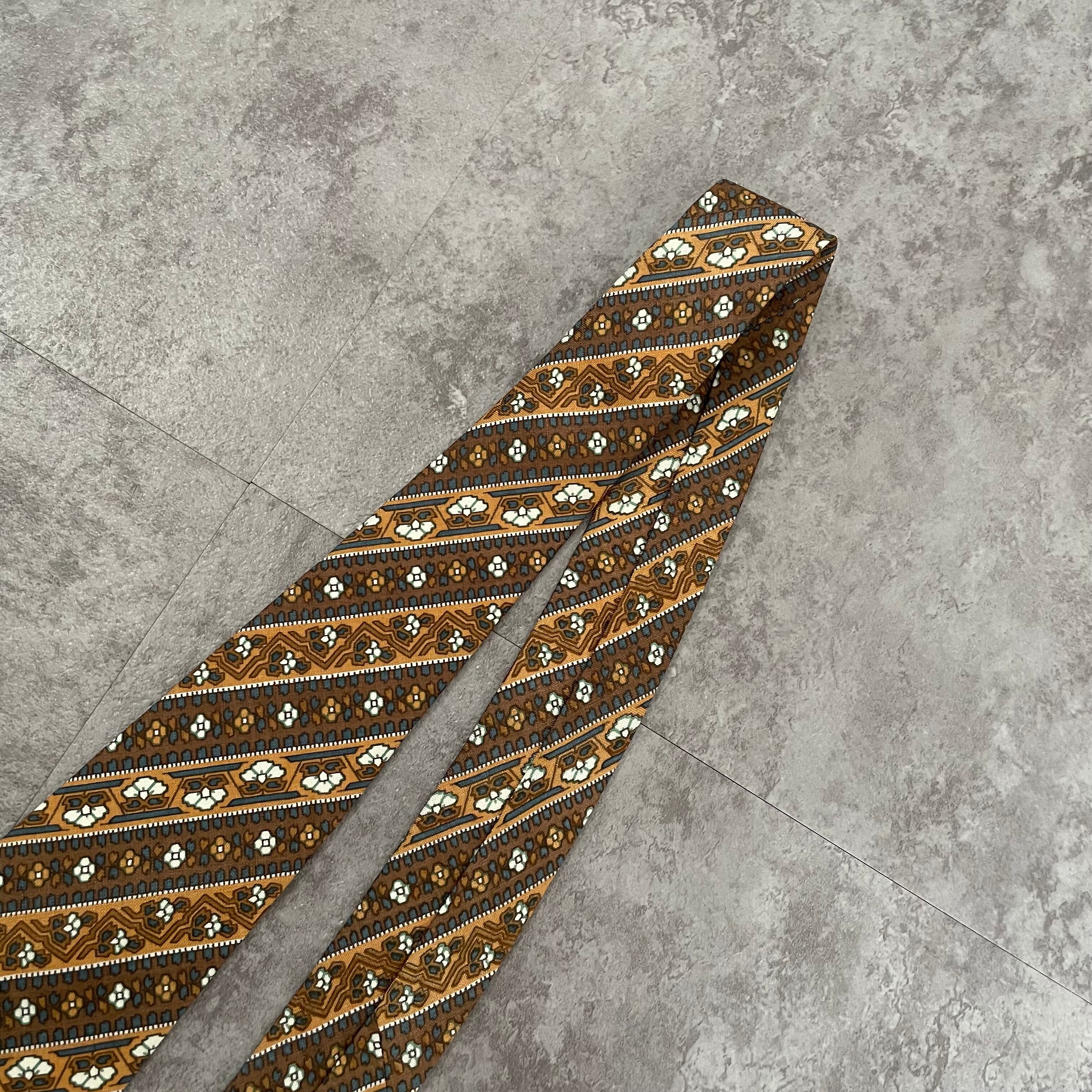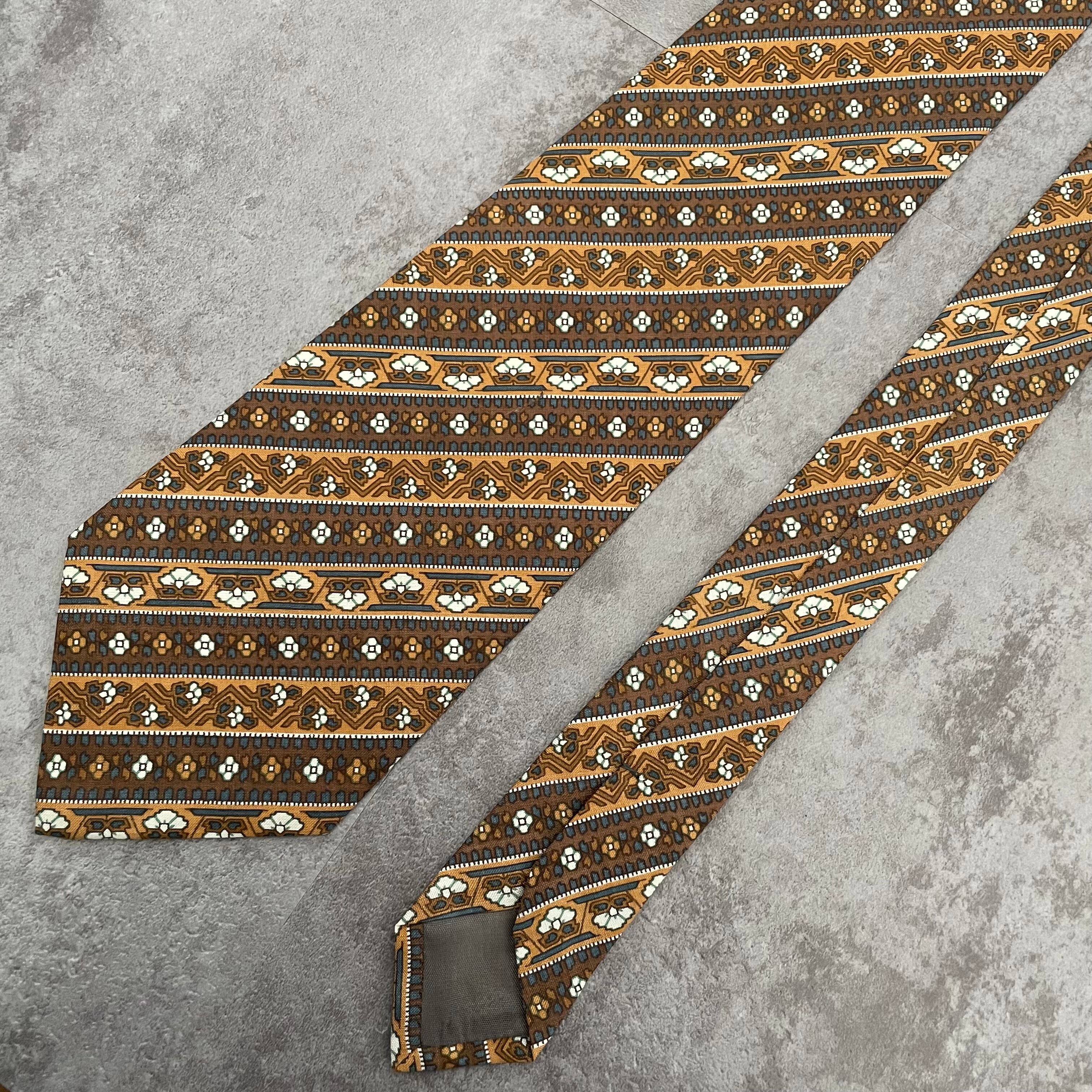 【pierre cardin】花柄×ストライプ バイカラー ボタニカル 植物柄 小紋柄 ブラウン