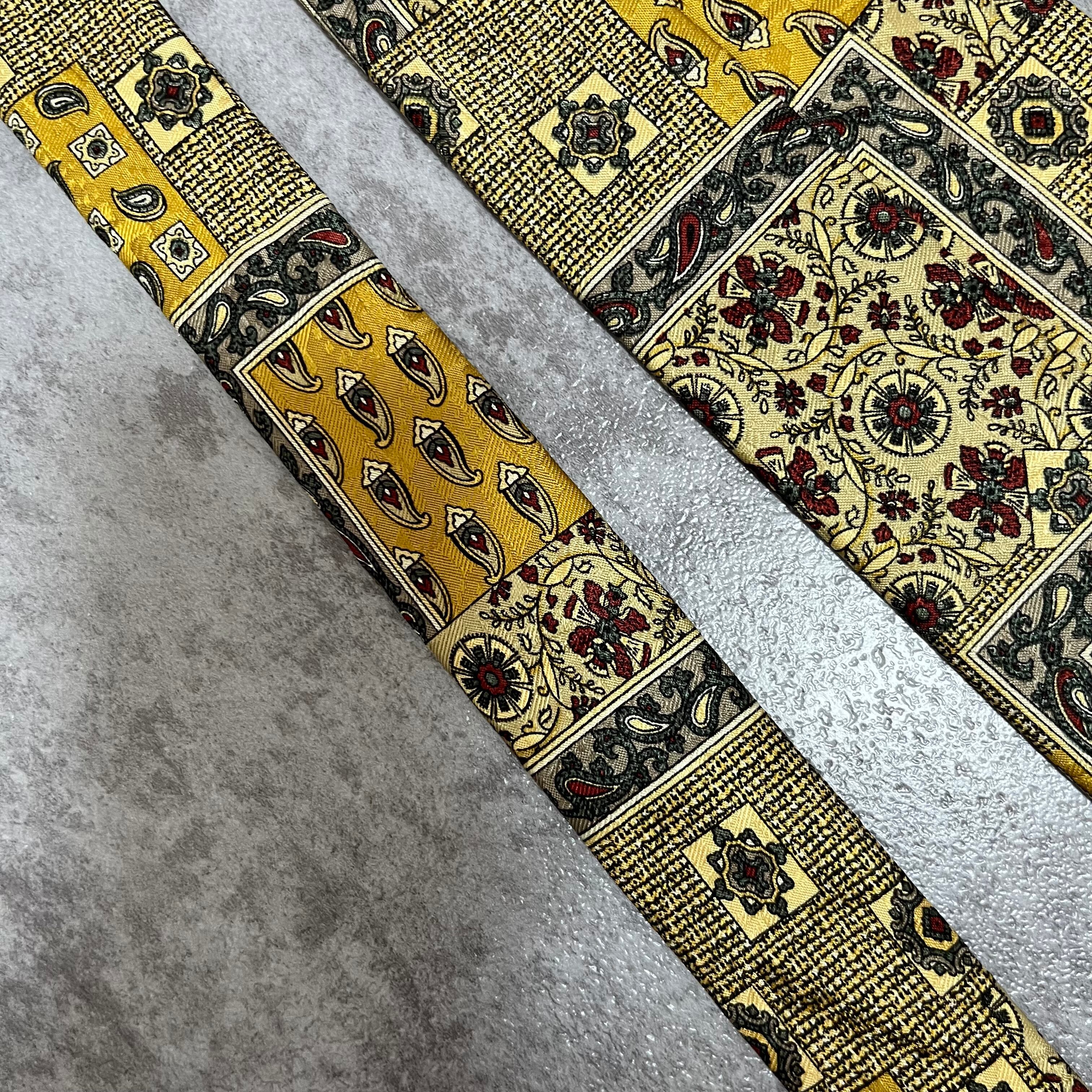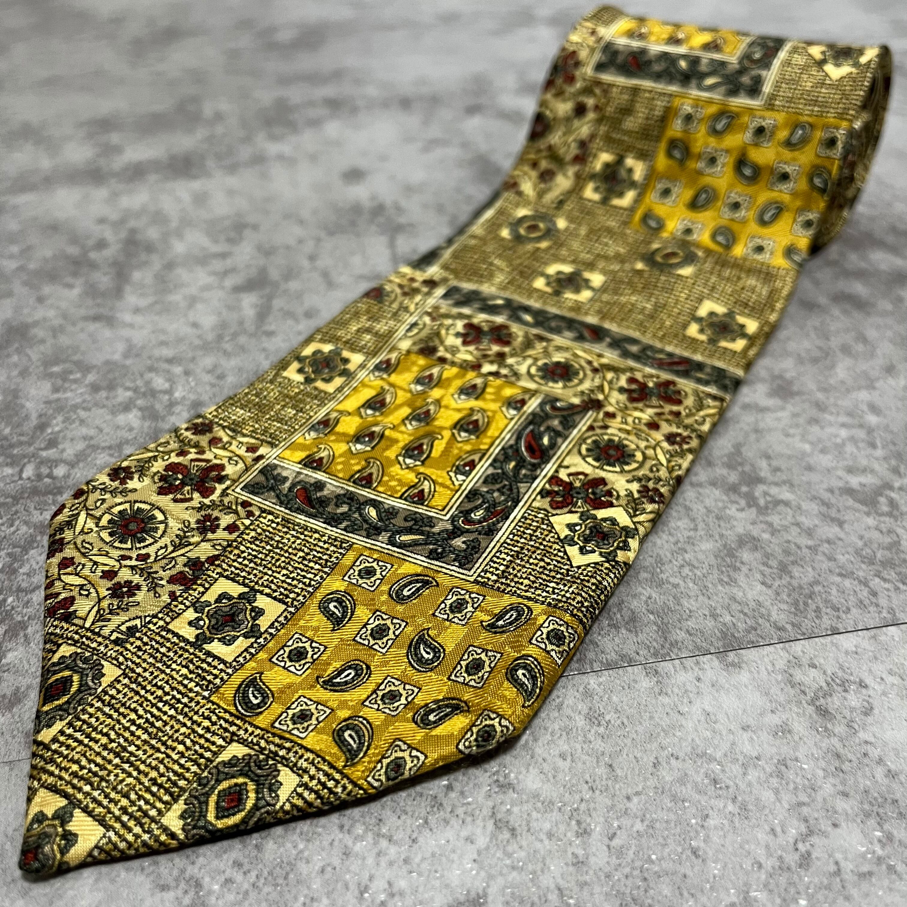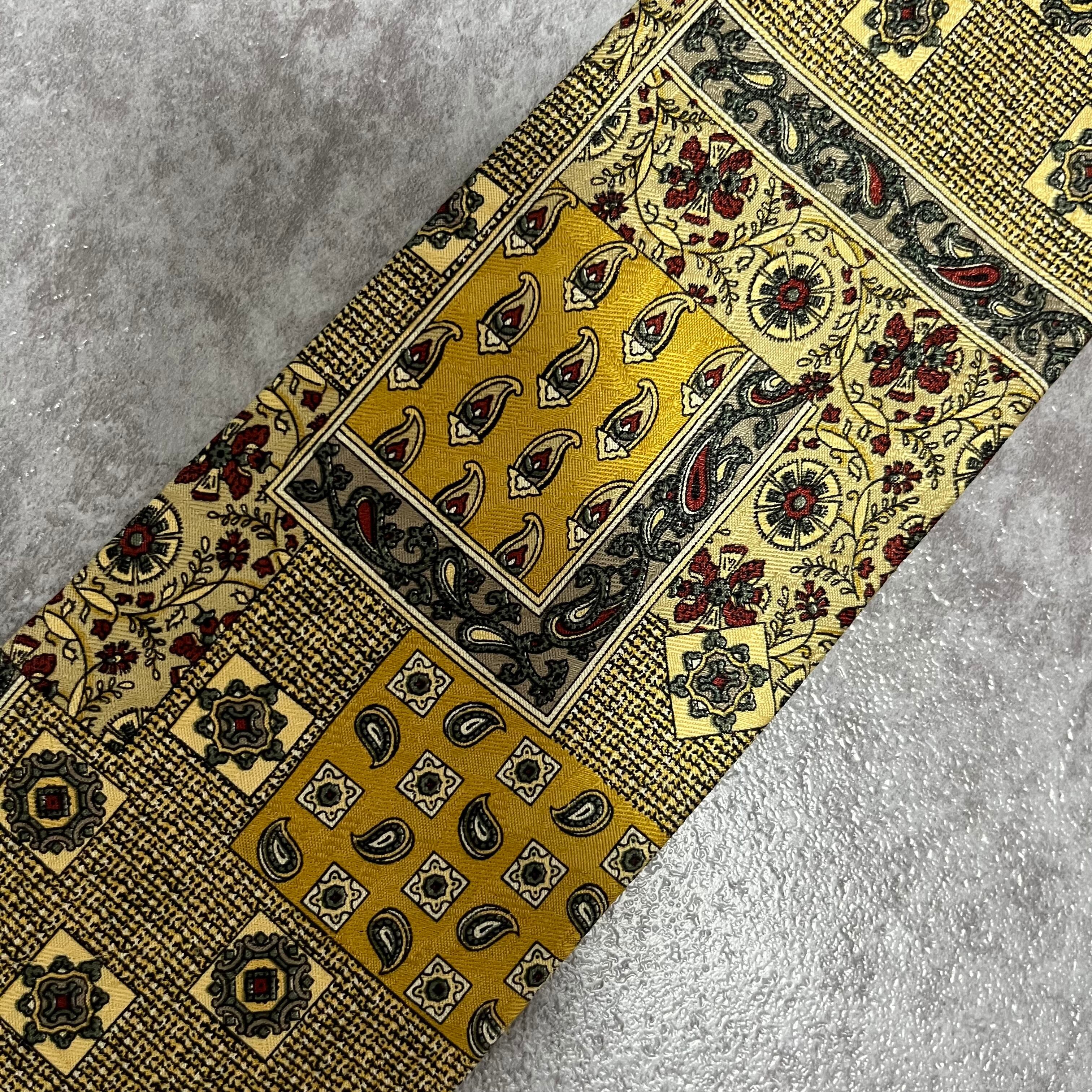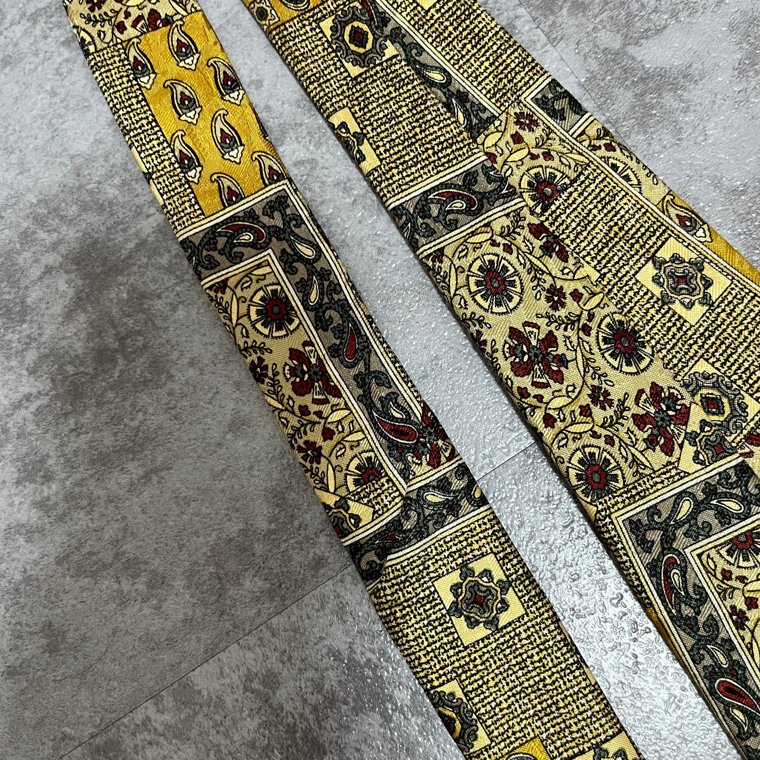 【ペイズリー】アートペイズリーネクタイ イエロー 絨毯風 ボタニカル 植物柄