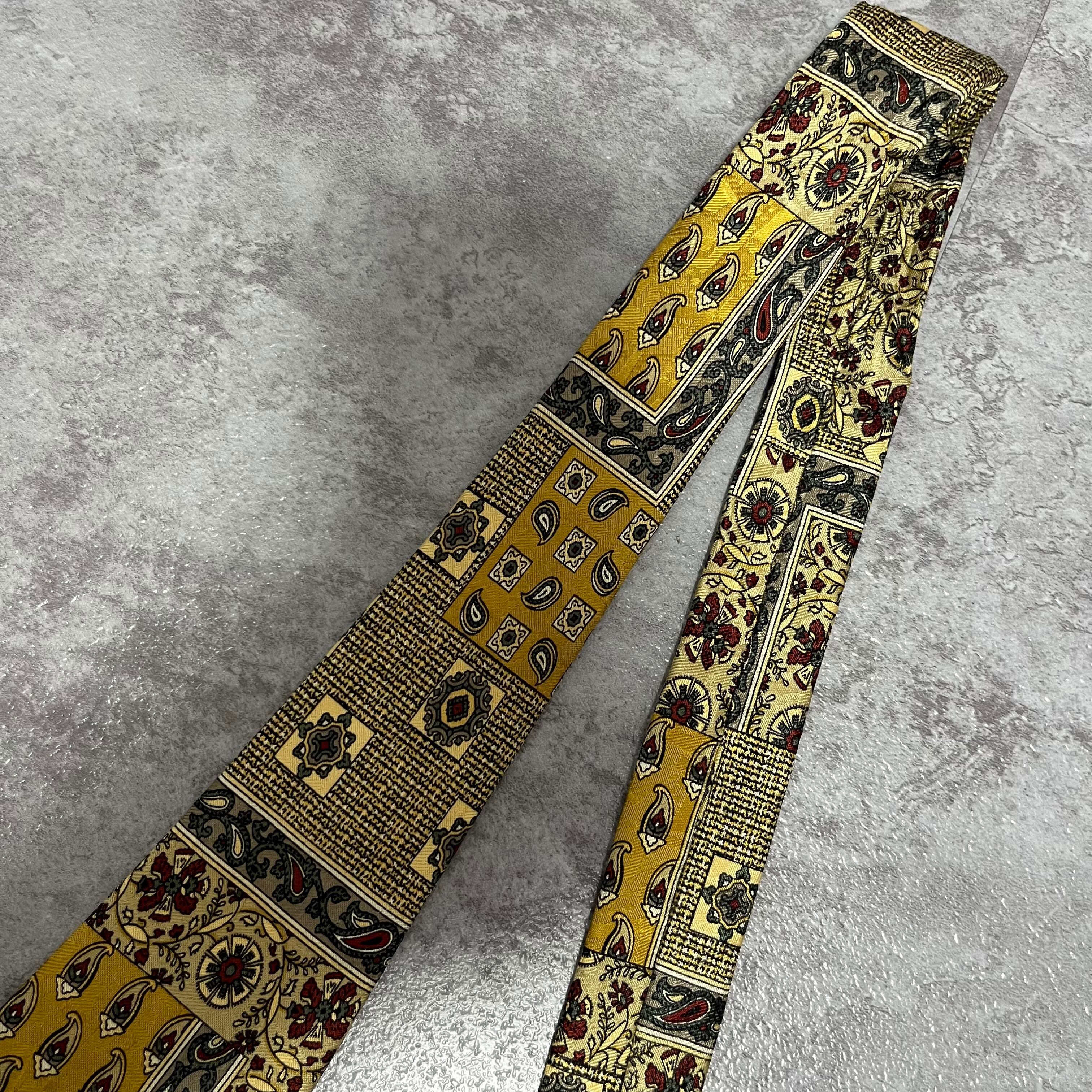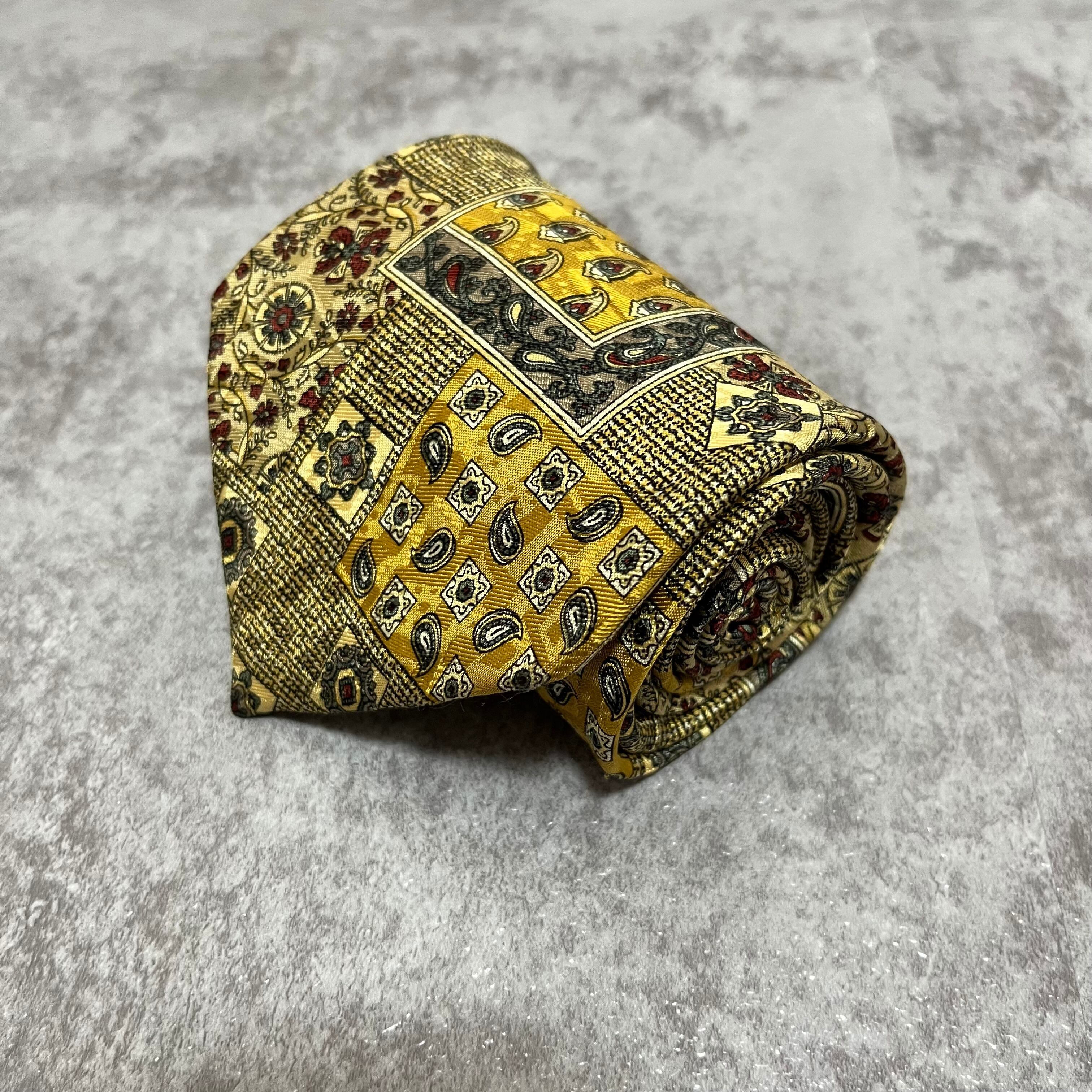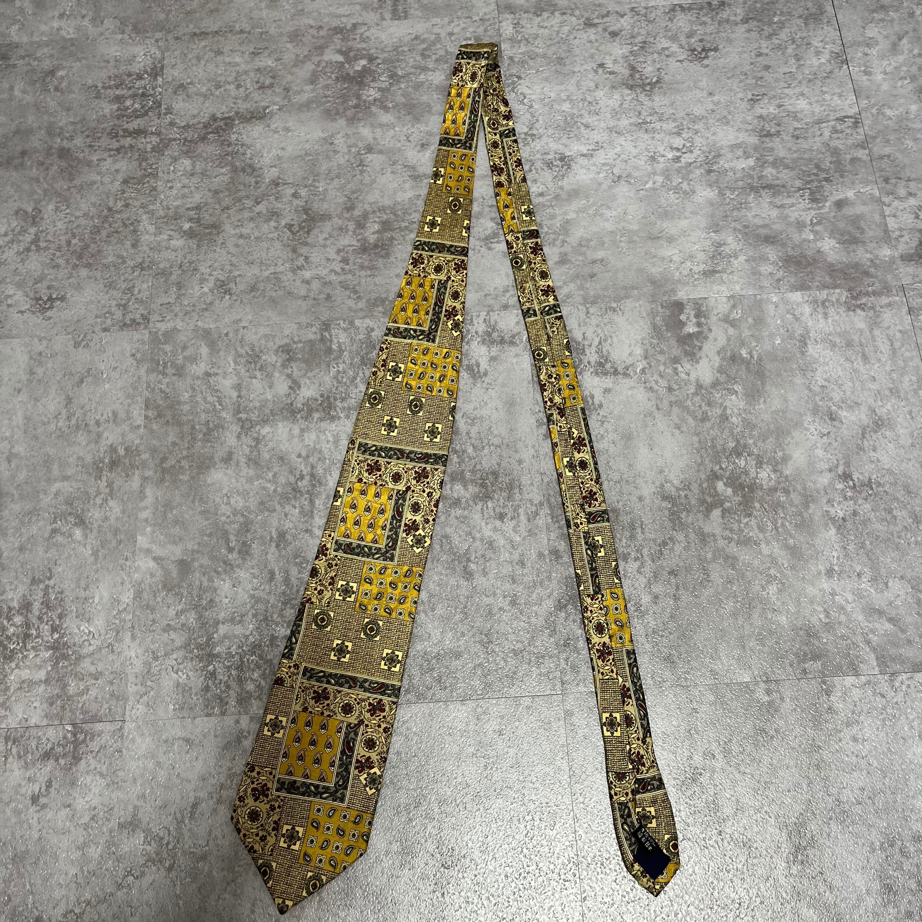 【ペイズリー】アートペイズリーネクタイ イエロー 絨毯風 ボタニカル 植物柄