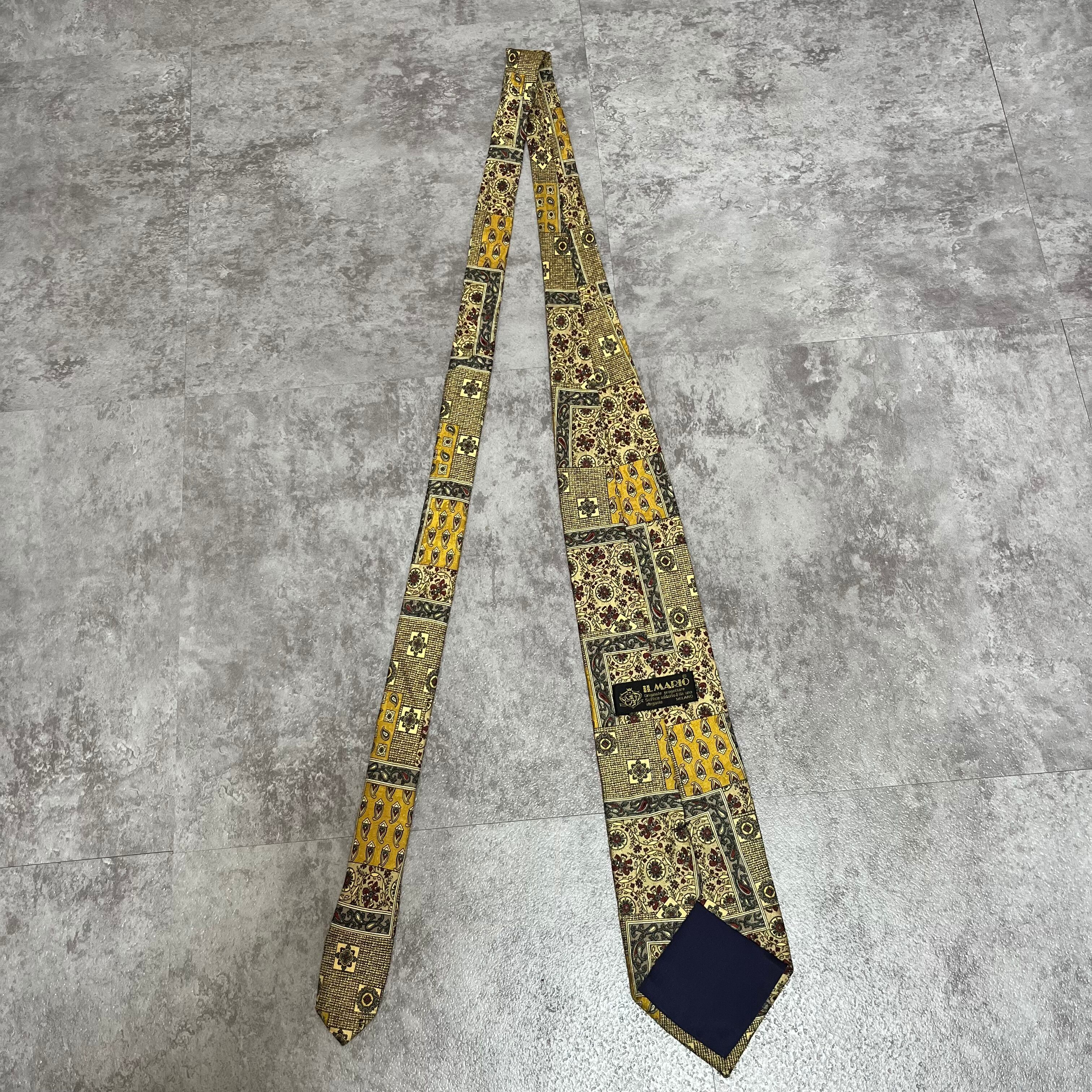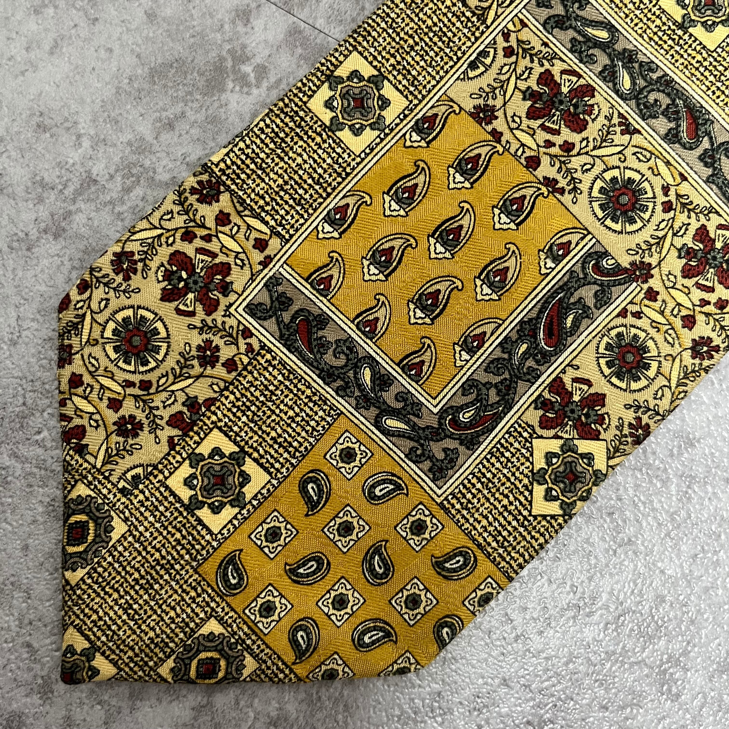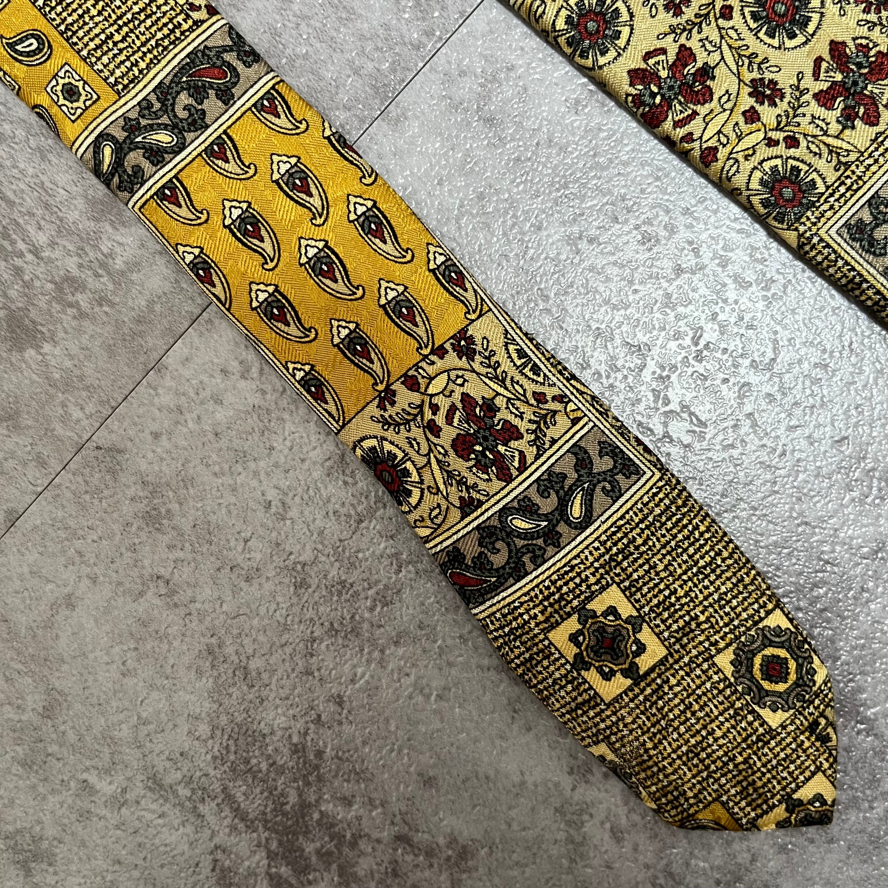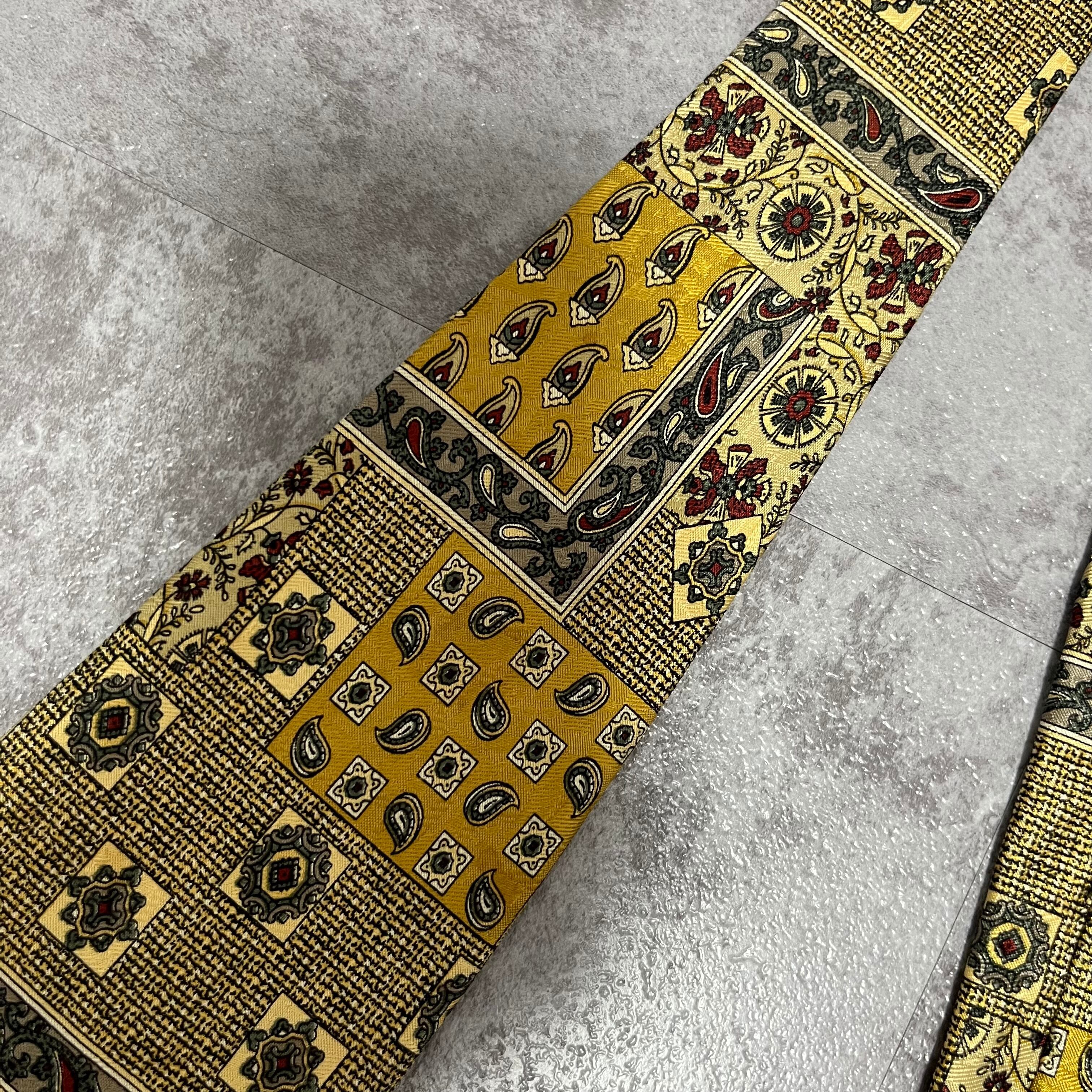 【ペイズリー】アートペイズリーネクタイ イエロー 絨毯風 ボタニカル 植物柄