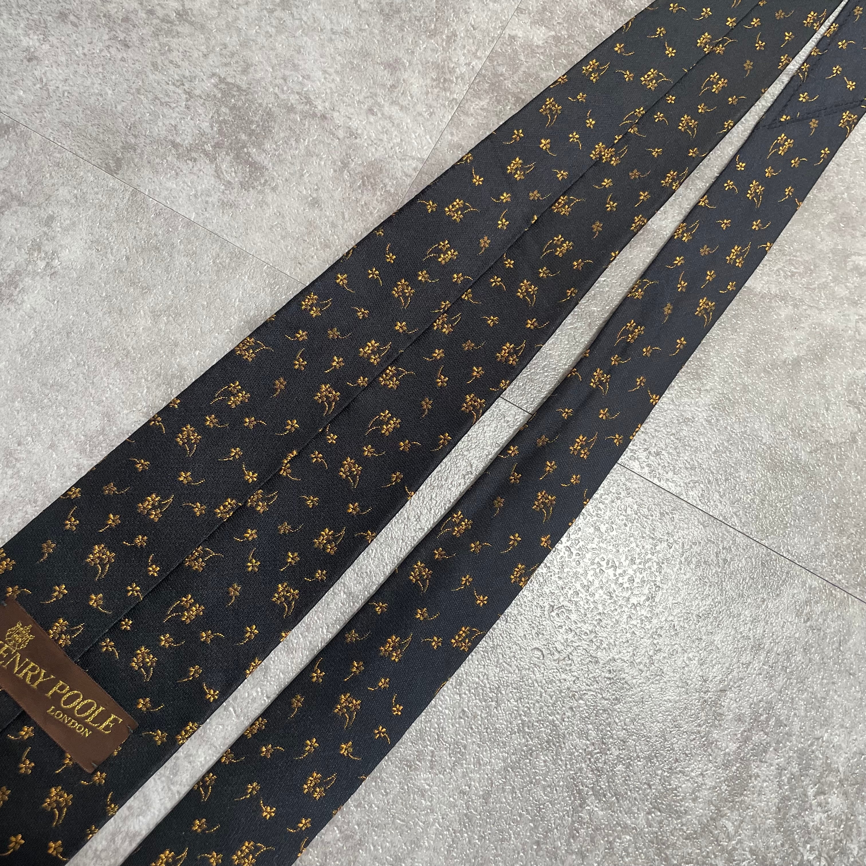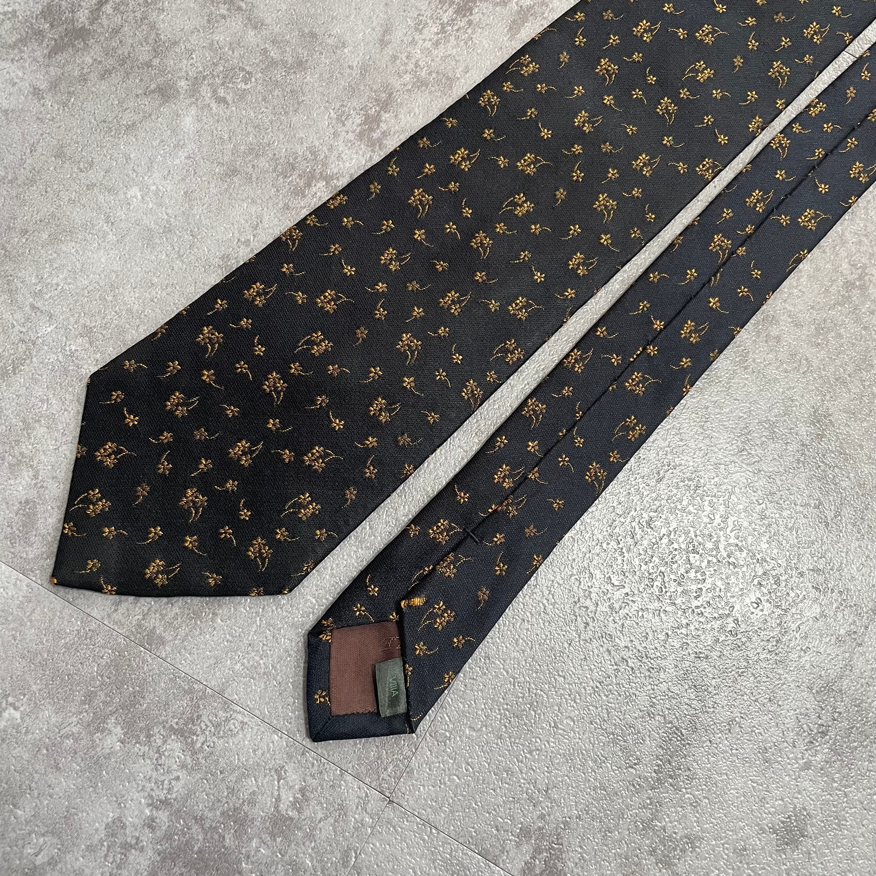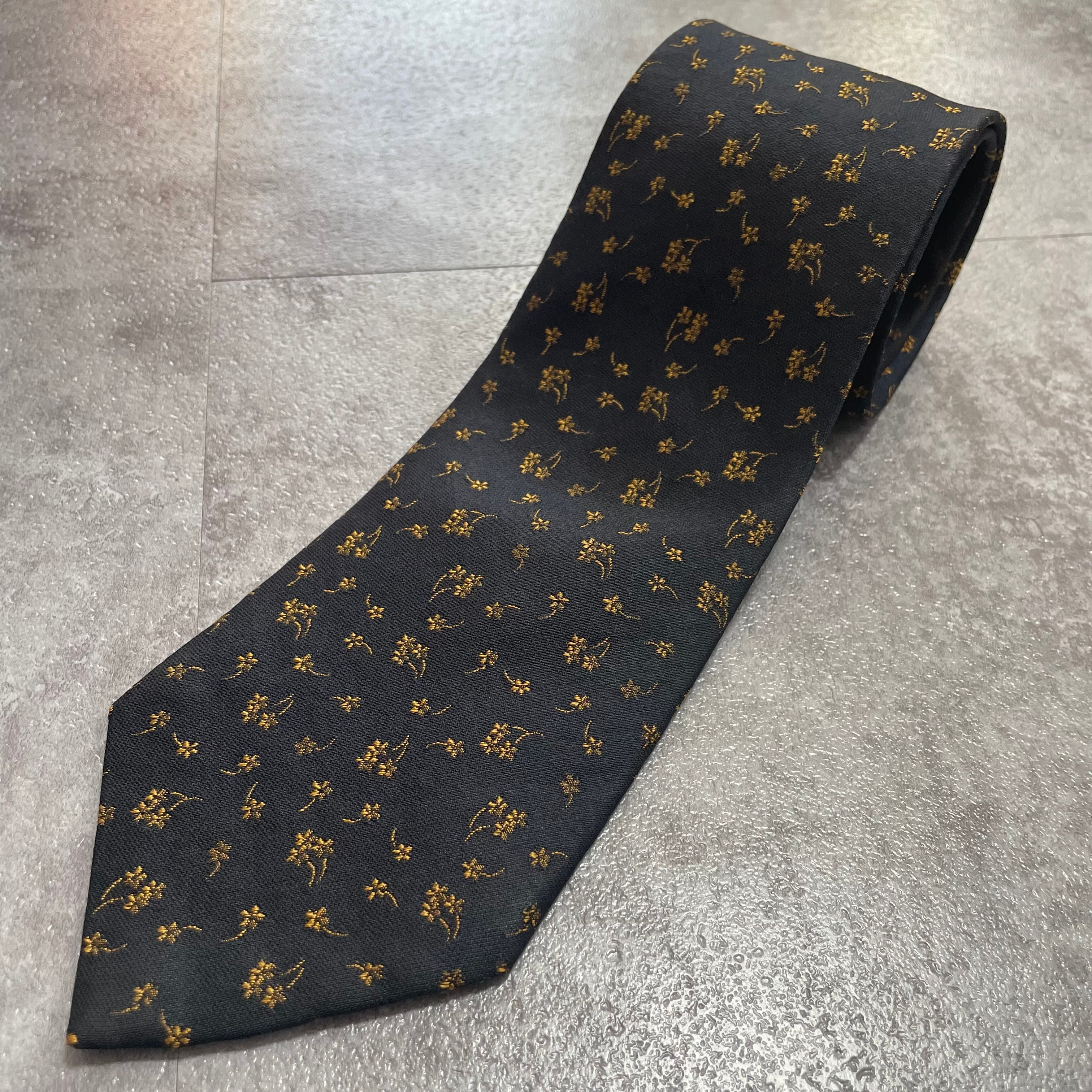 【花柄】刺繍花柄ネクタイ ネイビー ジャガード 肉厚