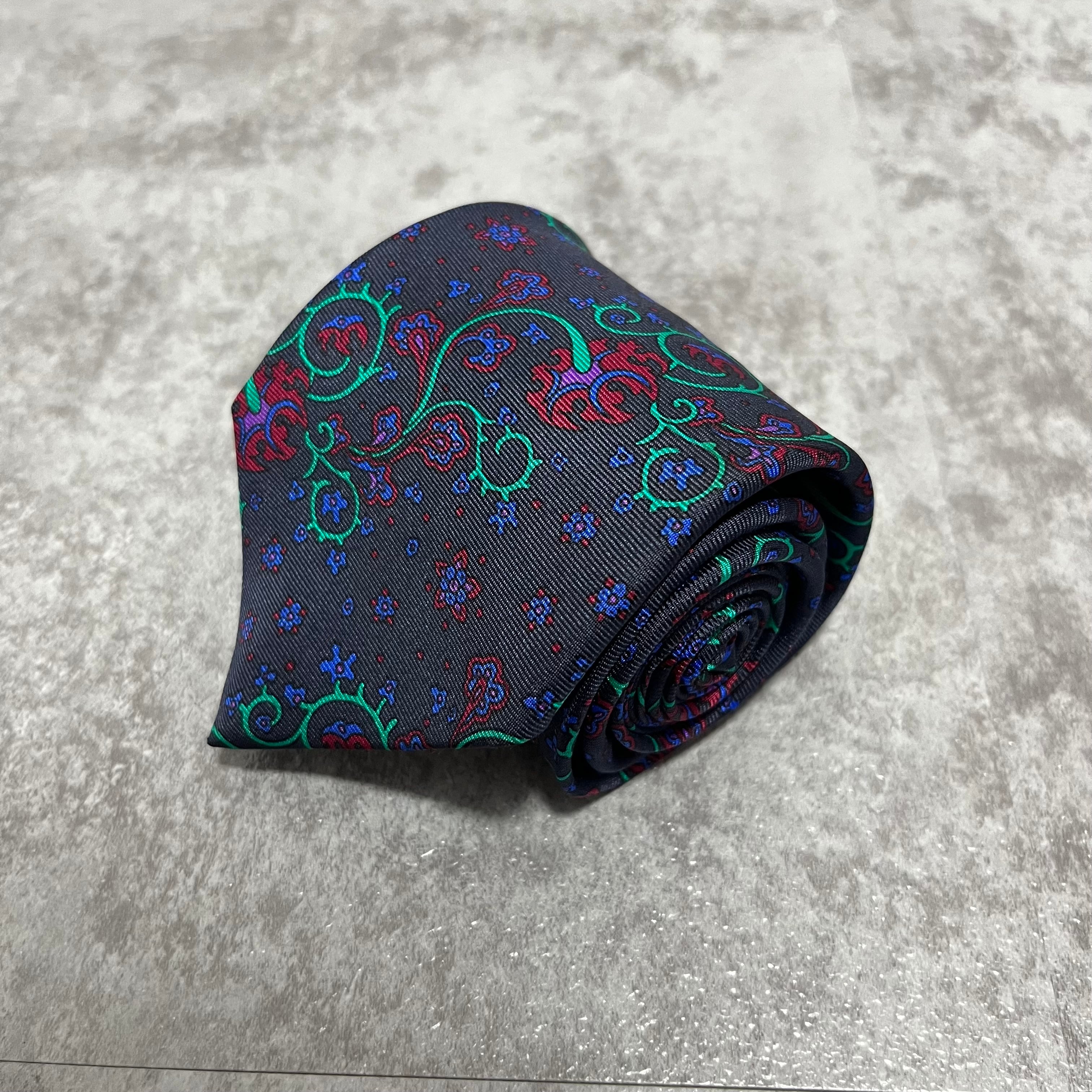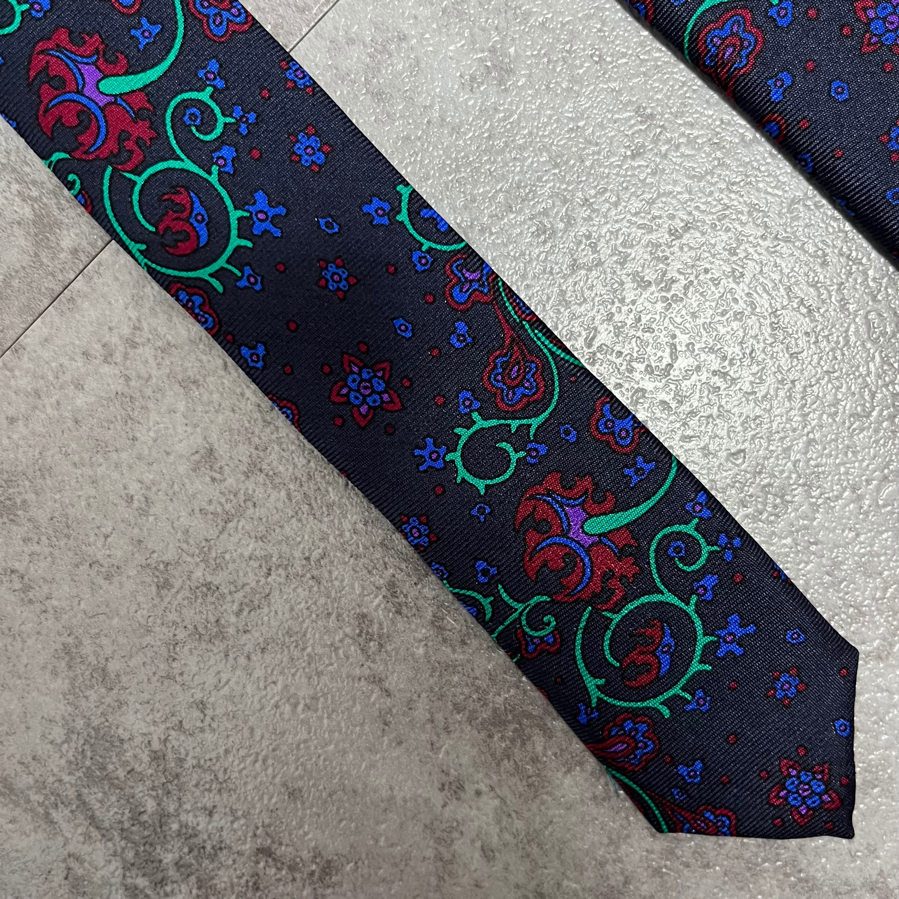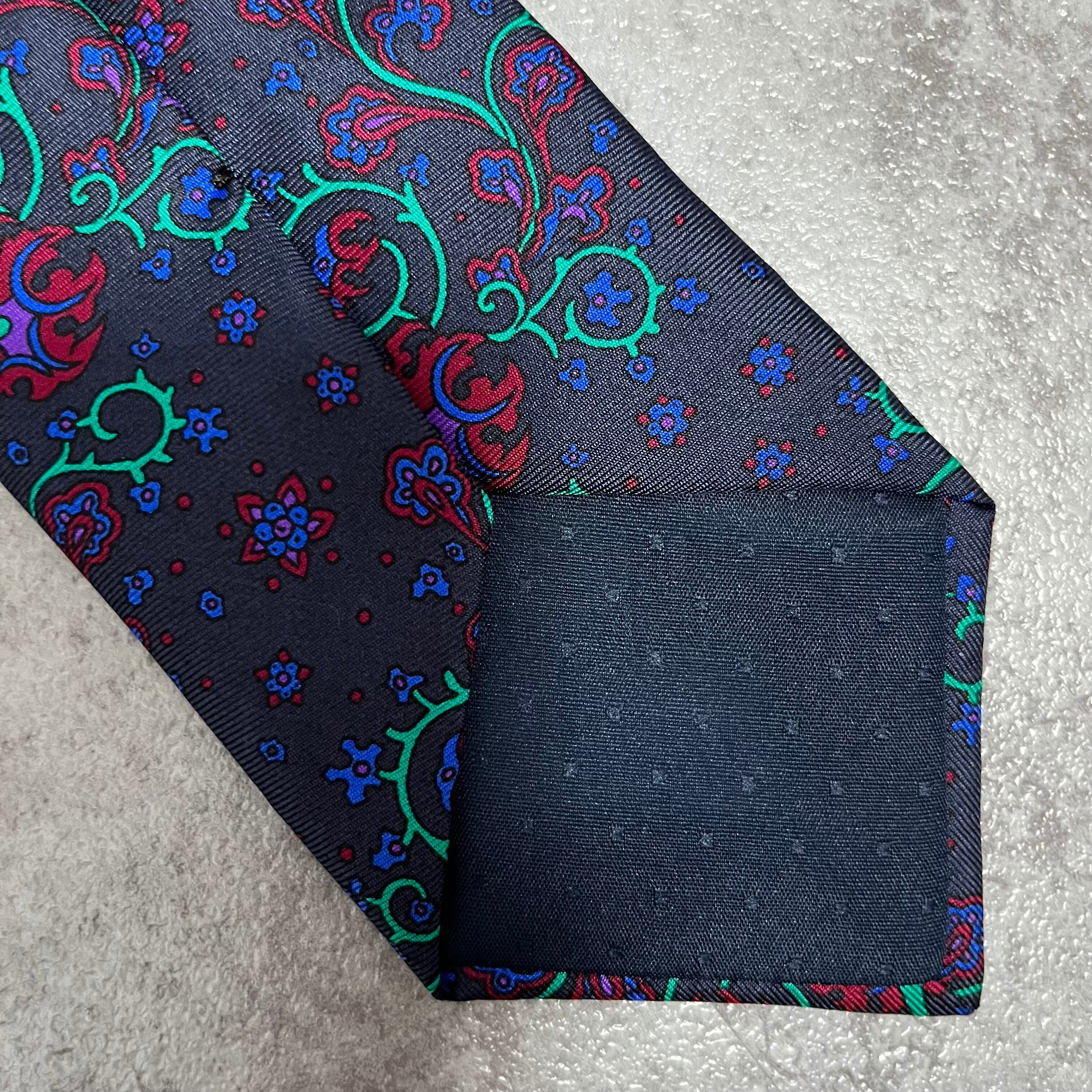 【ペイズリー】マルチカラーペイズリーネクタイ ネイビー ブルー レッド グリーン 植物柄 ボタニカル