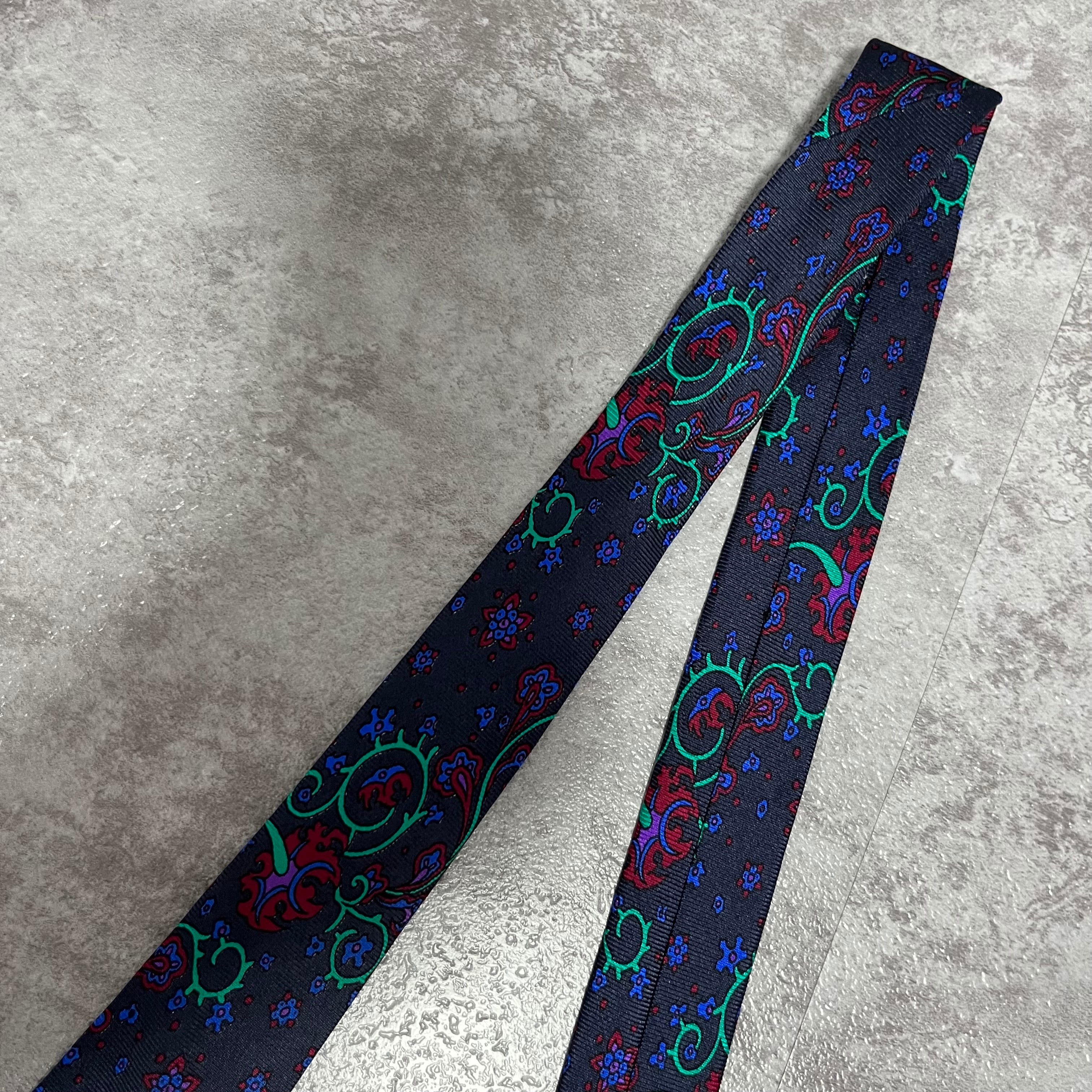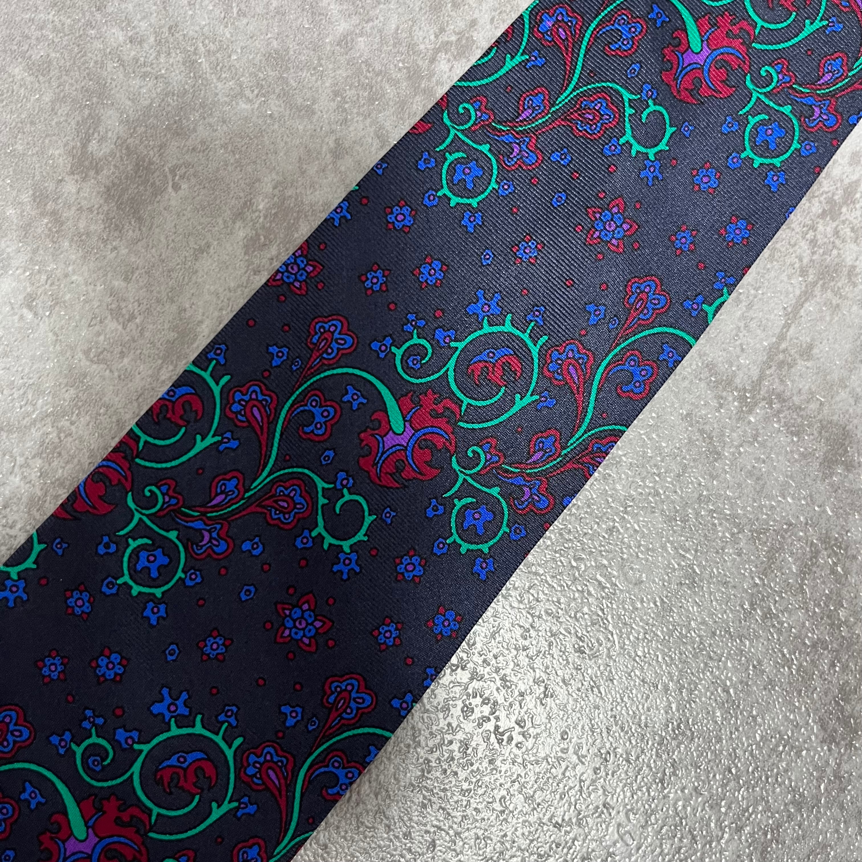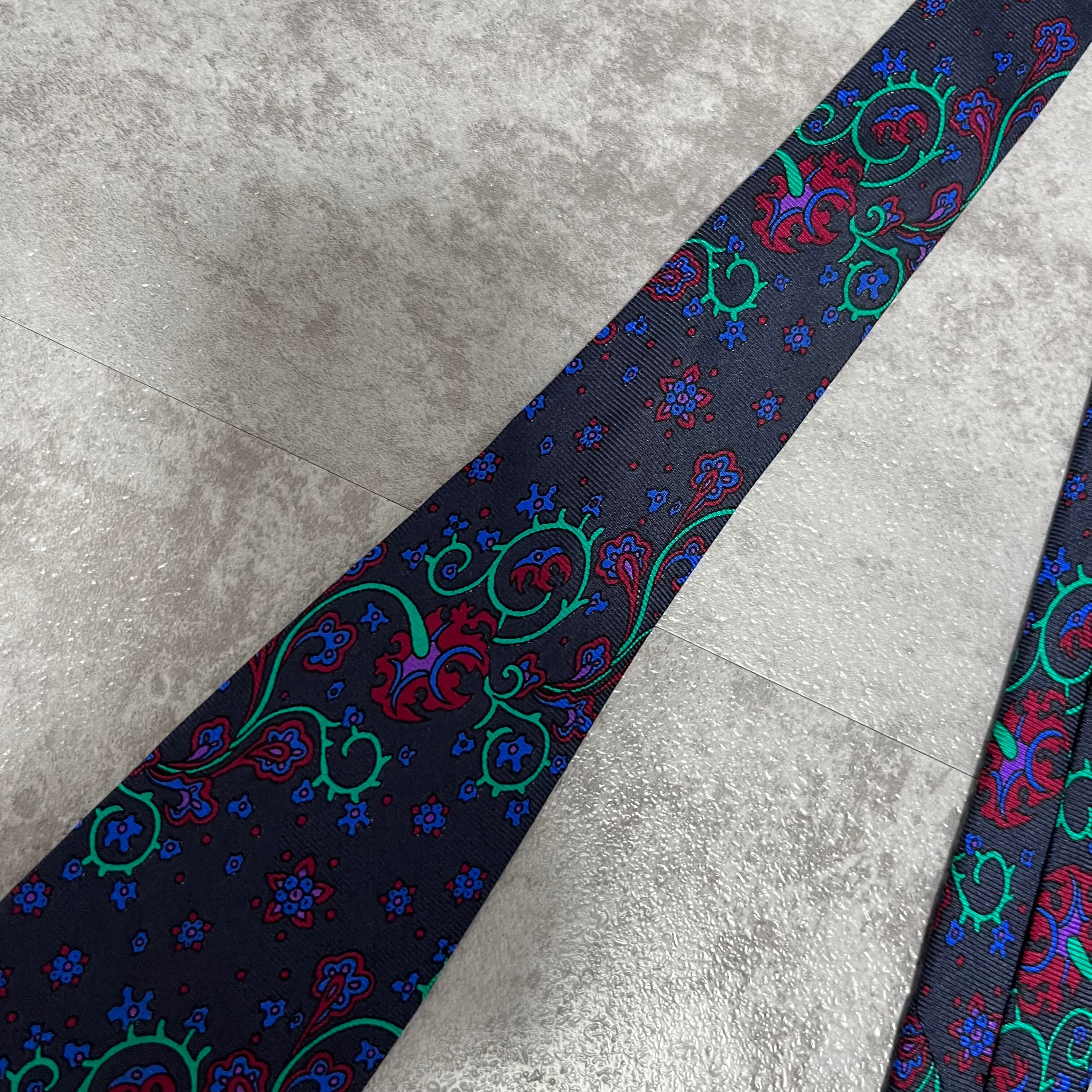 【ペイズリー】マルチカラーペイズリーネクタイ ネイビー ブルー レッド グリーン 植物柄 ボタニカル