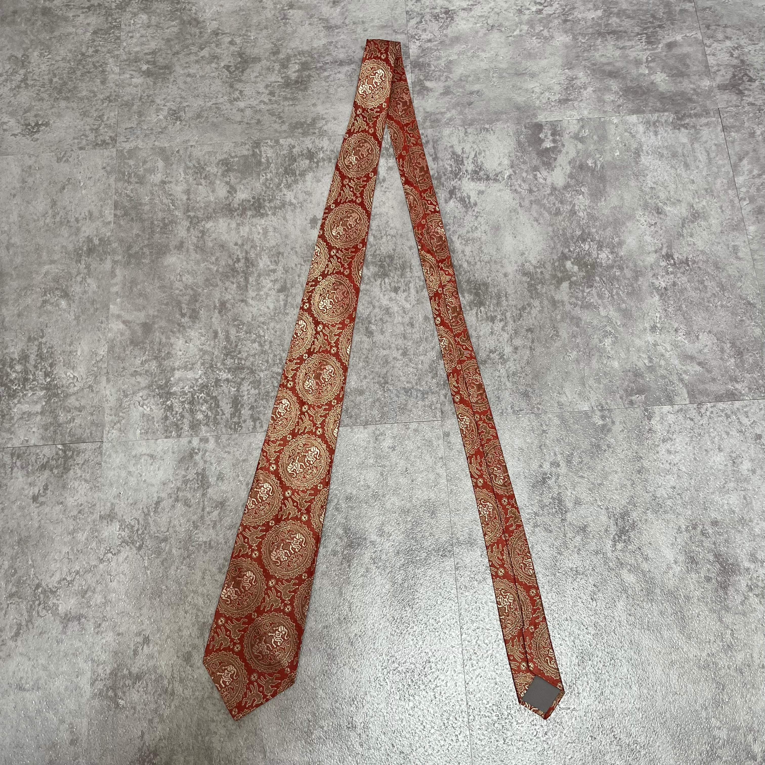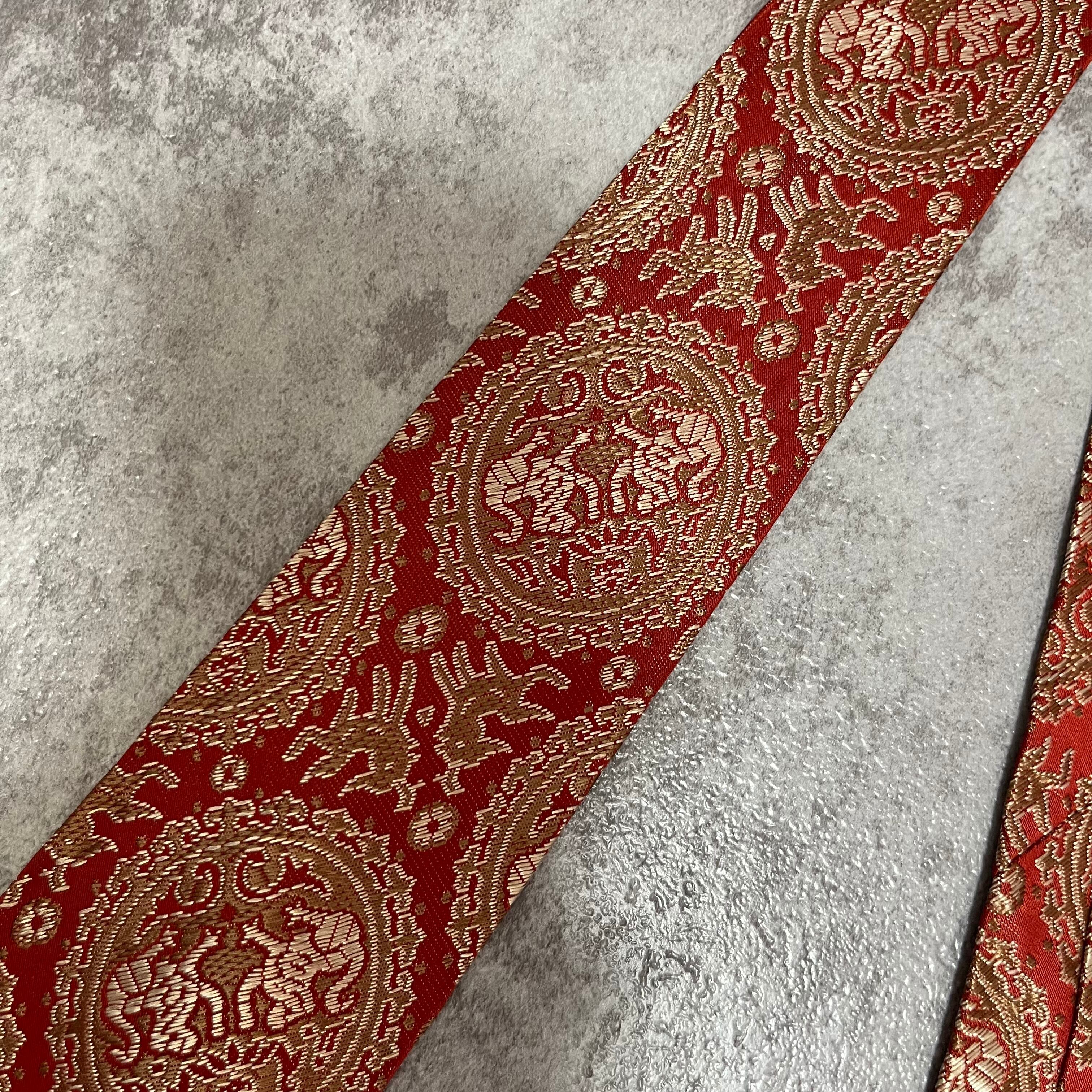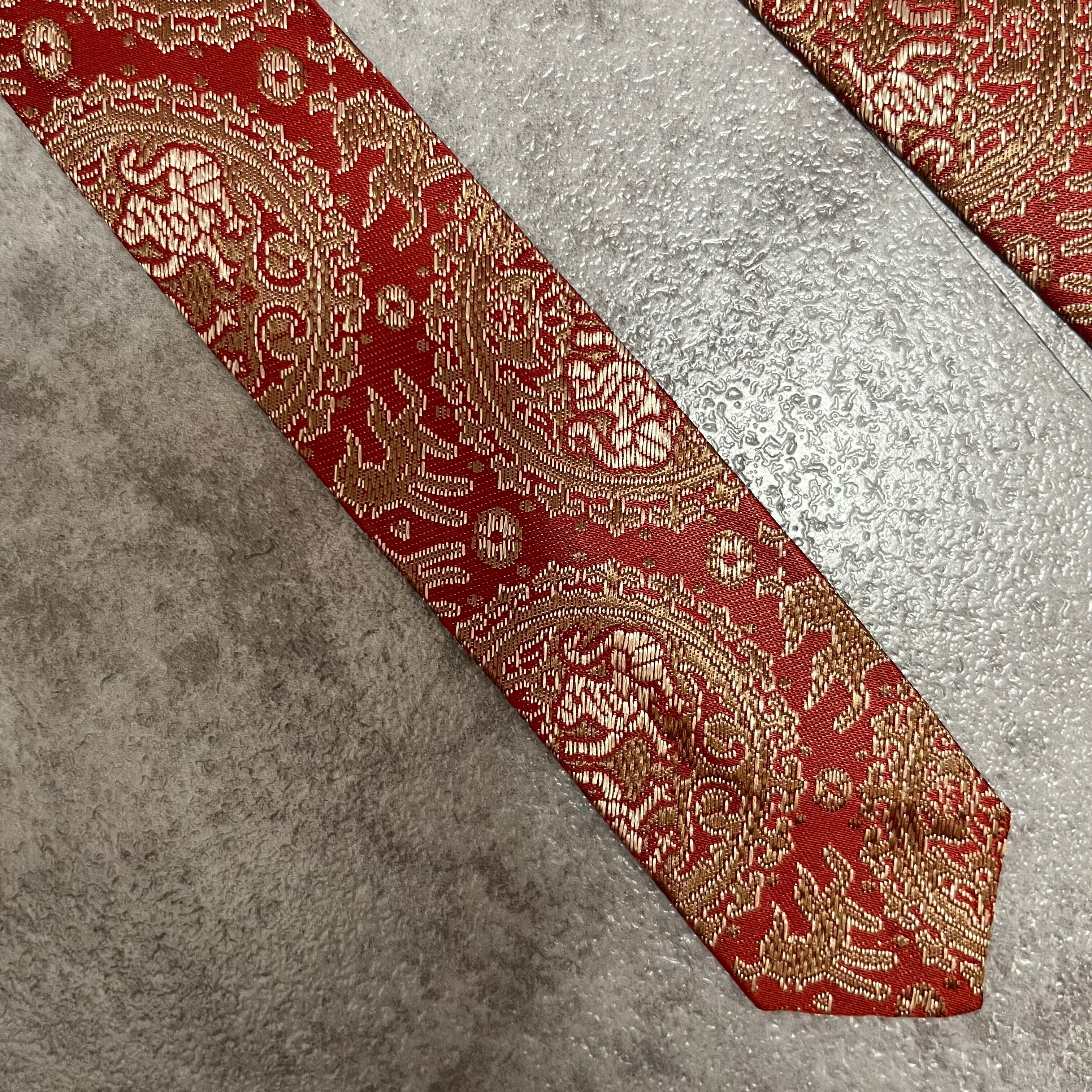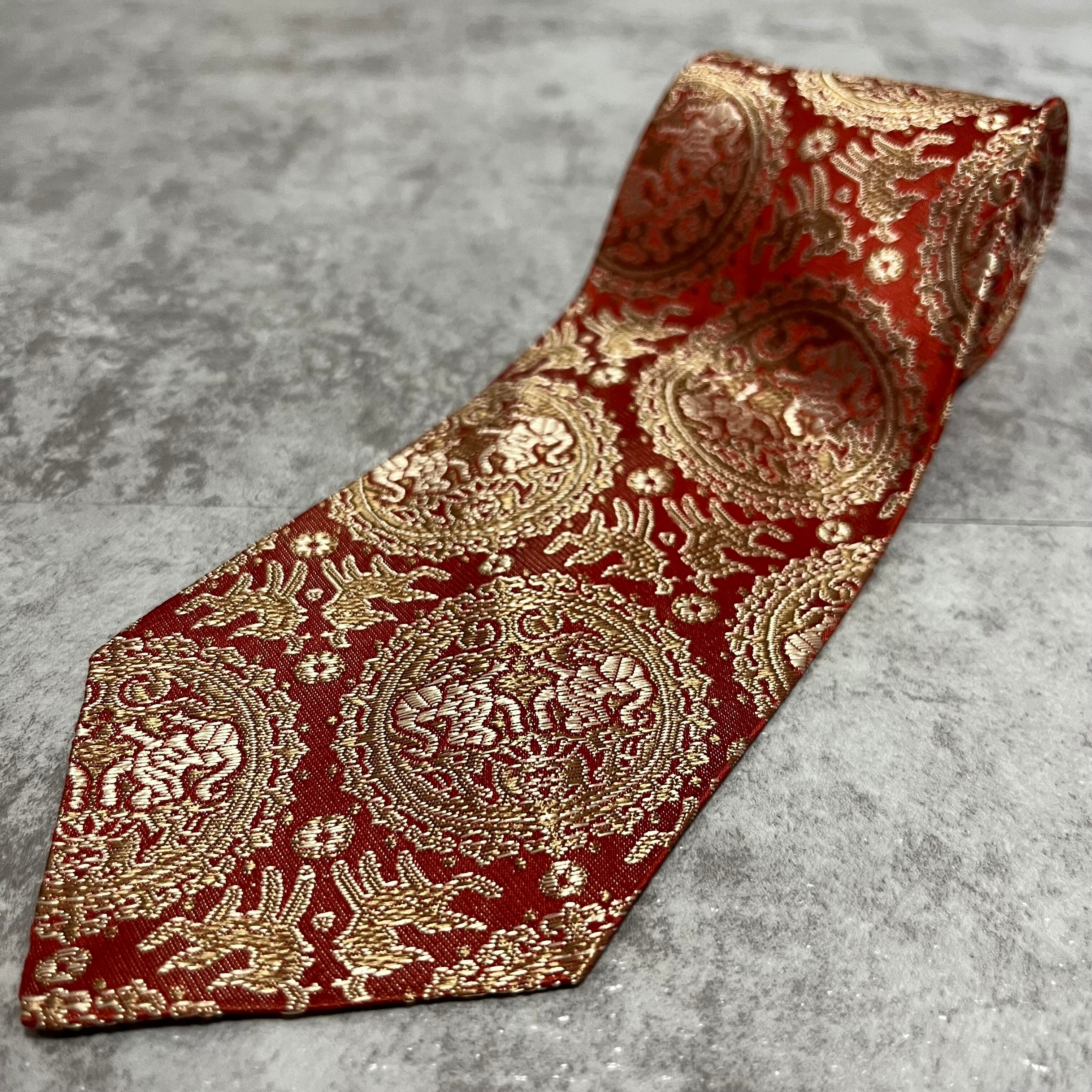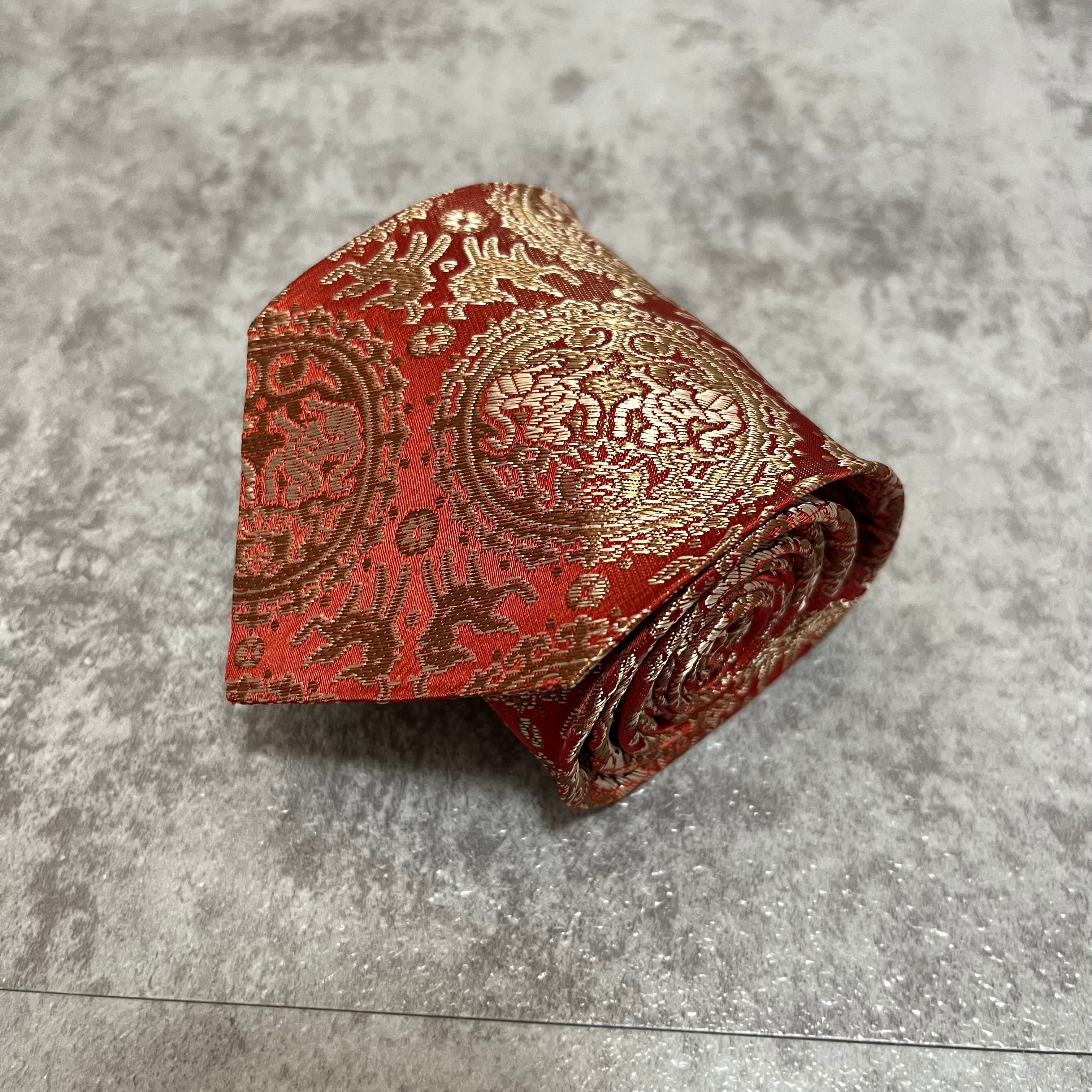 【中華風】紋章柄ネクタイ 赤金 ゴールド レッド