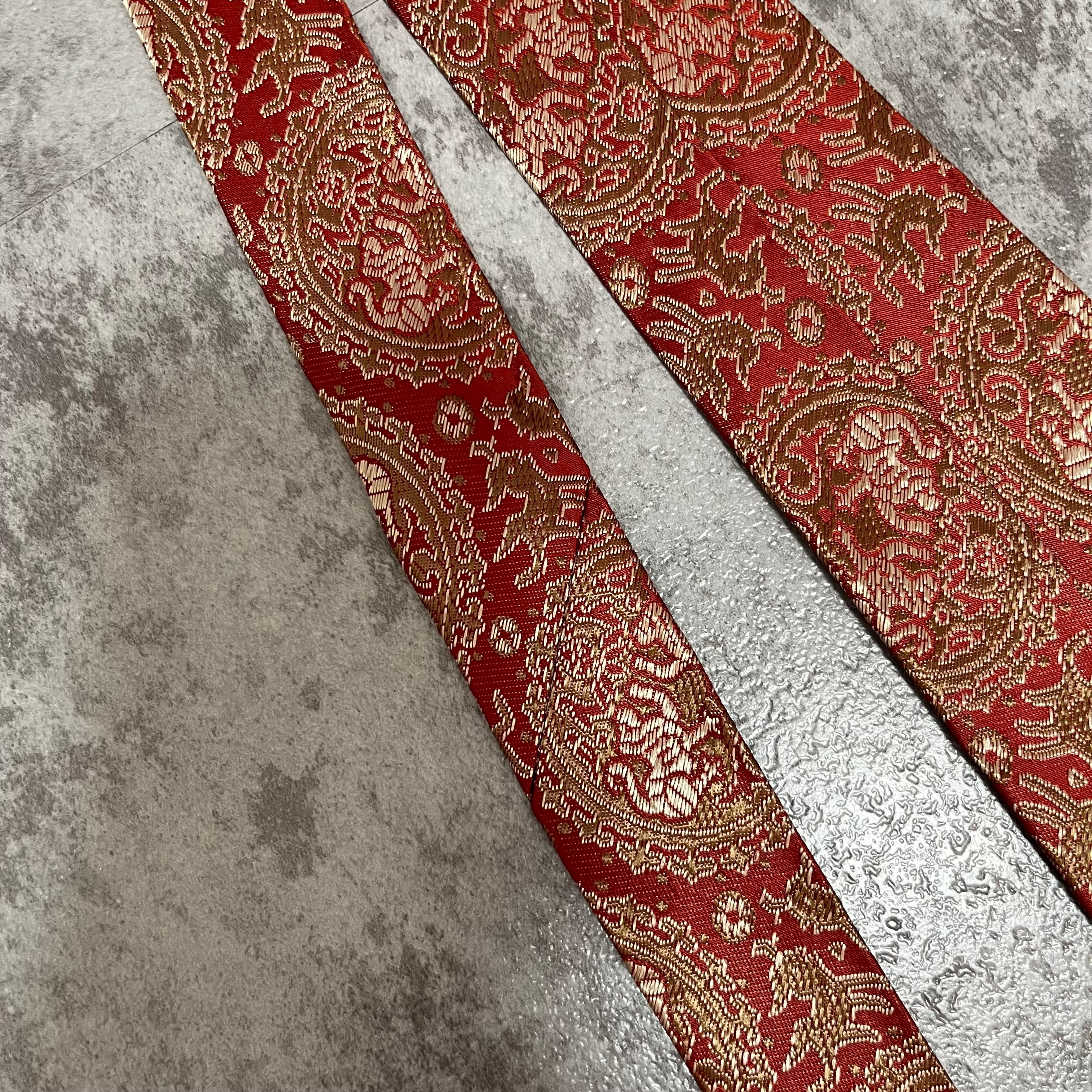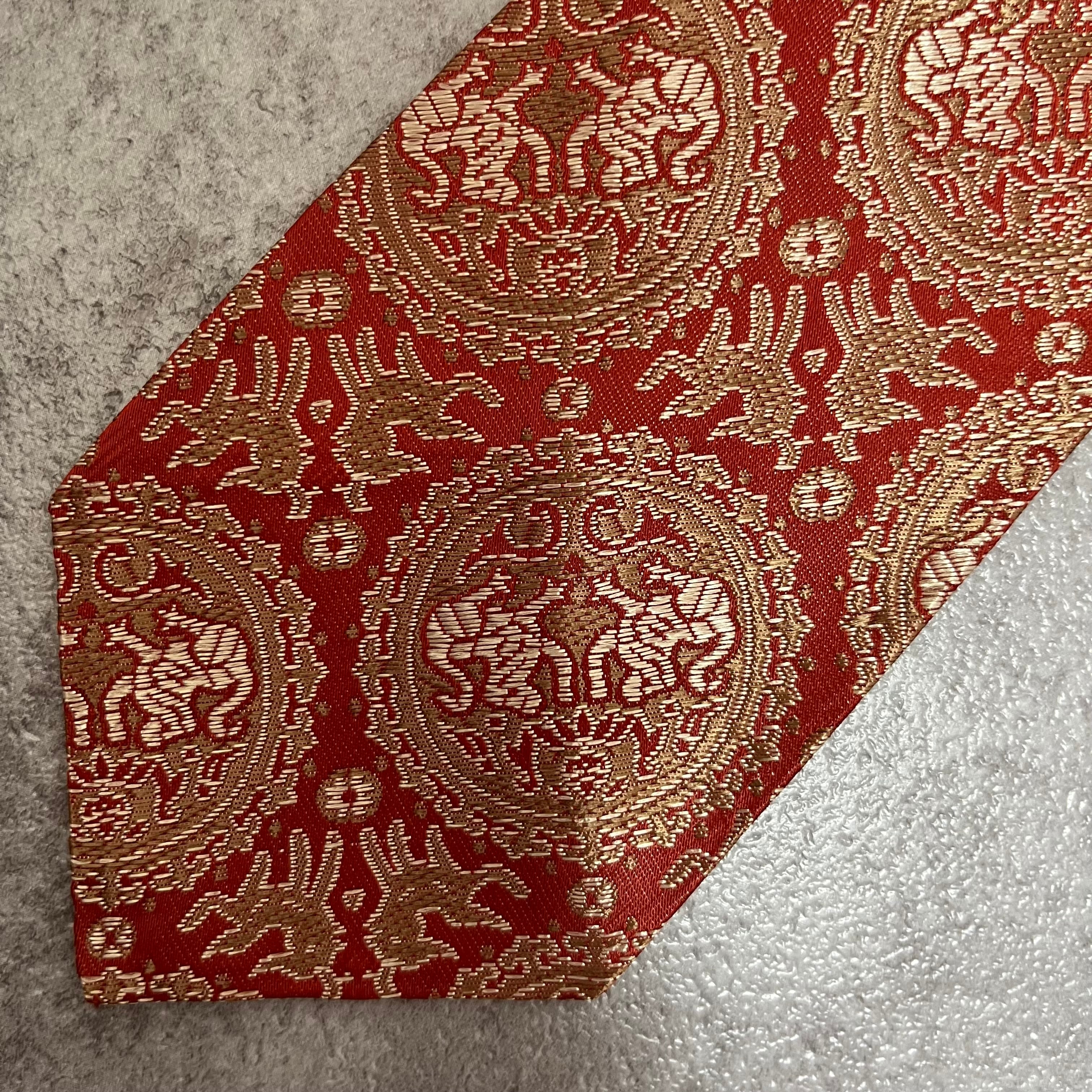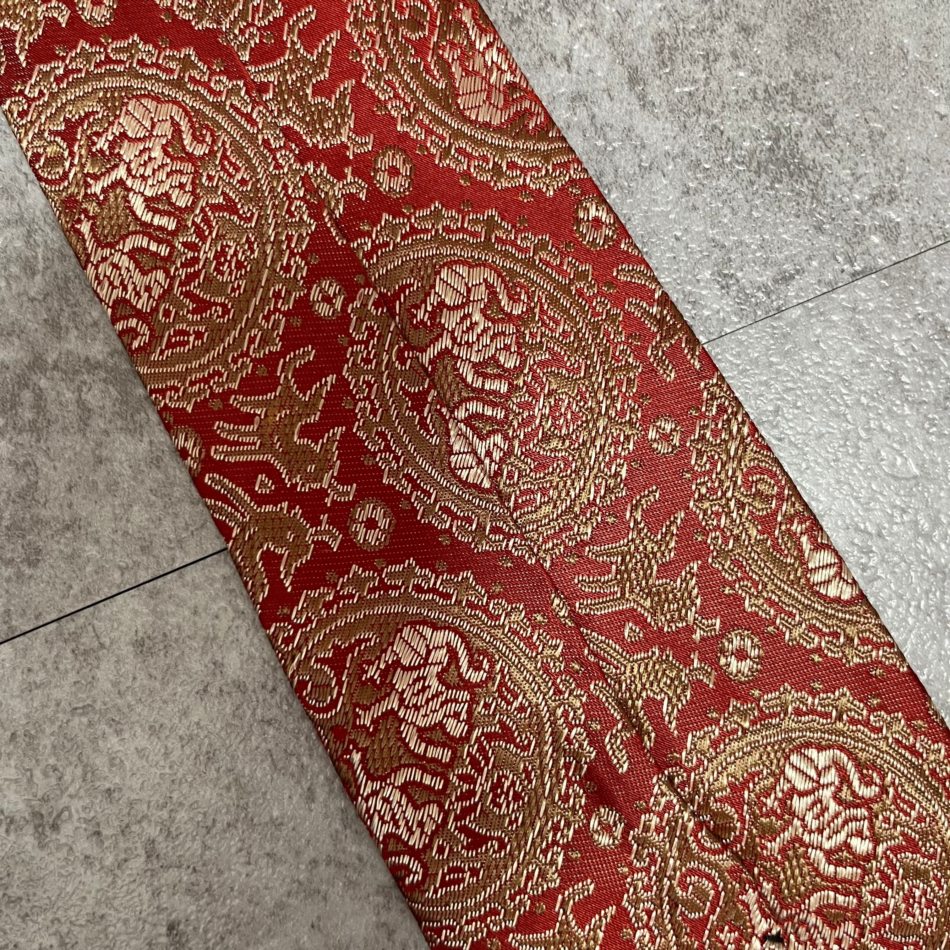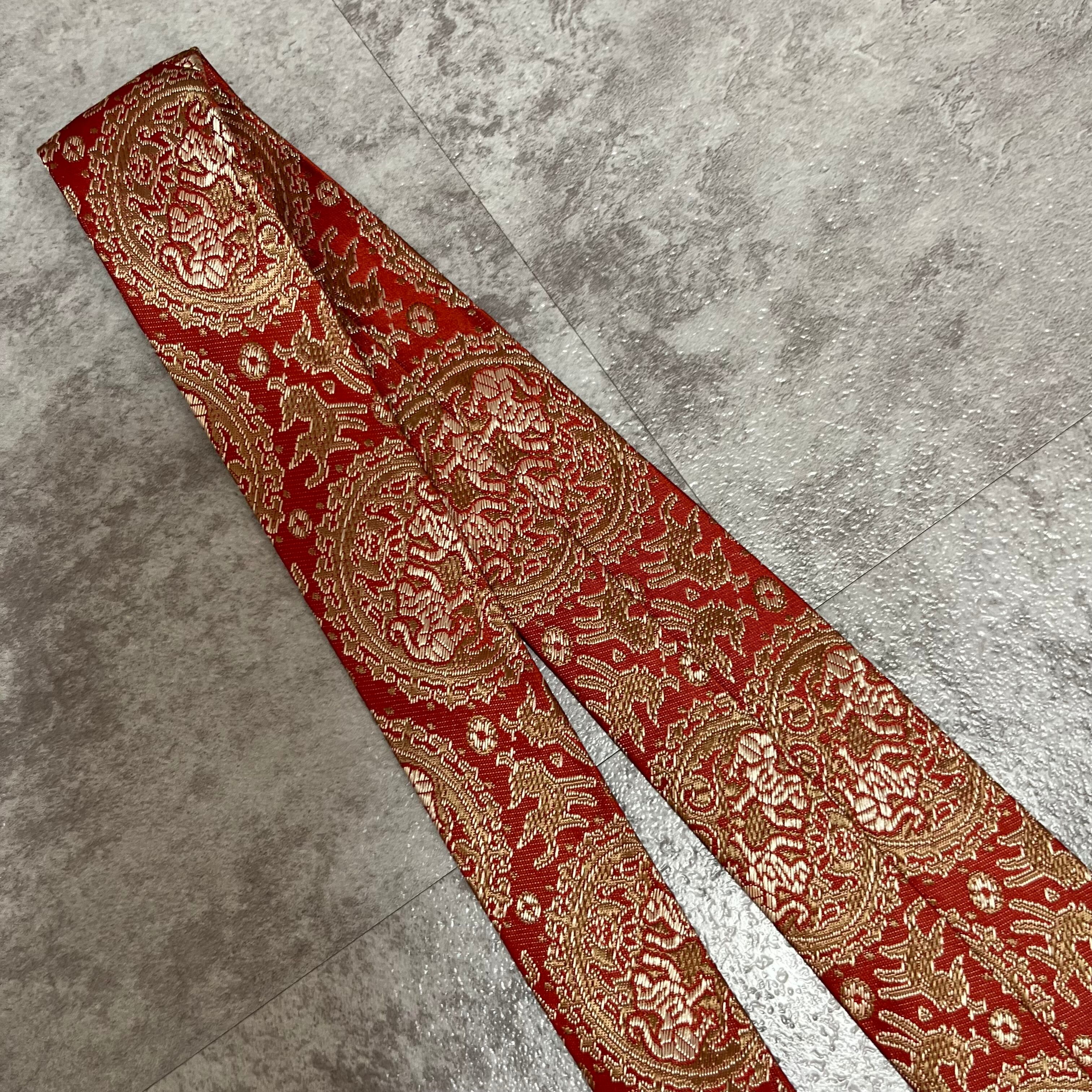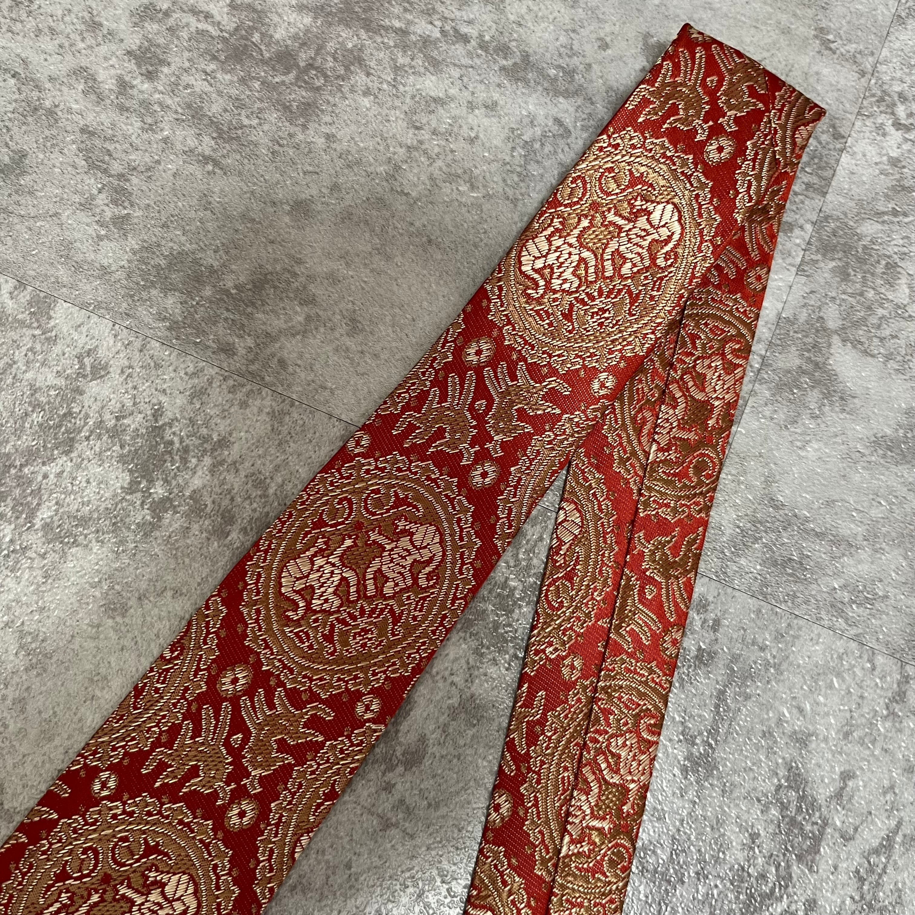【中華風】紋章柄ネクタイ 赤金 ゴールド レッド