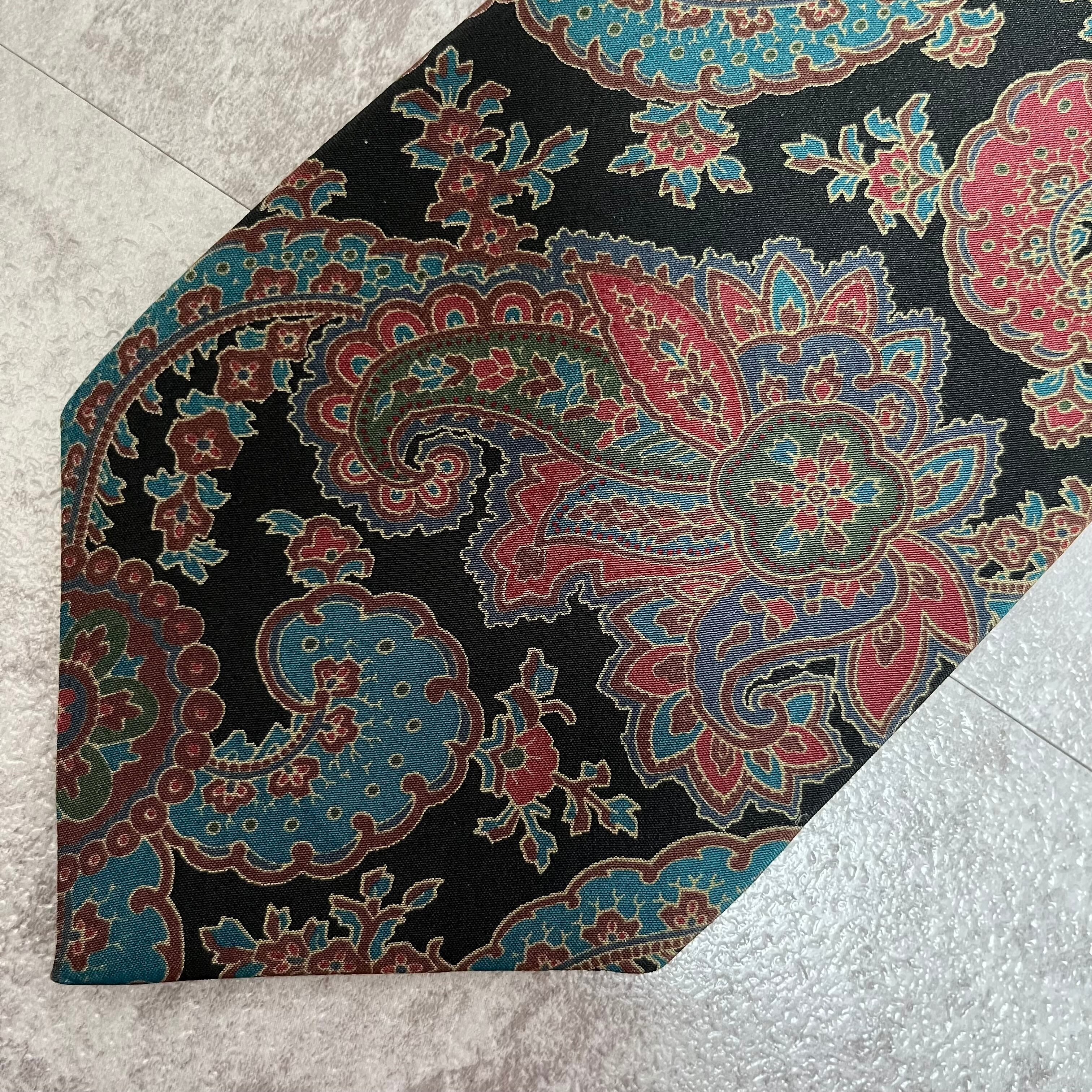 【ペイズリー】マルチカラーペイズリーネクタイ ネイビー レッド グリーン