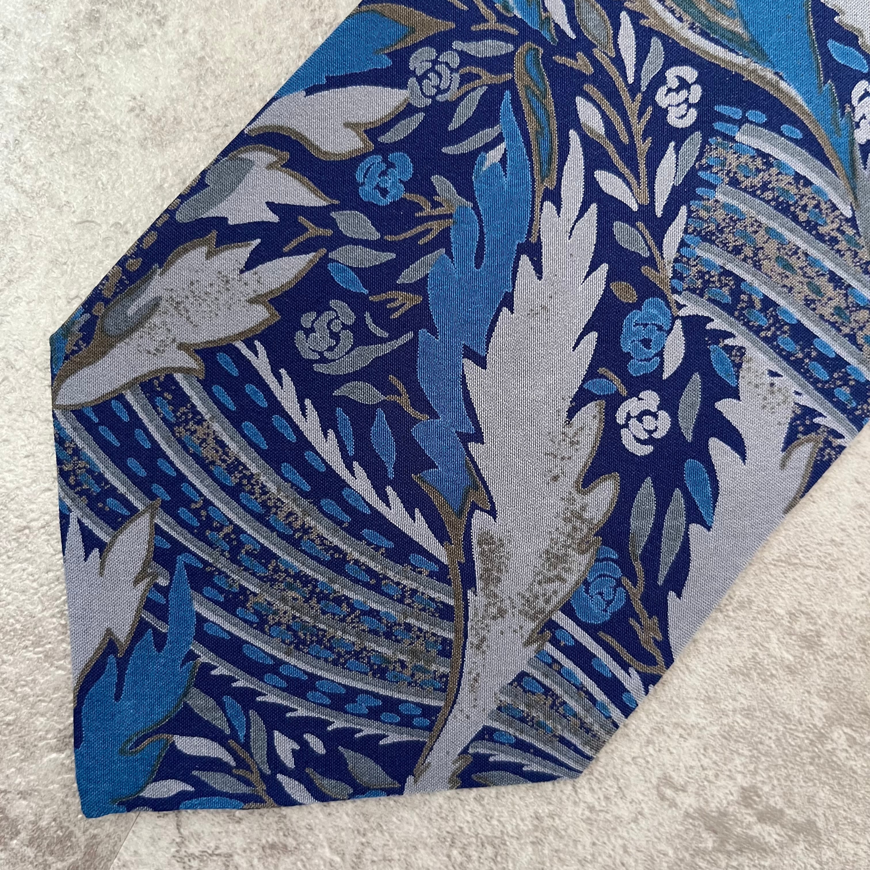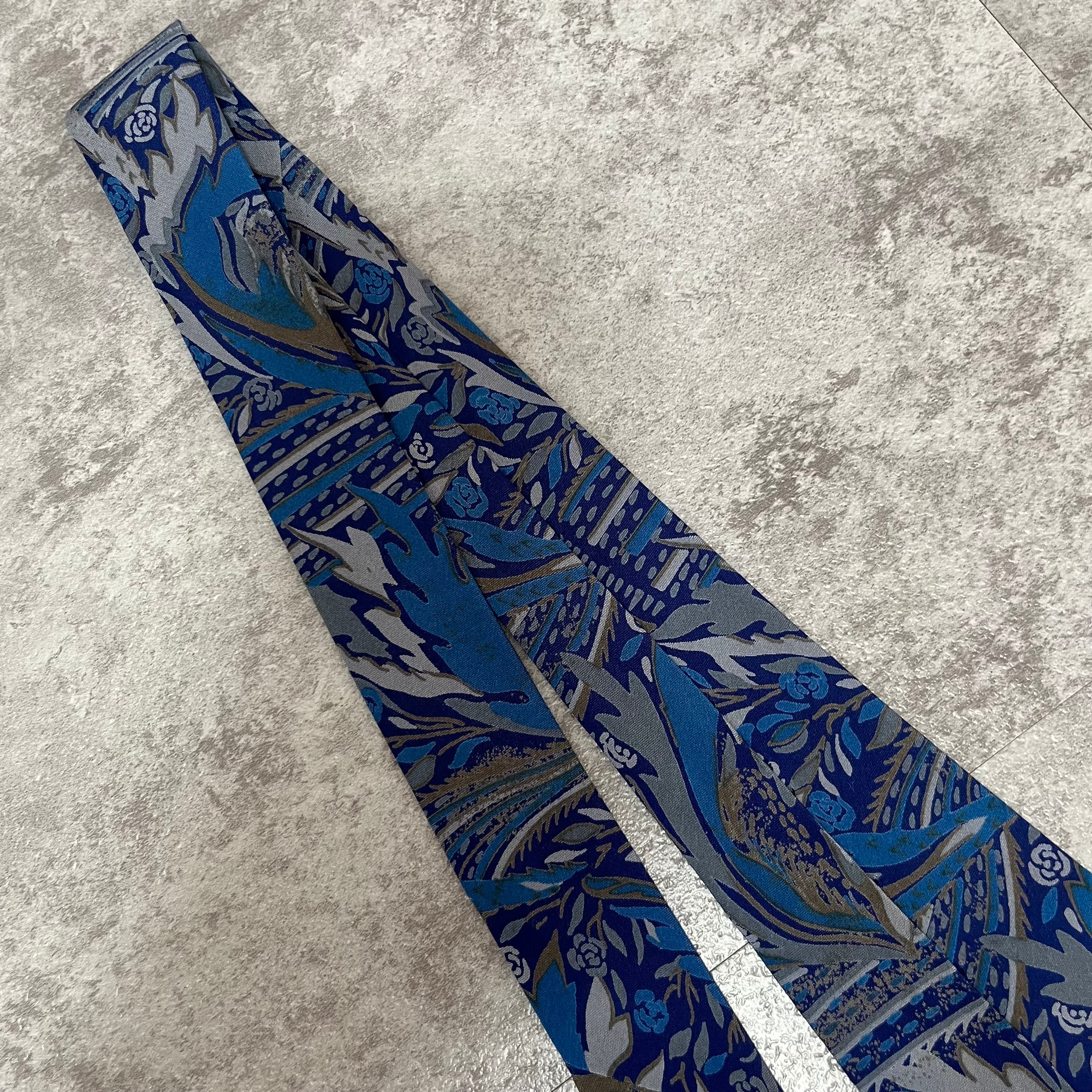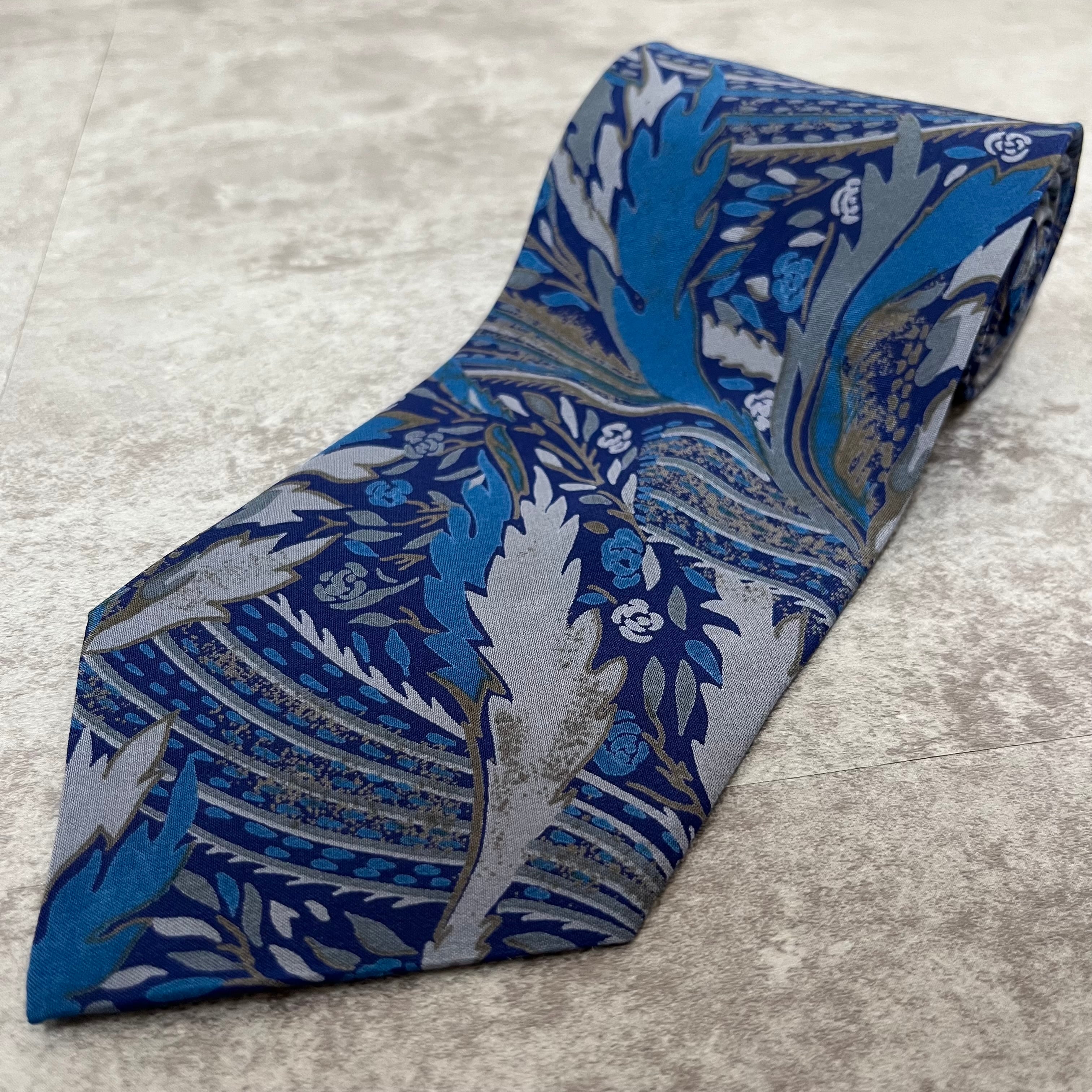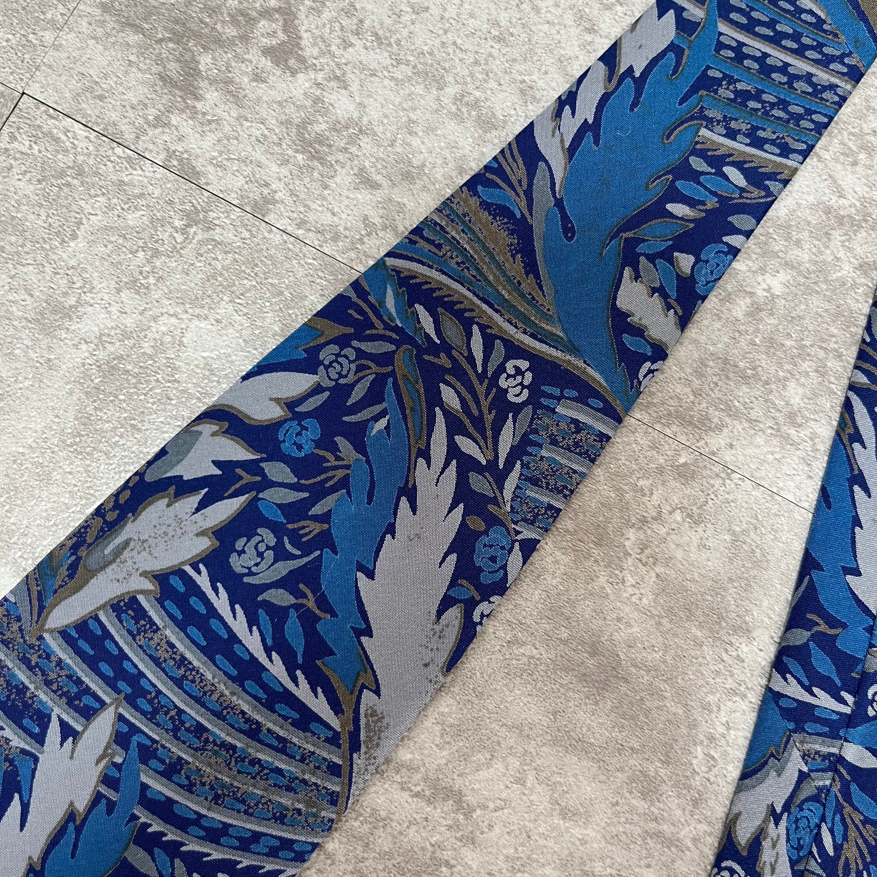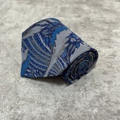 【植物柄】ブルーボタニカルネクタイ 大判植物