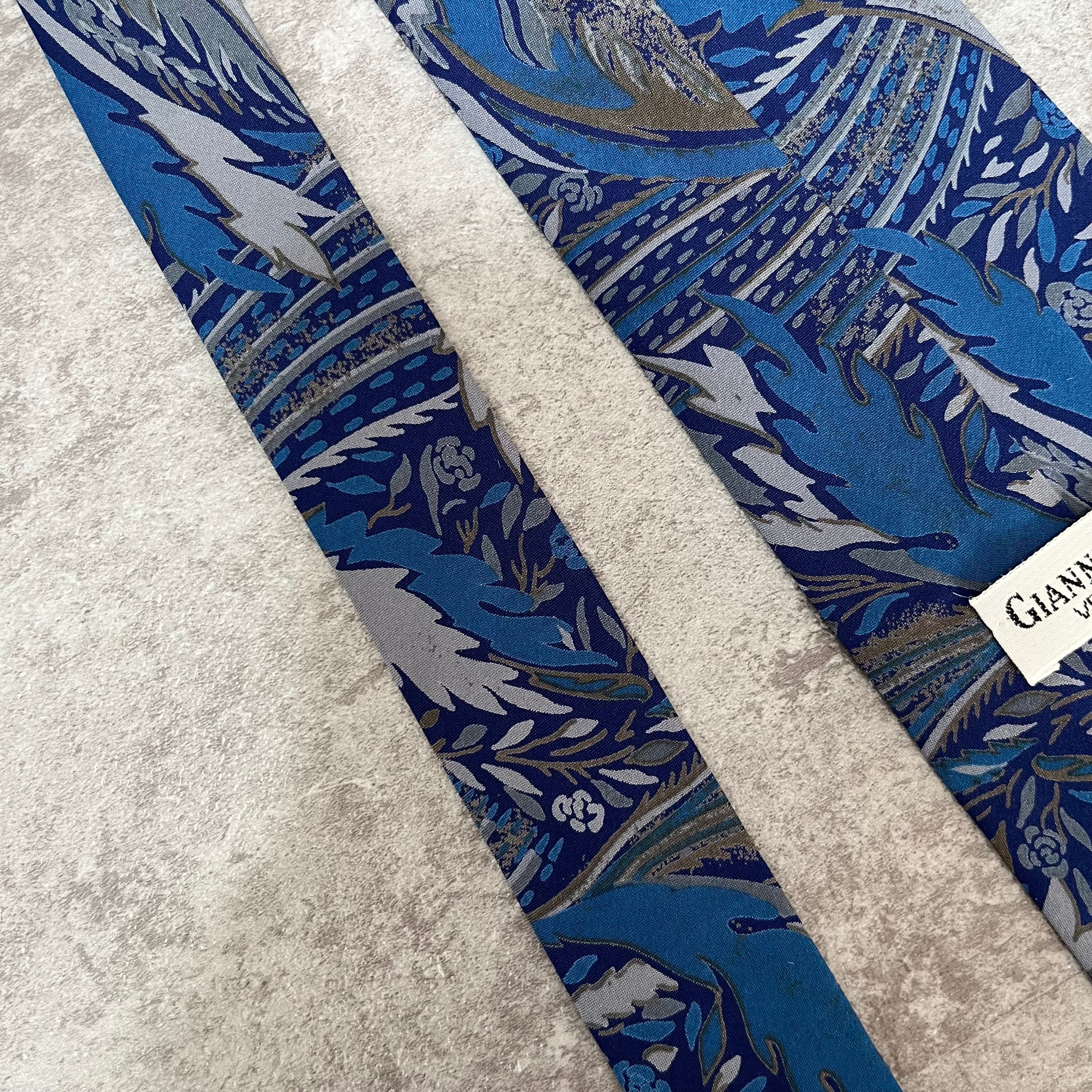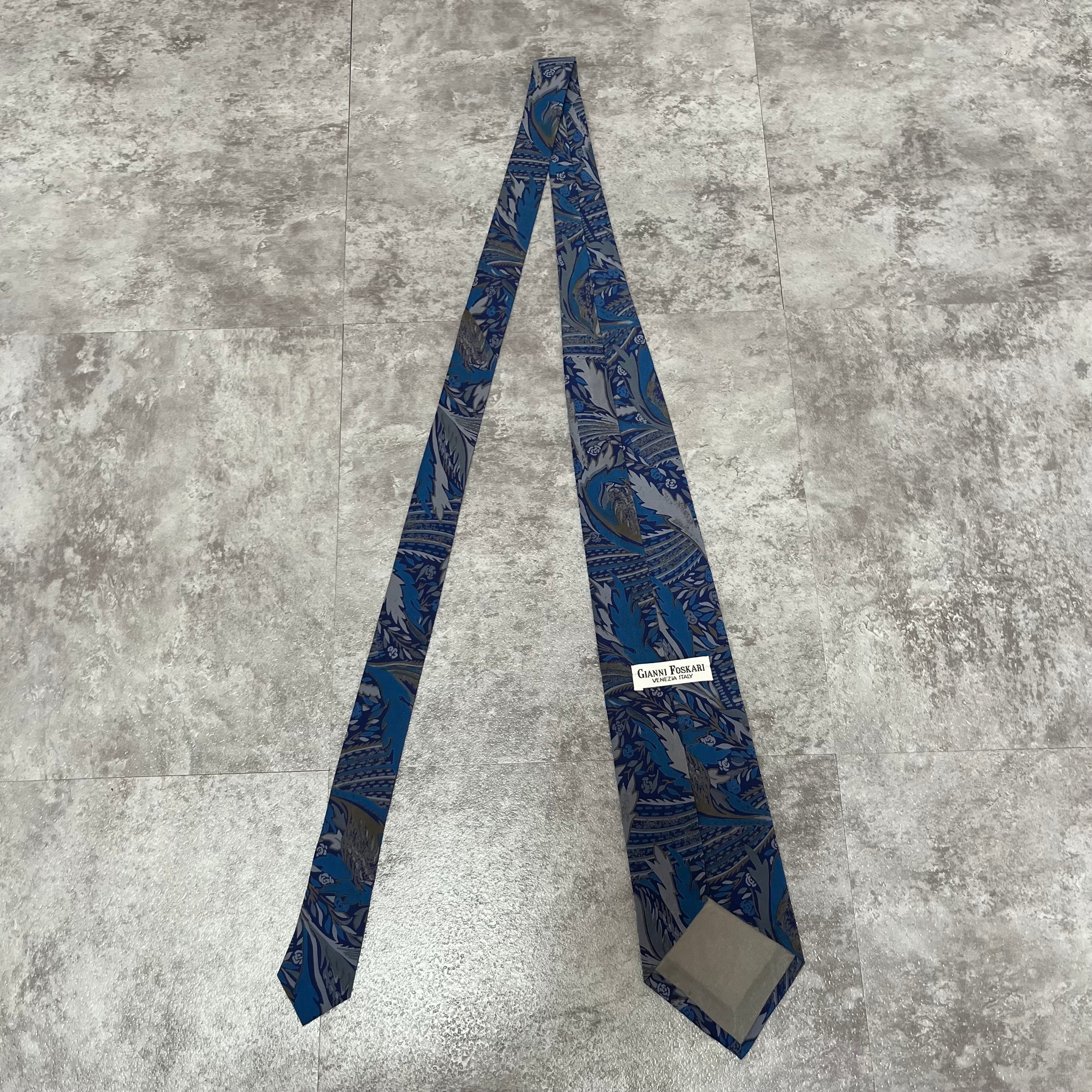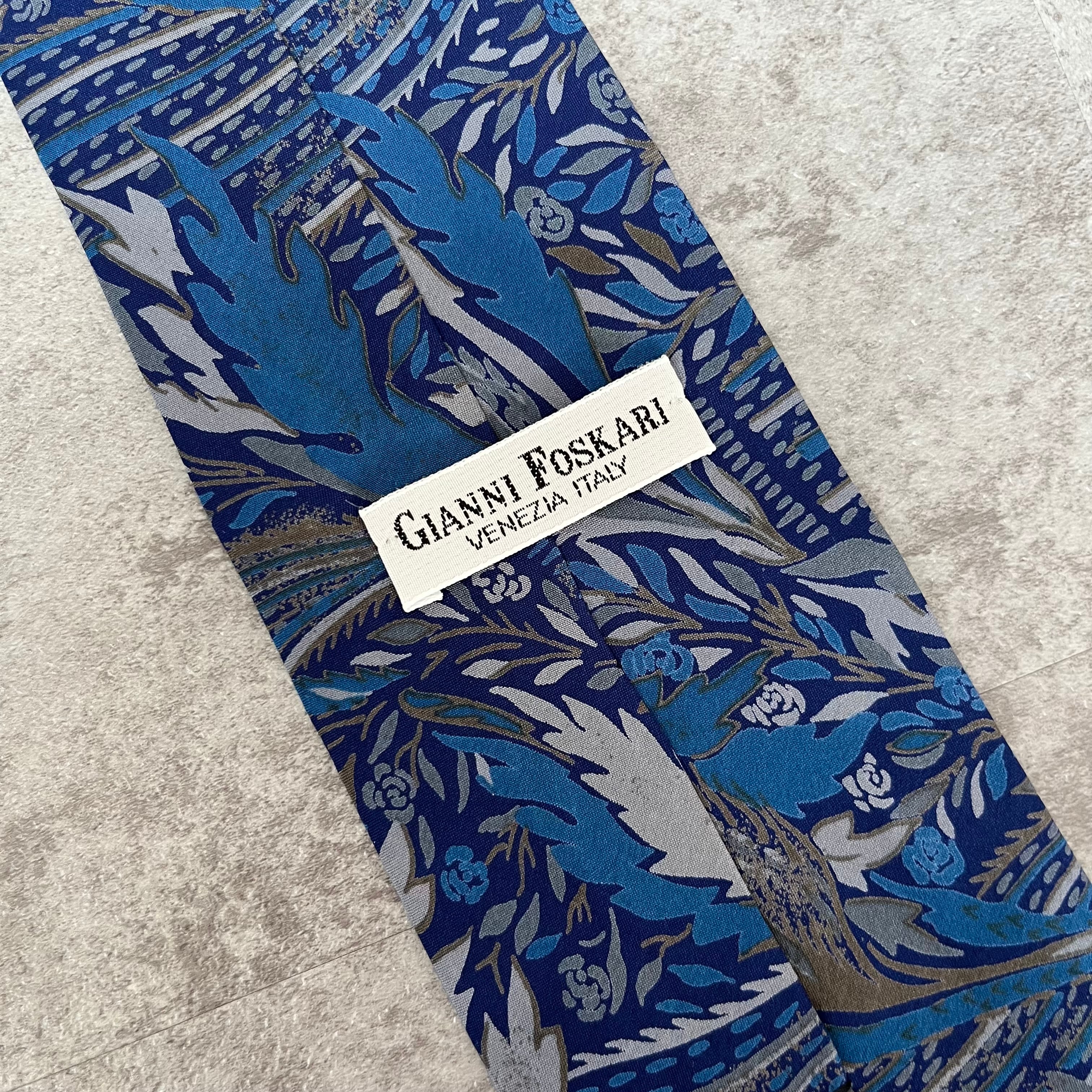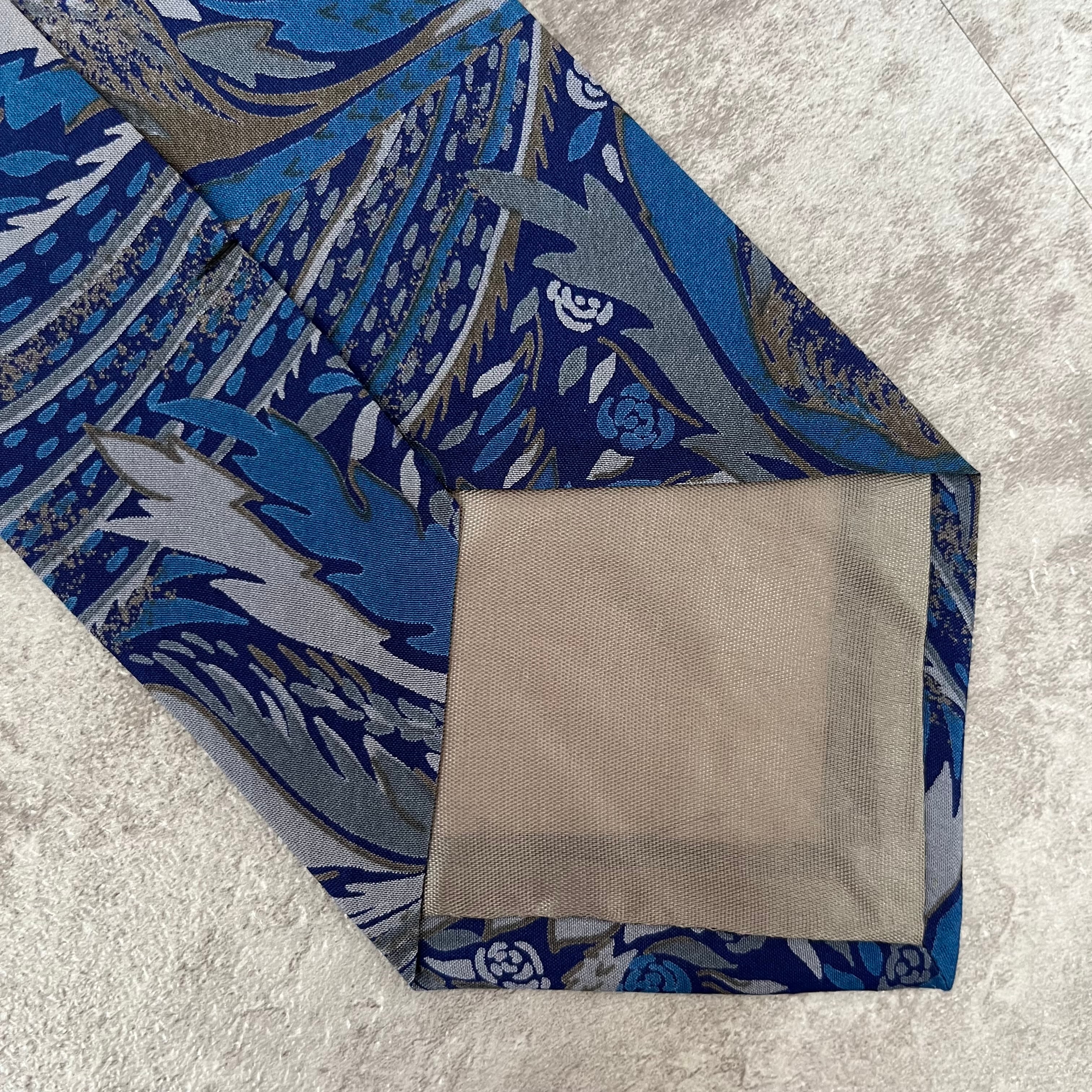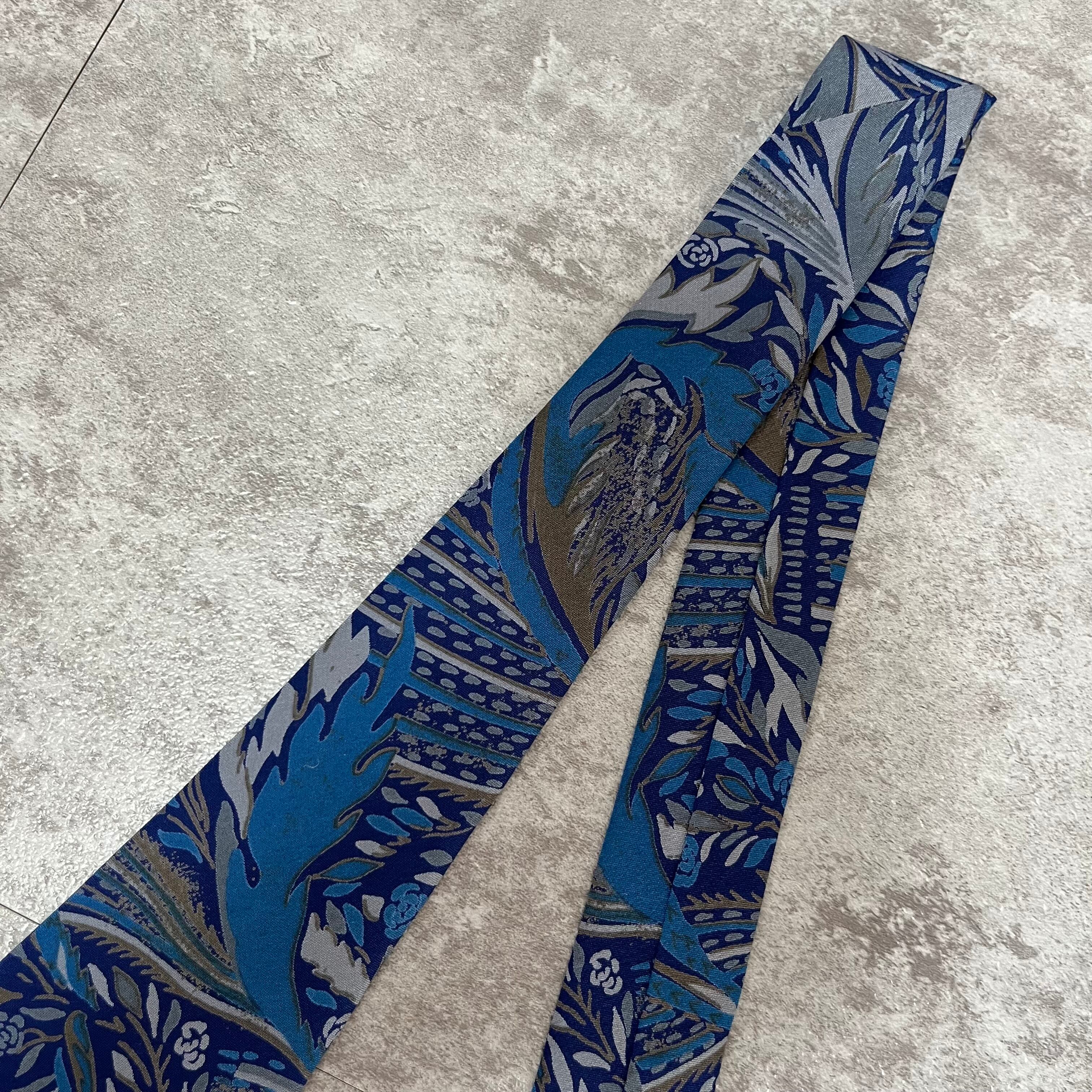 【植物柄】ブルーボタニカルネクタイ 大判植物