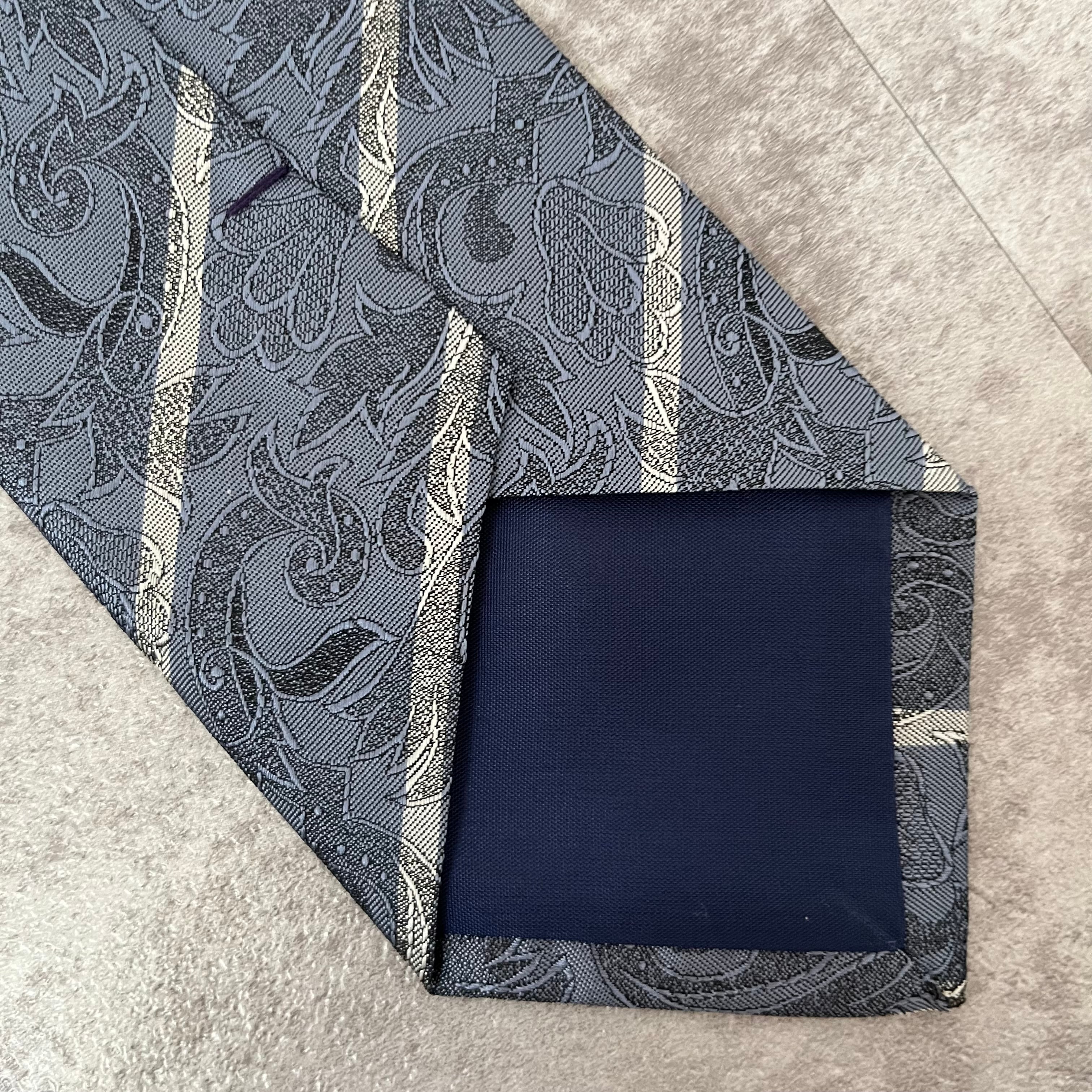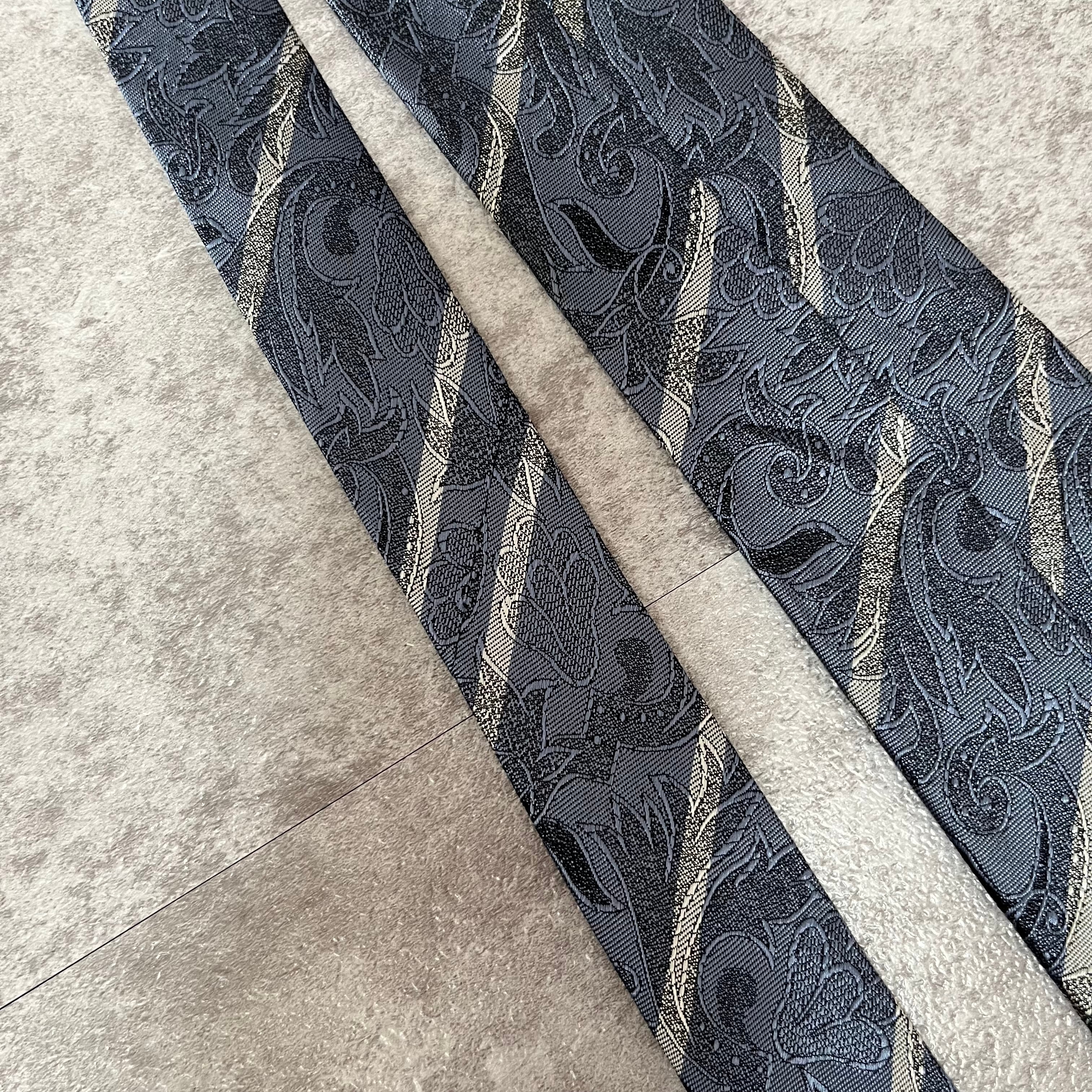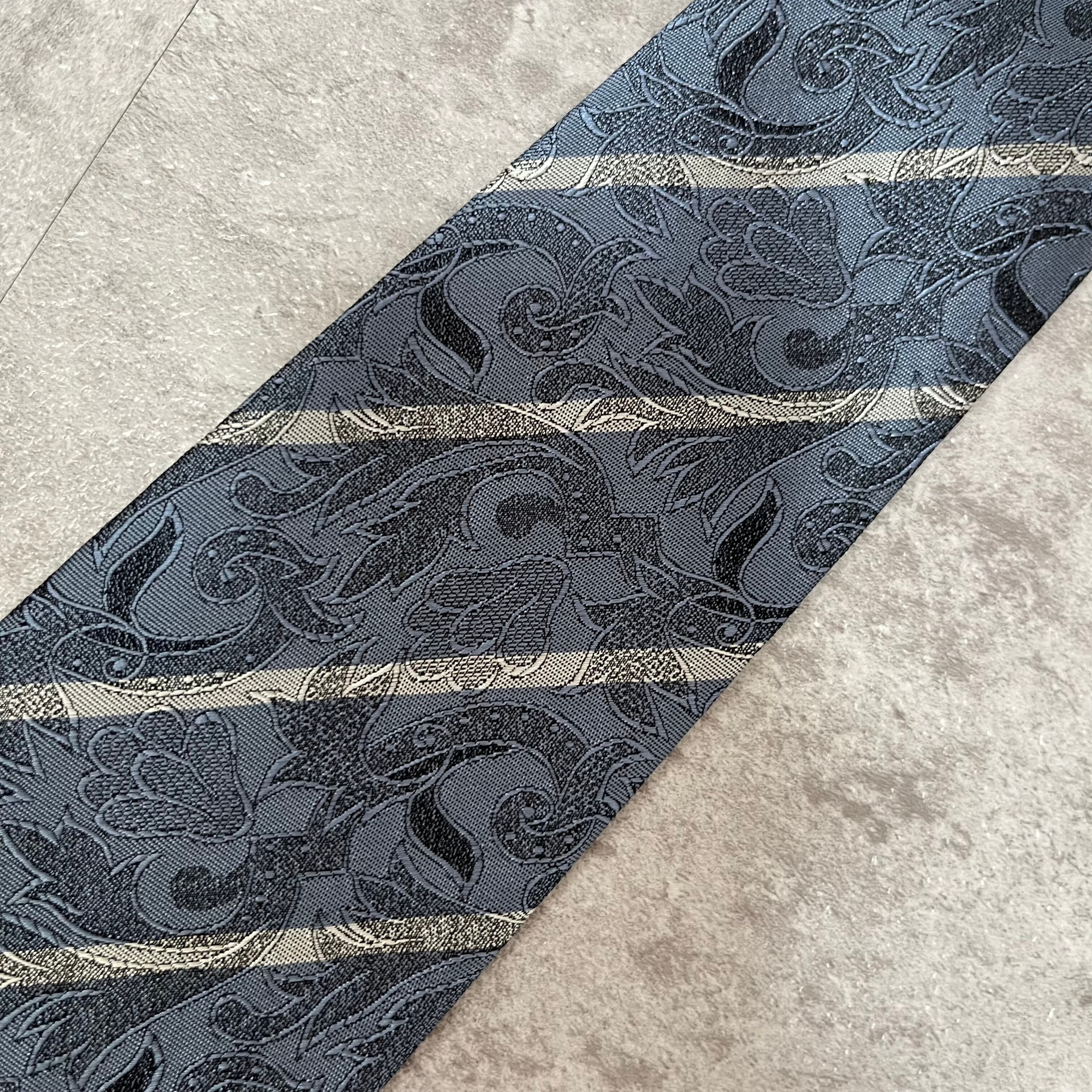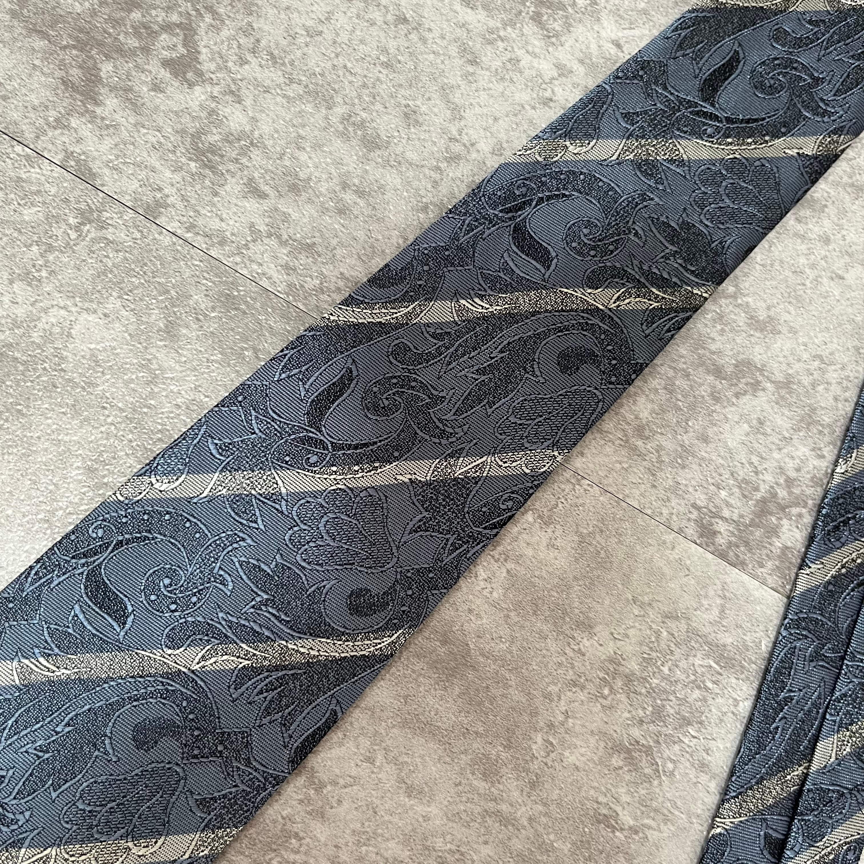 【花柄】花柄×ストライプネクタイ ブルー シャドウボタニカル シャドウ花柄 ペイズリー バイカラー 光沢