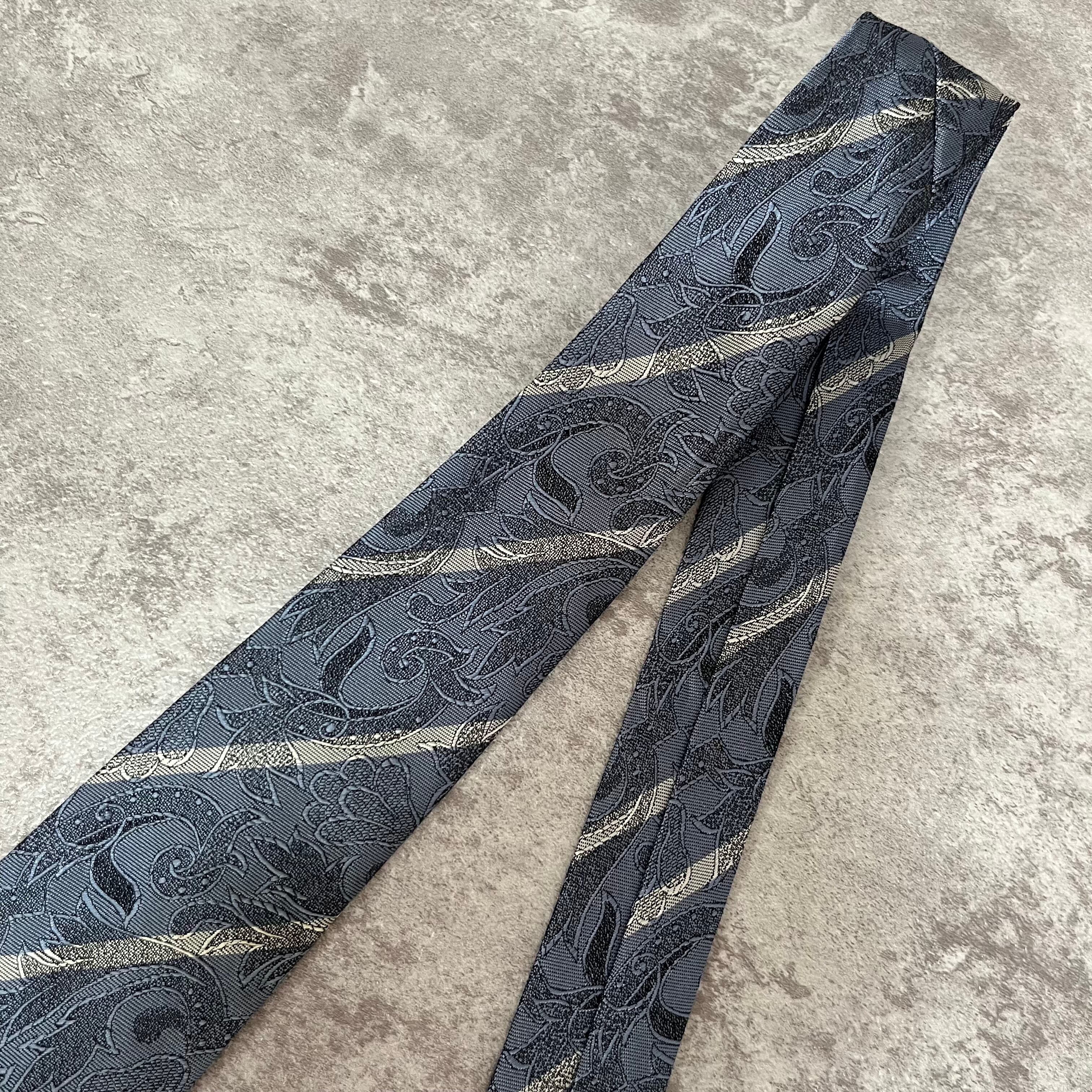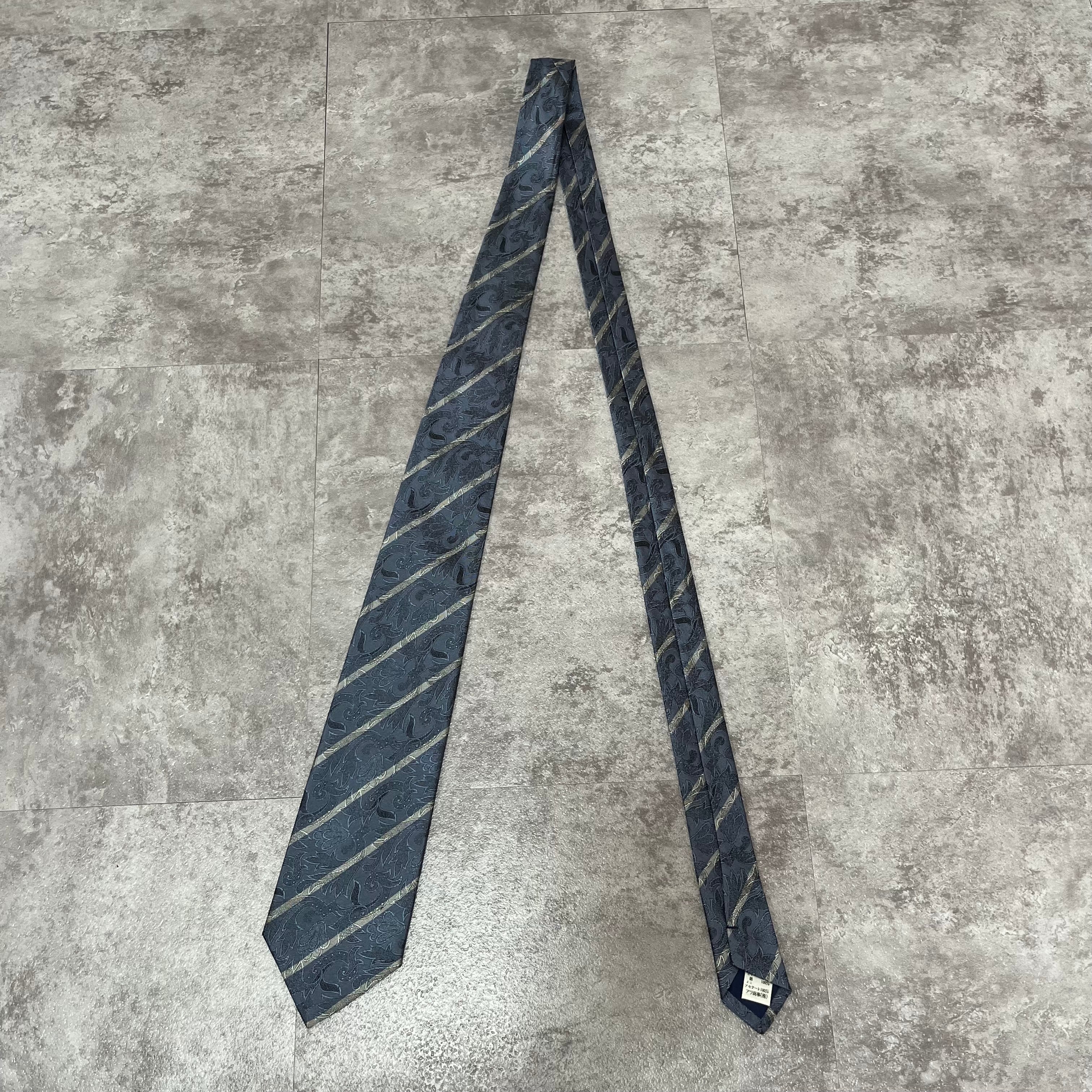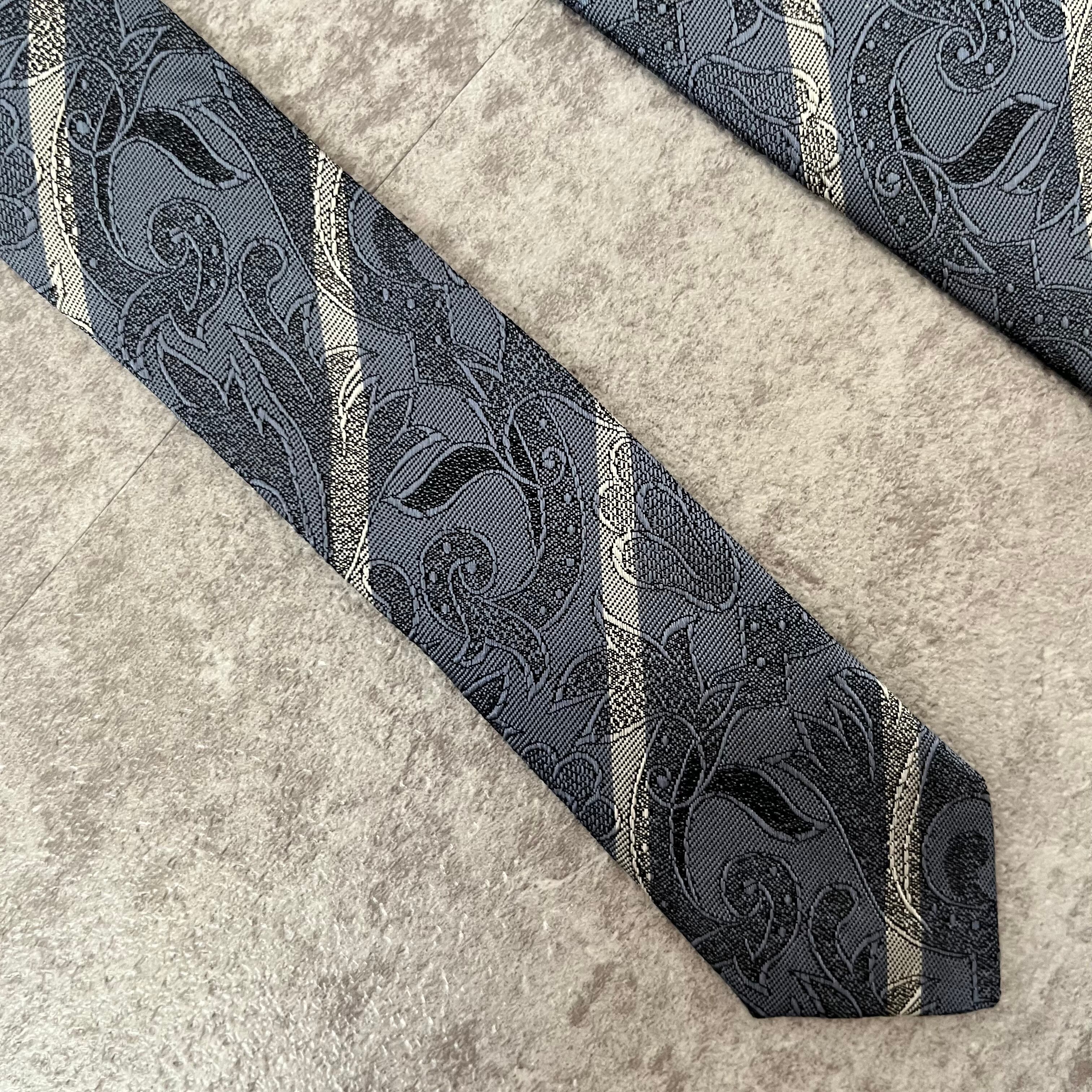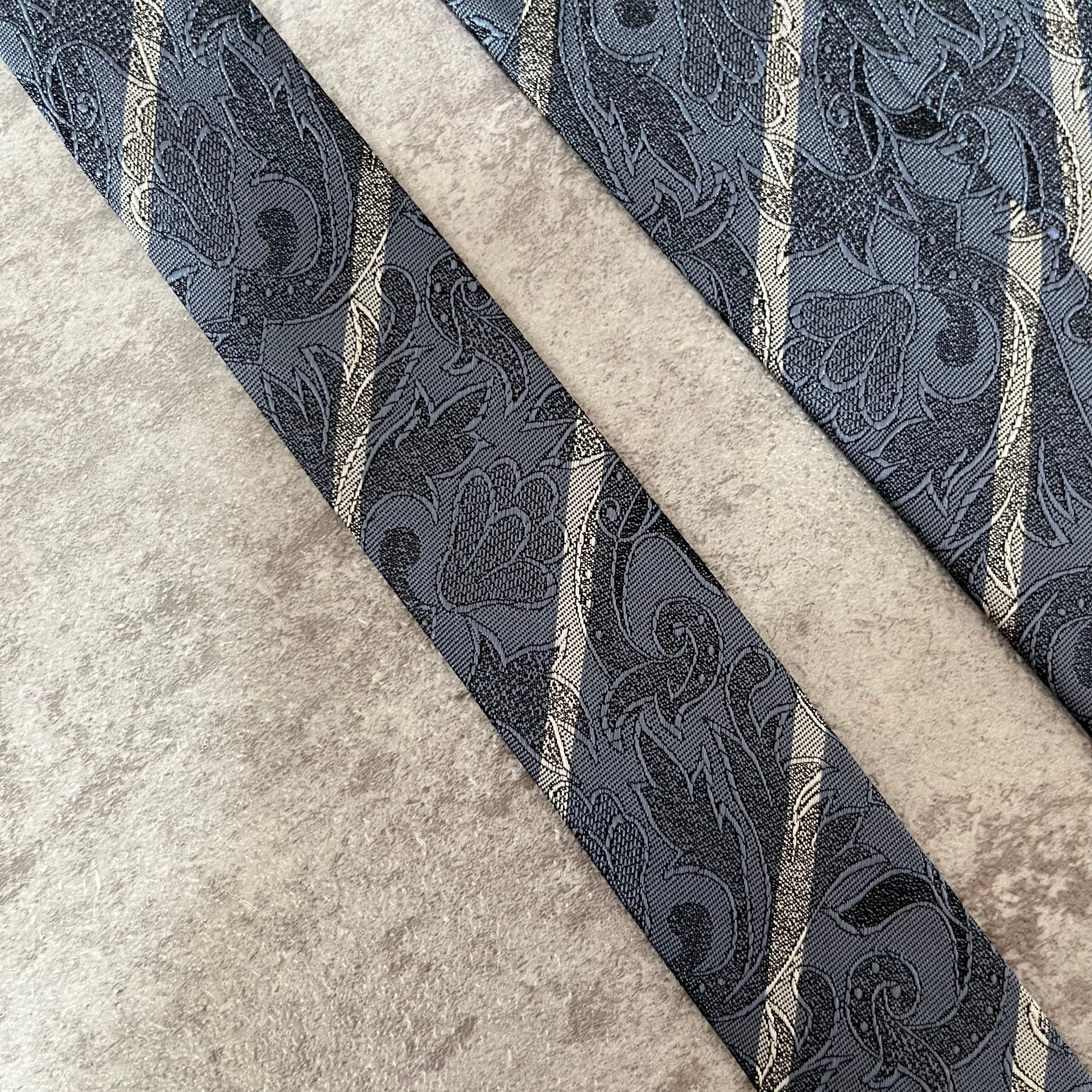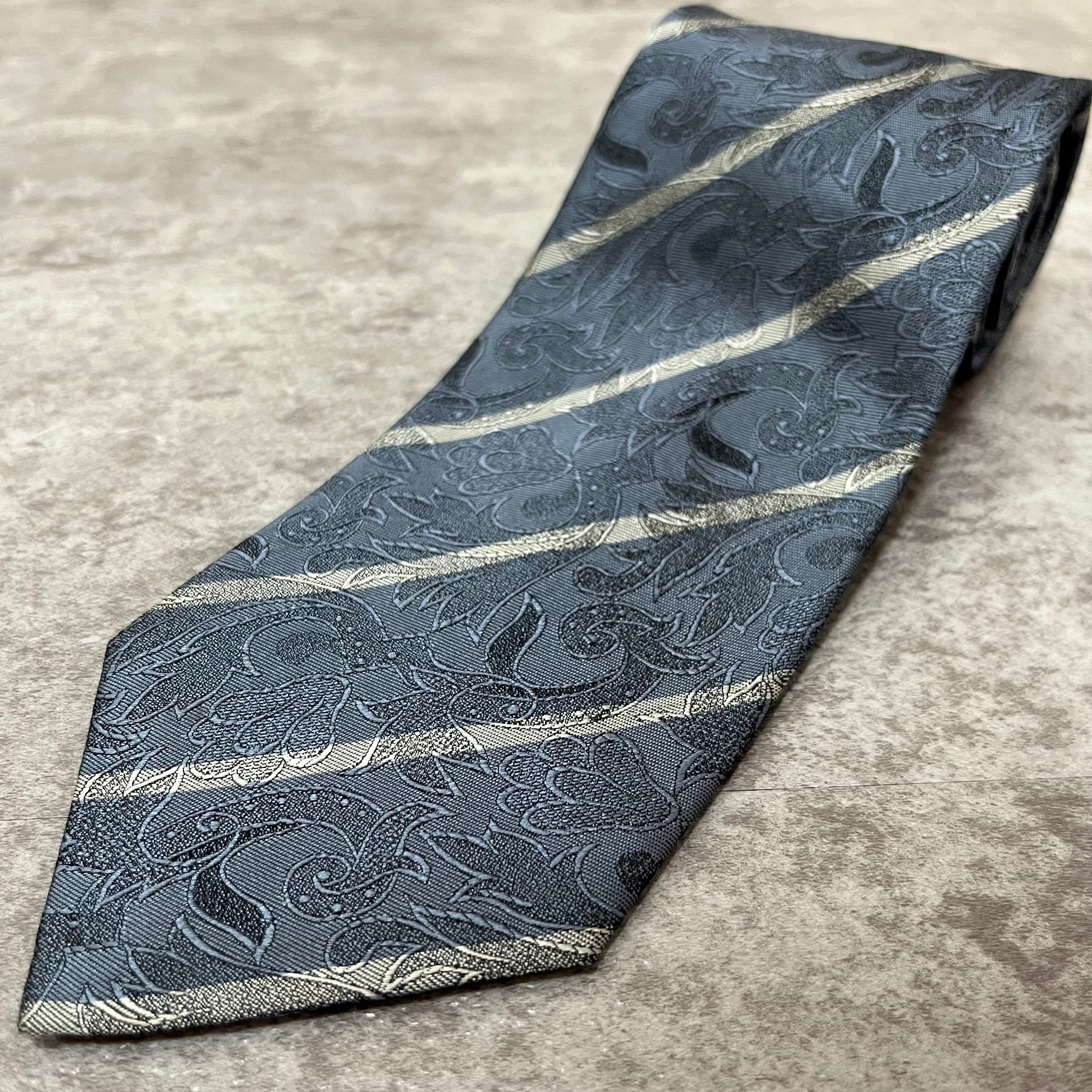 【花柄】花柄×ストライプネクタイ ブルー シャドウボタニカル シャドウ花柄 ペイズリー バイカラー 光沢