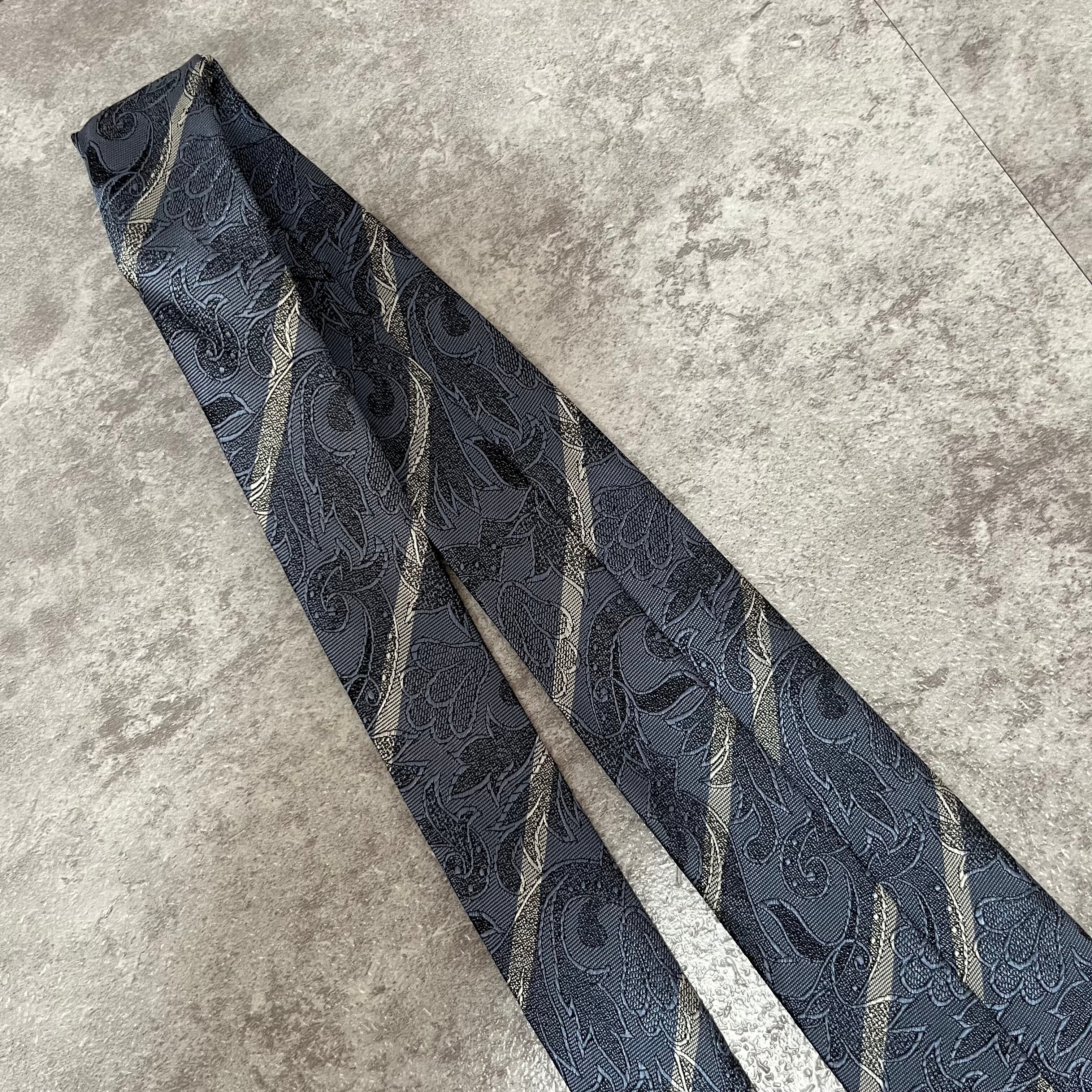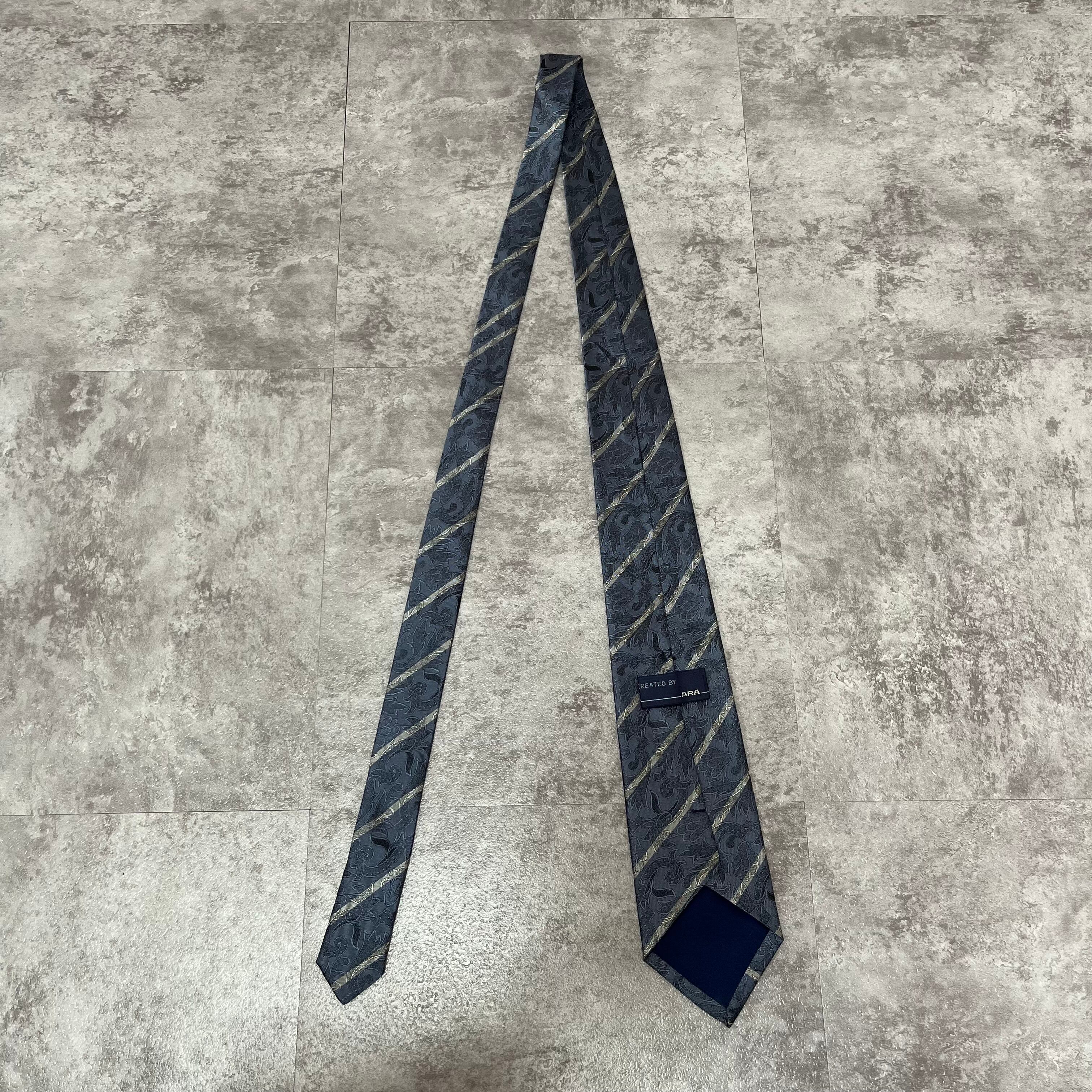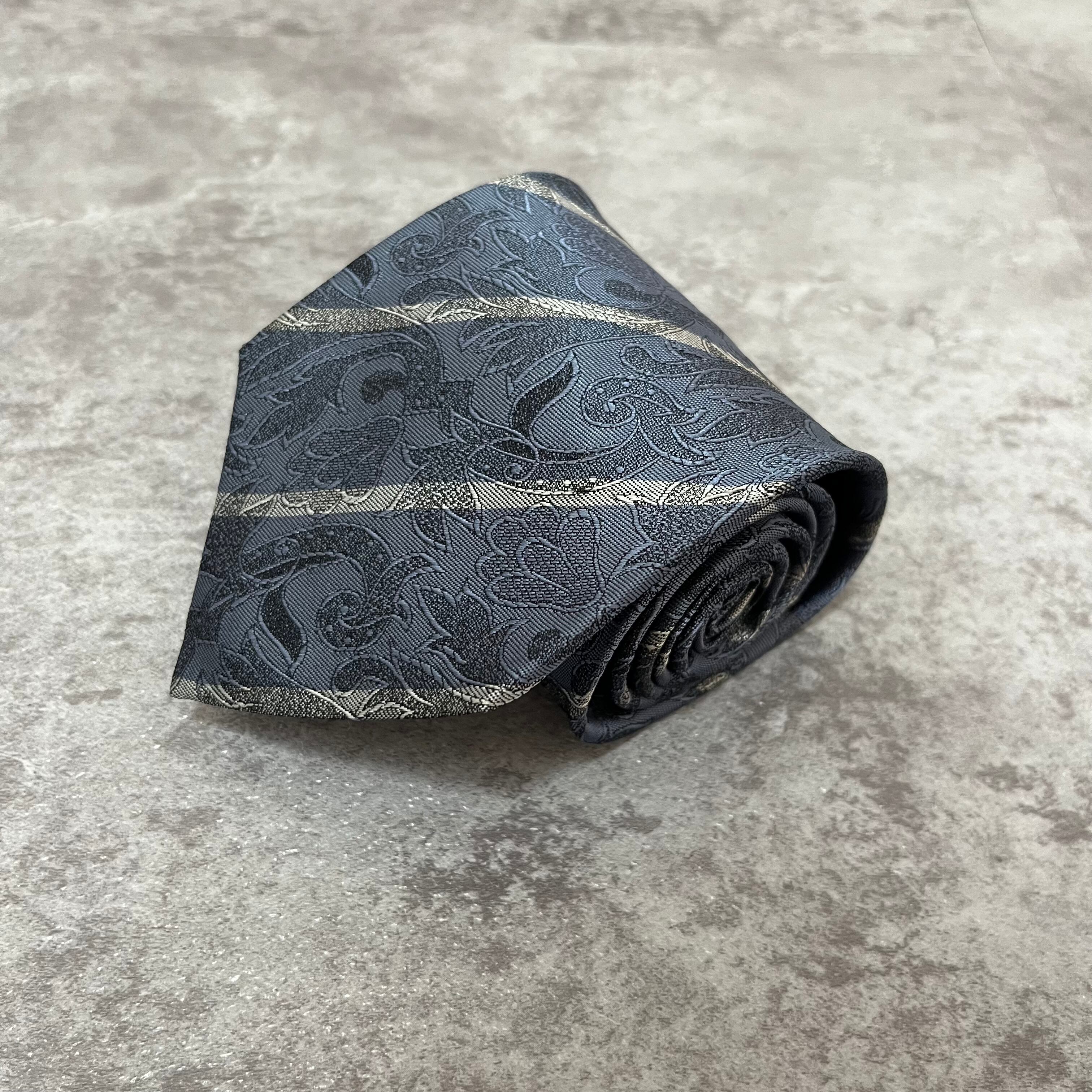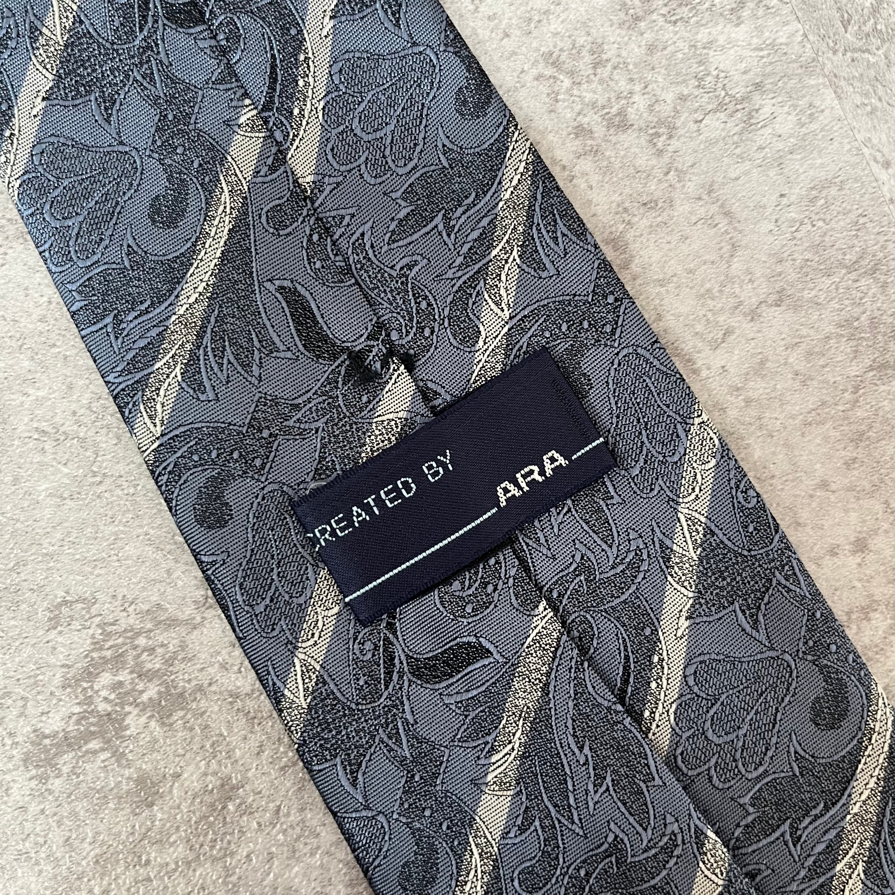 【花柄】花柄×ストライプネクタイ ブルー シャドウボタニカル シャドウ花柄 ペイズリー バイカラー 光沢