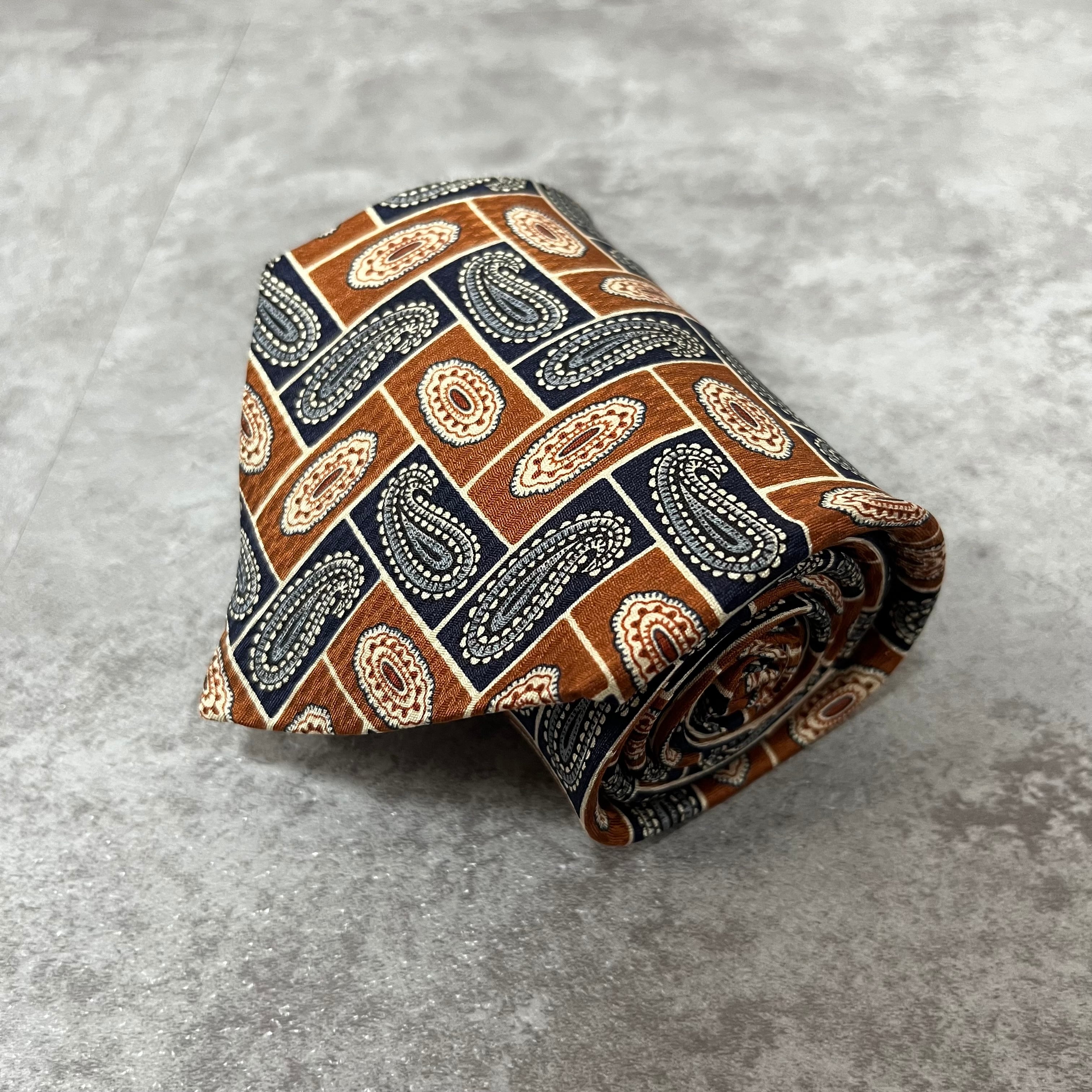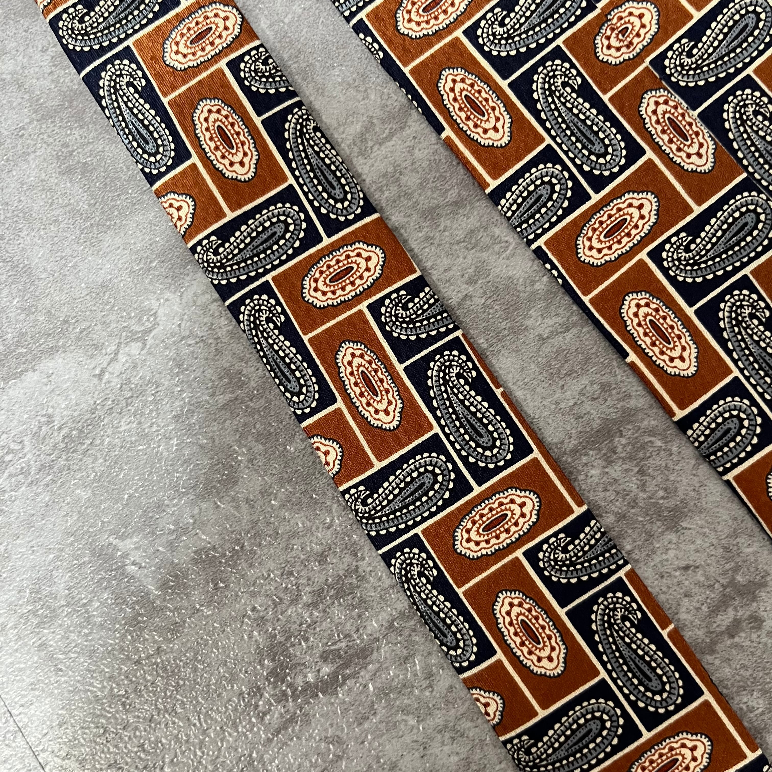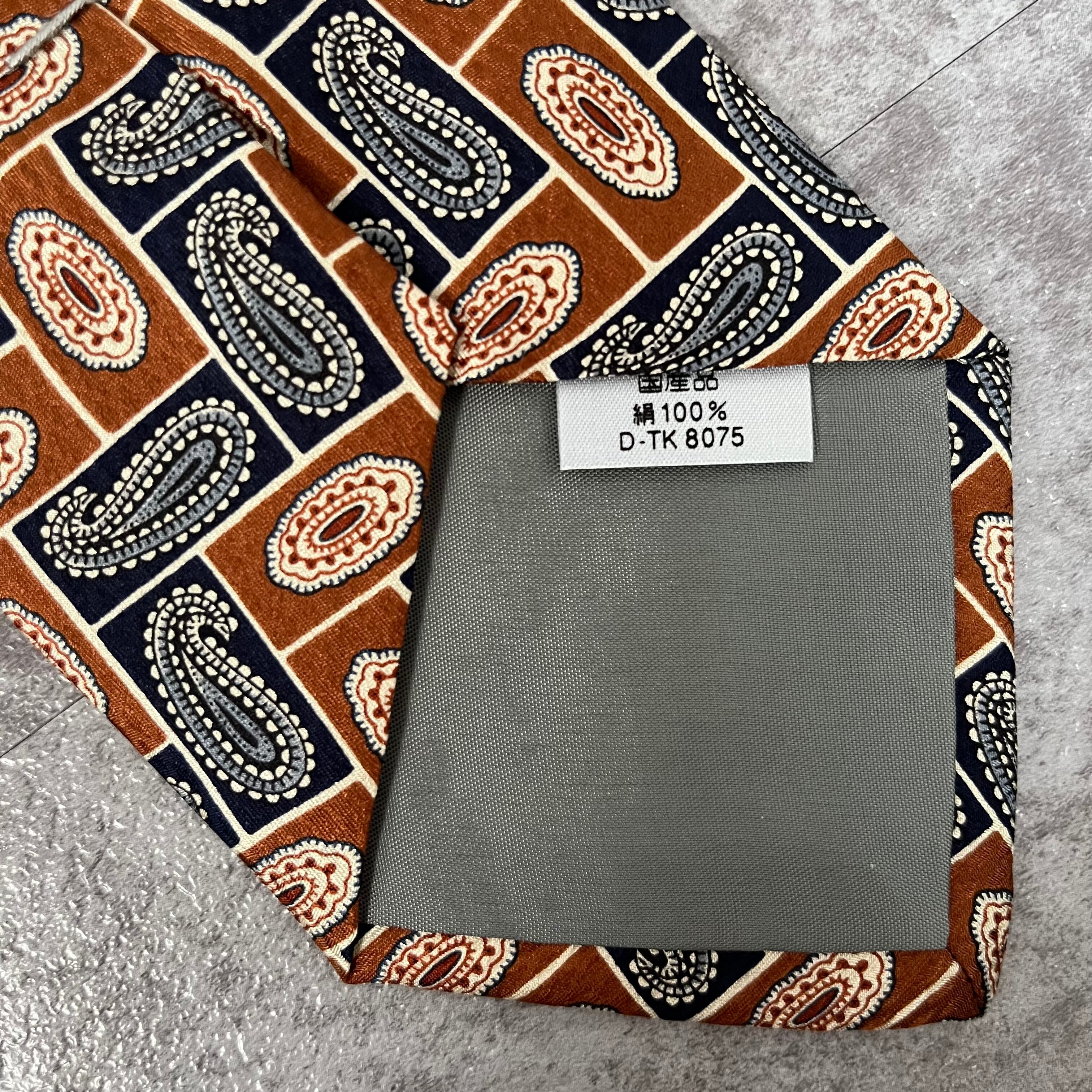 【ペイズリー】ペイズリー柄パターンネクタイ バイカラー ネイビー オレンジ