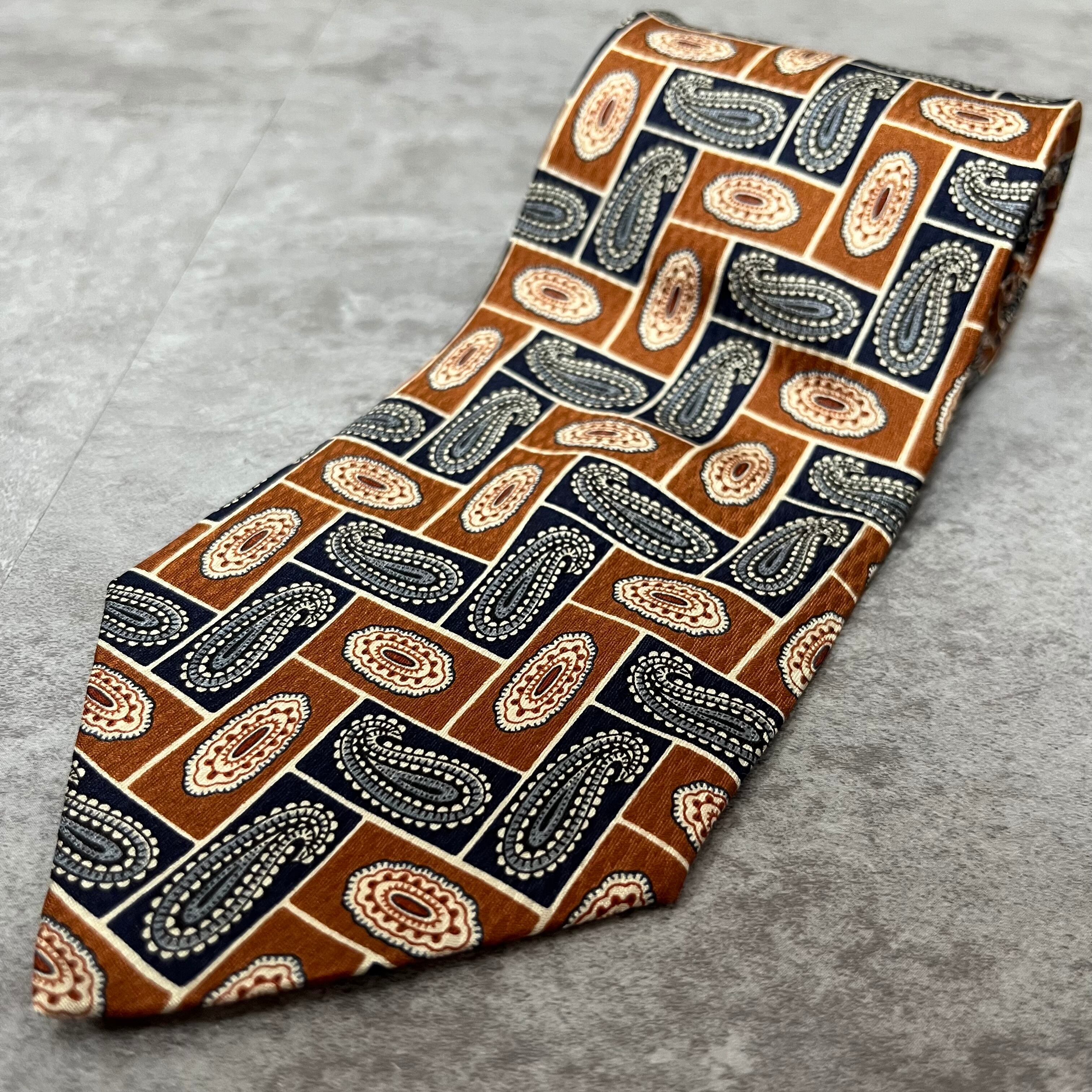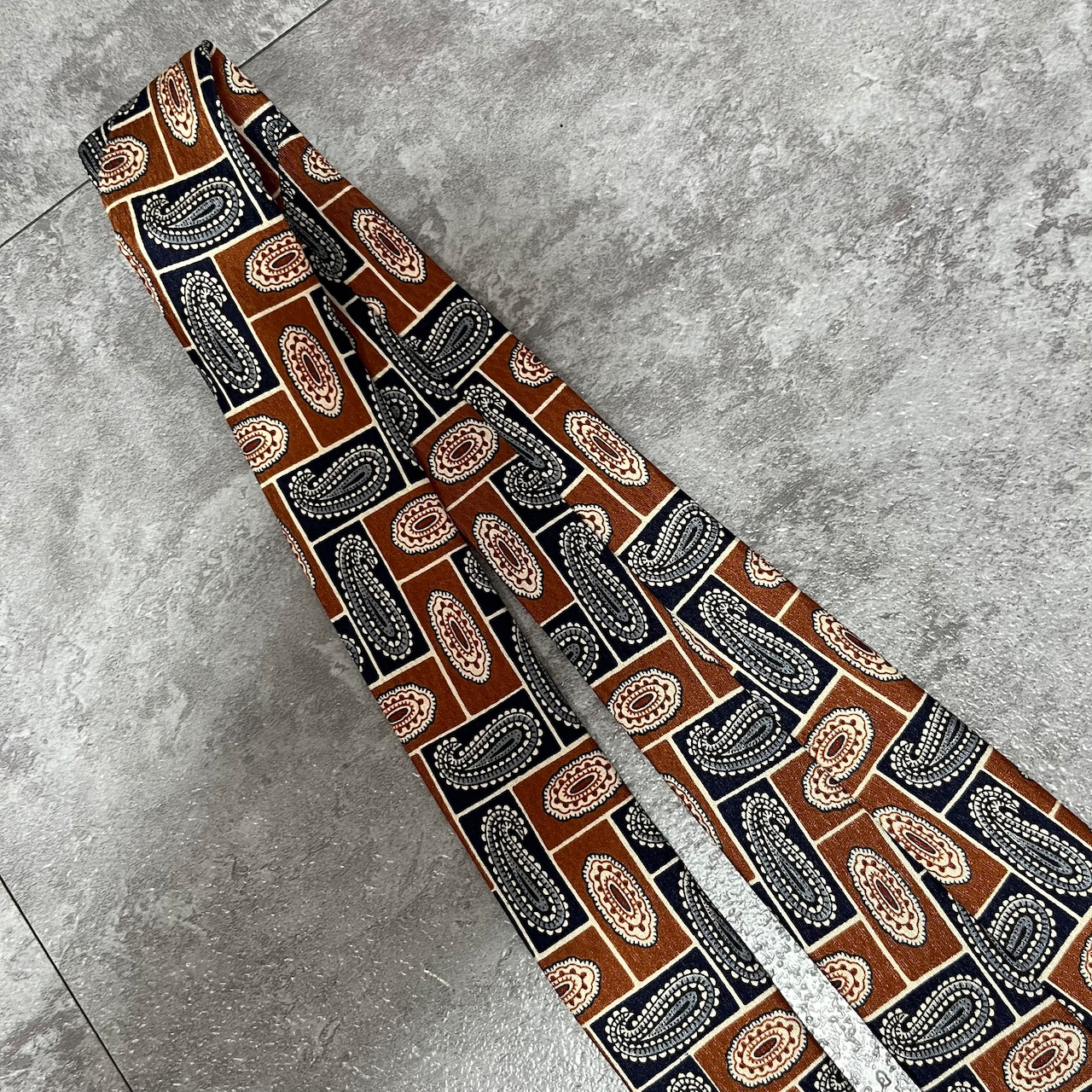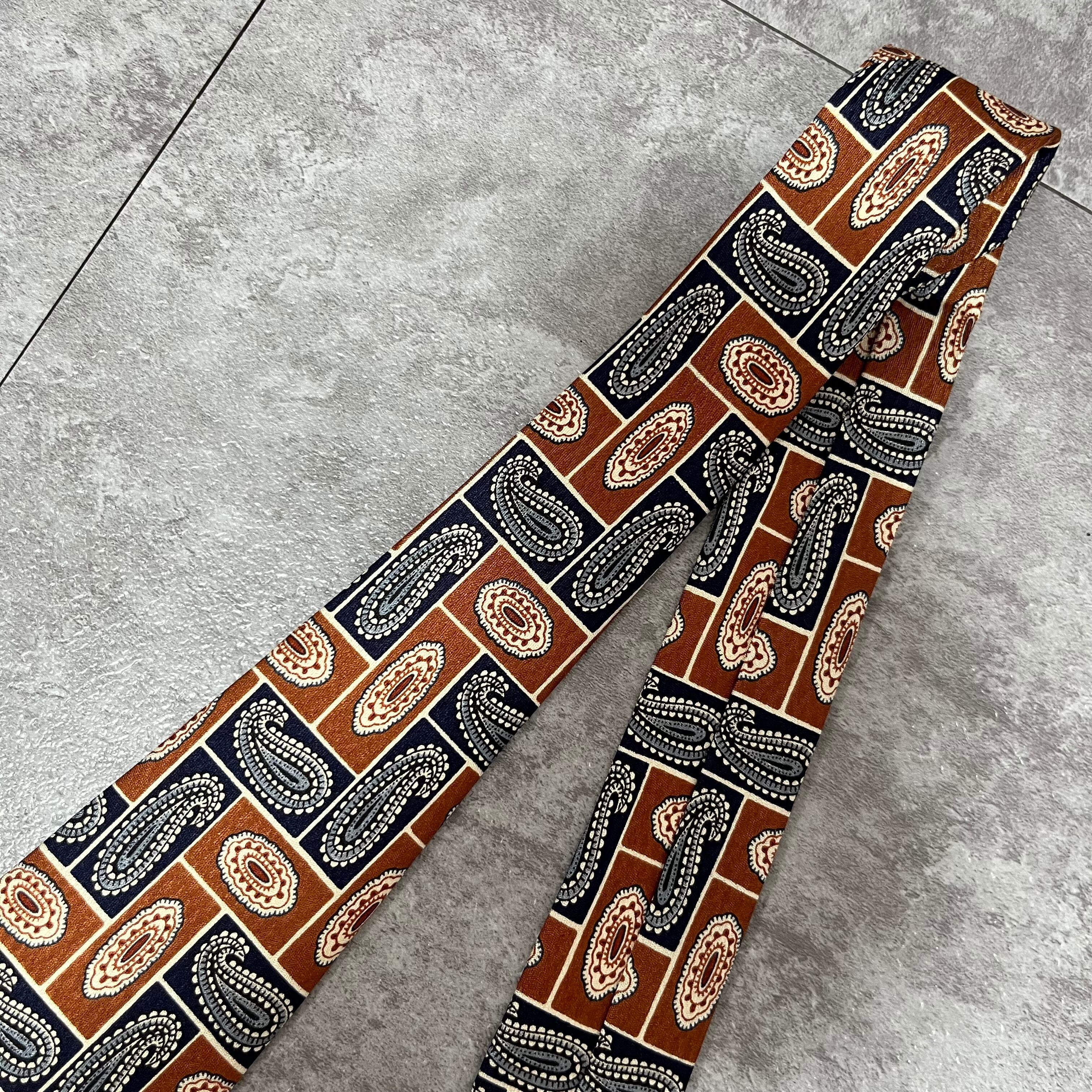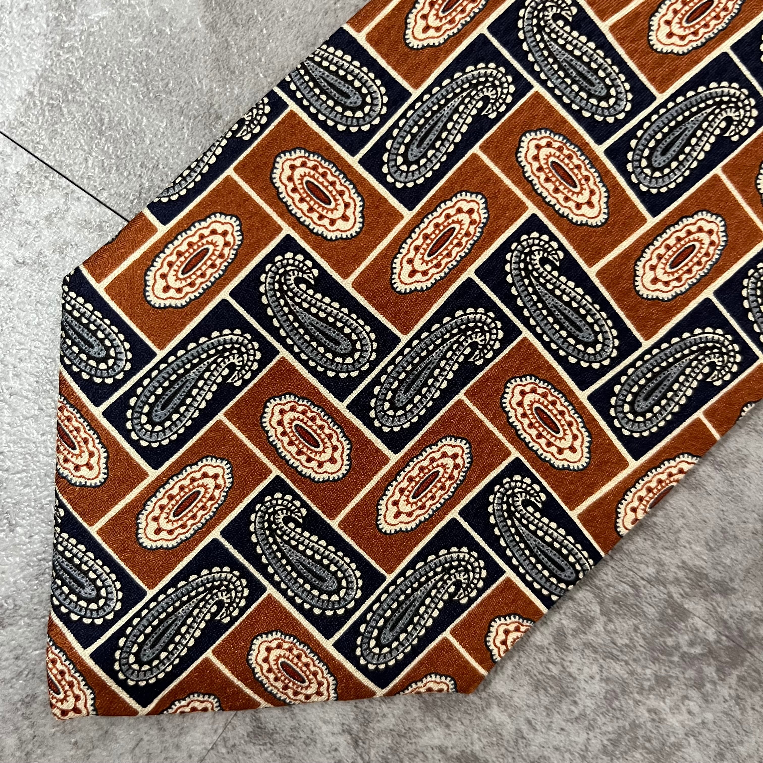【ペイズリー】ペイズリー柄パターンネクタイ バイカラー ネイビー オレンジ