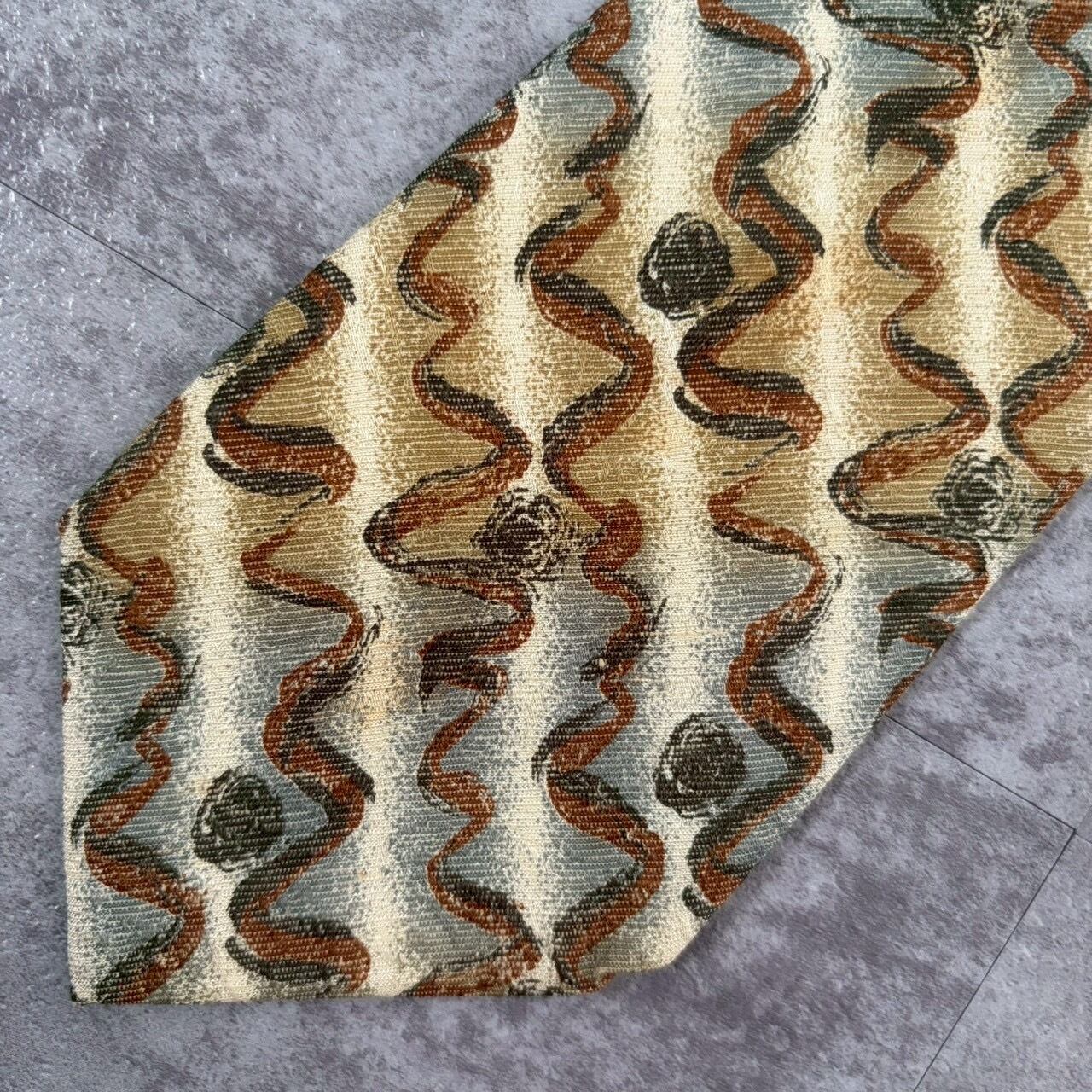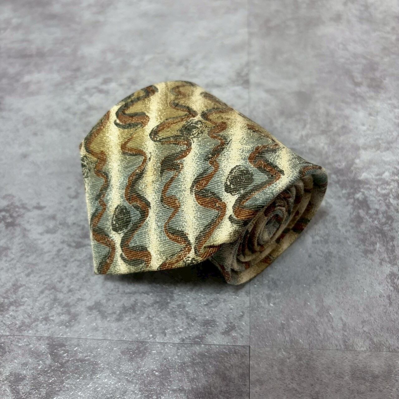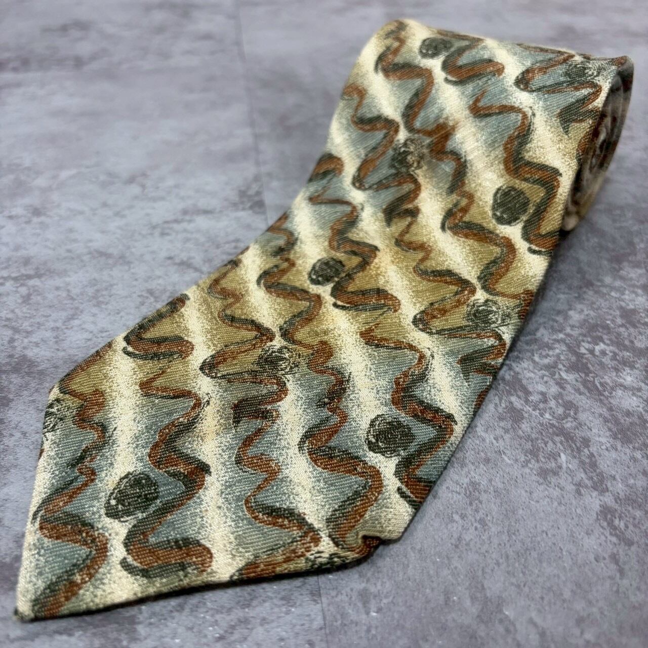 【ストライプ】特殊ストライプネクタイ グリーン イエロー 波線