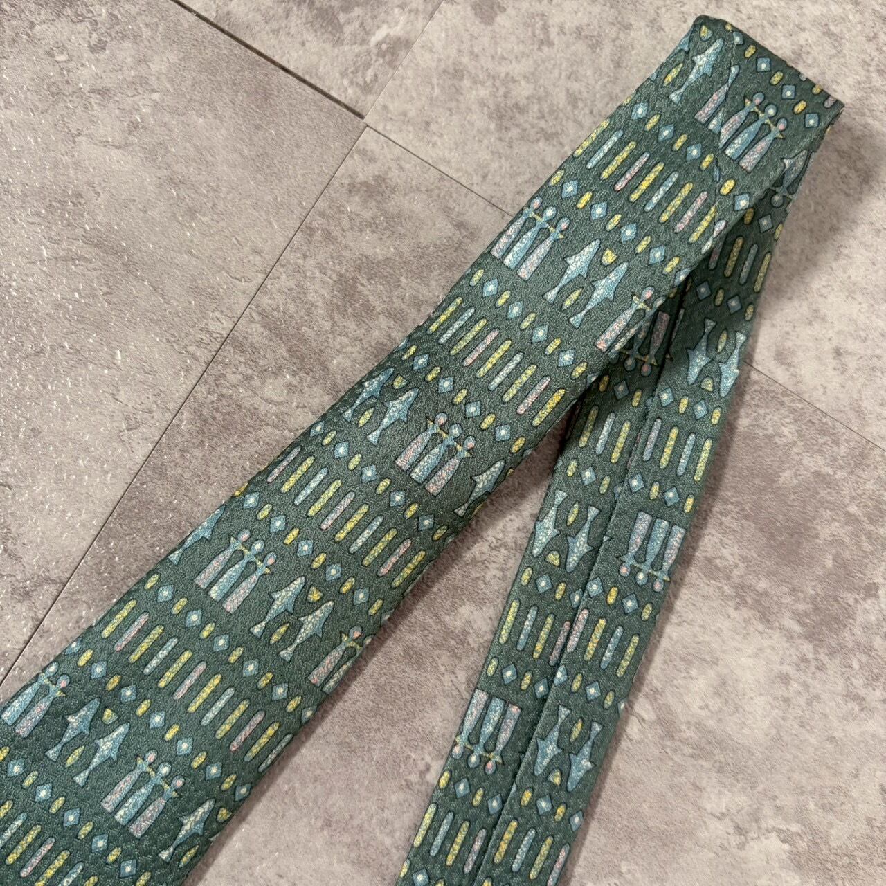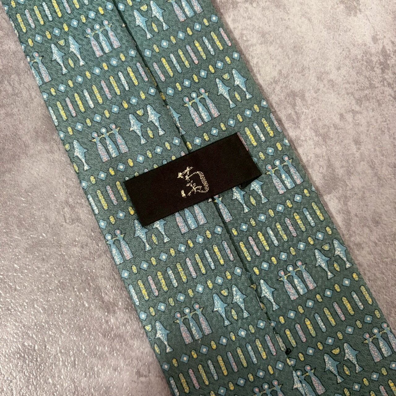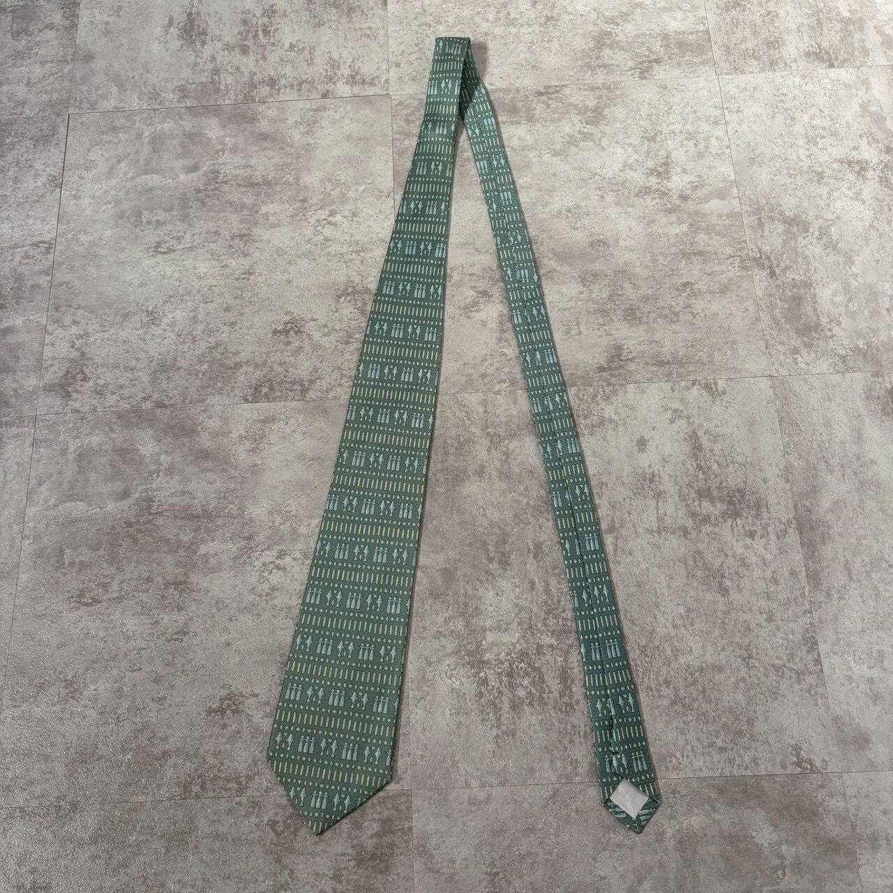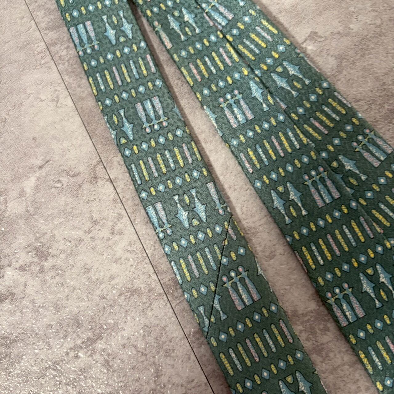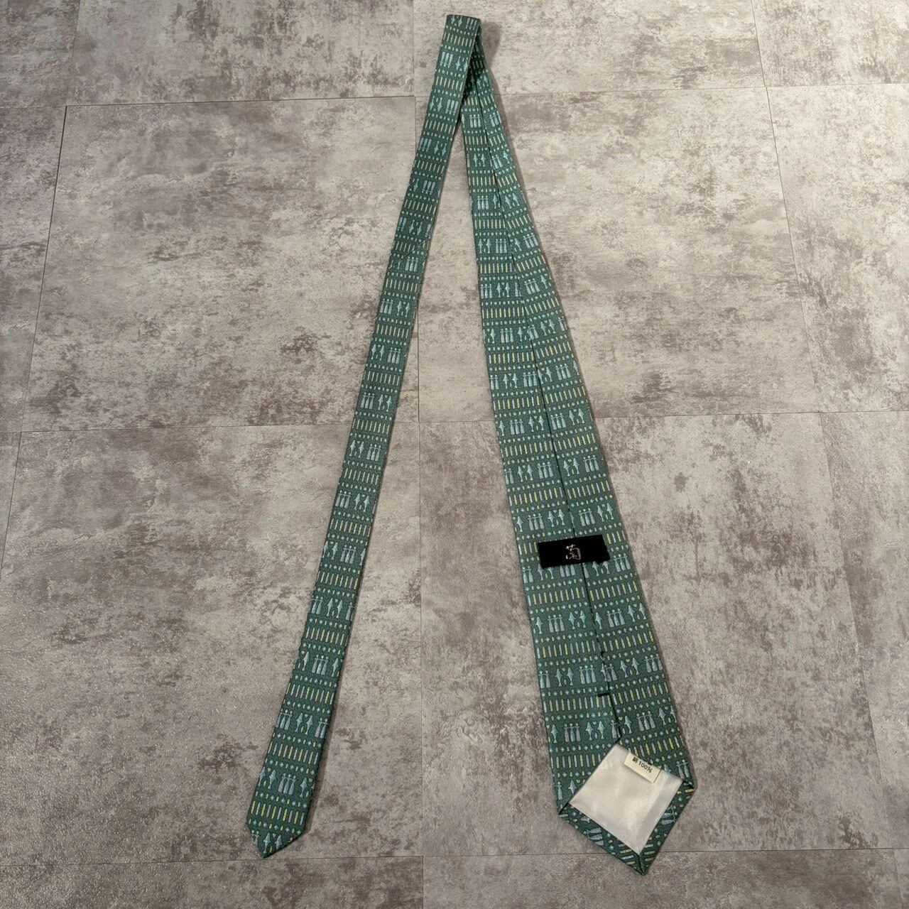 【壁画風】壁画モチーフネクタイ ブルーグリーン チェス 人型