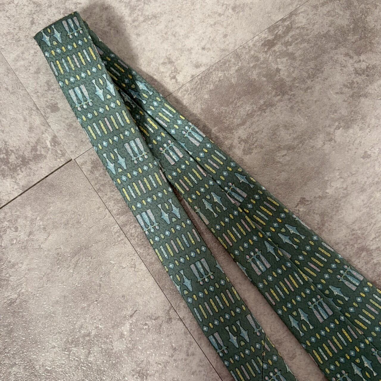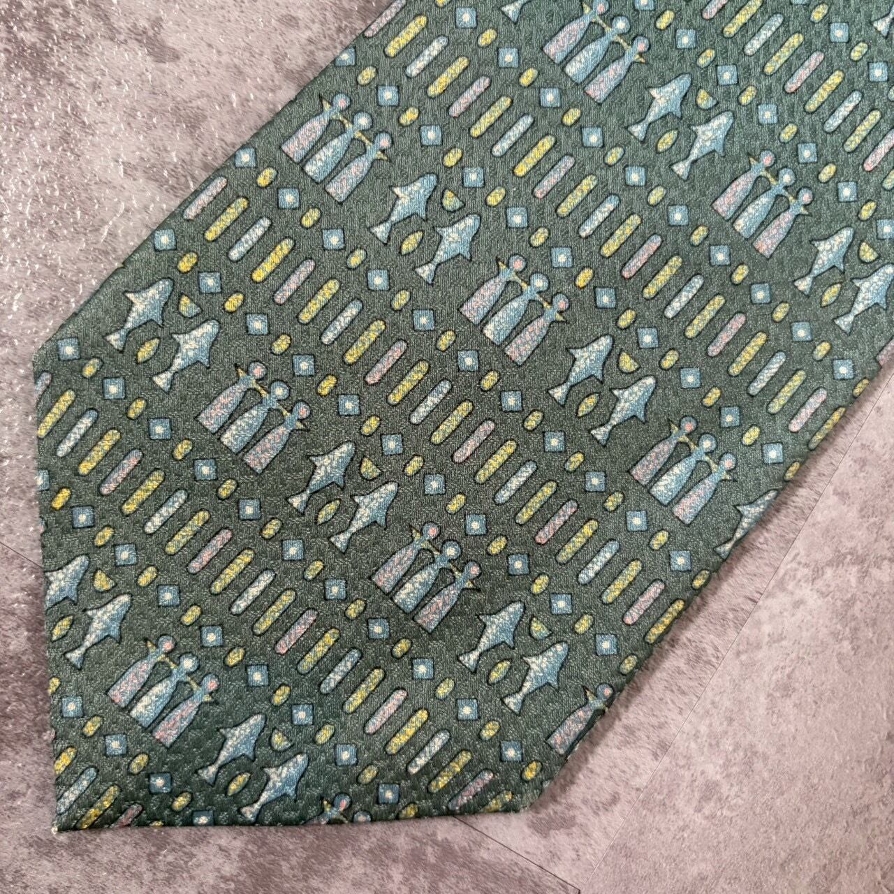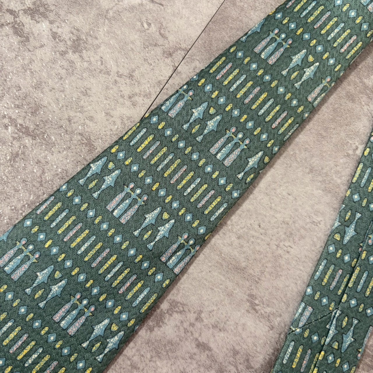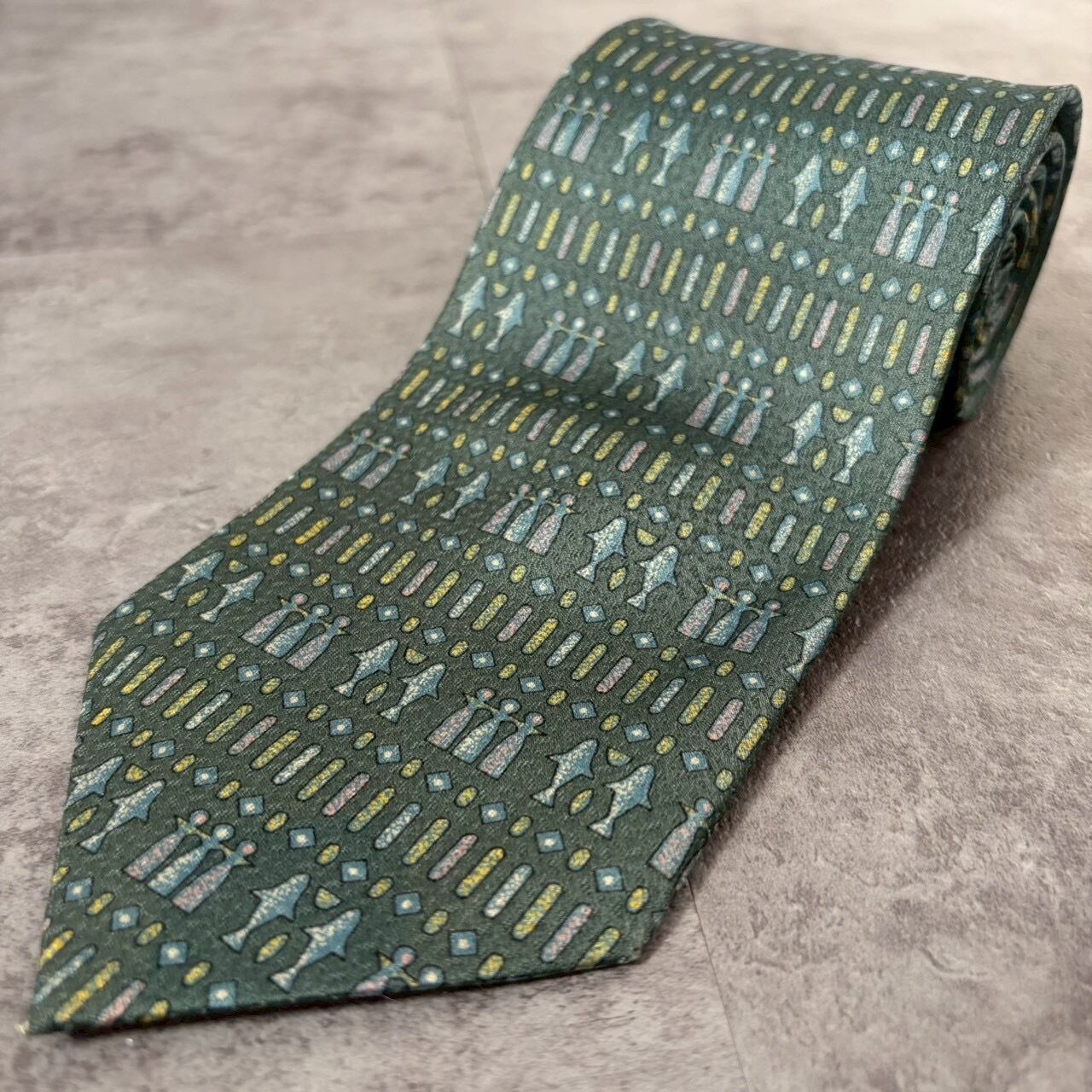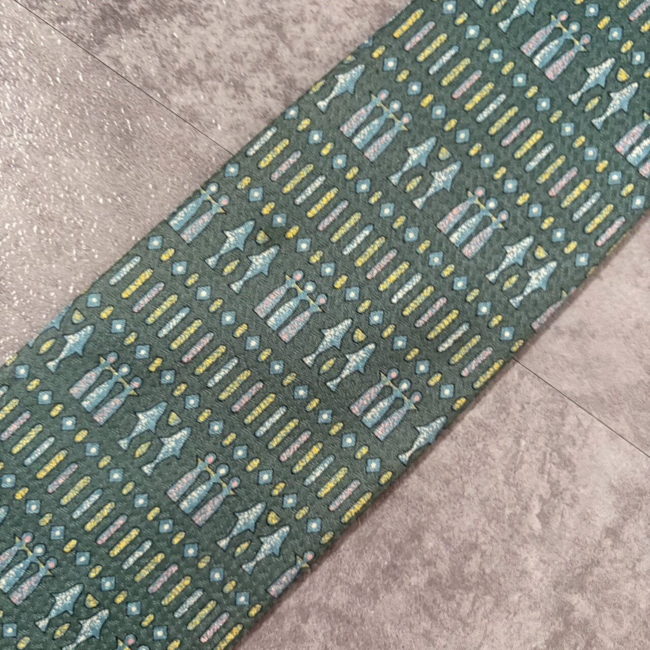 【壁画風】壁画モチーフネクタイ ブルーグリーン チェス 人型