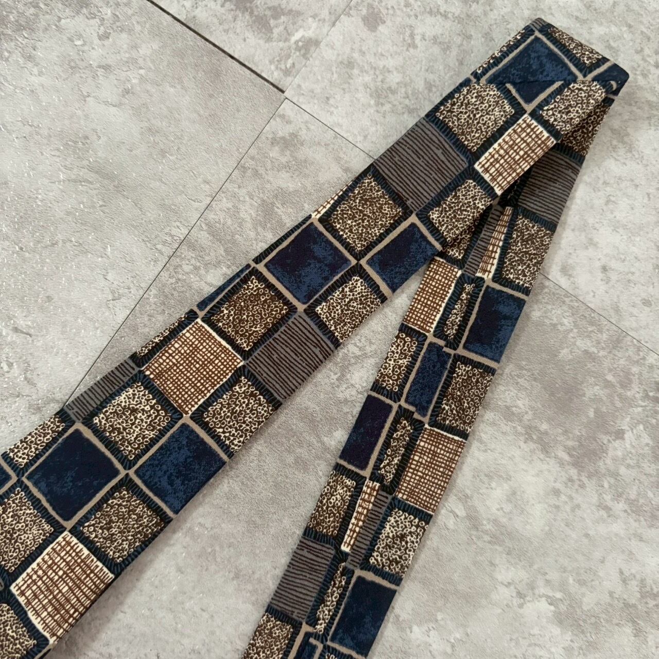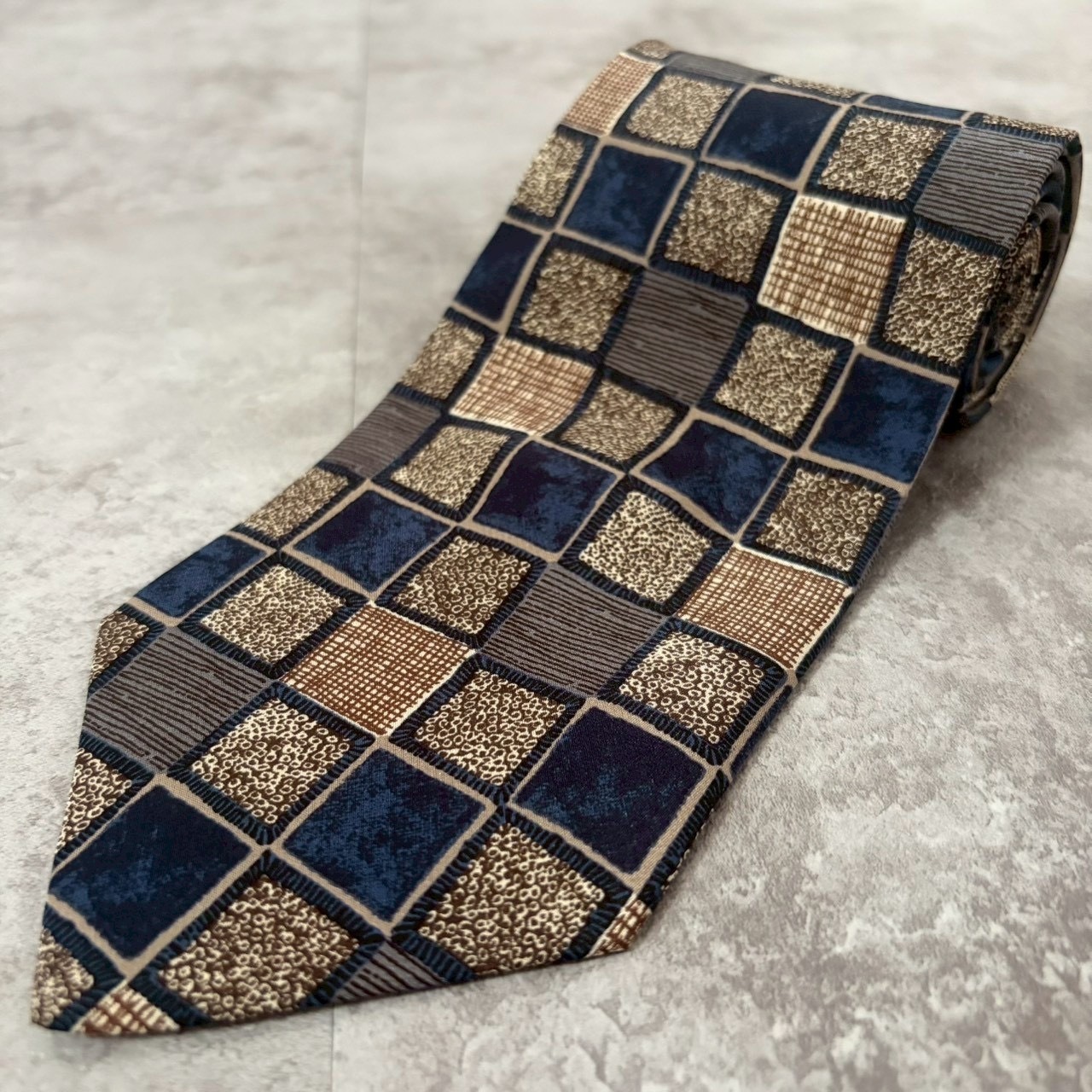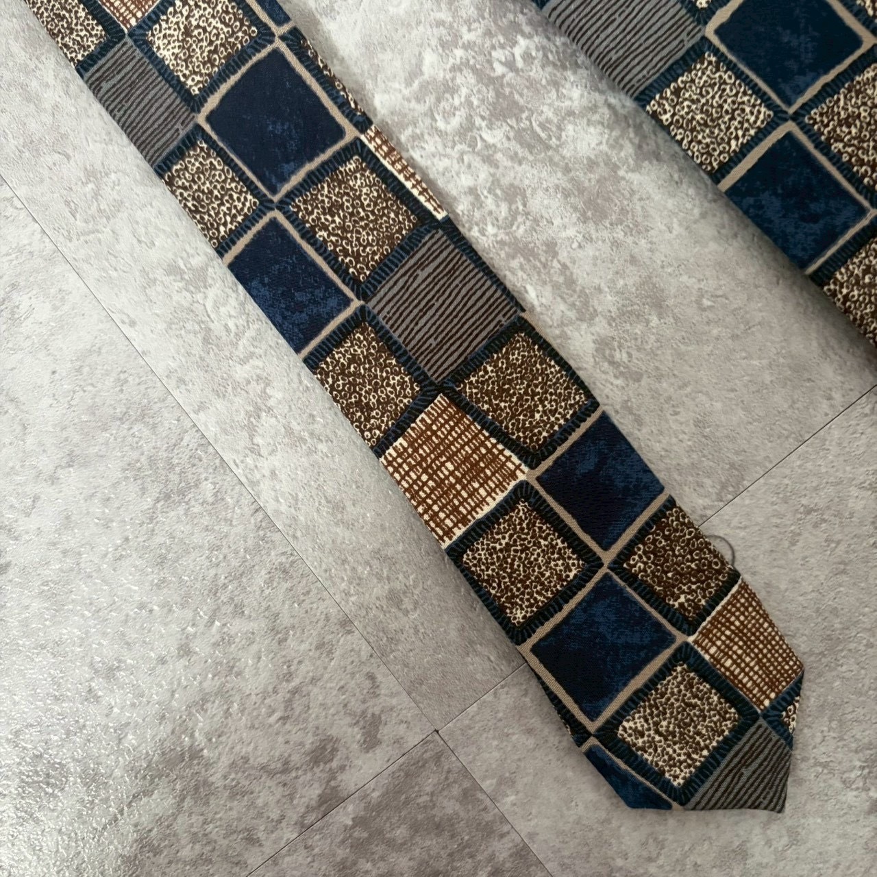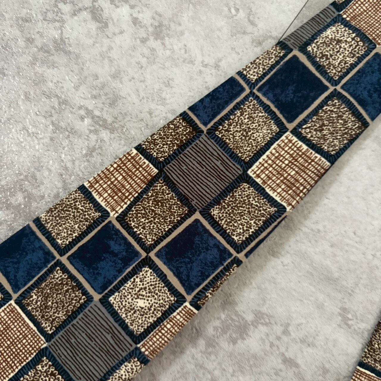 【チェック】ブロックチェックネクタイ ネイビー 不揃いブロック アート