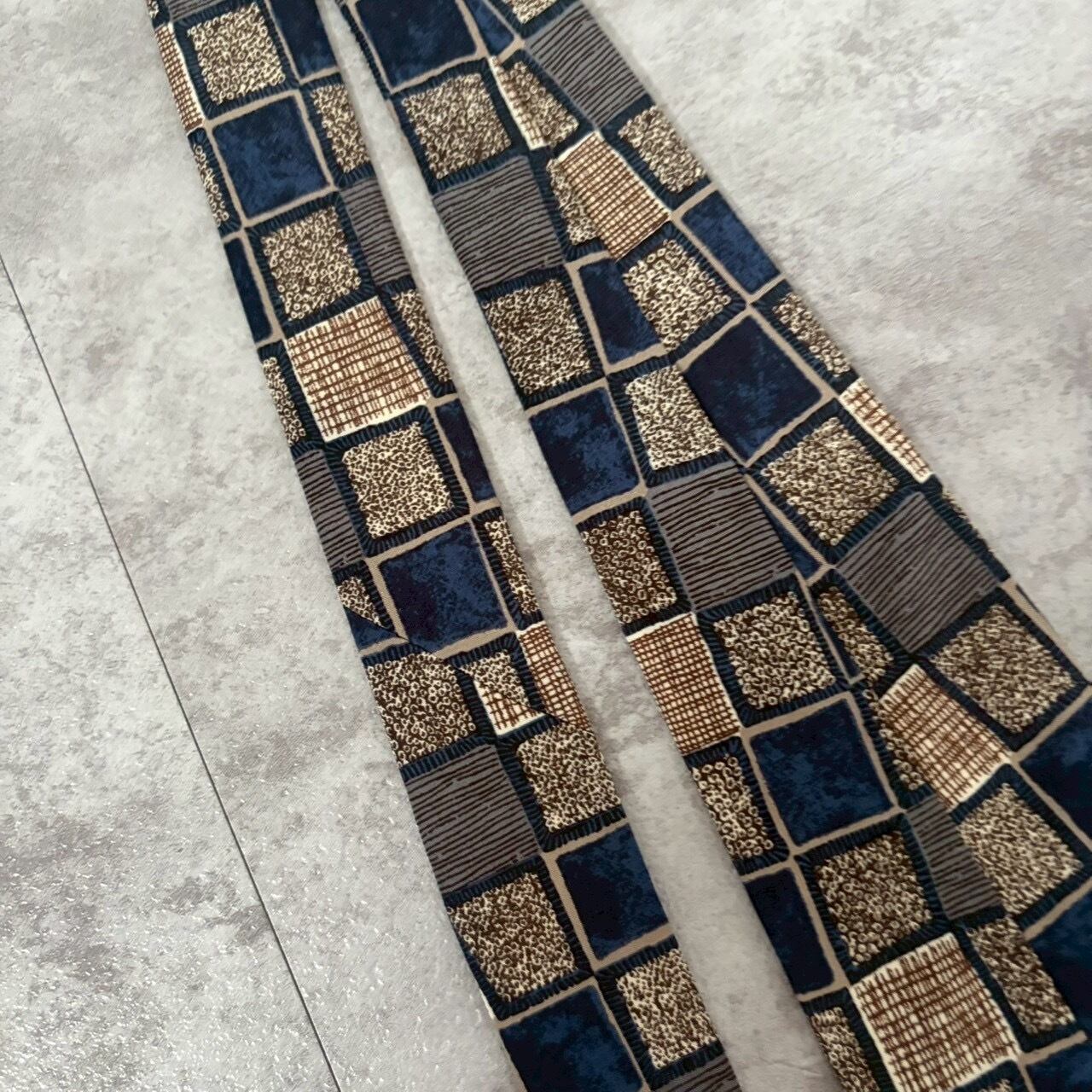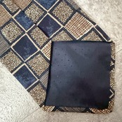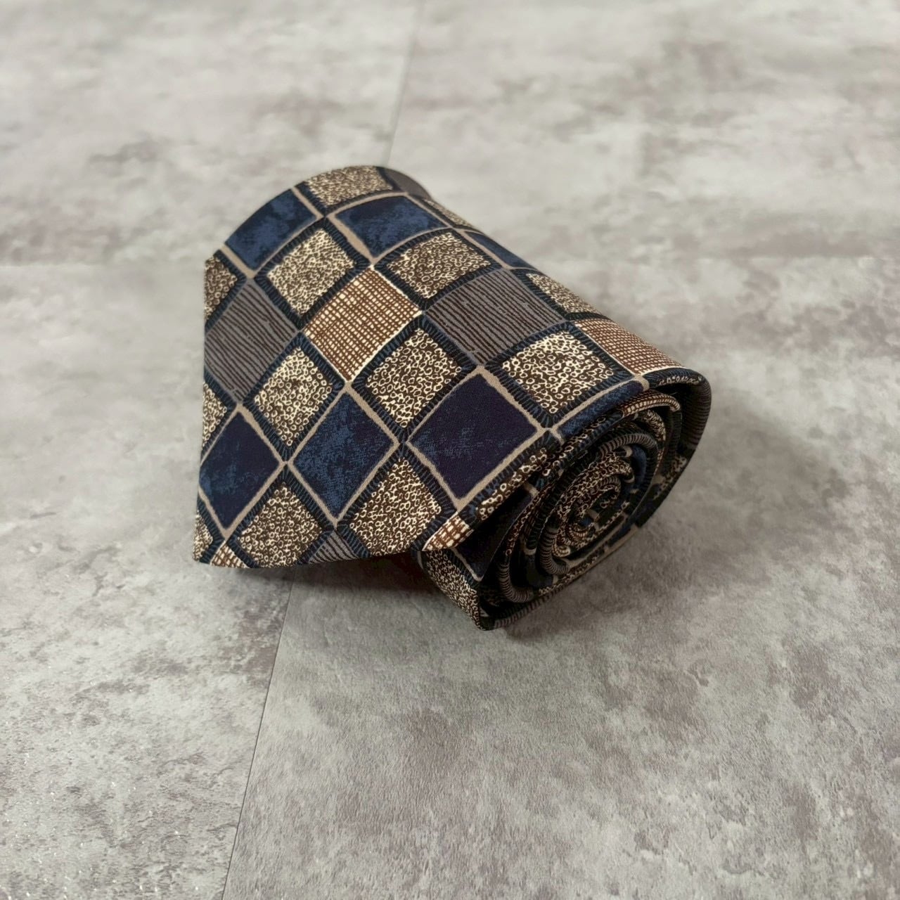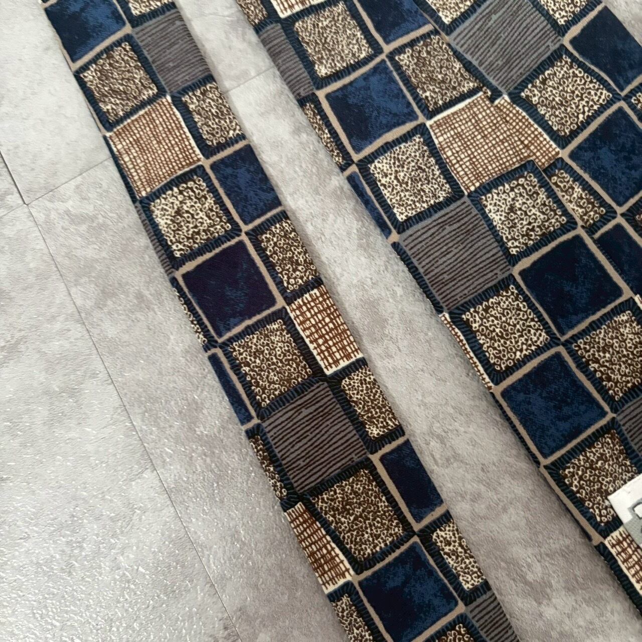 【チェック】ブロックチェックネクタイ ネイビー 不揃いブロック アート