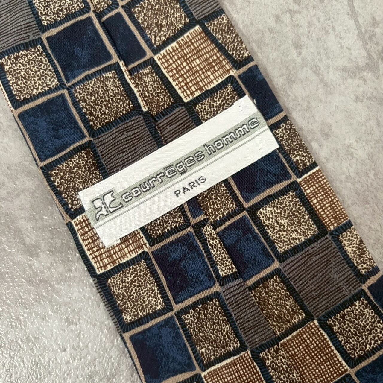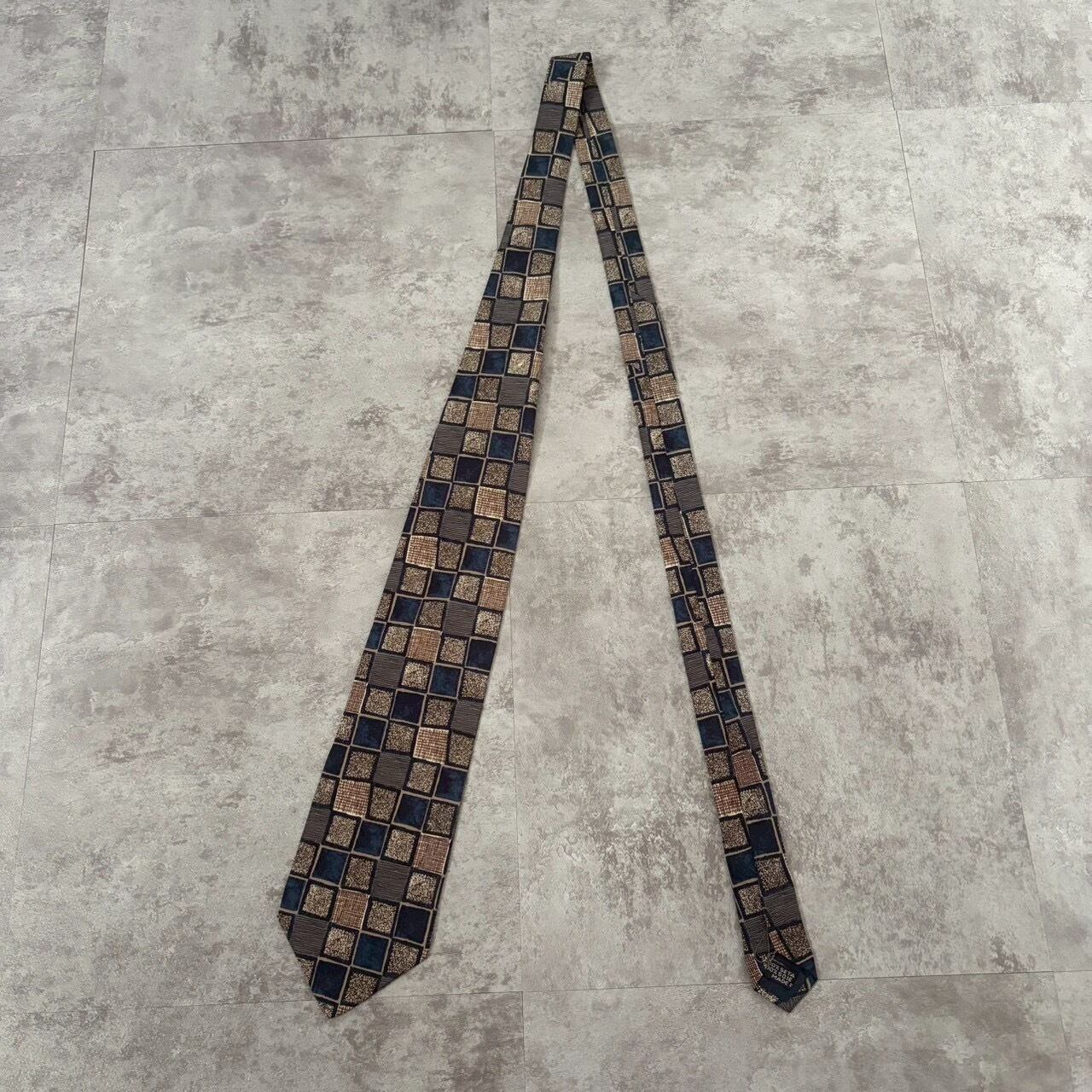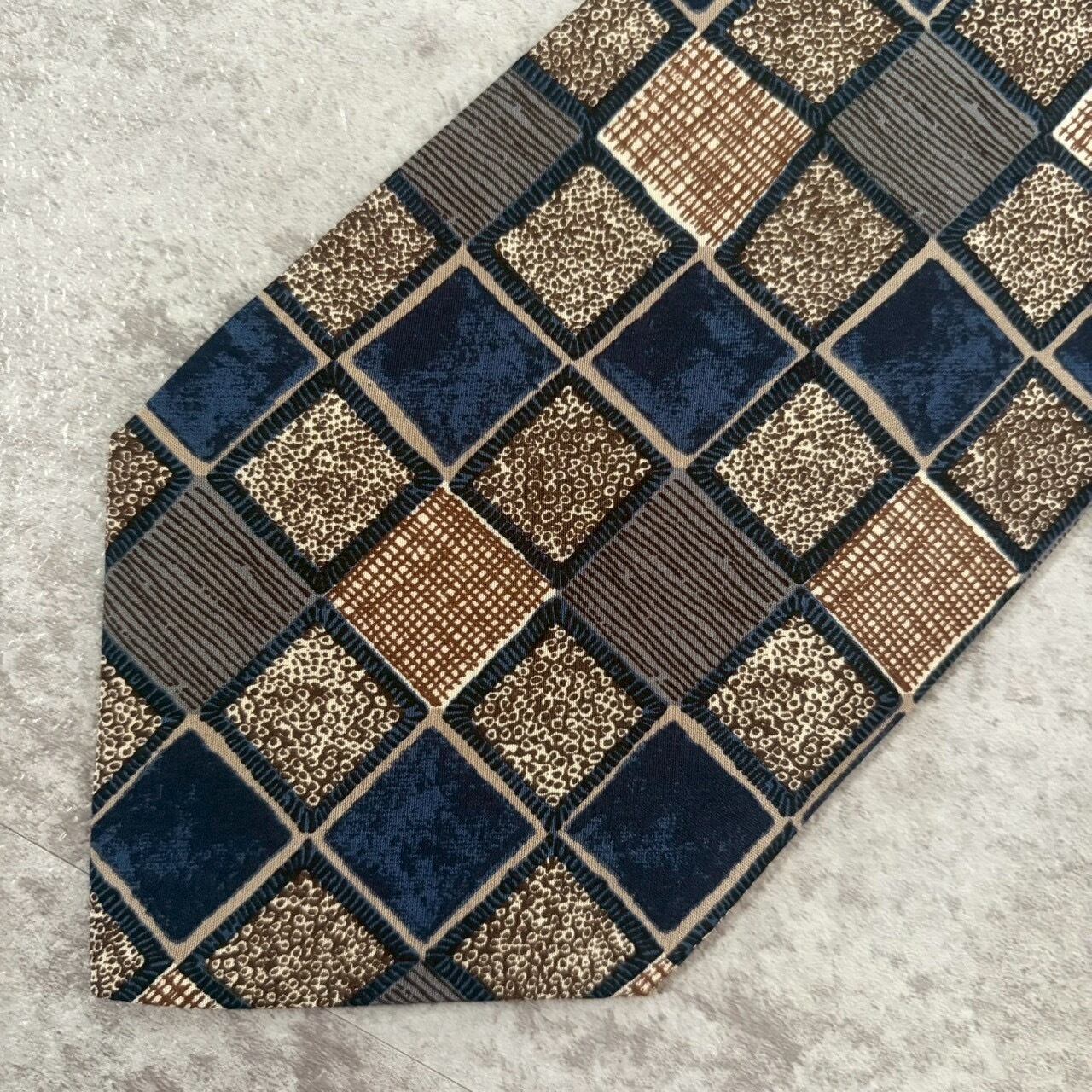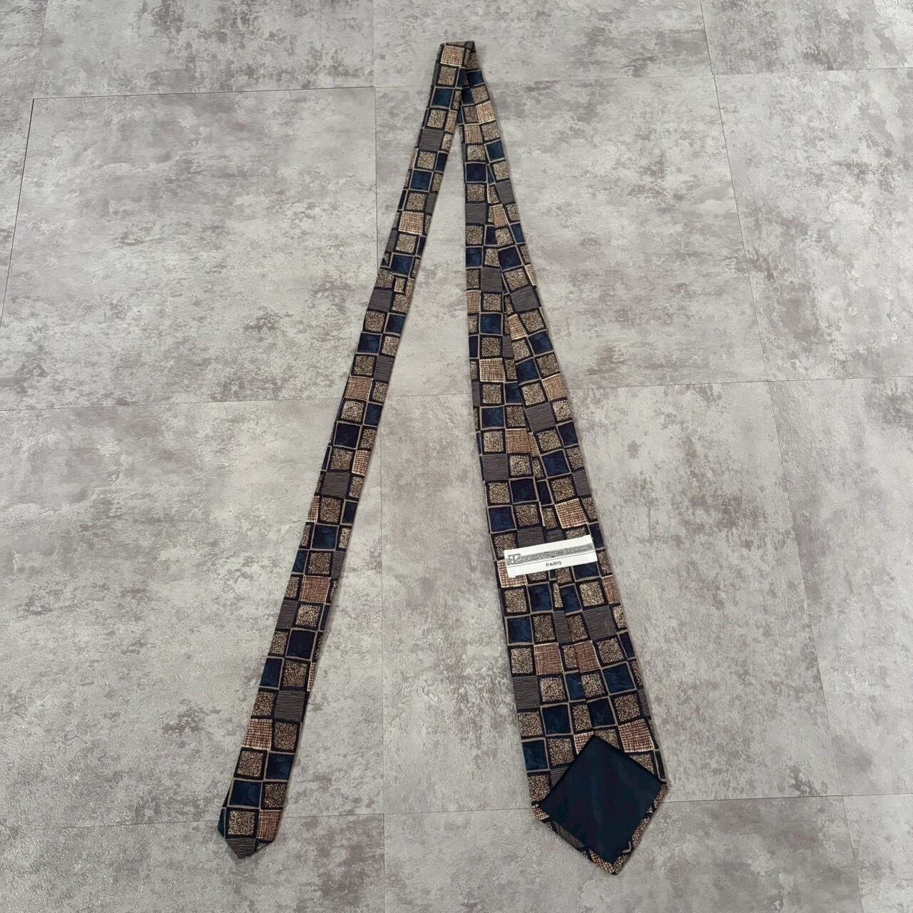 【チェック】ブロックチェックネクタイ ネイビー 不揃いブロック アート