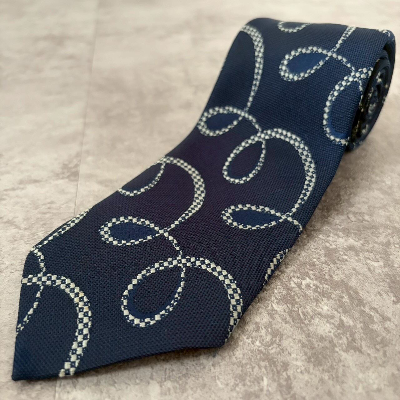 【アート柄】特殊模様パターンネクタイ ネイビー ぐるぐる 落書き風