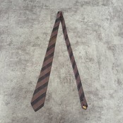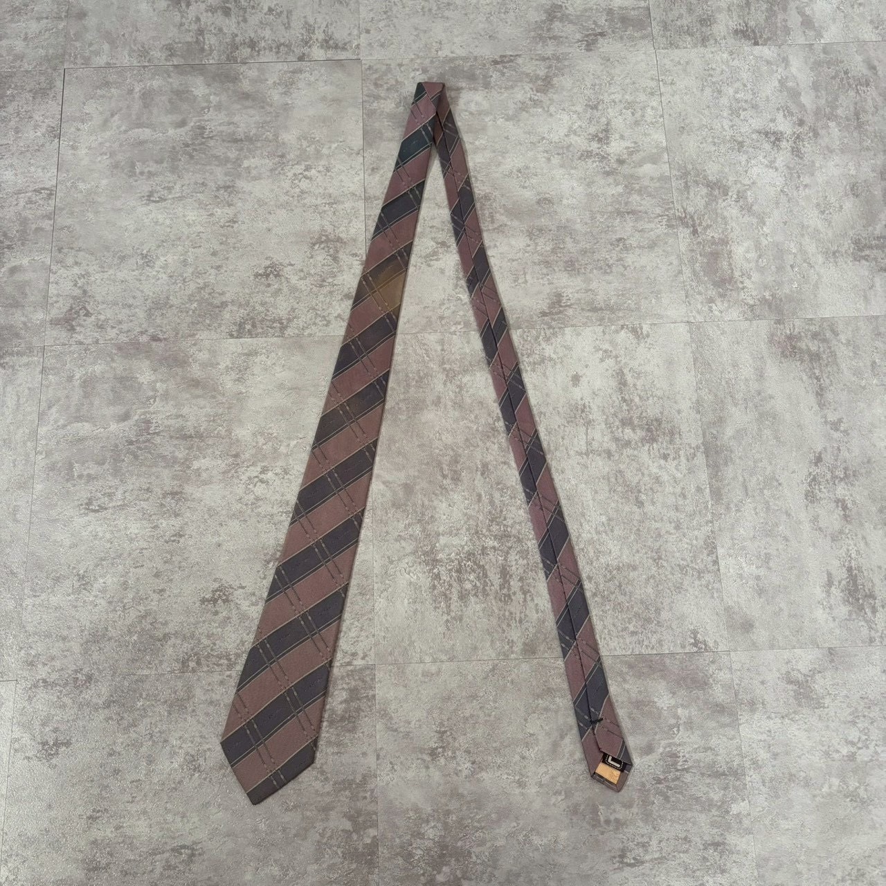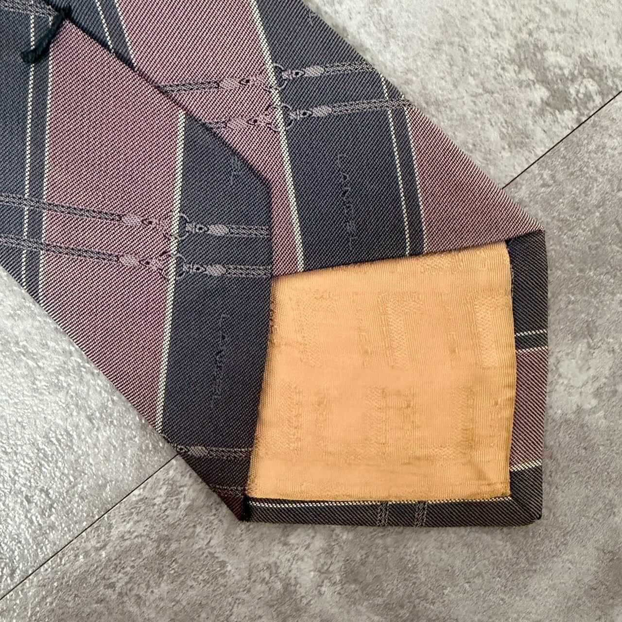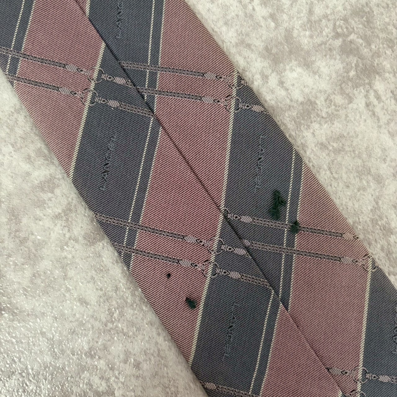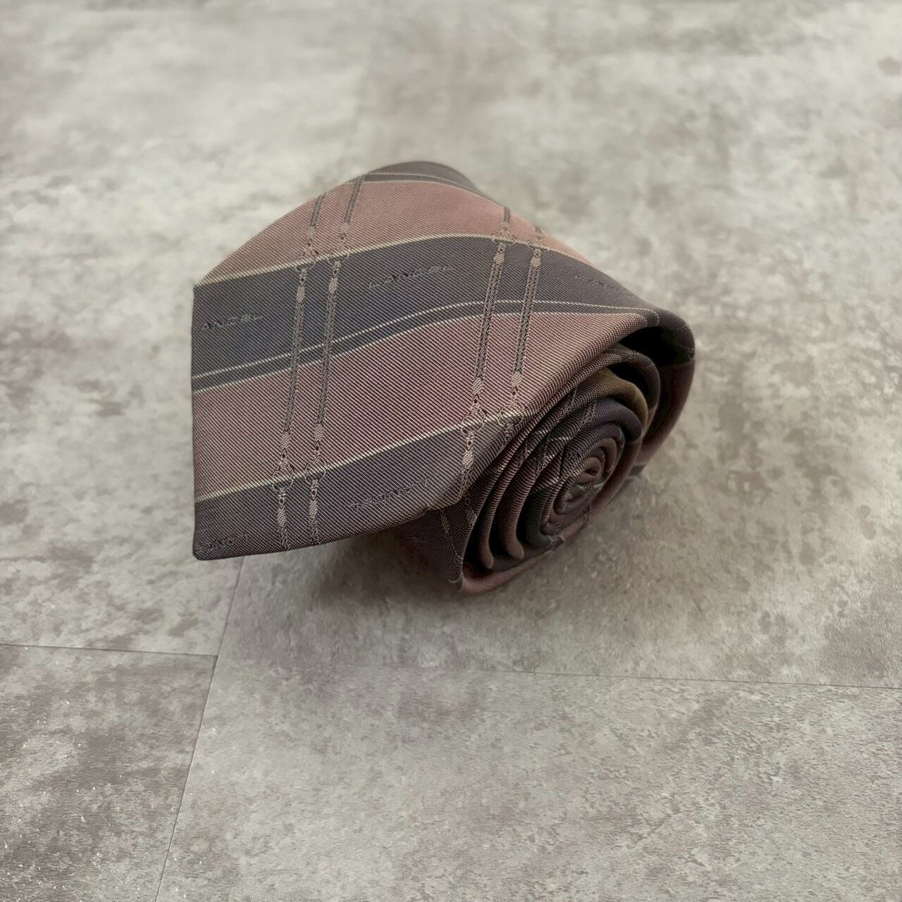 【LANCEL】バイカラーストライプネクタイ グレー ピンク シャドウロゴ チェーン柄