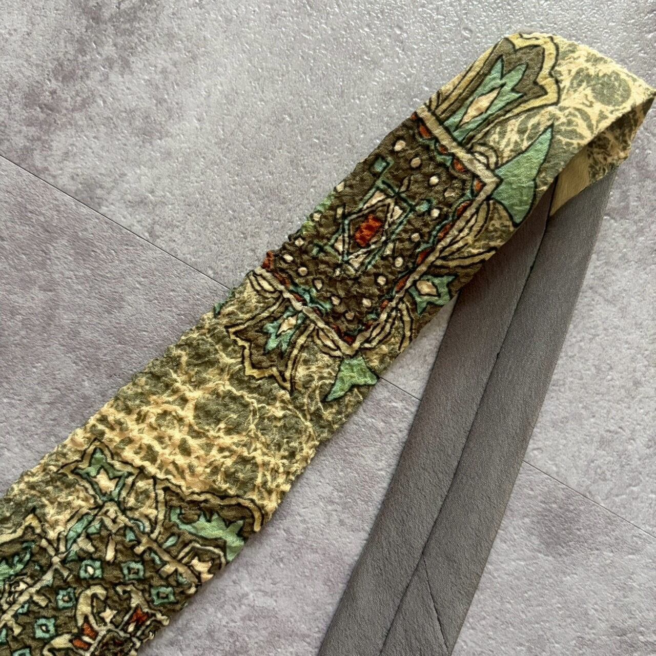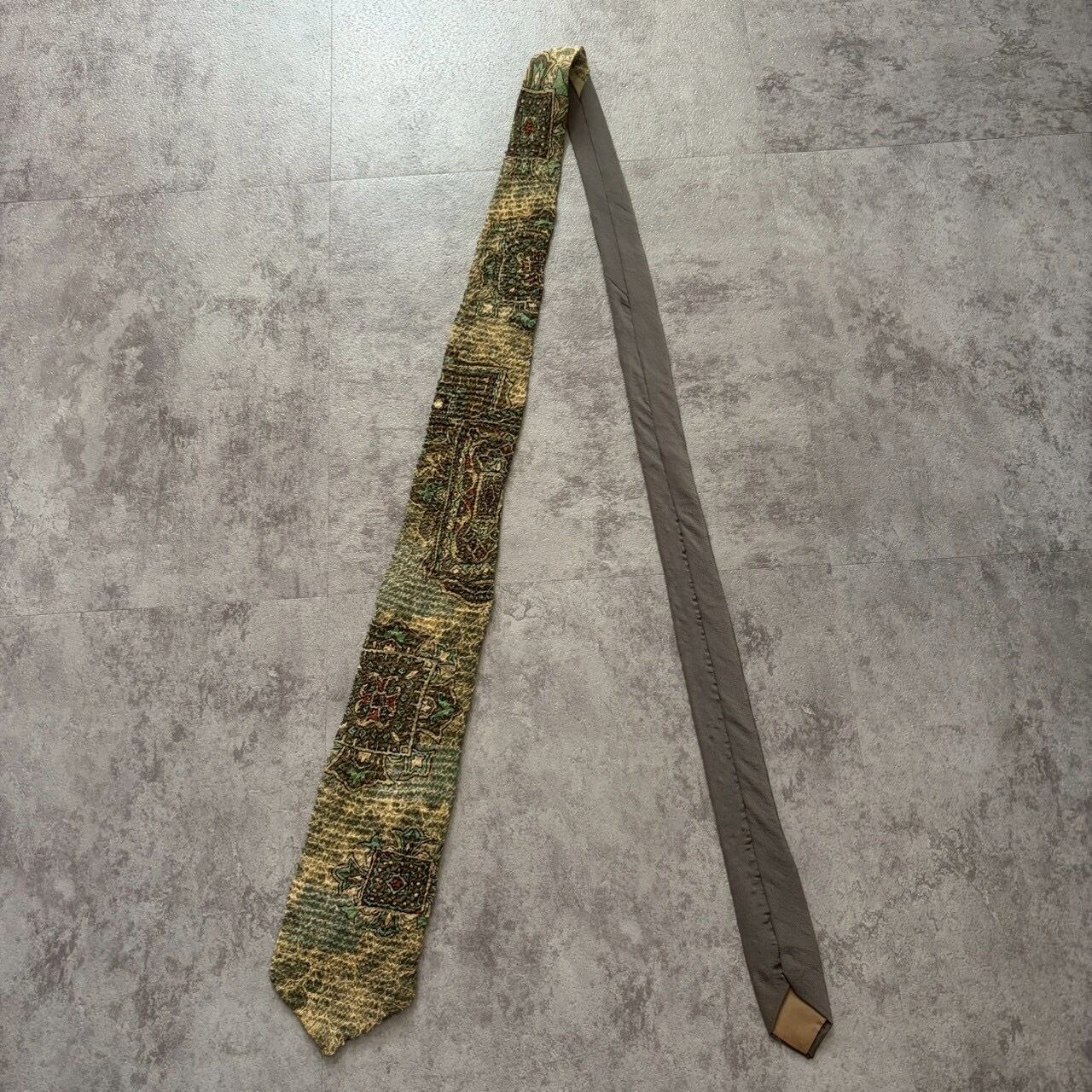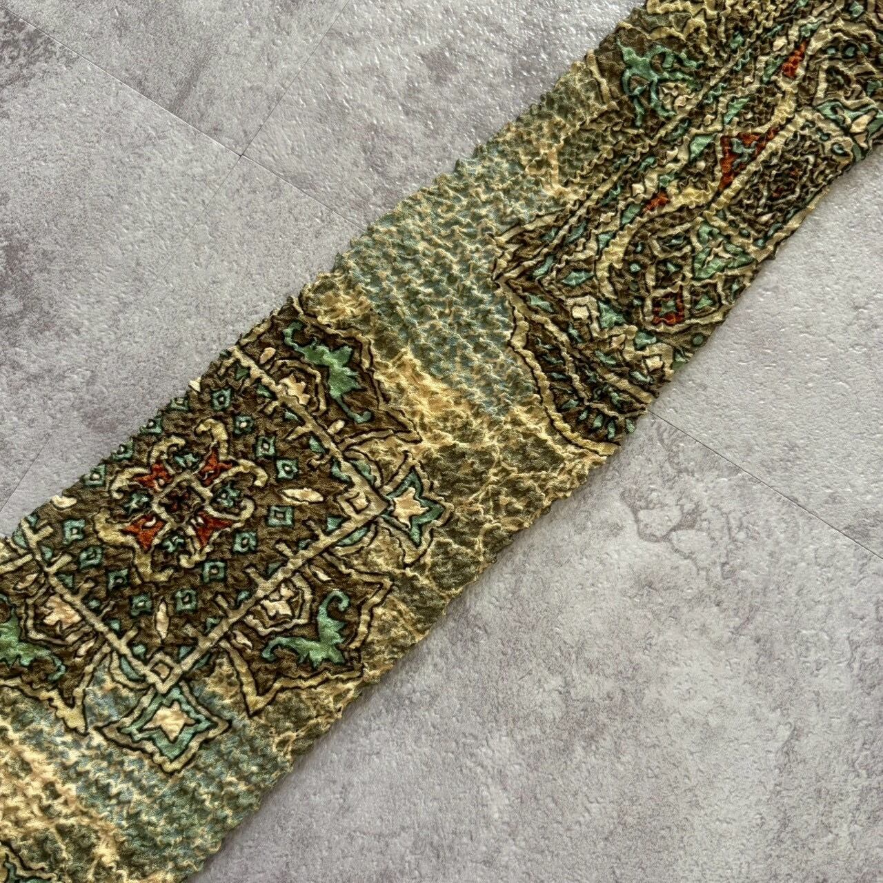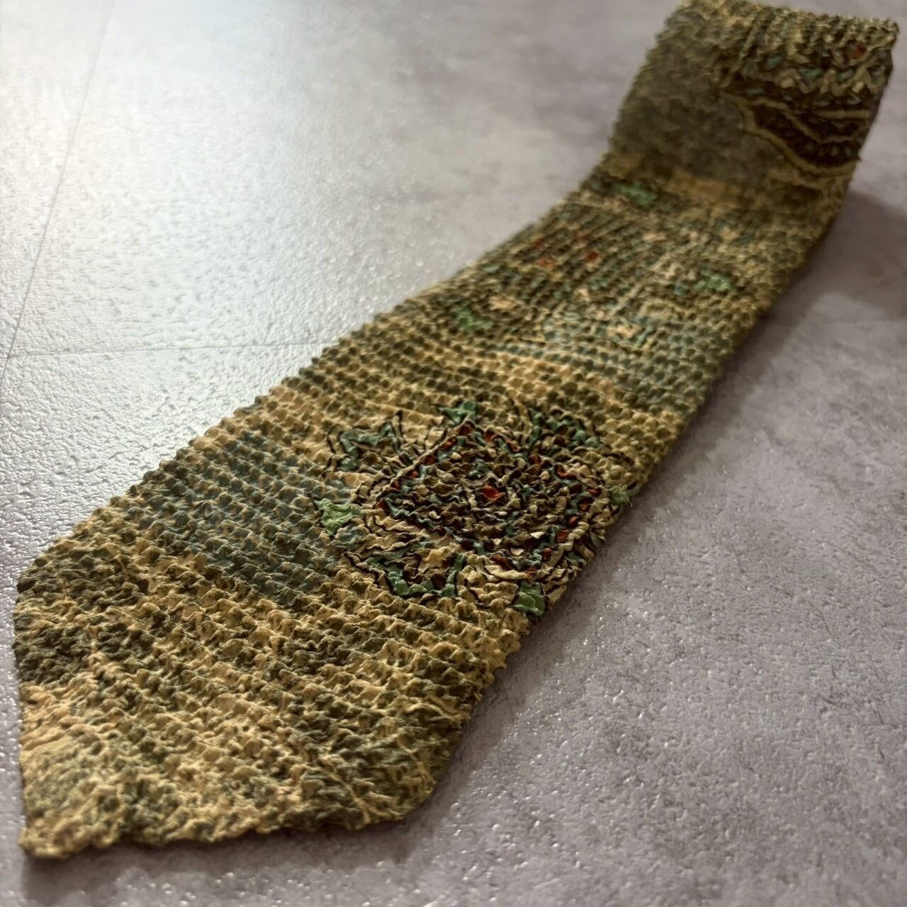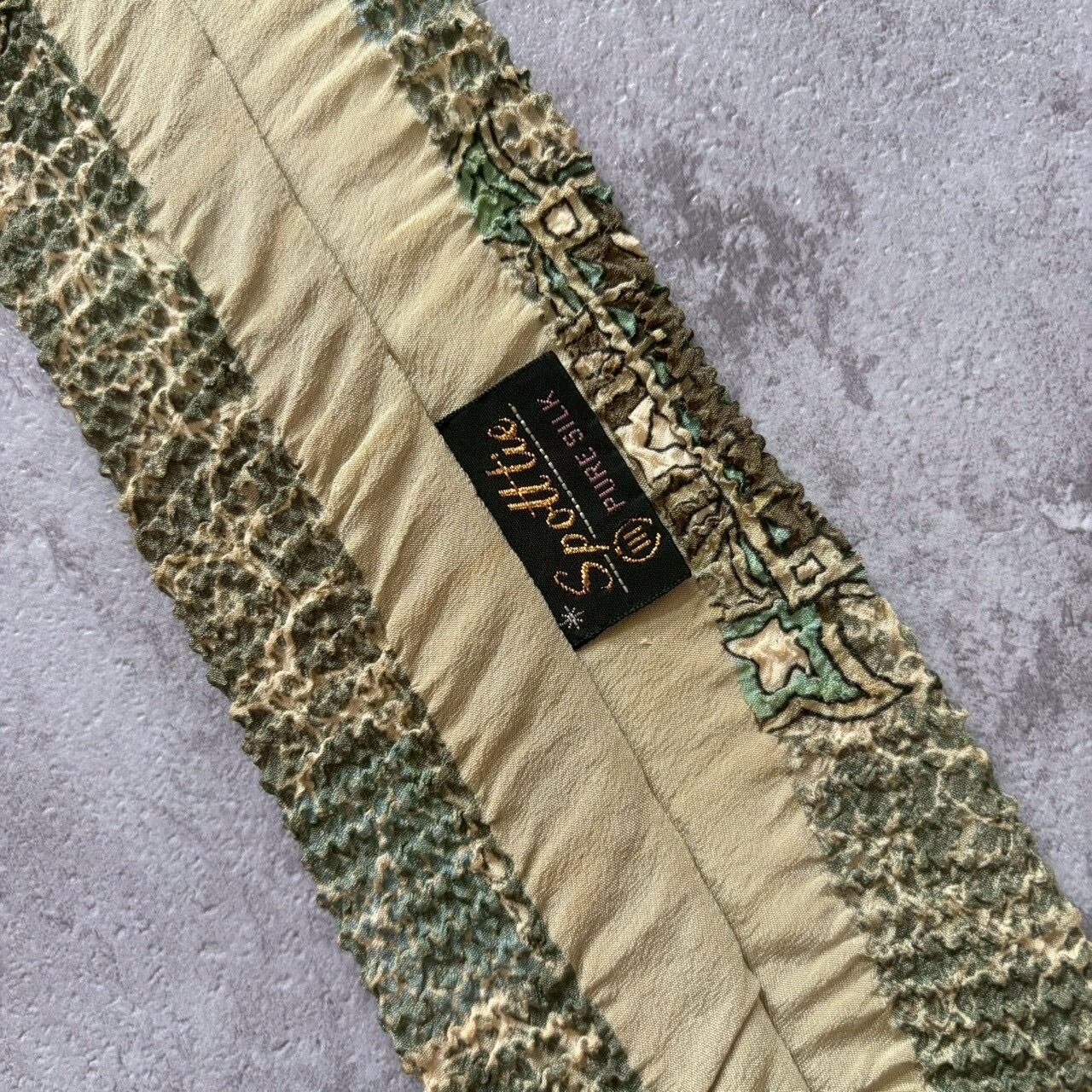 【紋章柄】ワッシャー加工紋章ネクタイ グリーン シワ加工