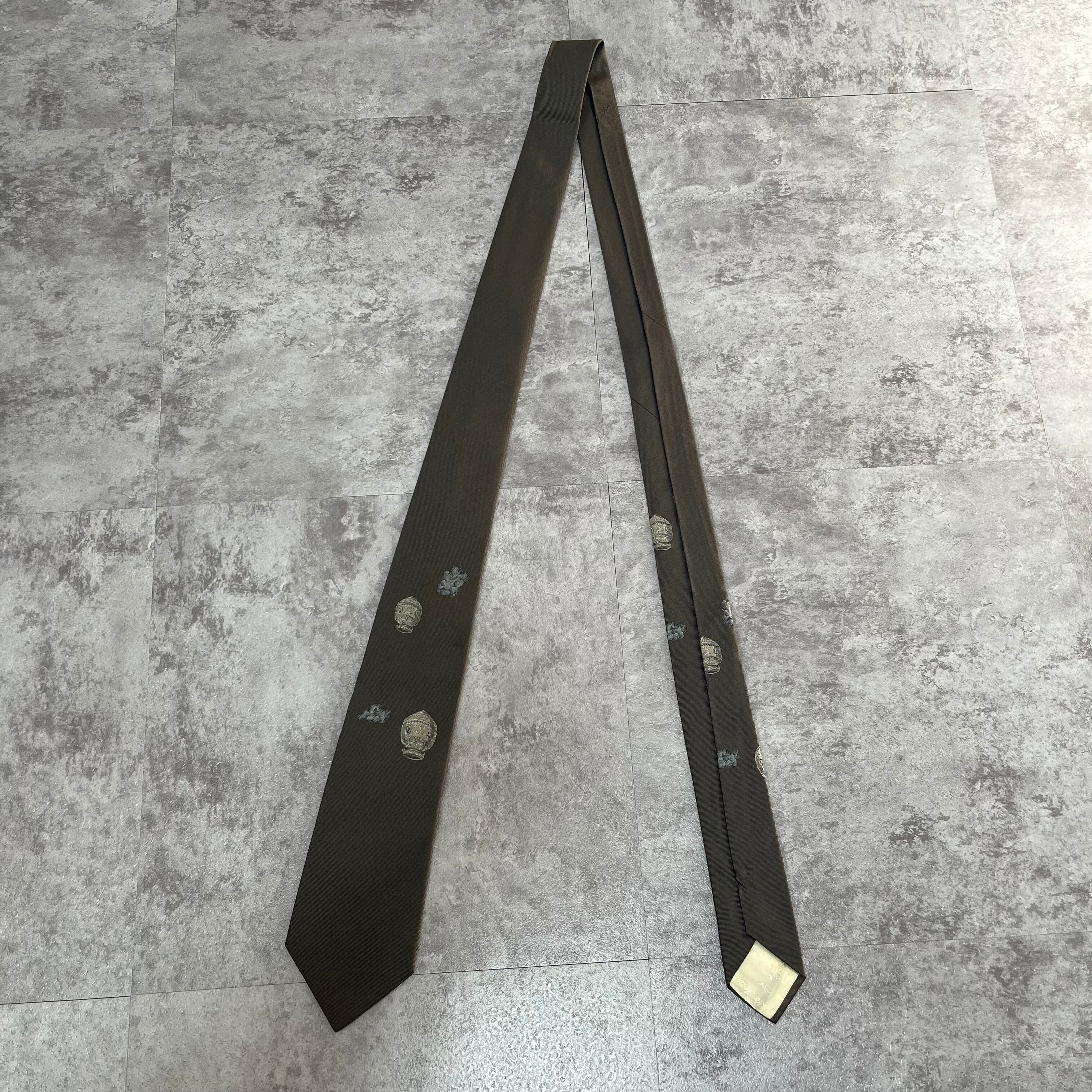 【Dominique France】ネクタイ グレー 最高級 刺繍 ジャガード ツボ