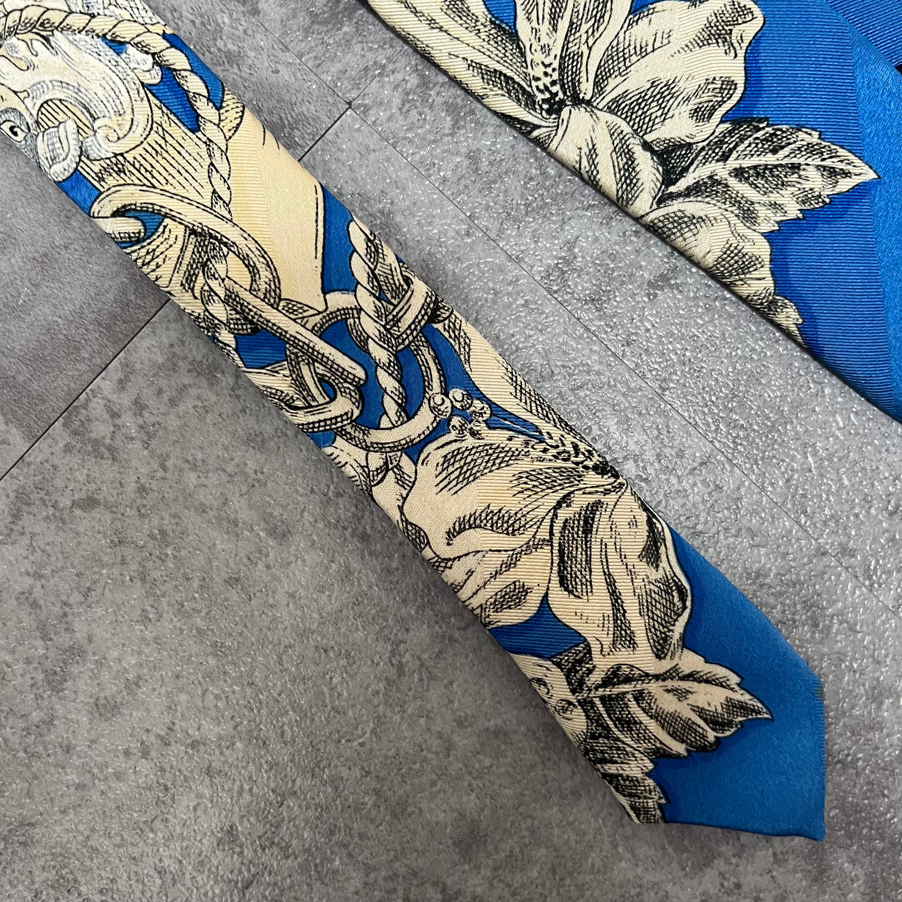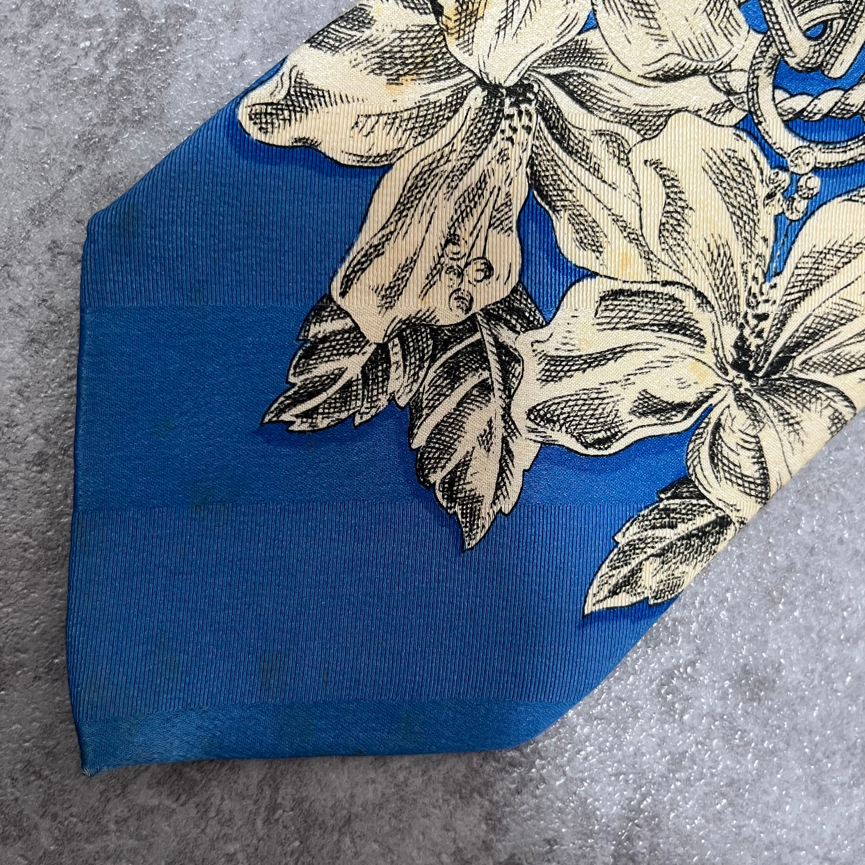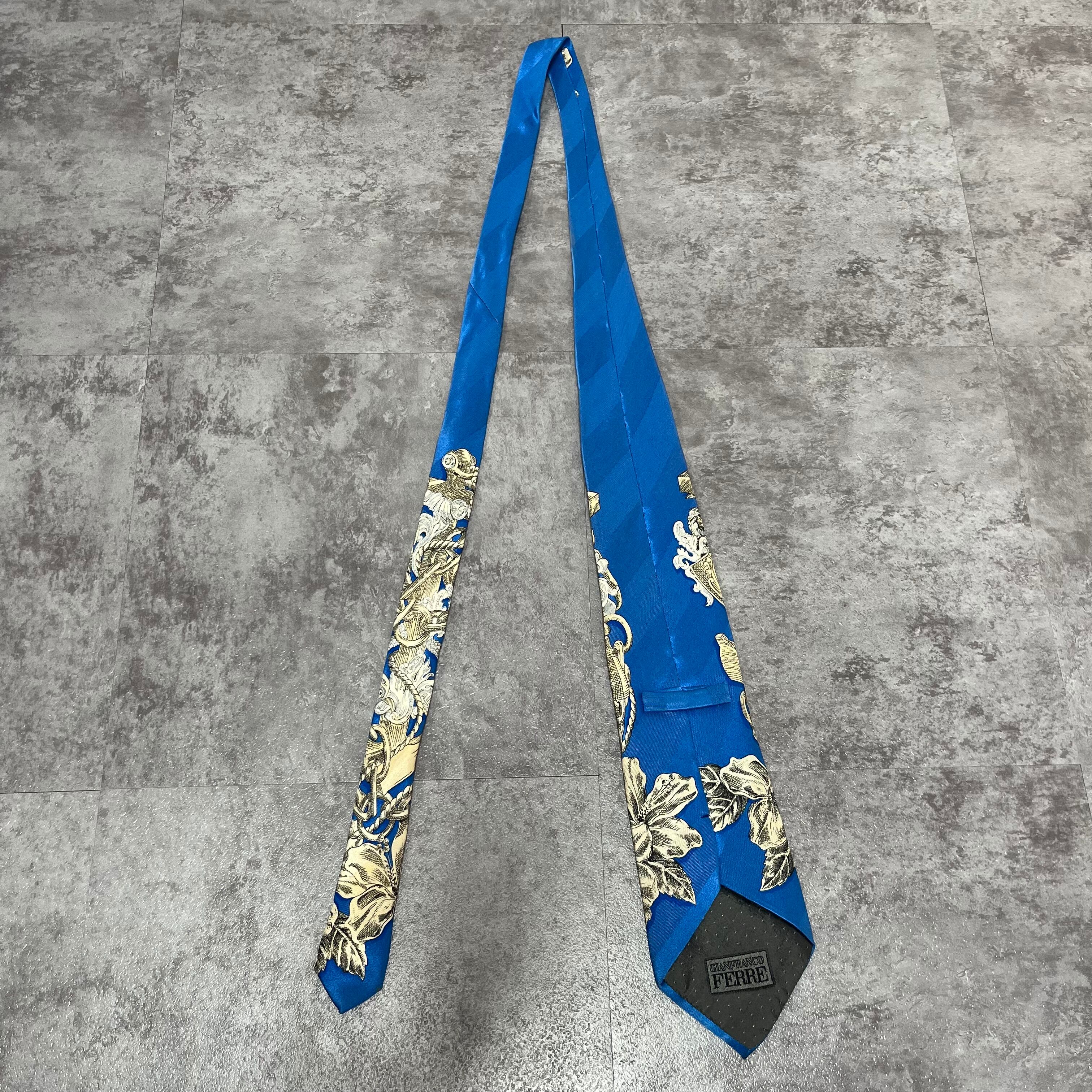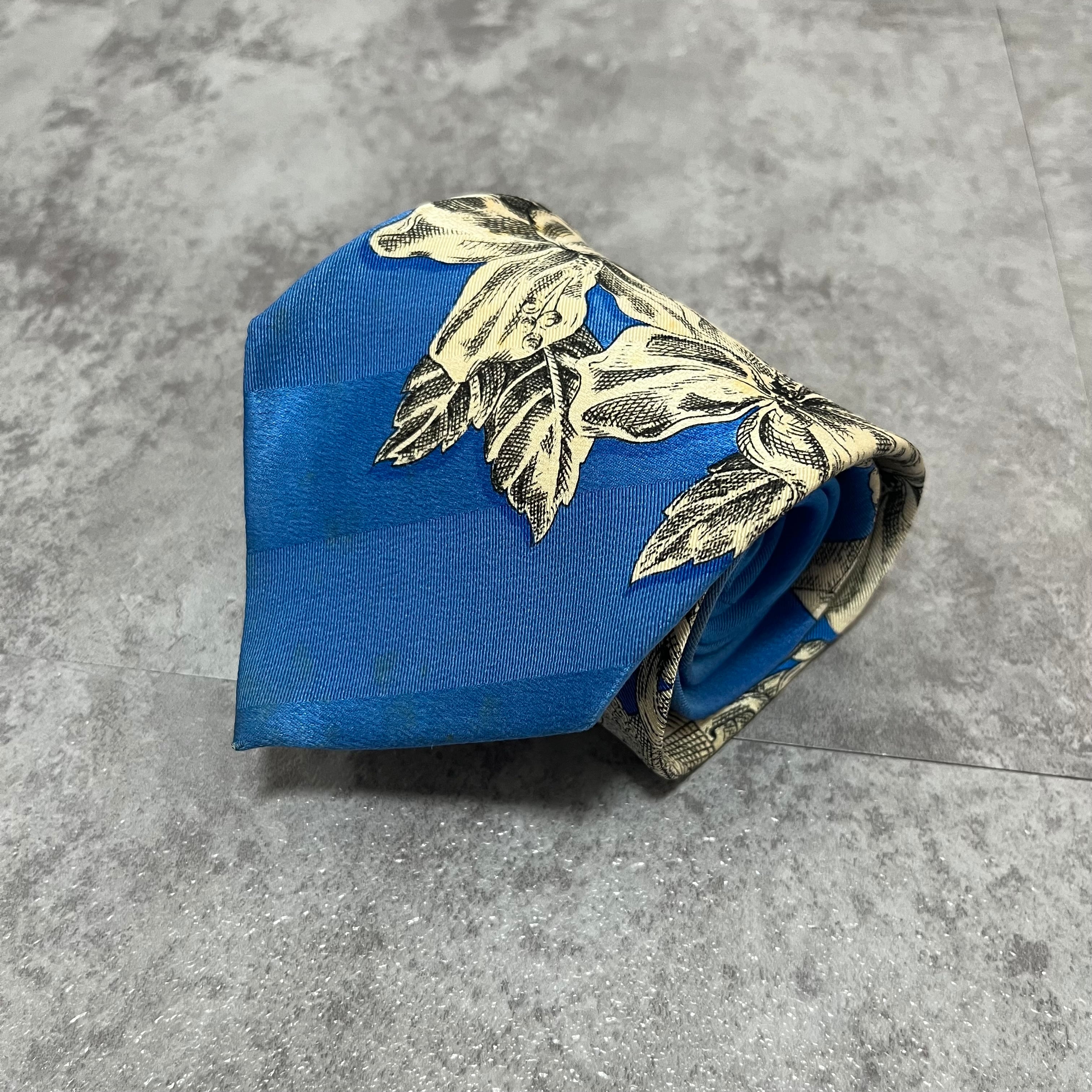 【GIANFRANCO FERRE】花柄ネクタイ 水色 ライトブルー 植物柄 ボタニカル バイカラー