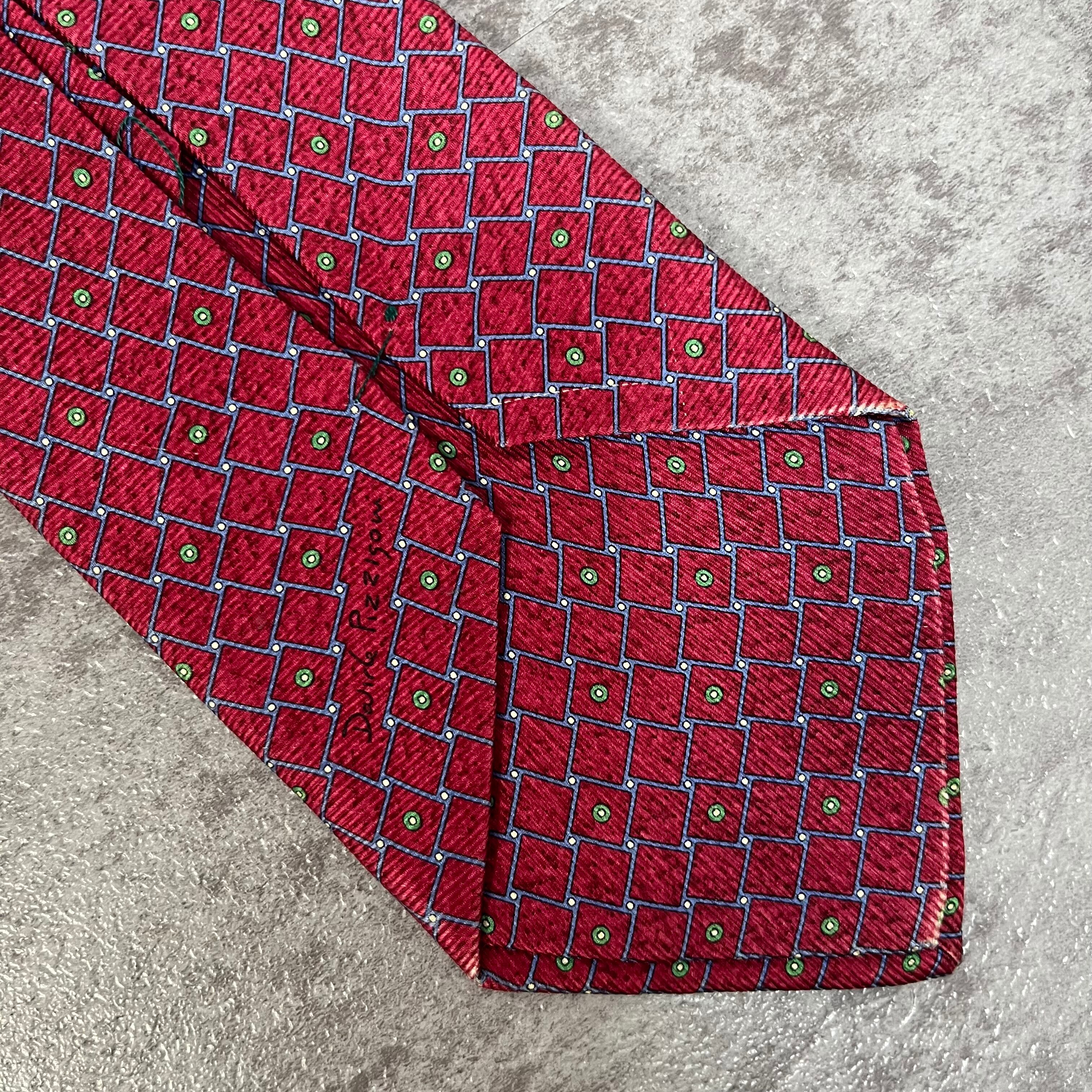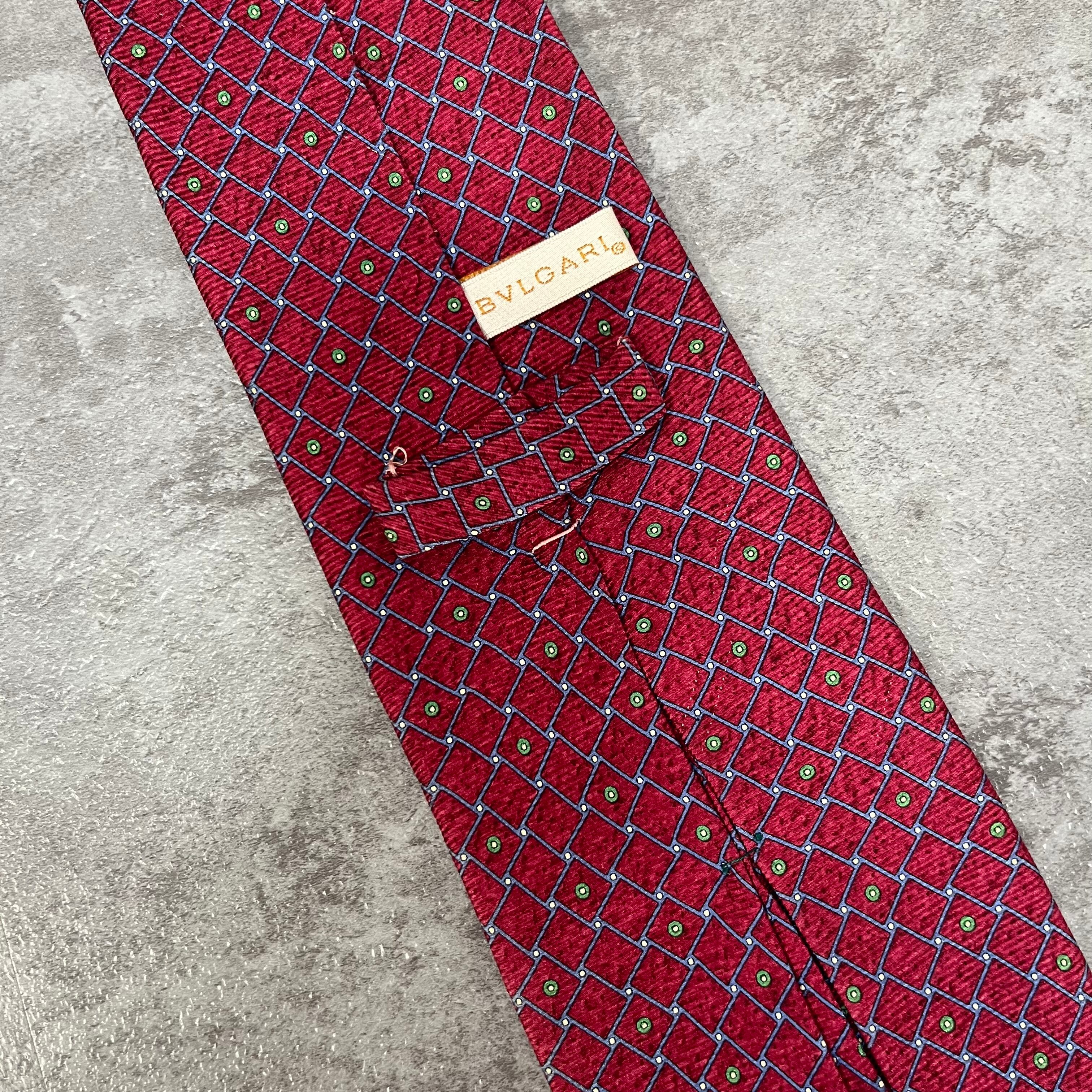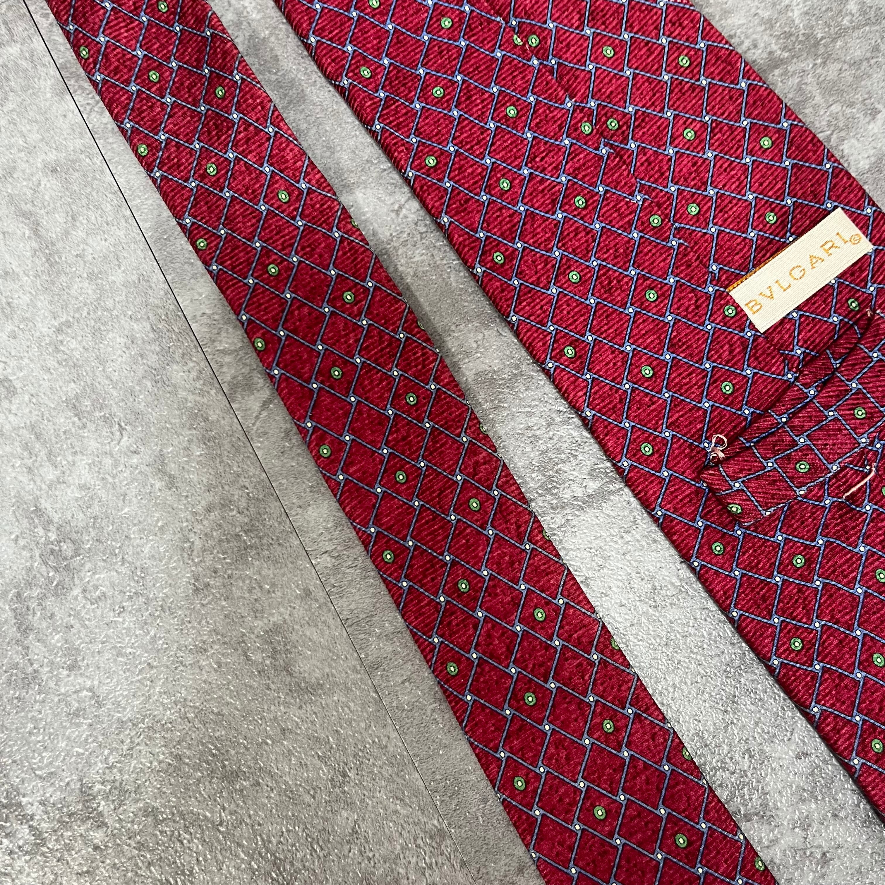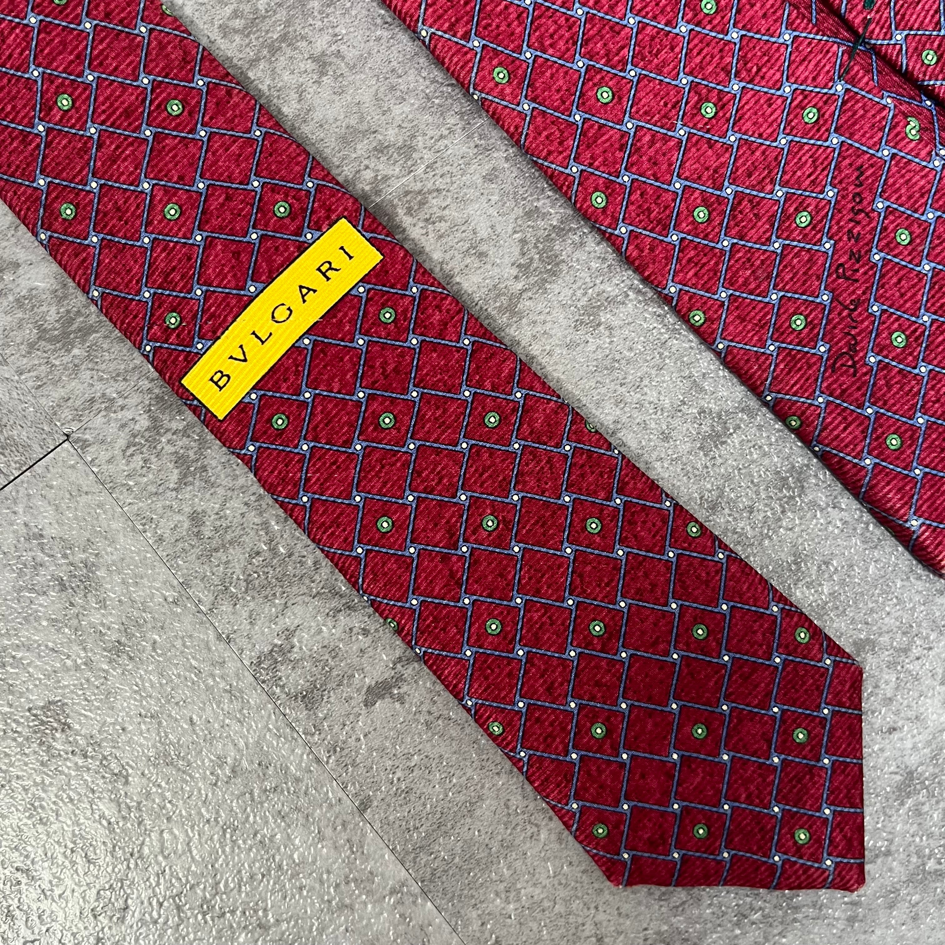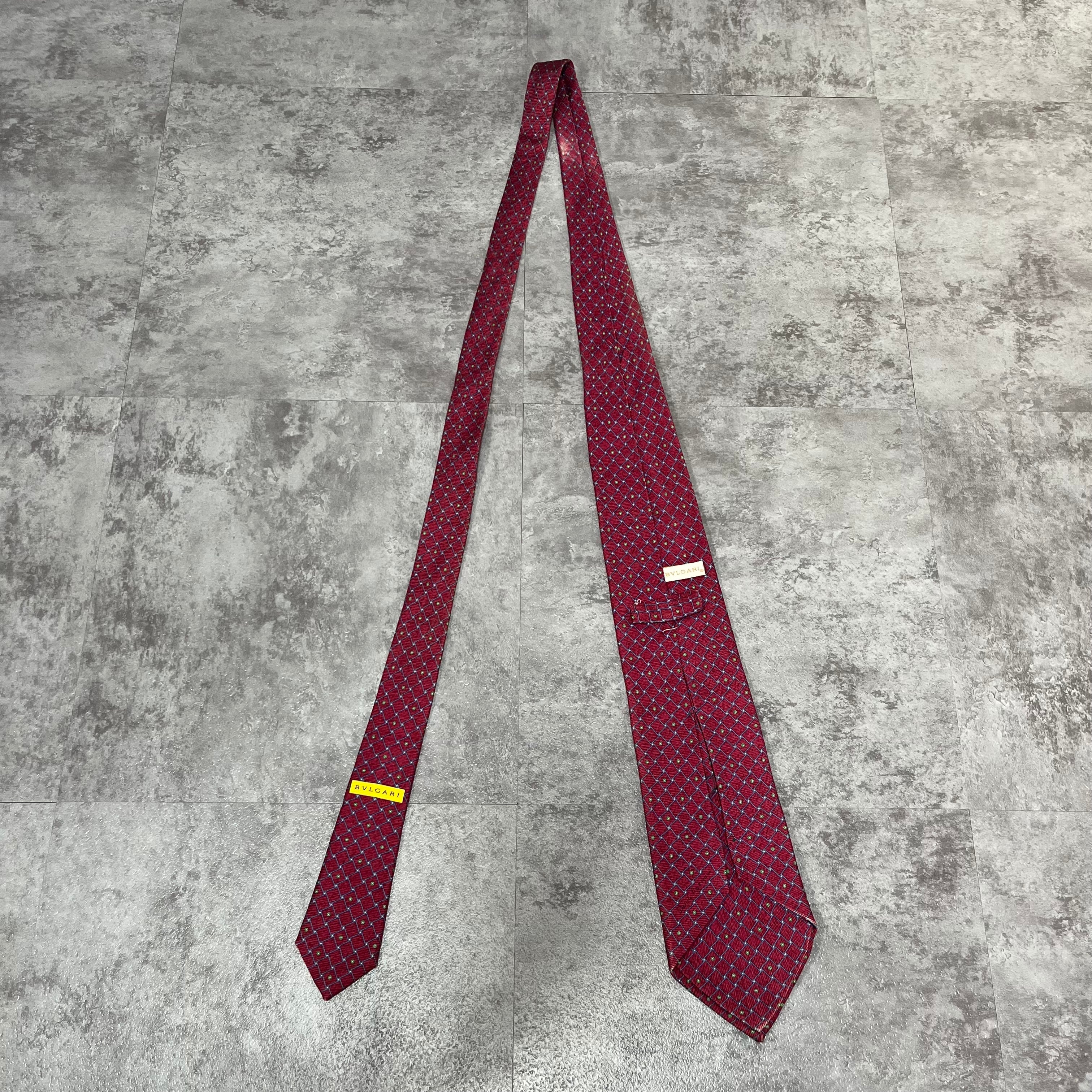 【BVLGARI】チェック柄ネクタイ レッド セッテピエゲ 最高級